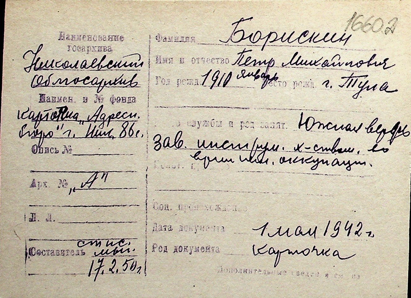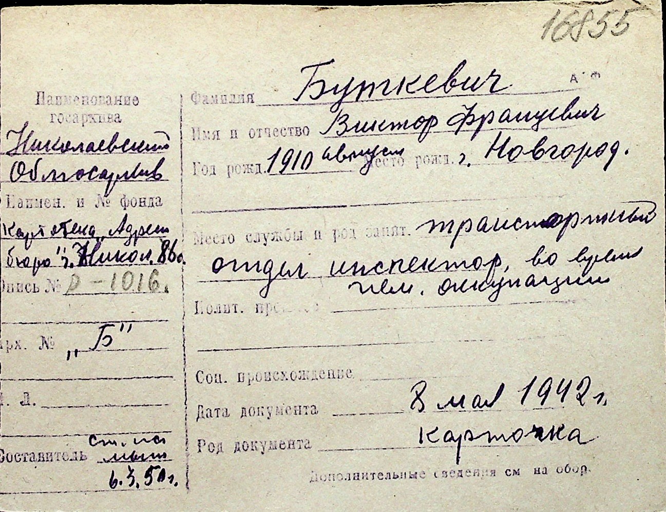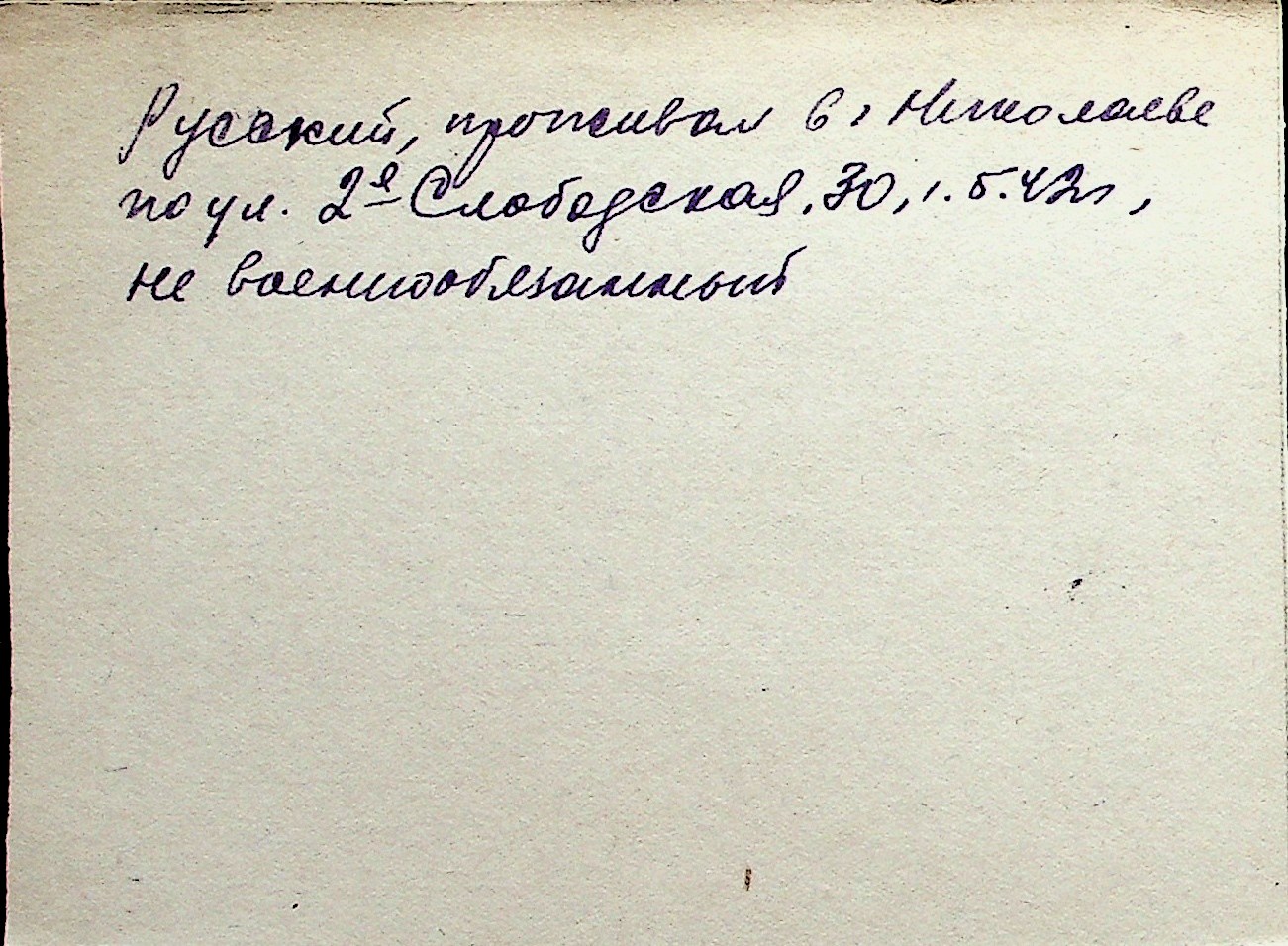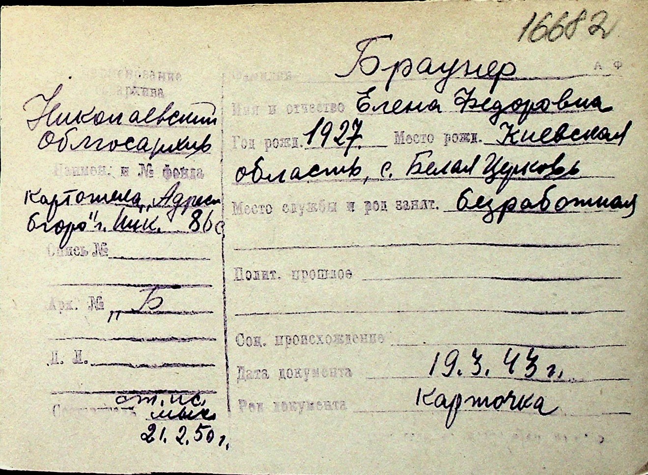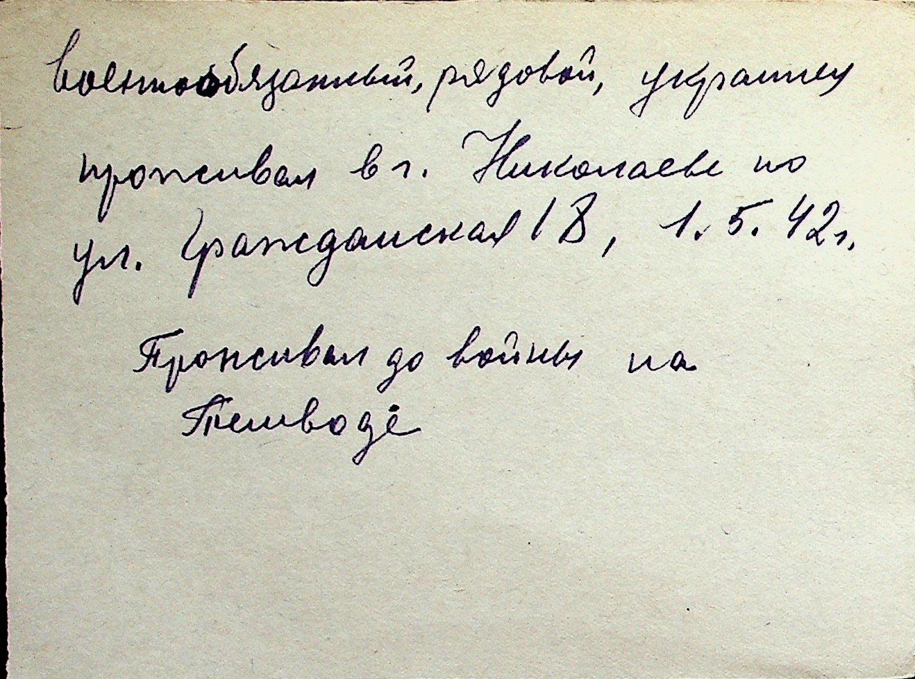 ◦ ◦ Перелік карток на осіб, які мешкали у м. Миколаїв у період окупації 1941–1944 років