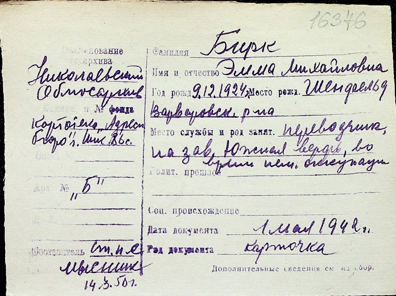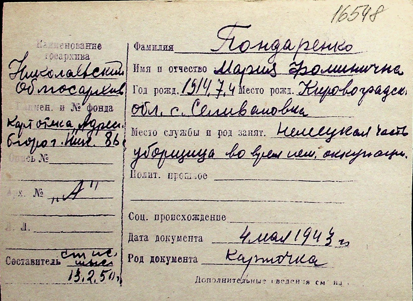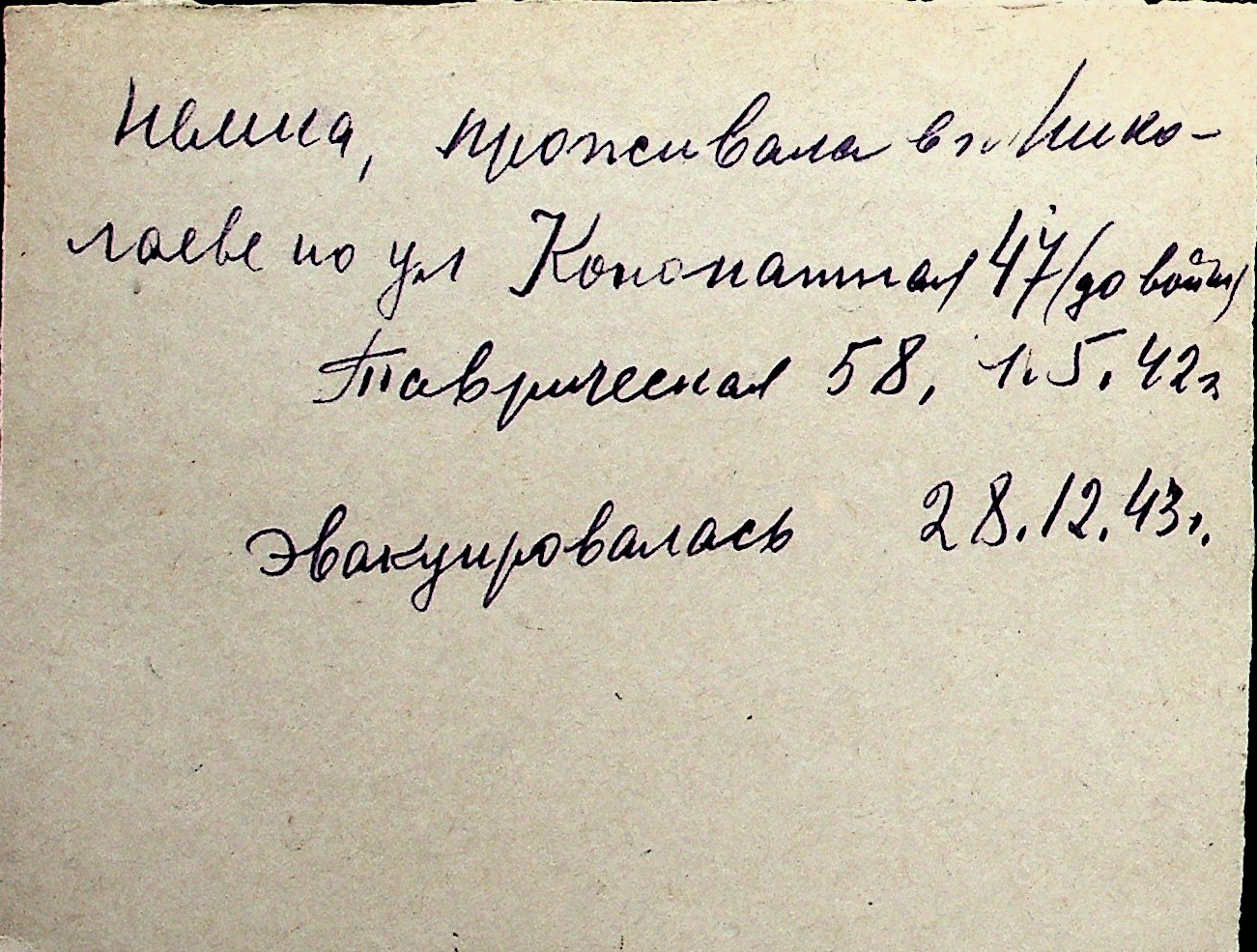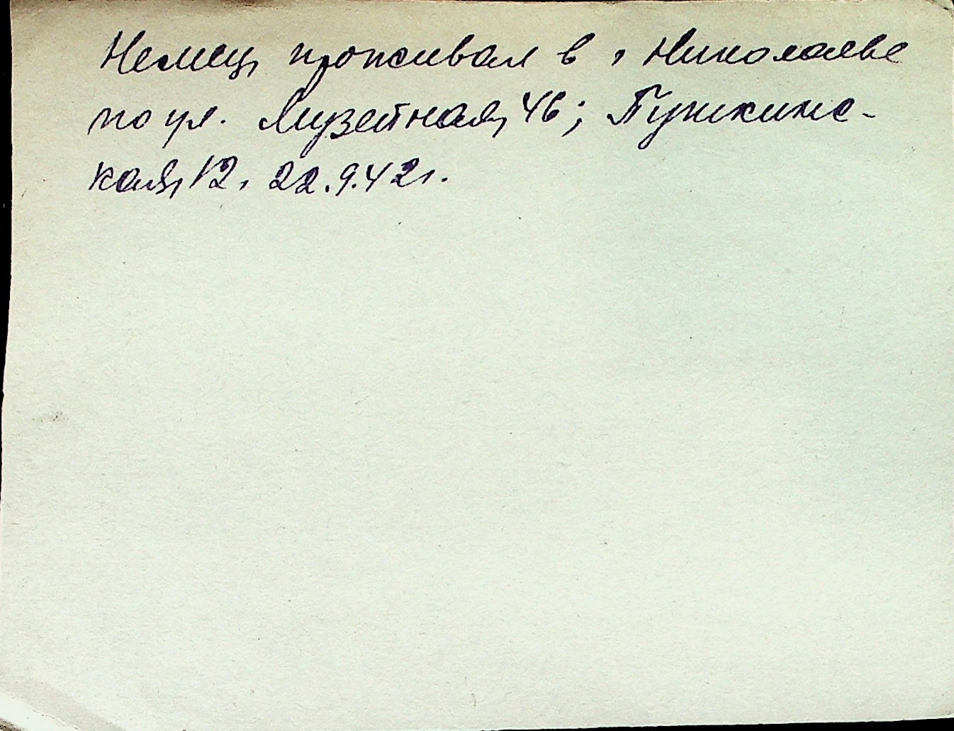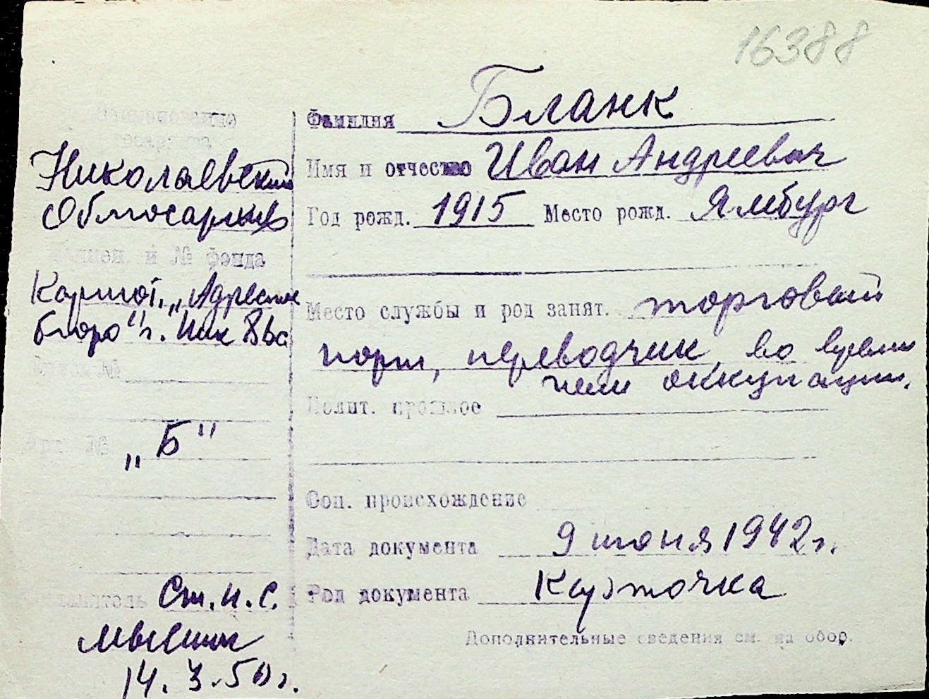 ◦ ◦ Перелік карток на осіб, які мешкали у м. Миколаїв у період окупації 1941–1944 років