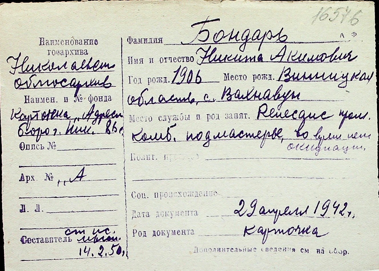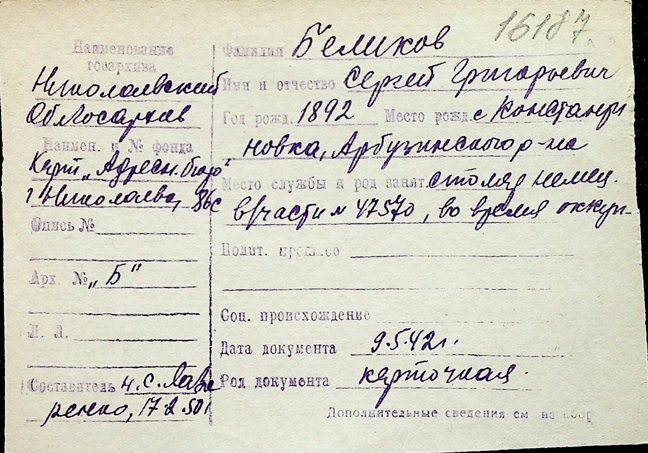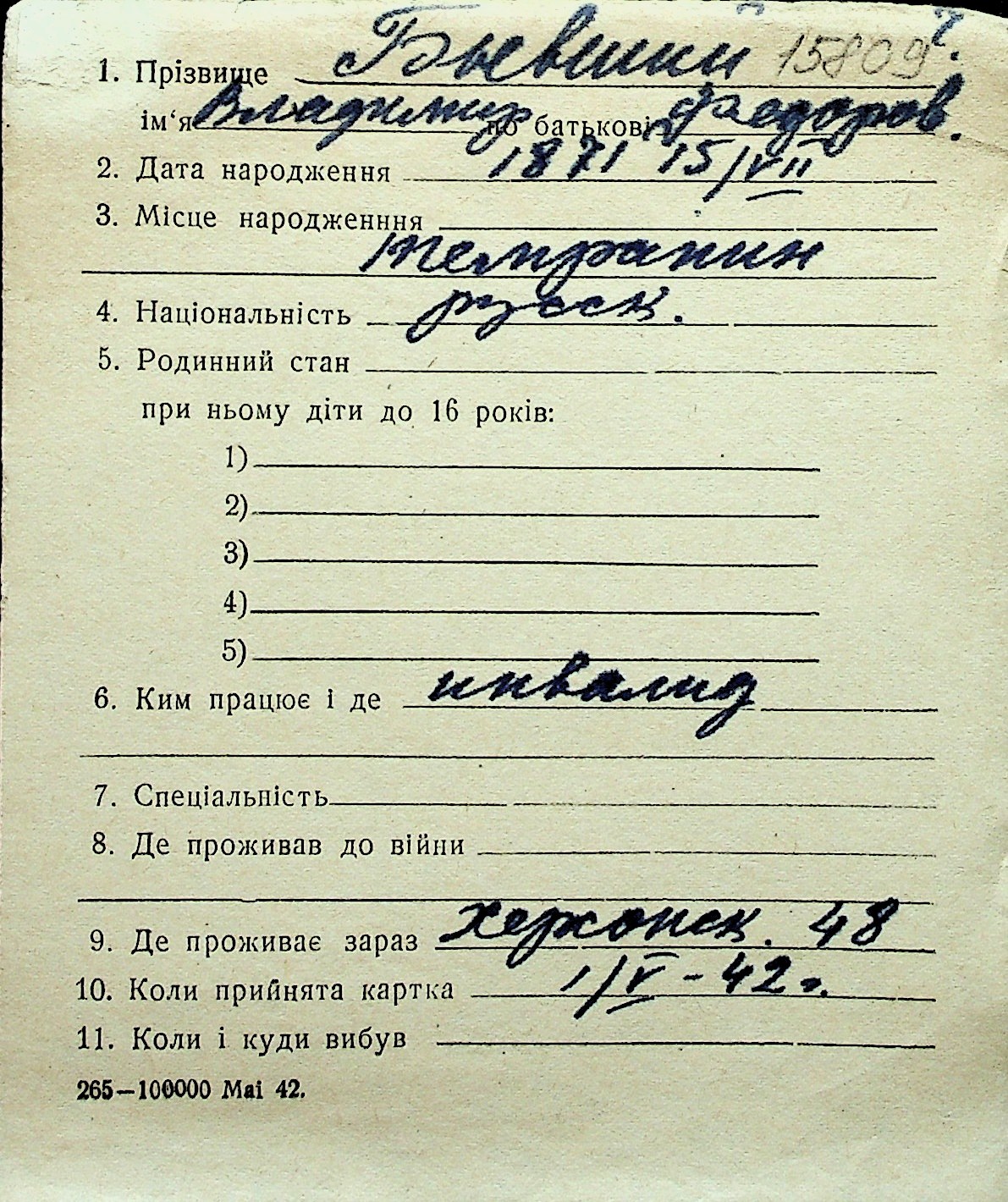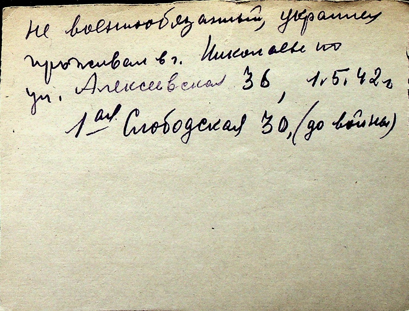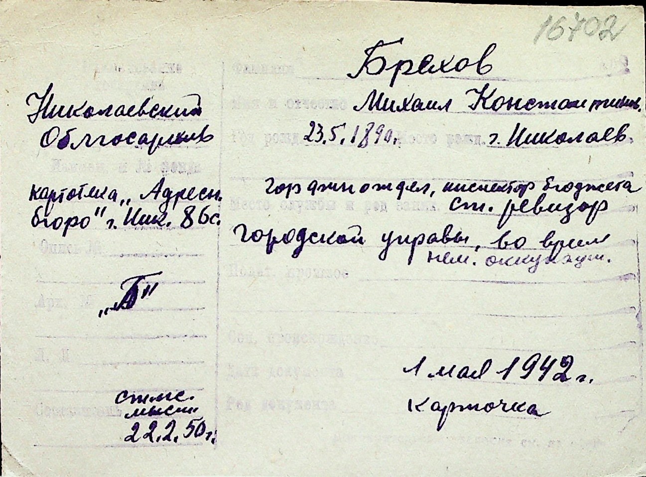 ◦ ◦ Перелік карток на осіб, які мешкали у м. Миколаїв у період окупації 1941–1944 років
