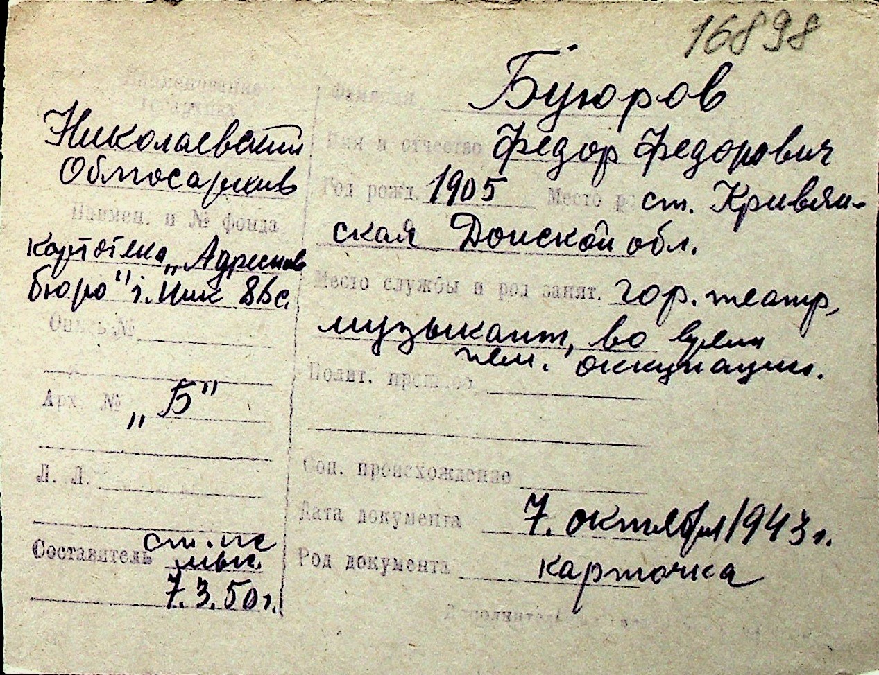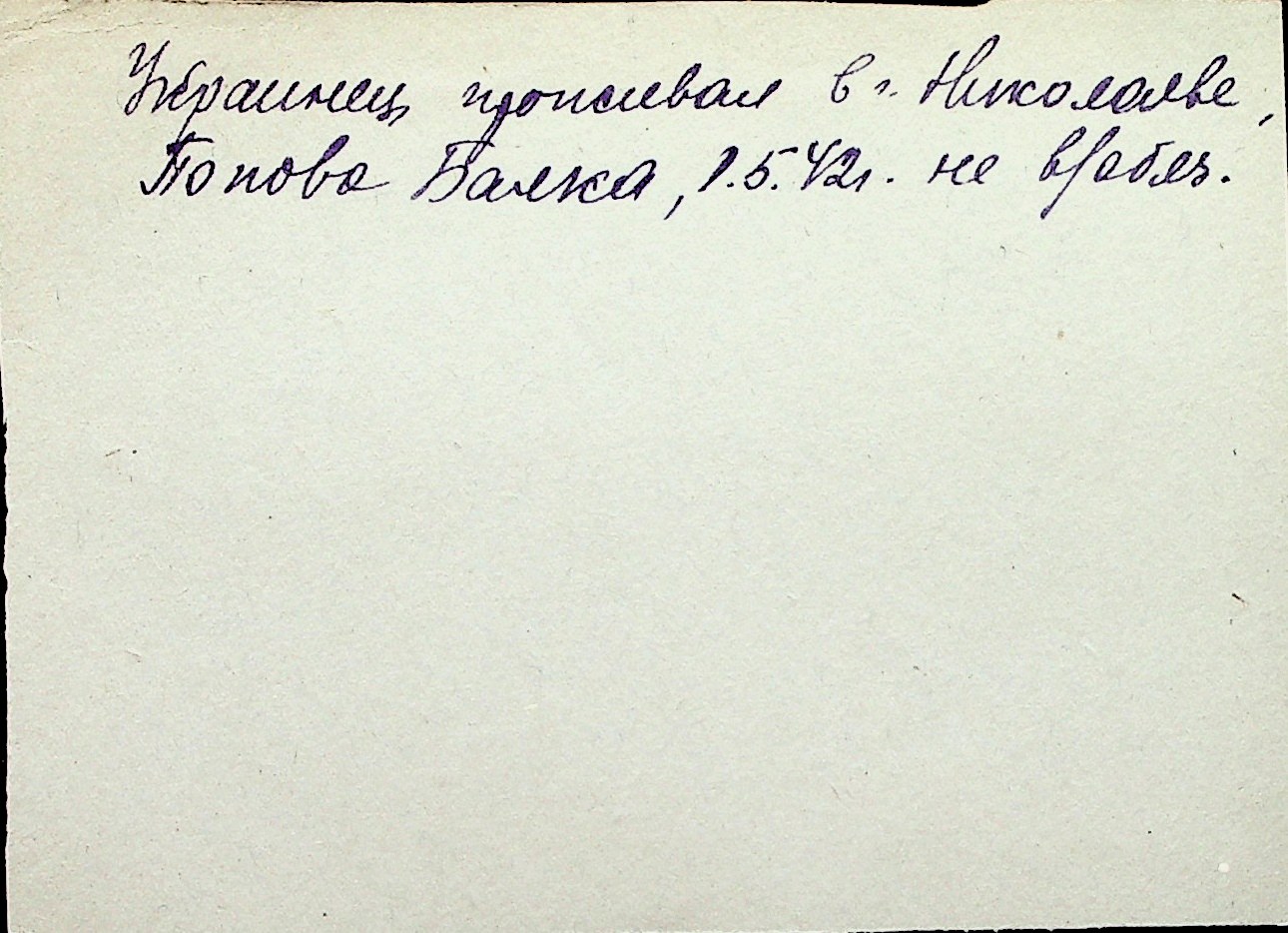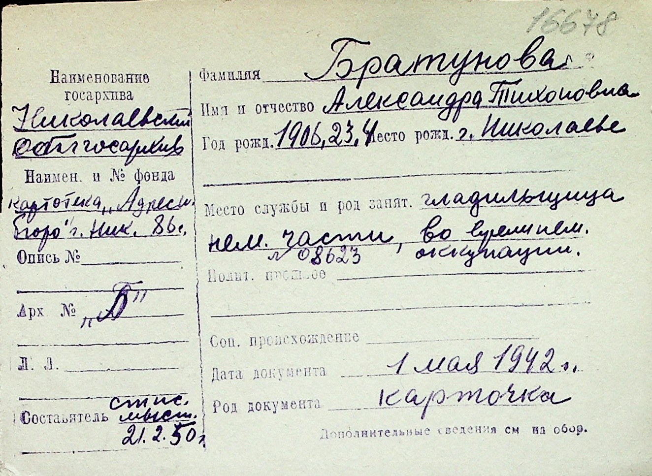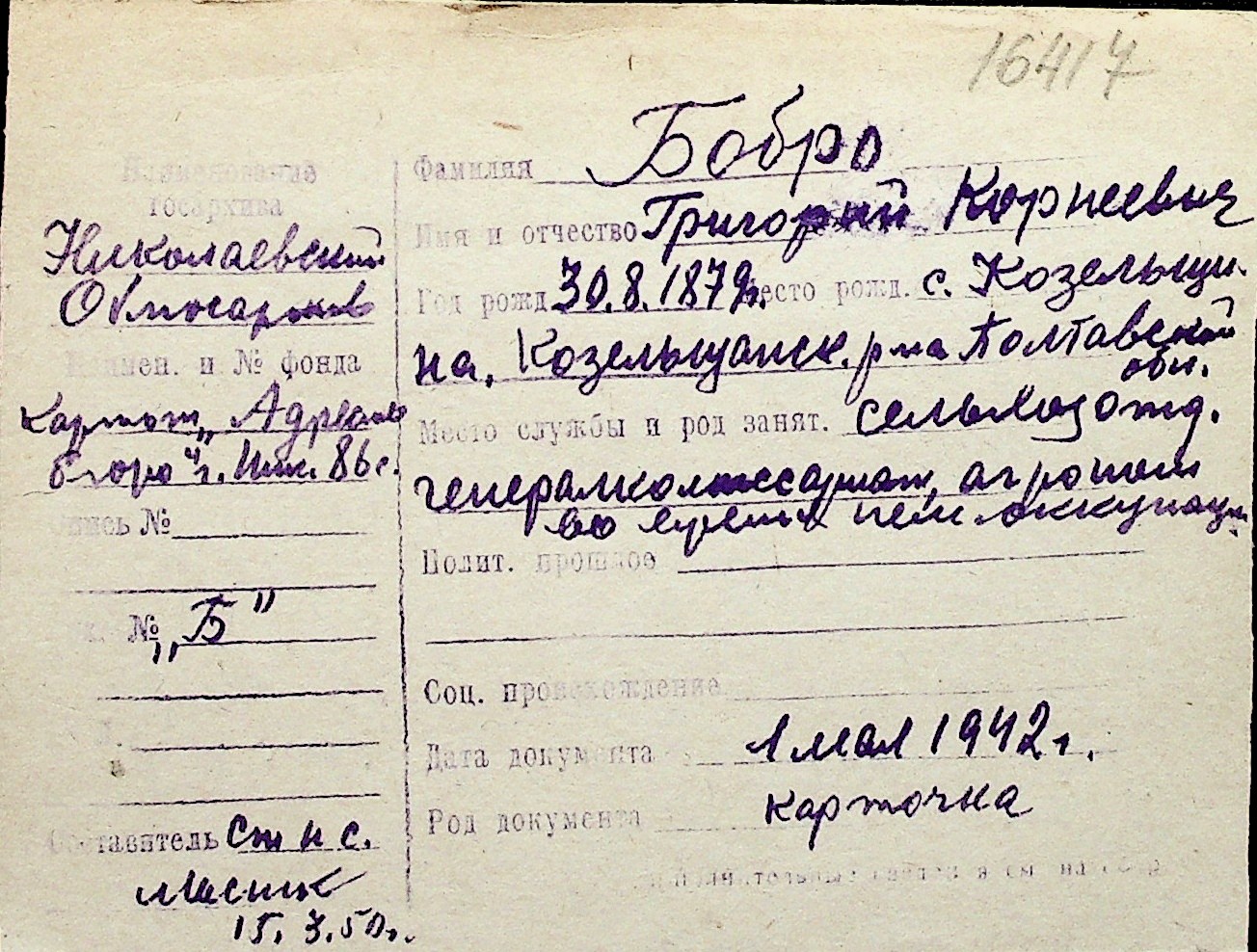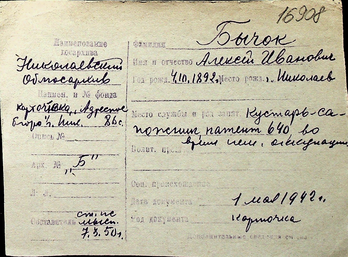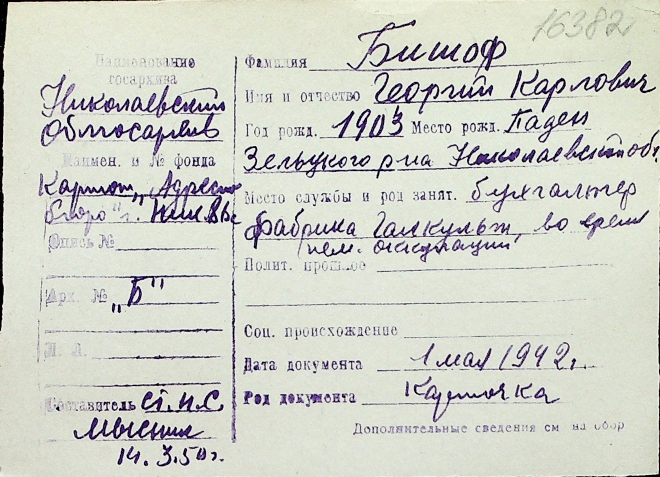 ◦ ◦ Перелік карток на осіб, які мешкали у м. Миколаїв у період окупації 1941–1944 років