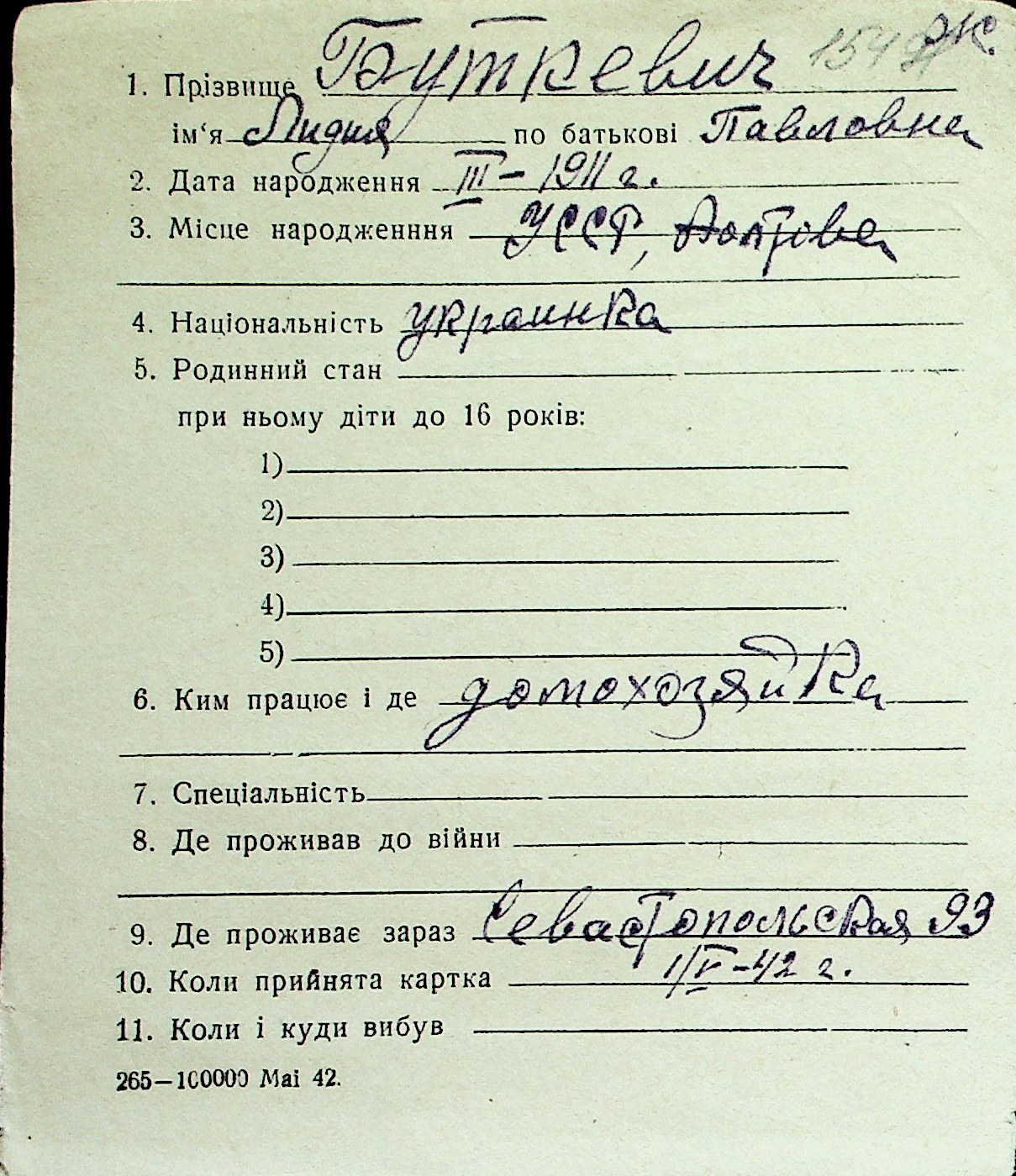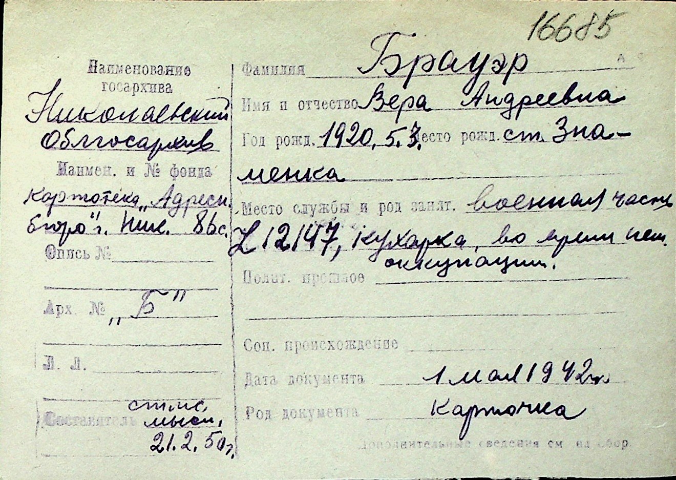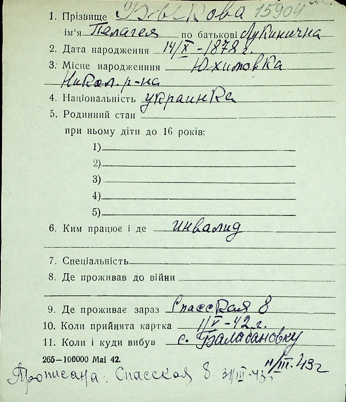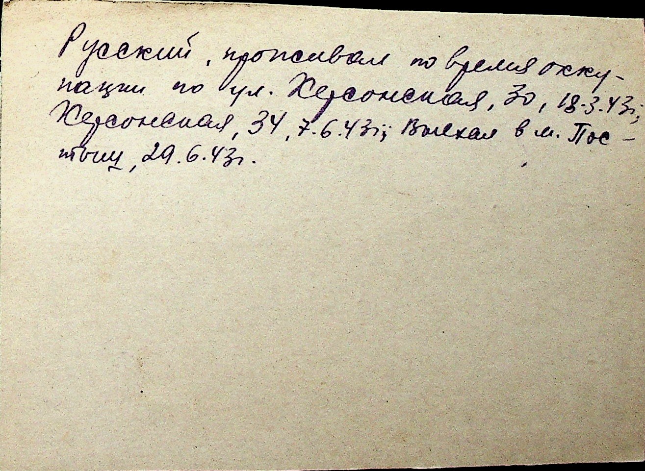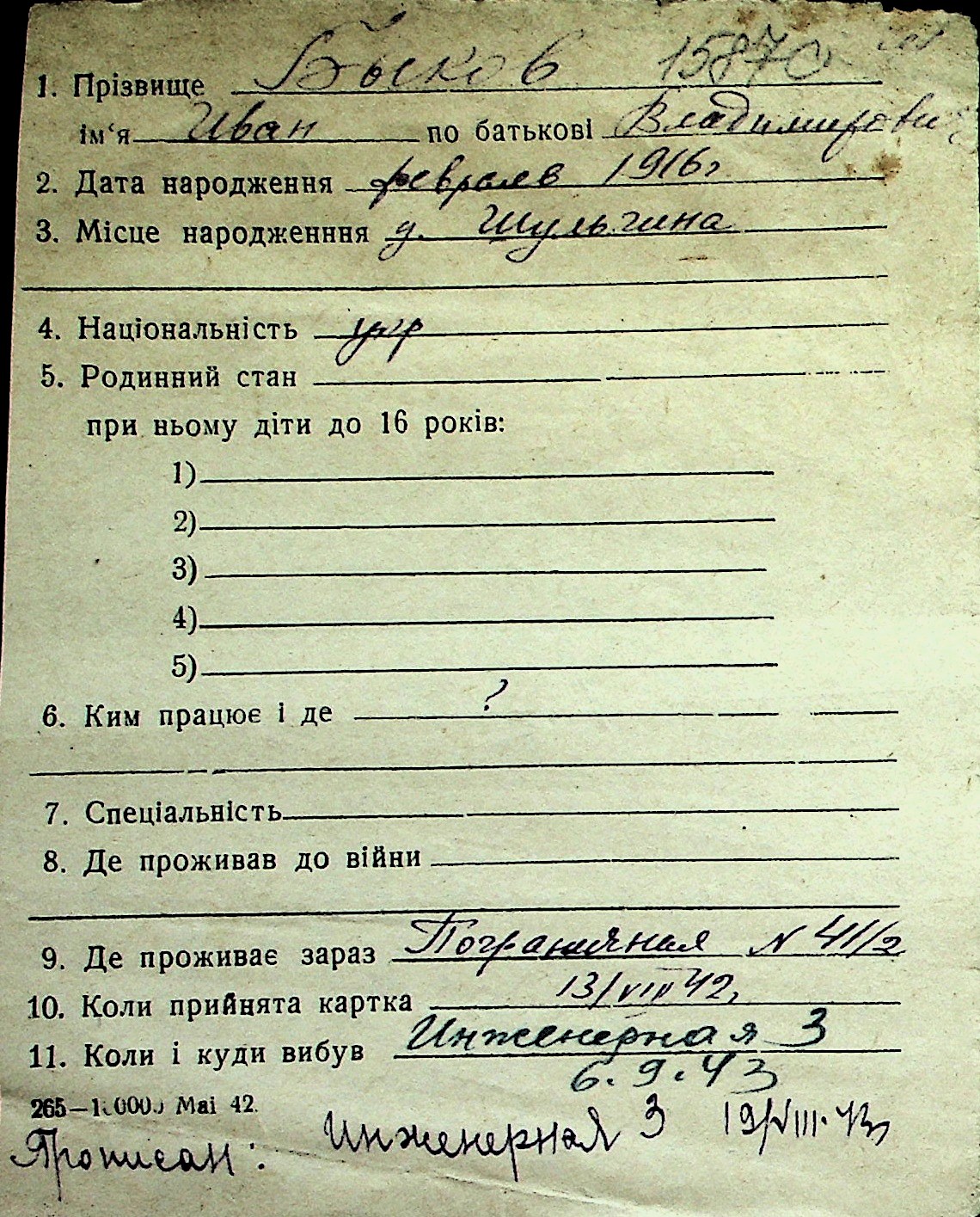 ◦ ◦ Перелік карток на осіб, які мешкали у м. Миколаїв у період окупації 1941–1944 років
