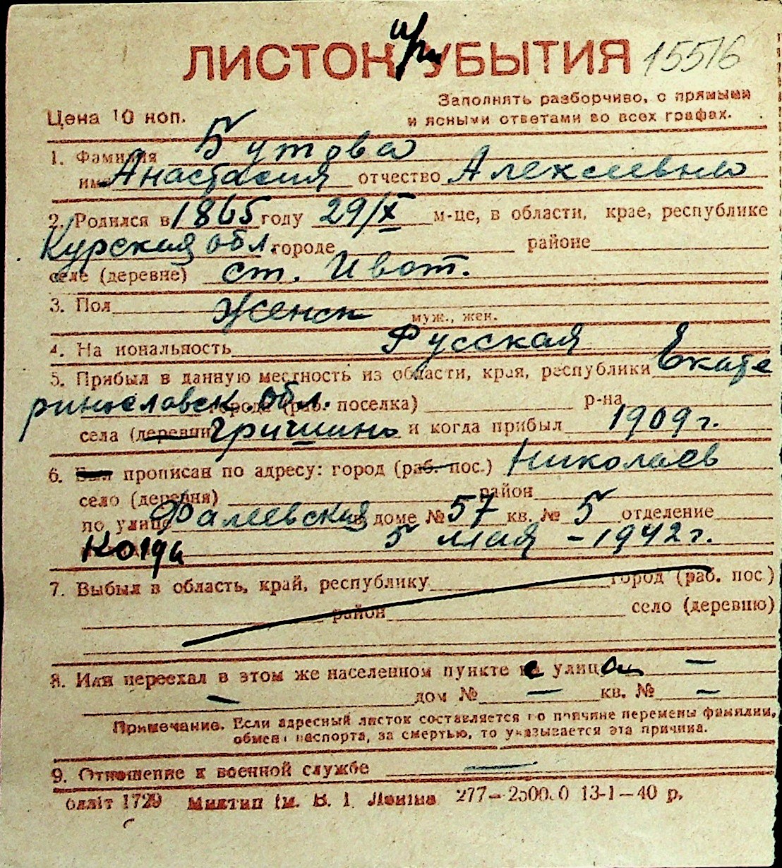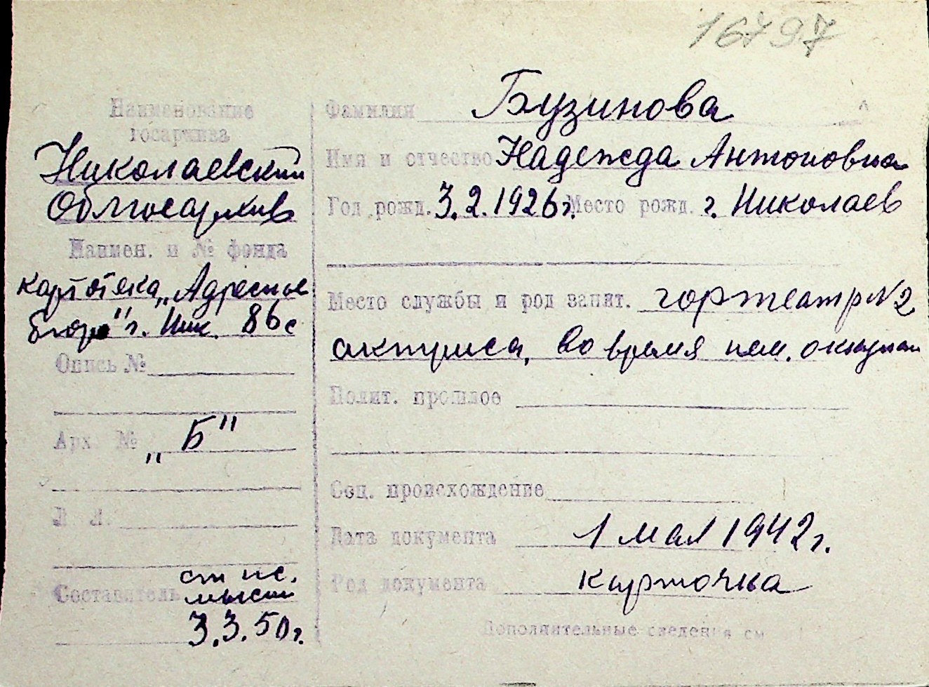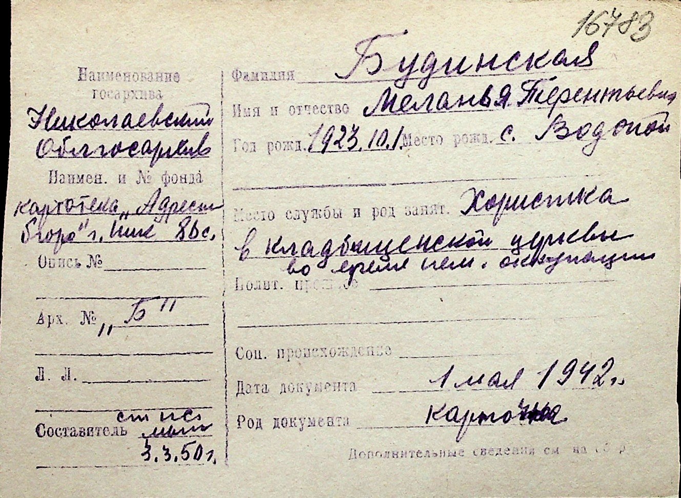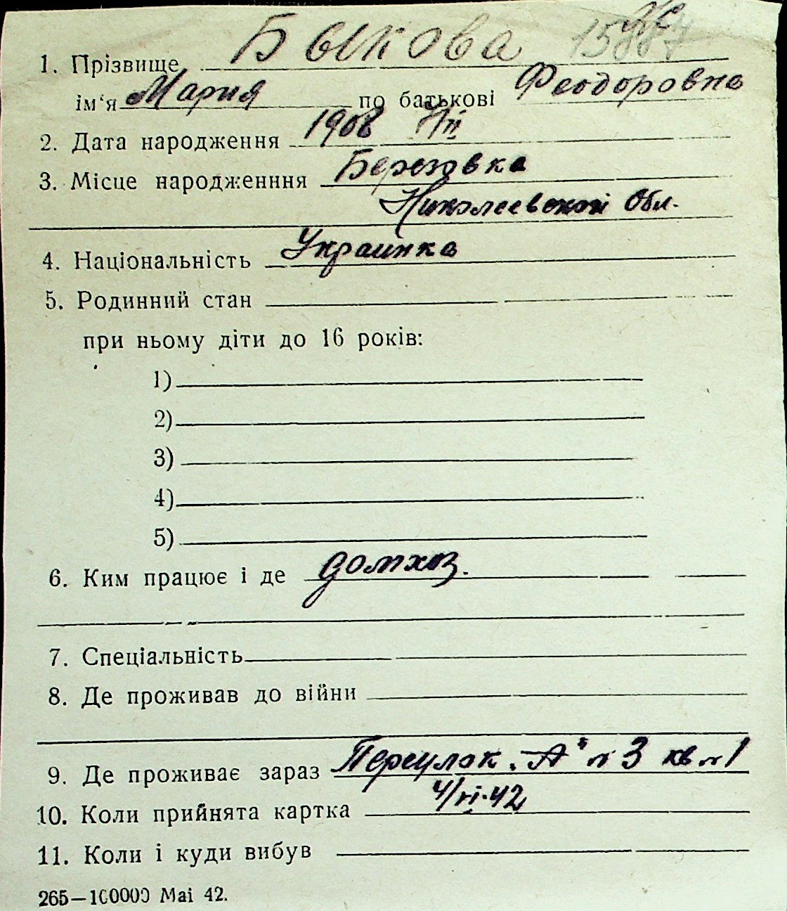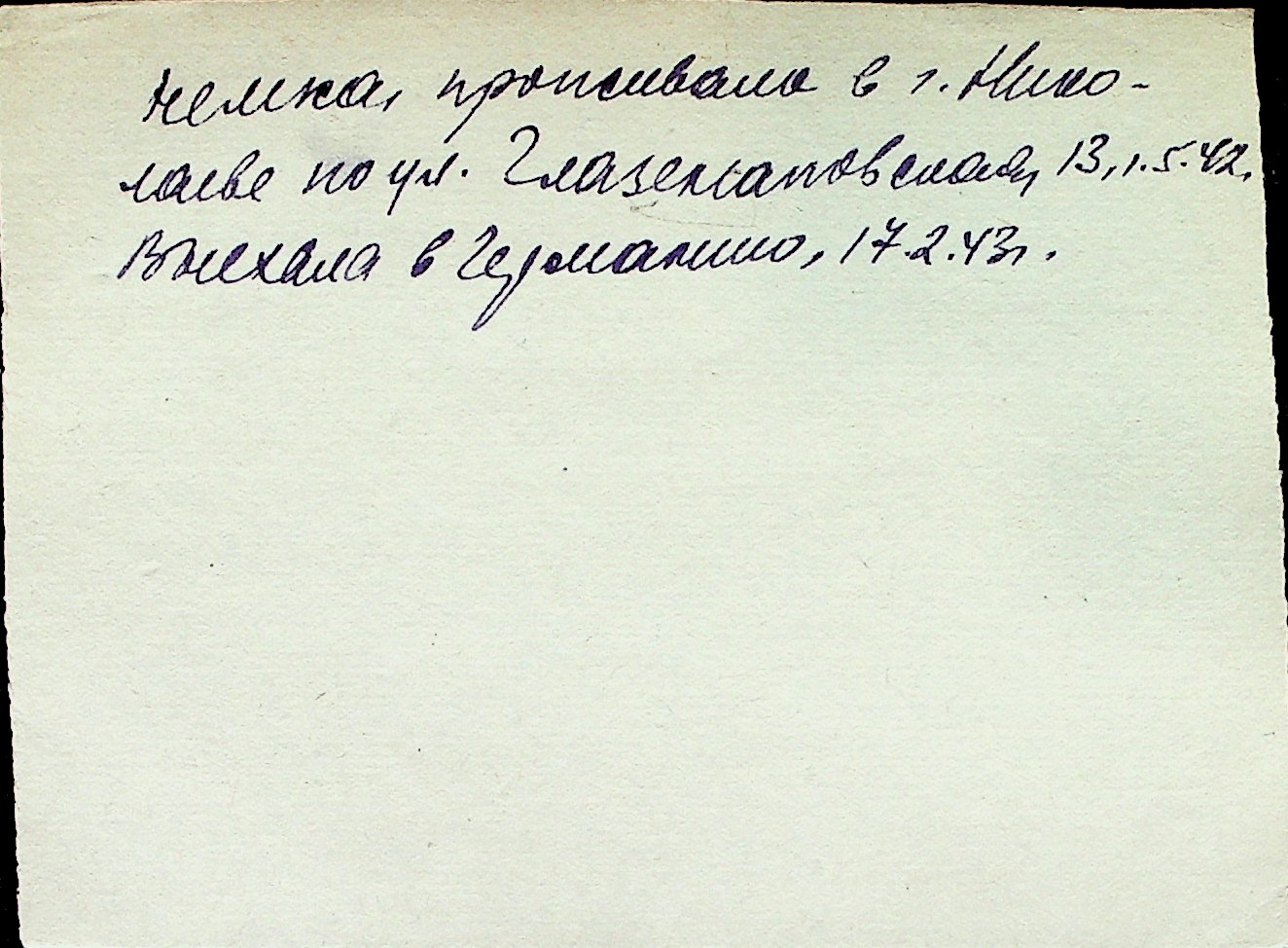 ◦ ◦ Перелік карток на осіб, які мешкали у м. Миколаїв у період окупації 1941–1944 років
