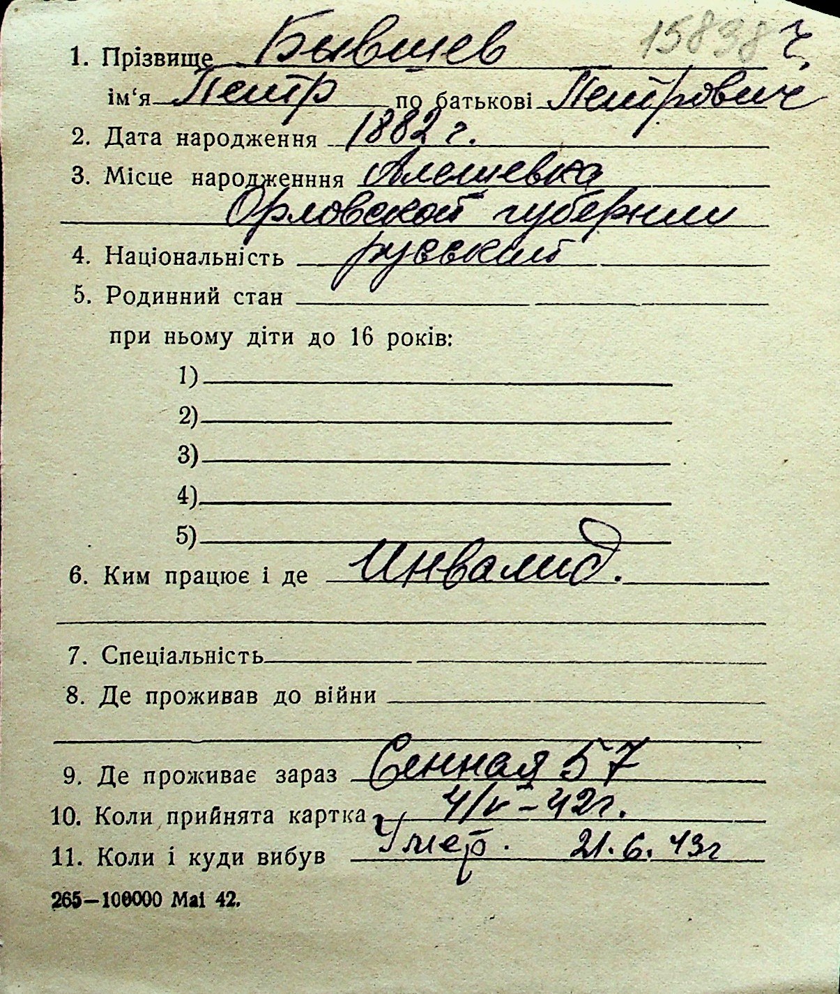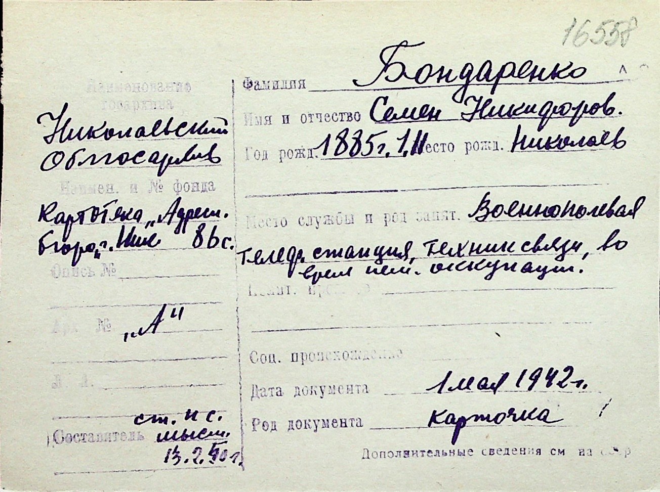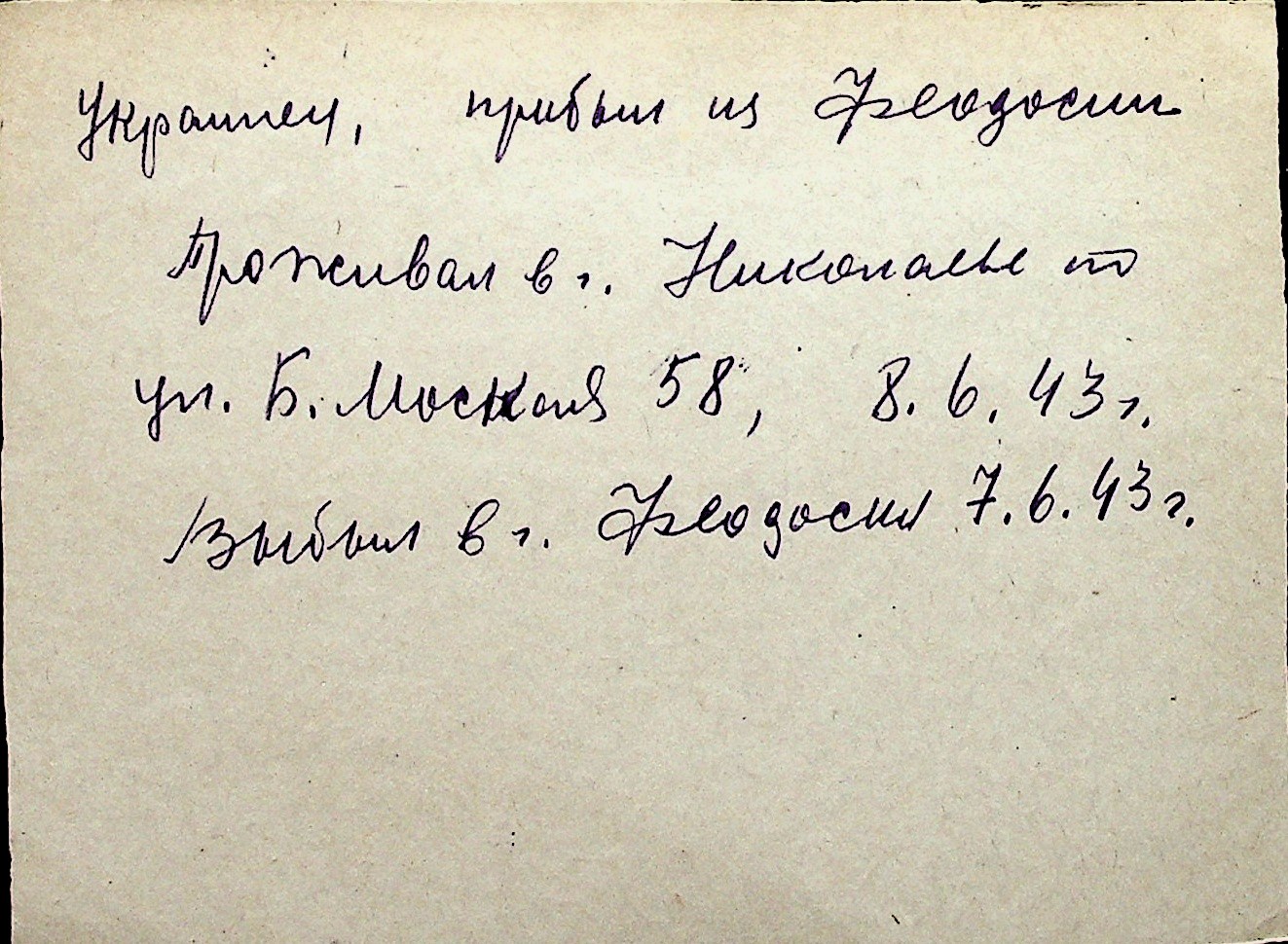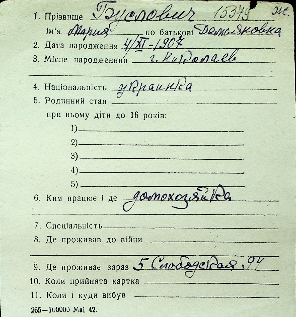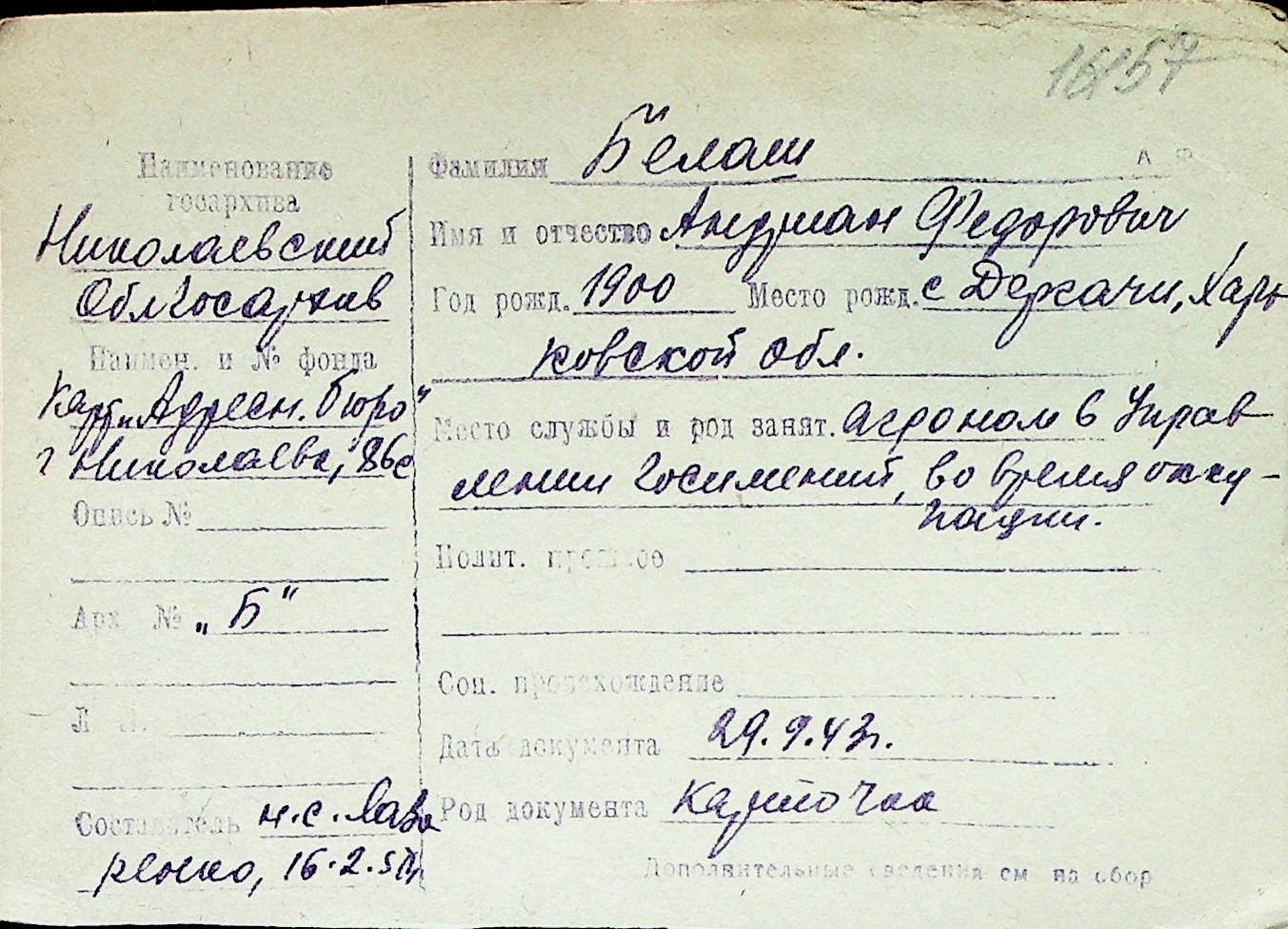 ◦ ◦ Перелік карток на осіб, які мешкали у м. Миколаїв у період окупації 1941–1944 років
