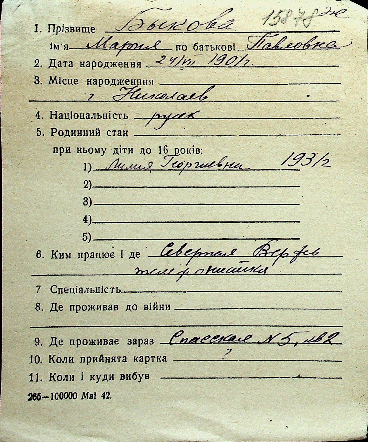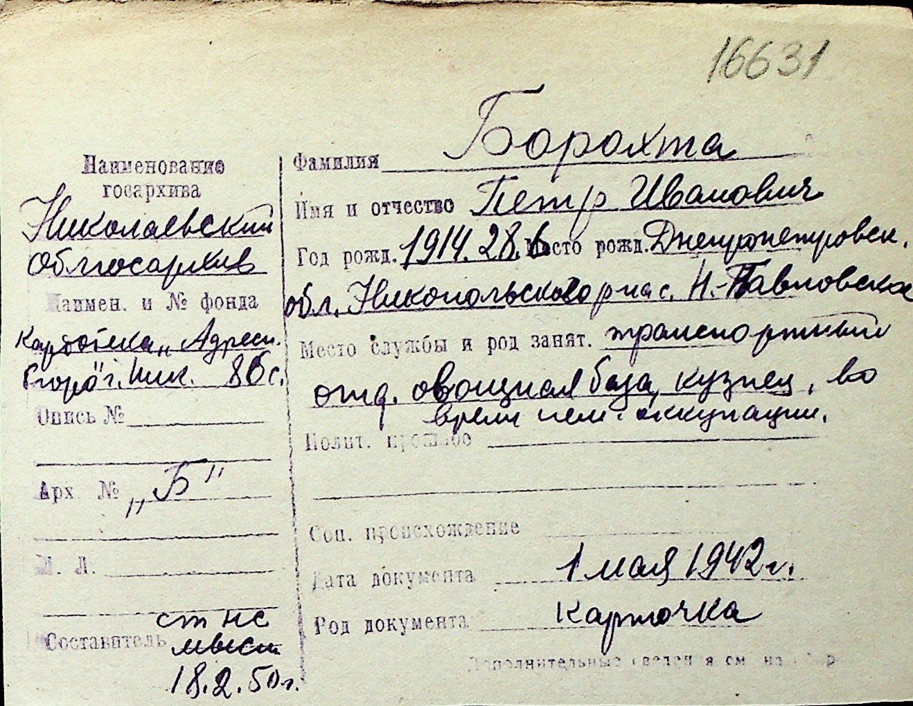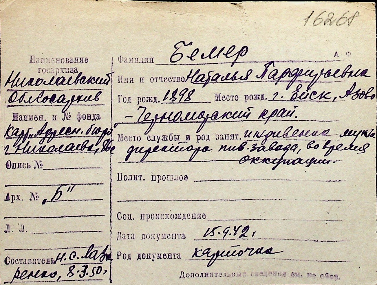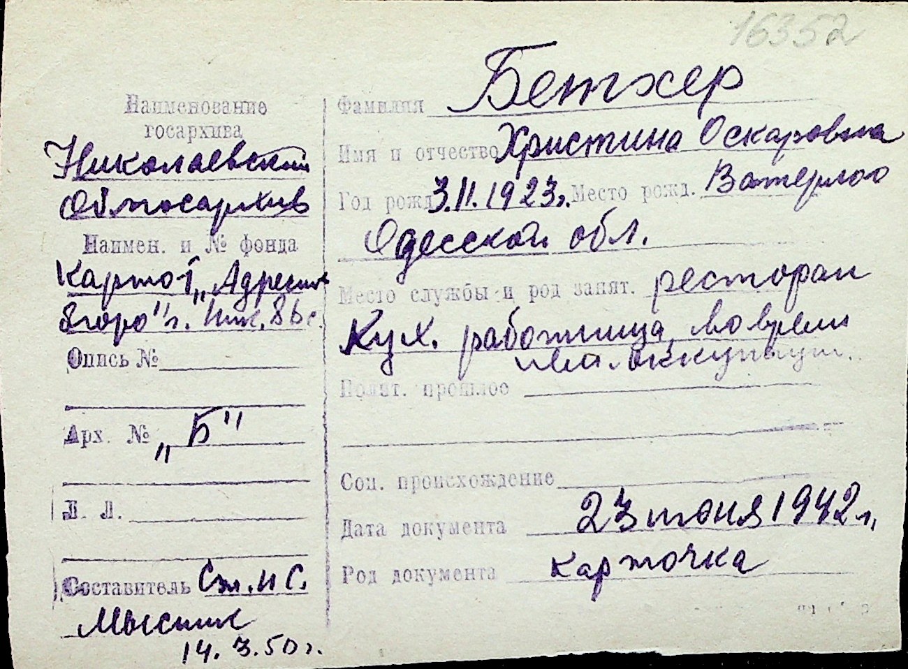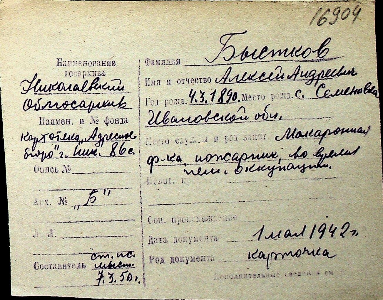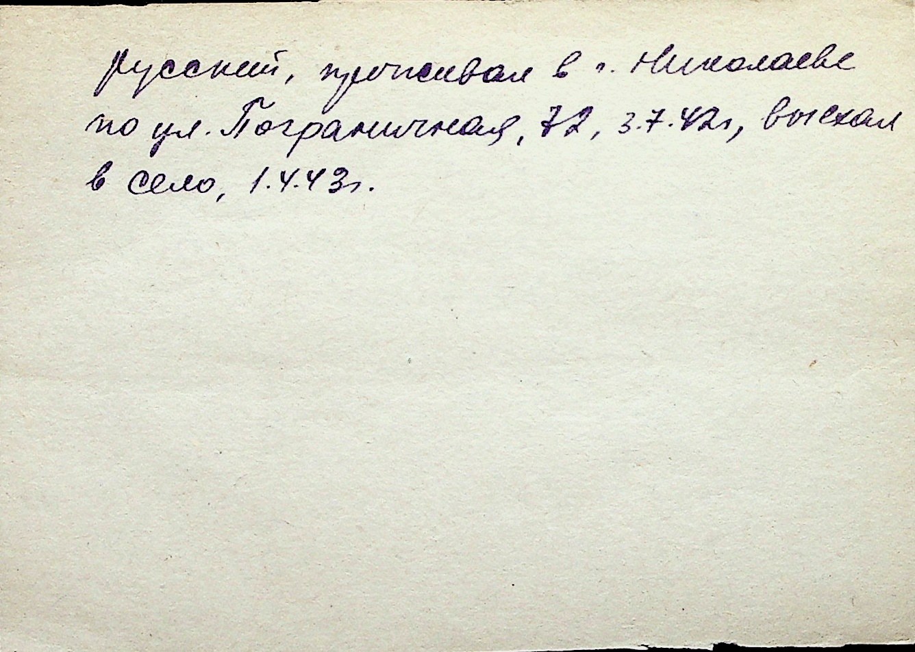◦ ◦ Перелік карток на осіб, які мешкали у м. Миколаїв у період окупації 1941–1944 років