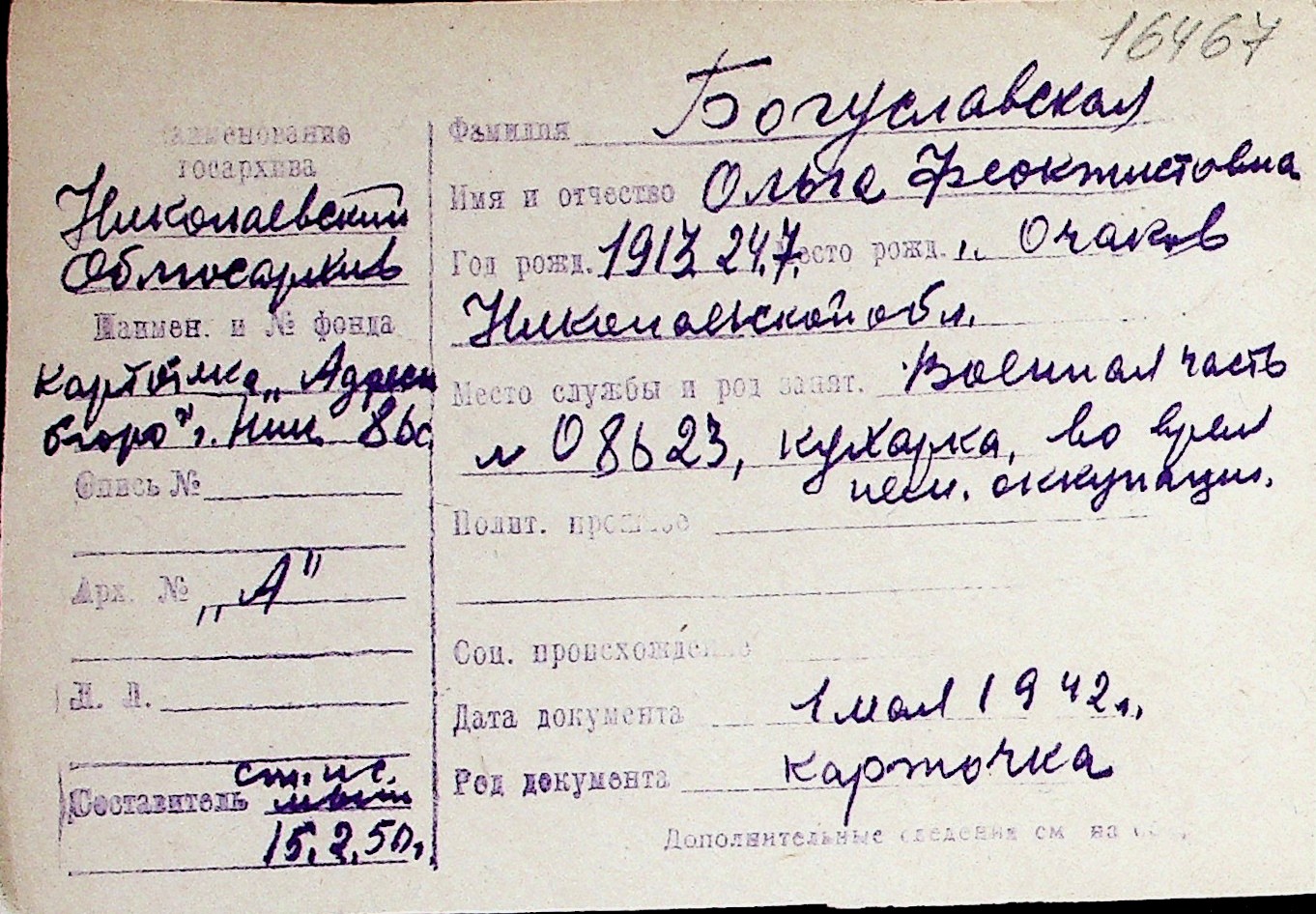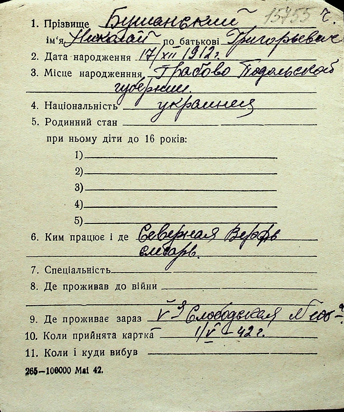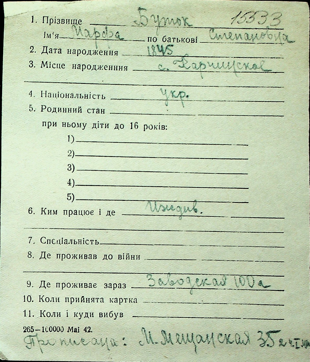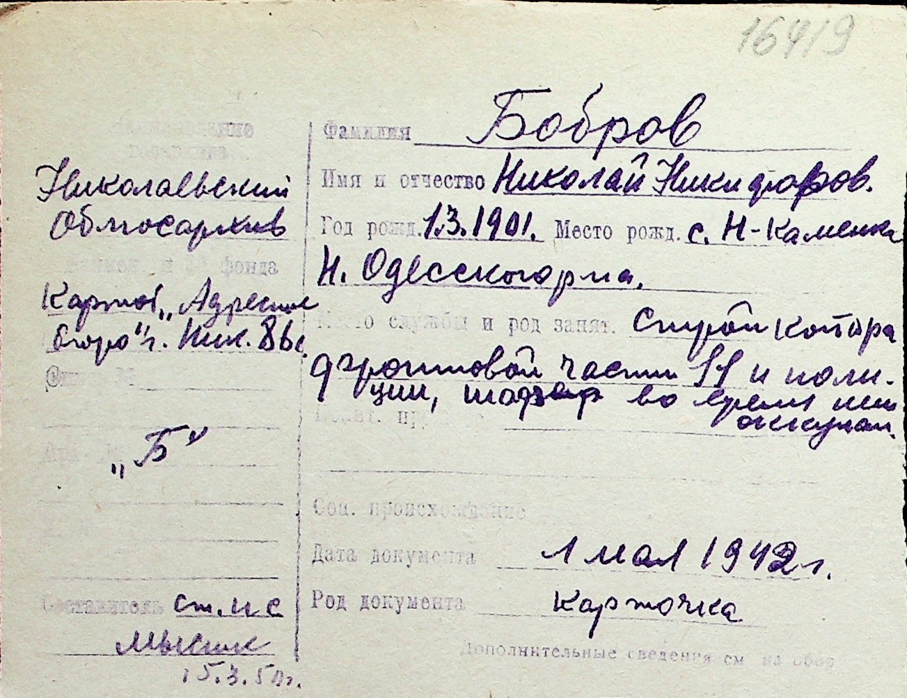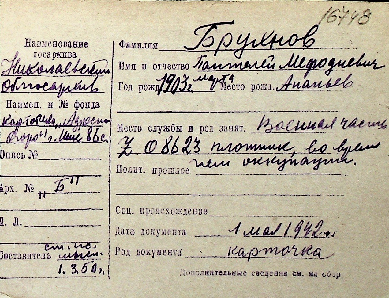 ◦ ◦ Перелік карток на осіб, які мешкали у м. Миколаїв у період окупації 1941–1944 років