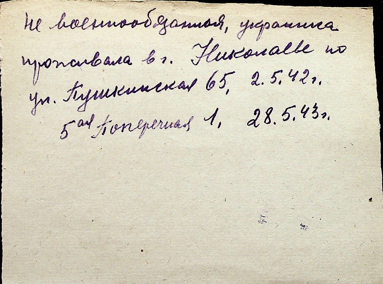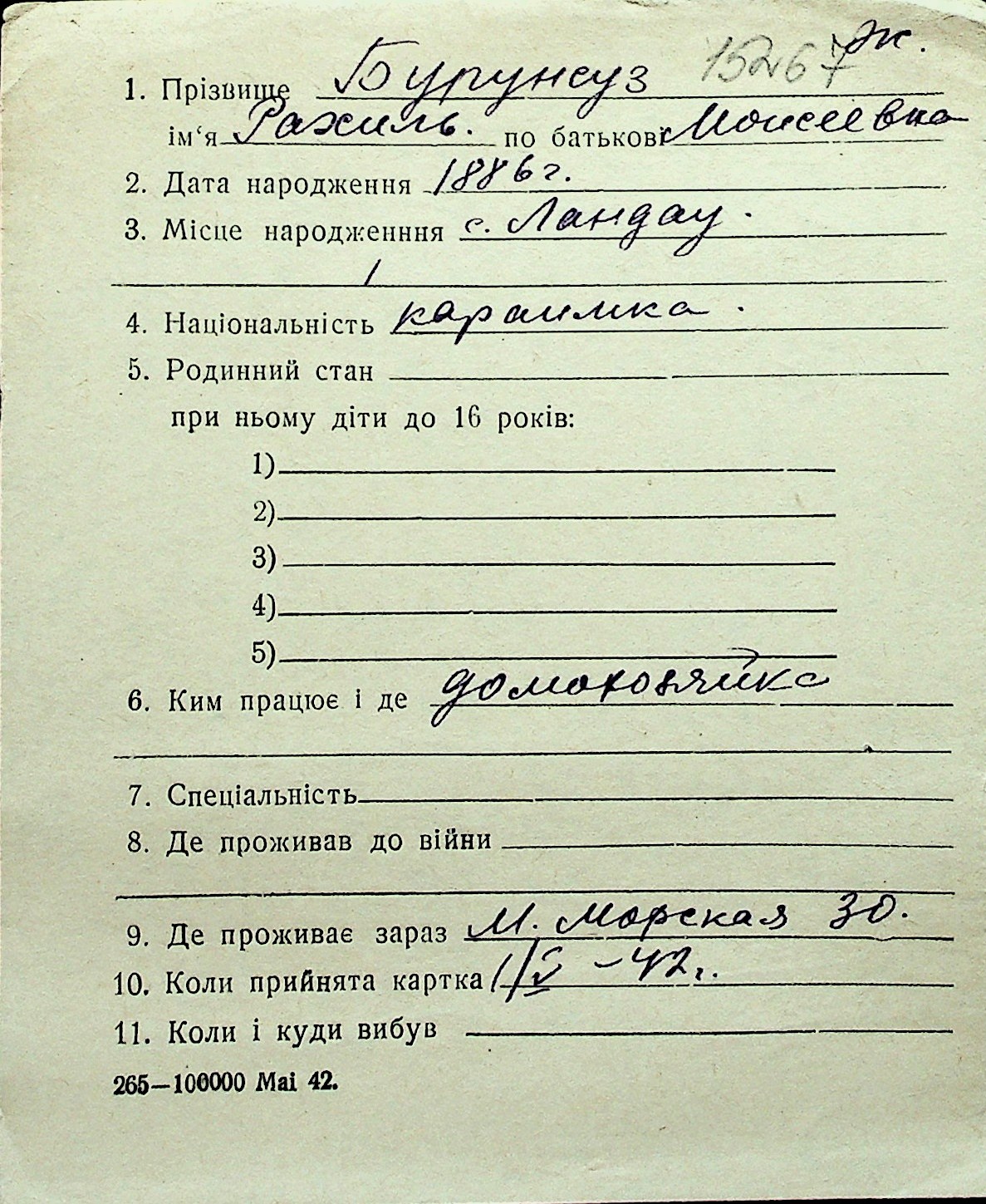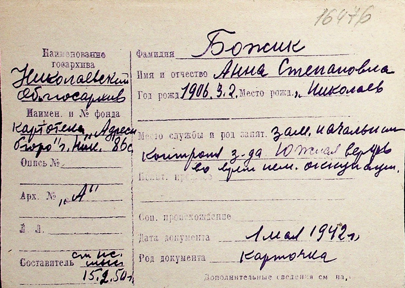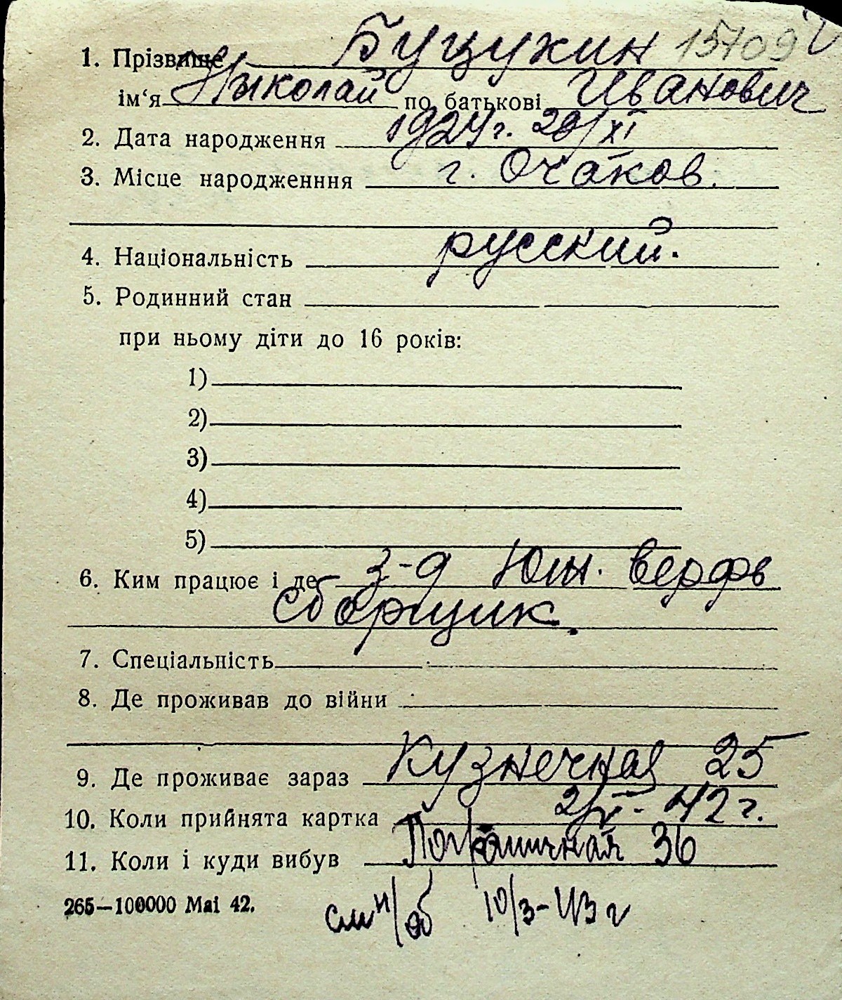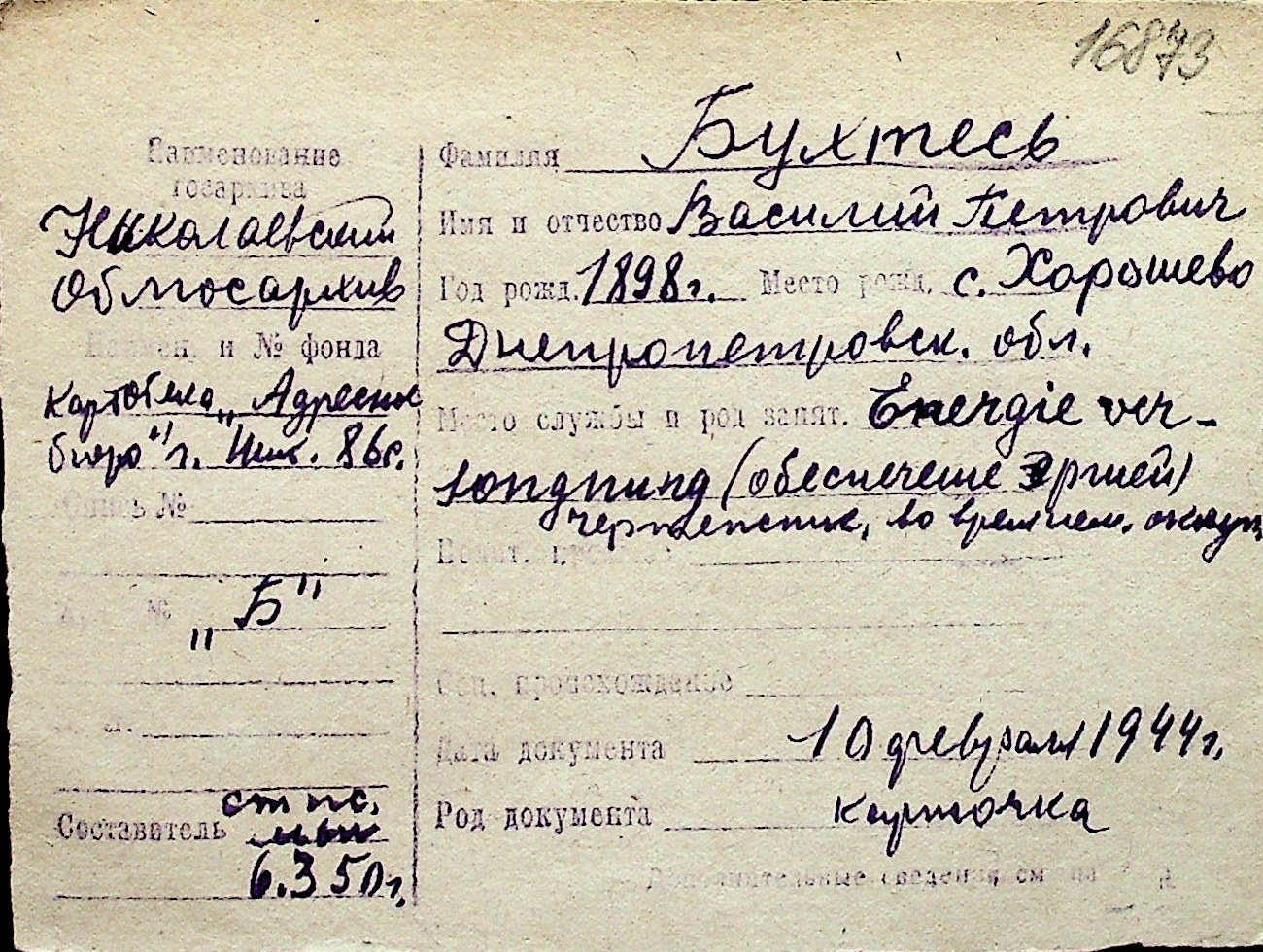 ◦ ◦ Перелік карток на осіб, які мешкали у м. Миколаїв у період окупації 1941–1944 років