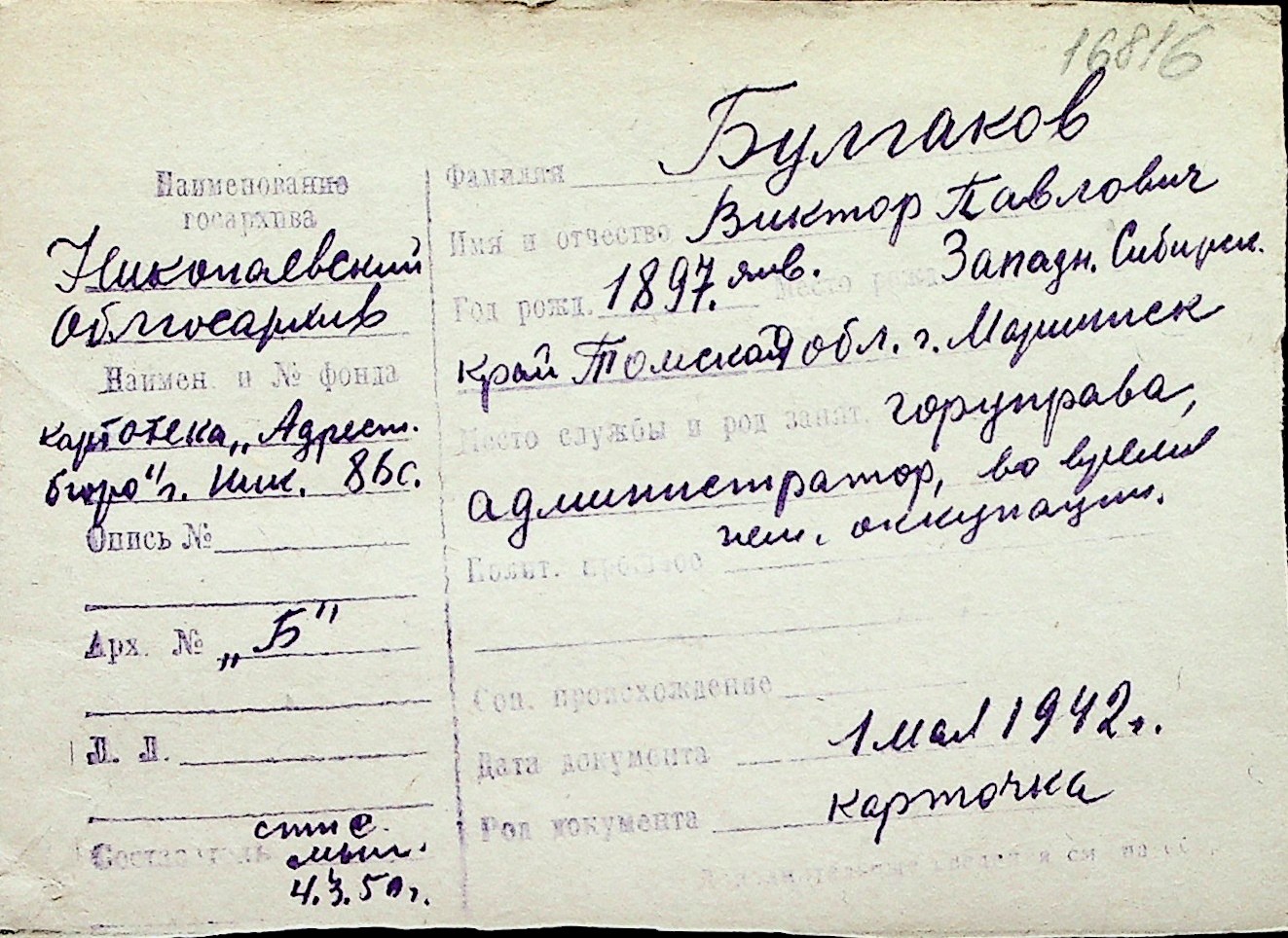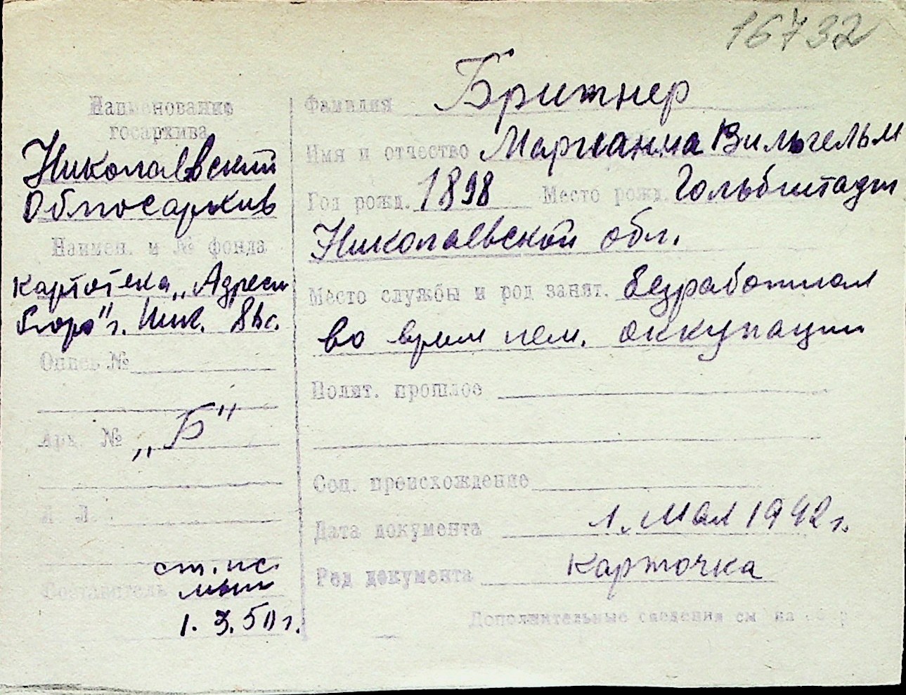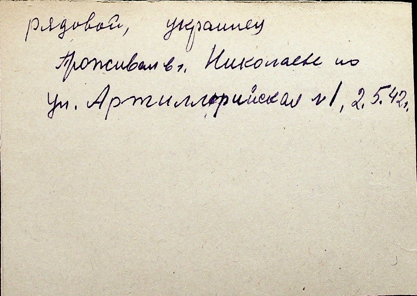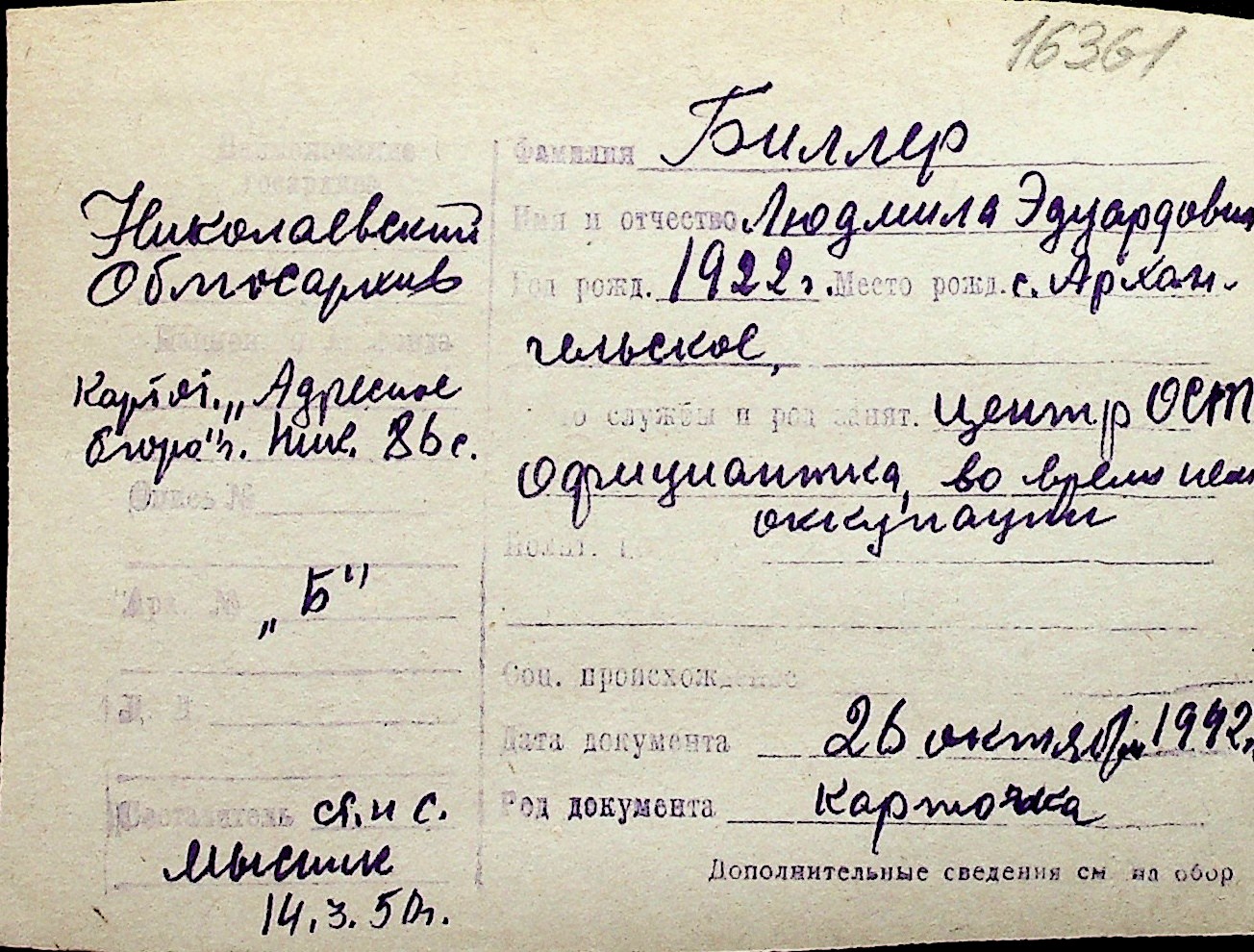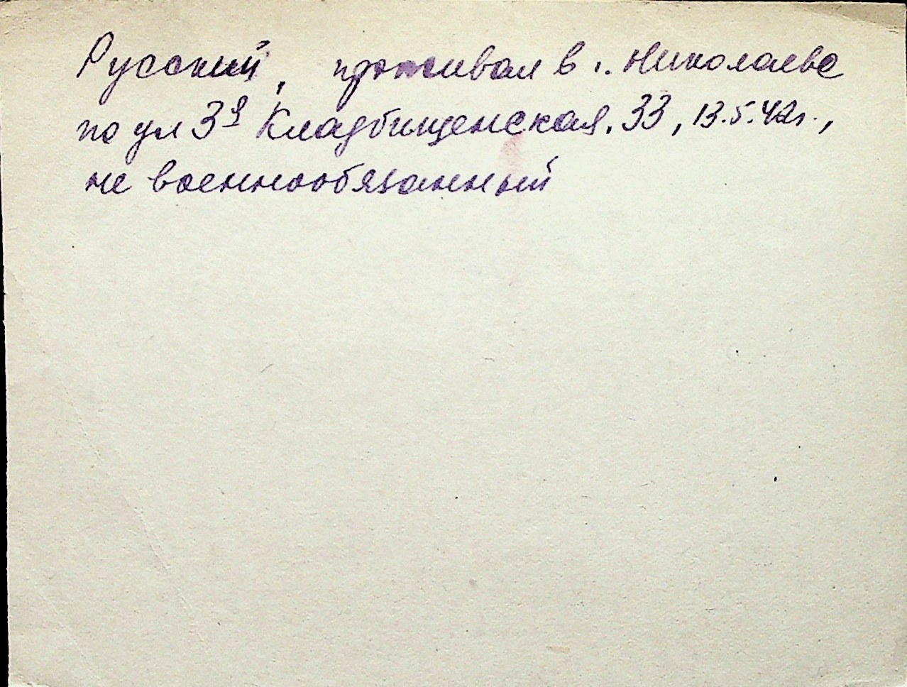 ◦ ◦ Перелік карток на осіб, які мешкали у м. Миколаїв у період окупації 1941–1944 років