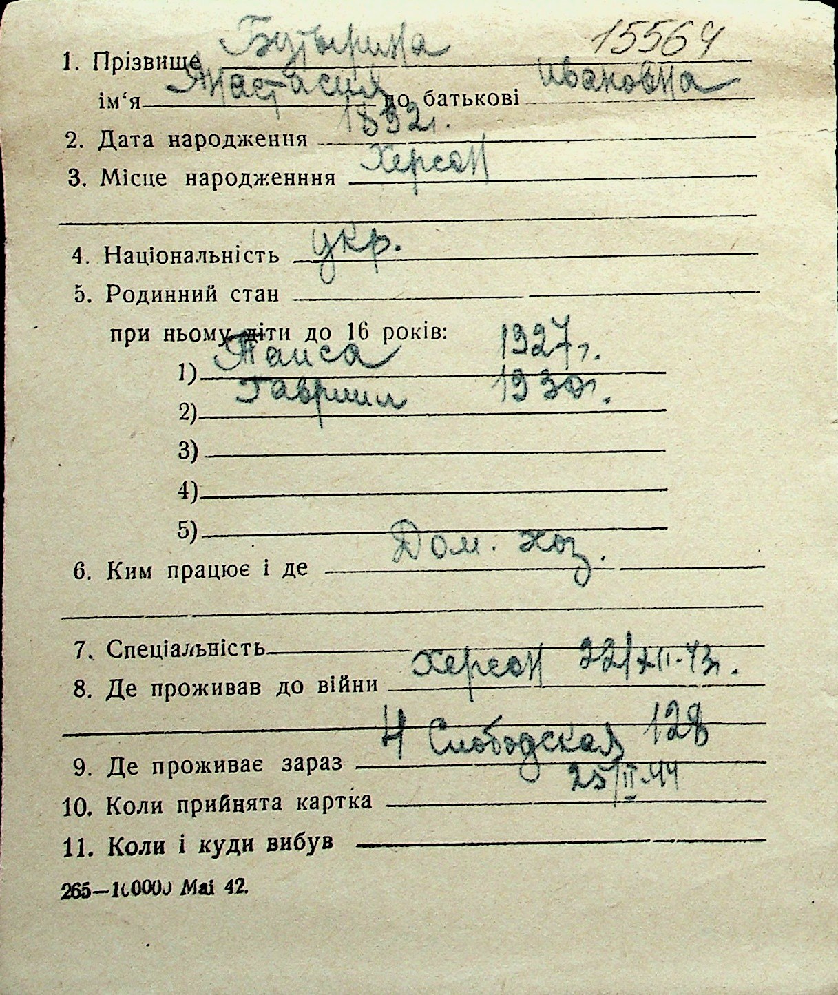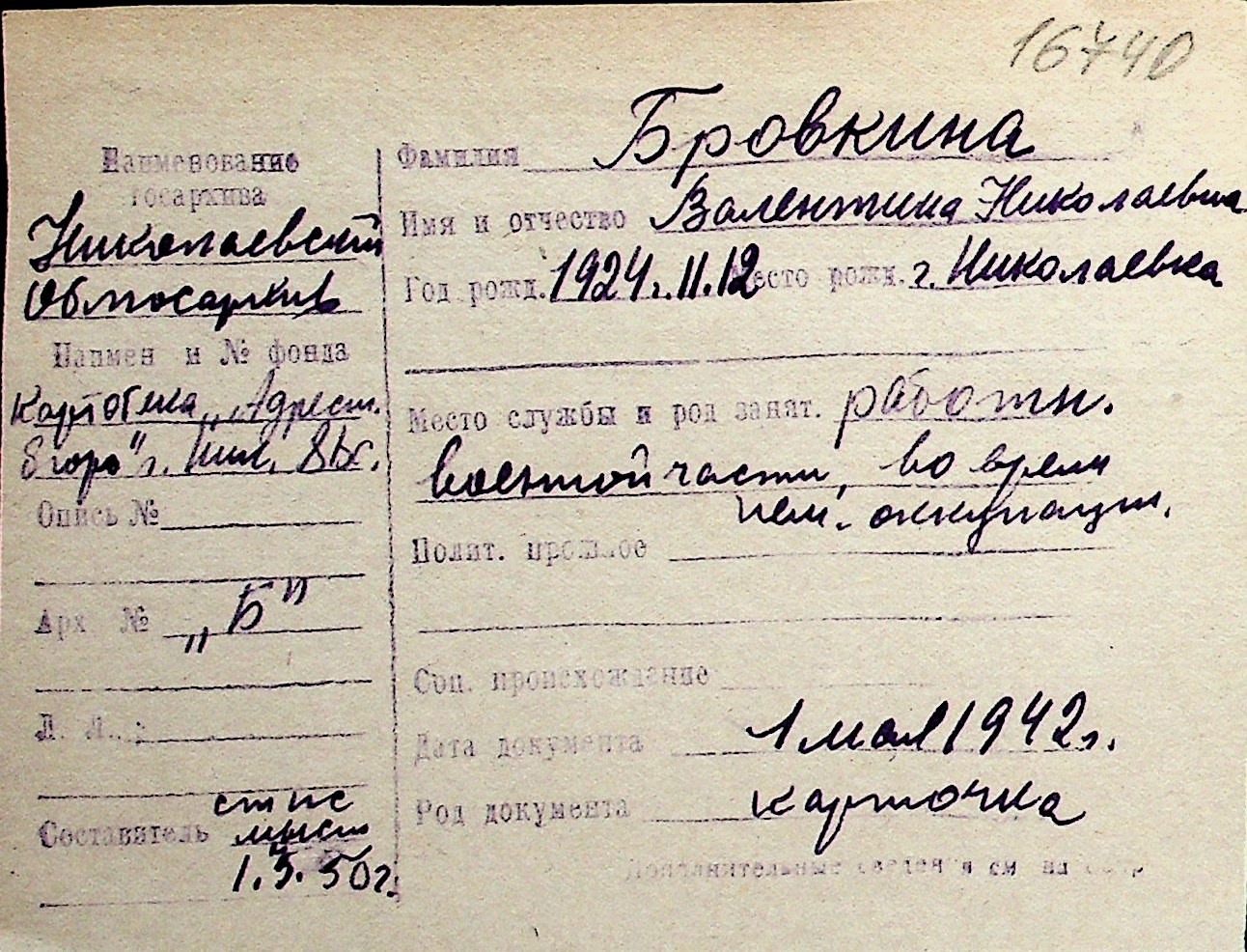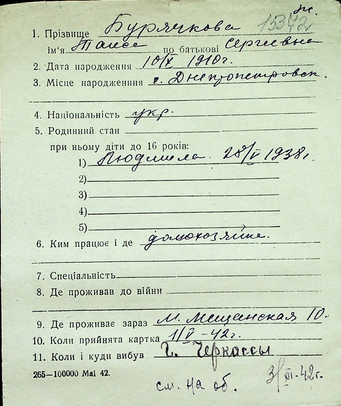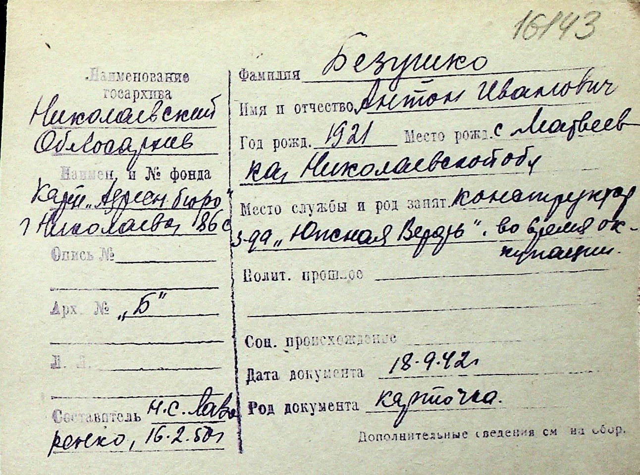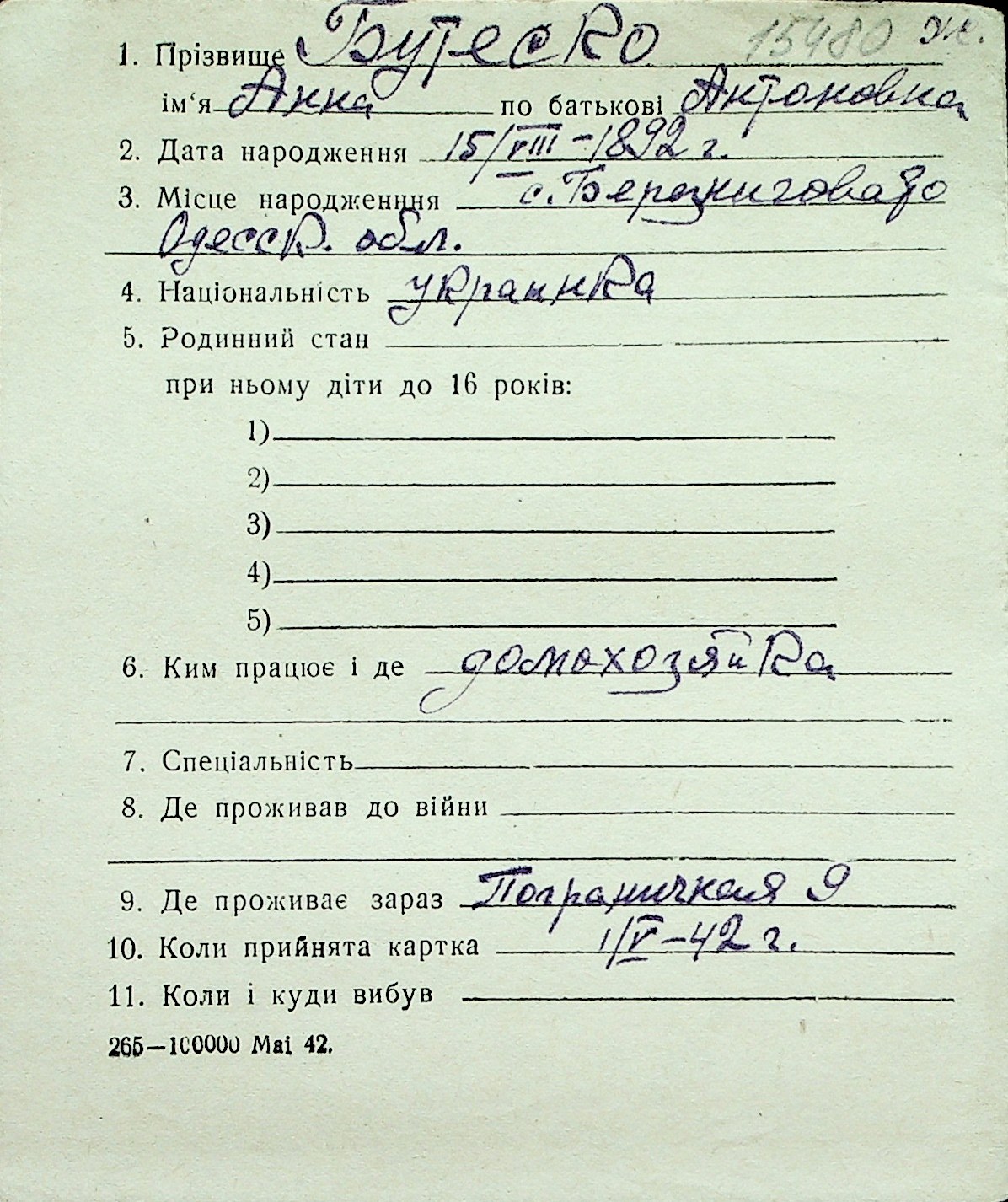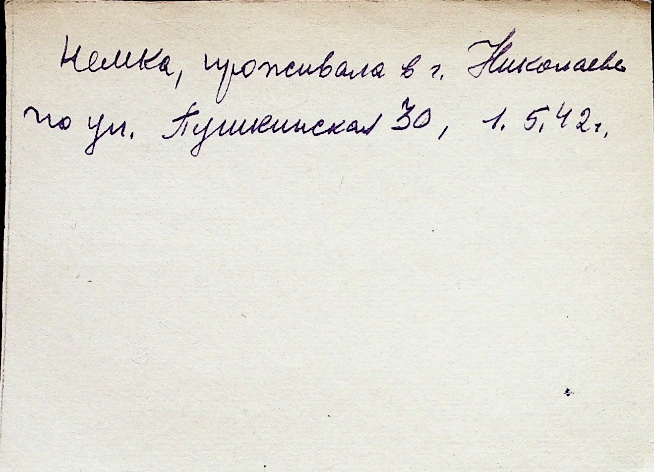 ◦ ◦ Перелік карток на осіб, які мешкали у м. Миколаїв у період окупації 1941–1944 років