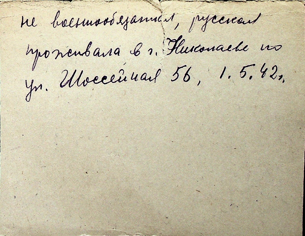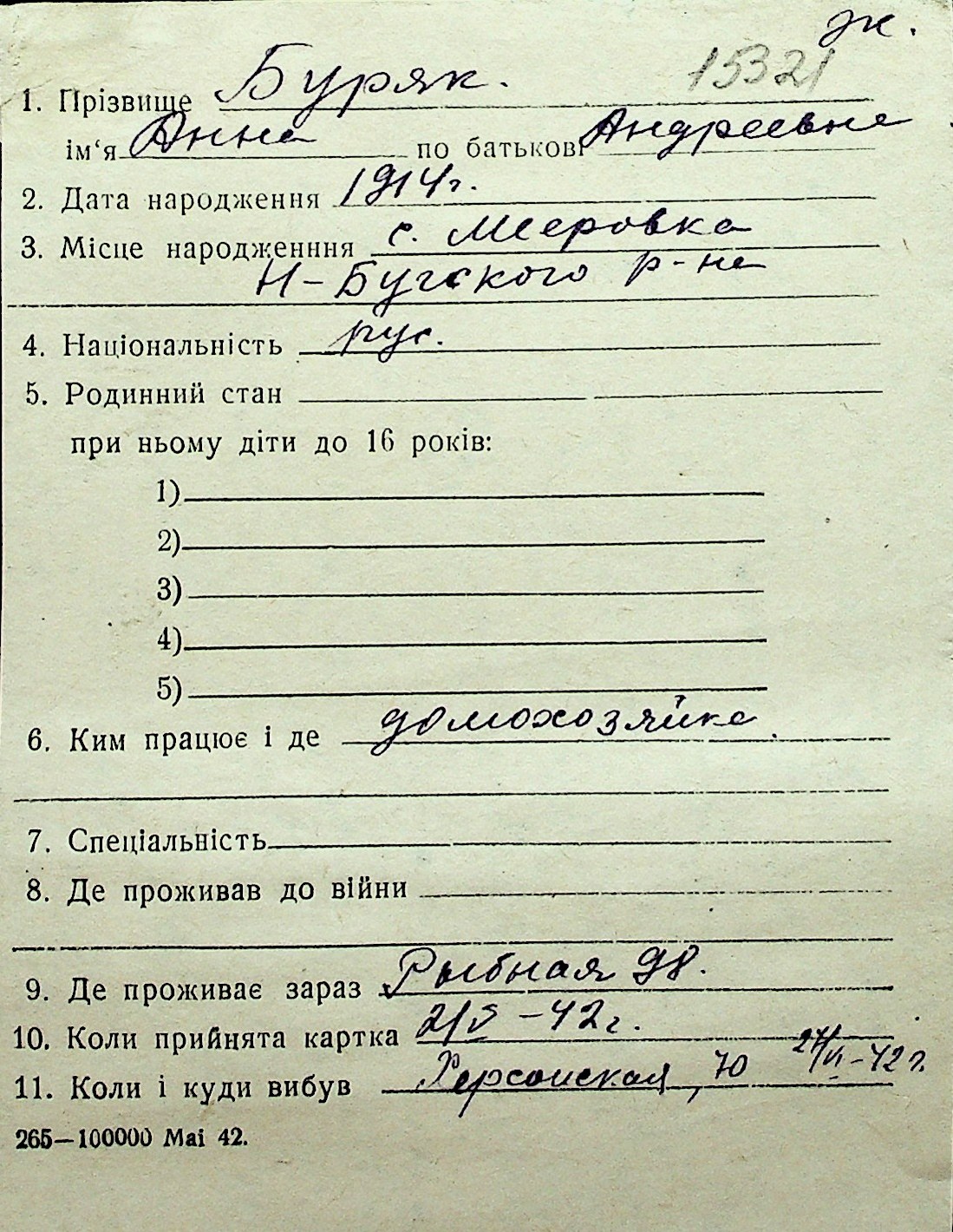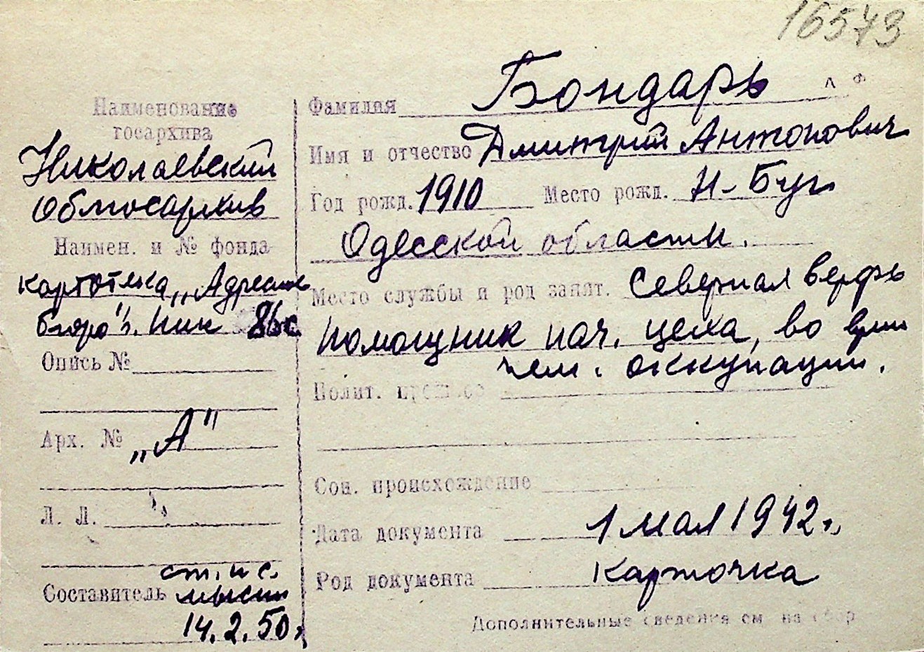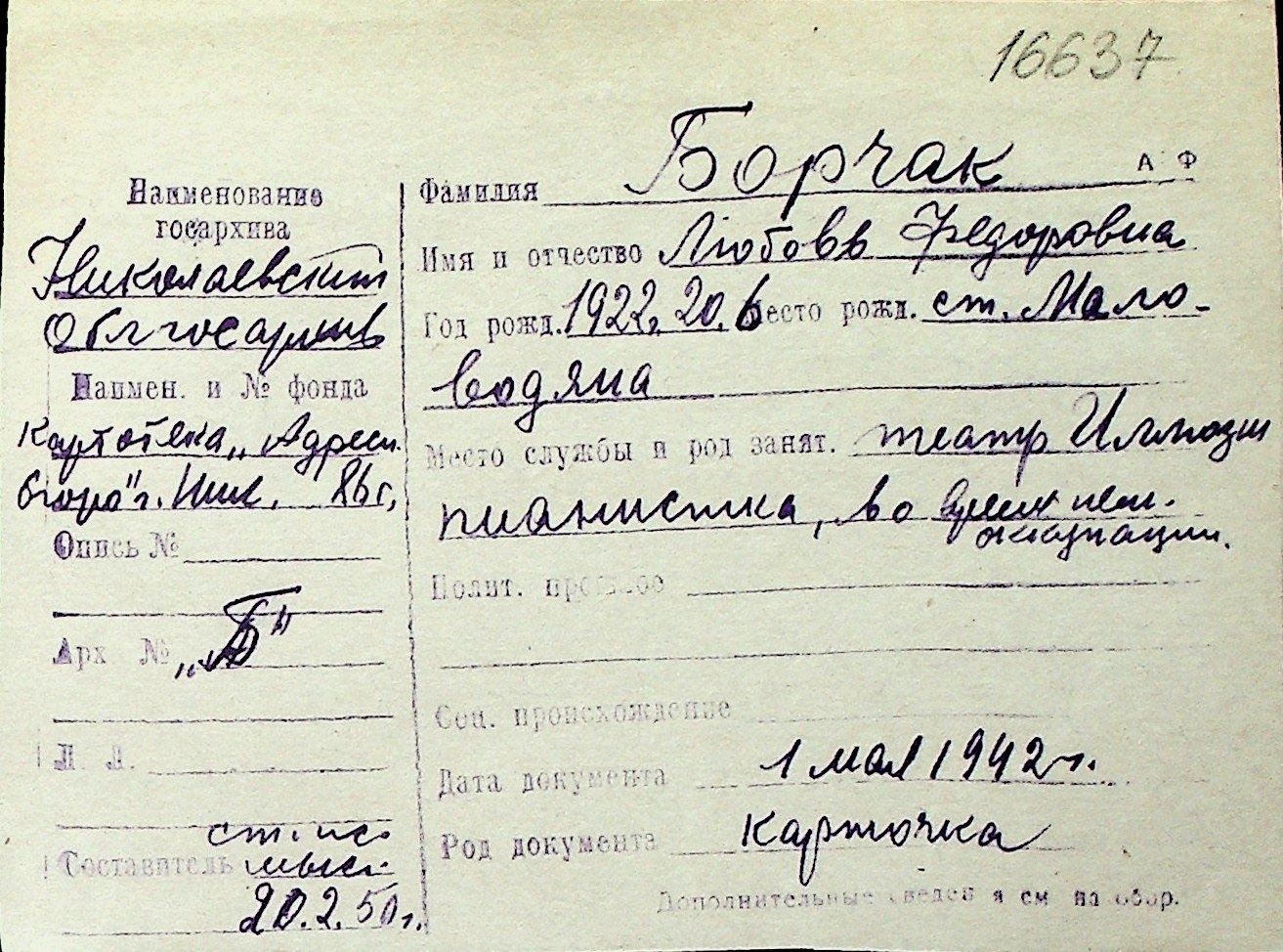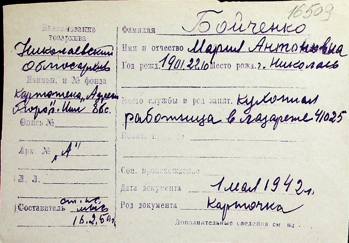 ◦ ◦ Перелік карток на осіб, які мешкали у м. Миколаїв у період окупації 1941–1944 років