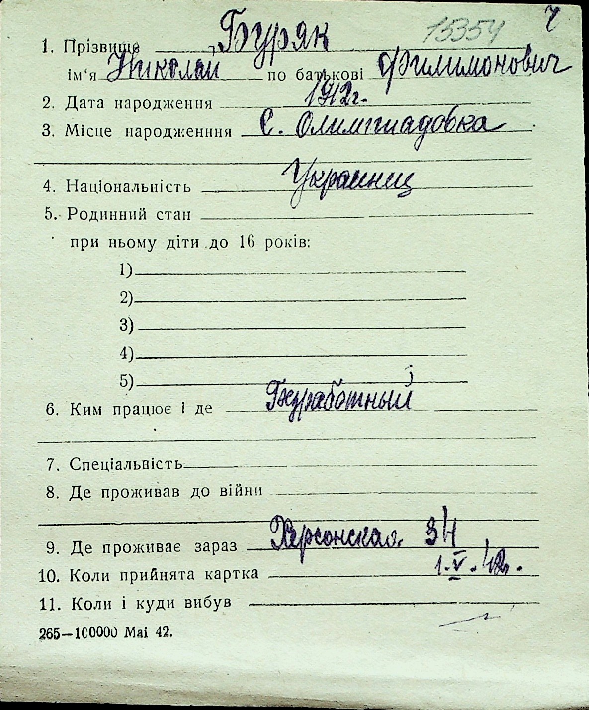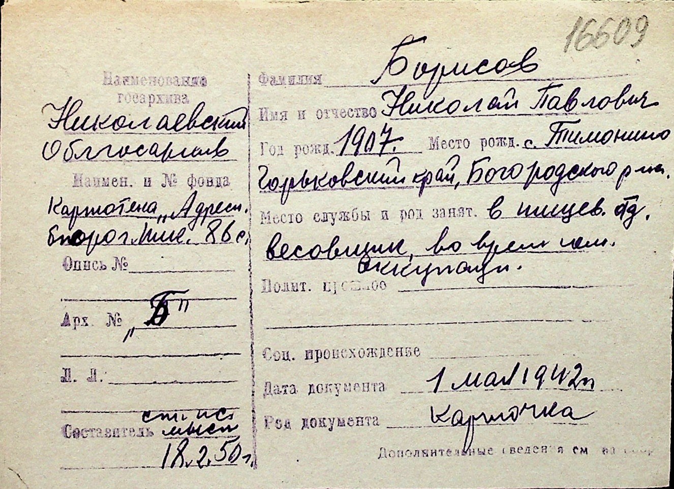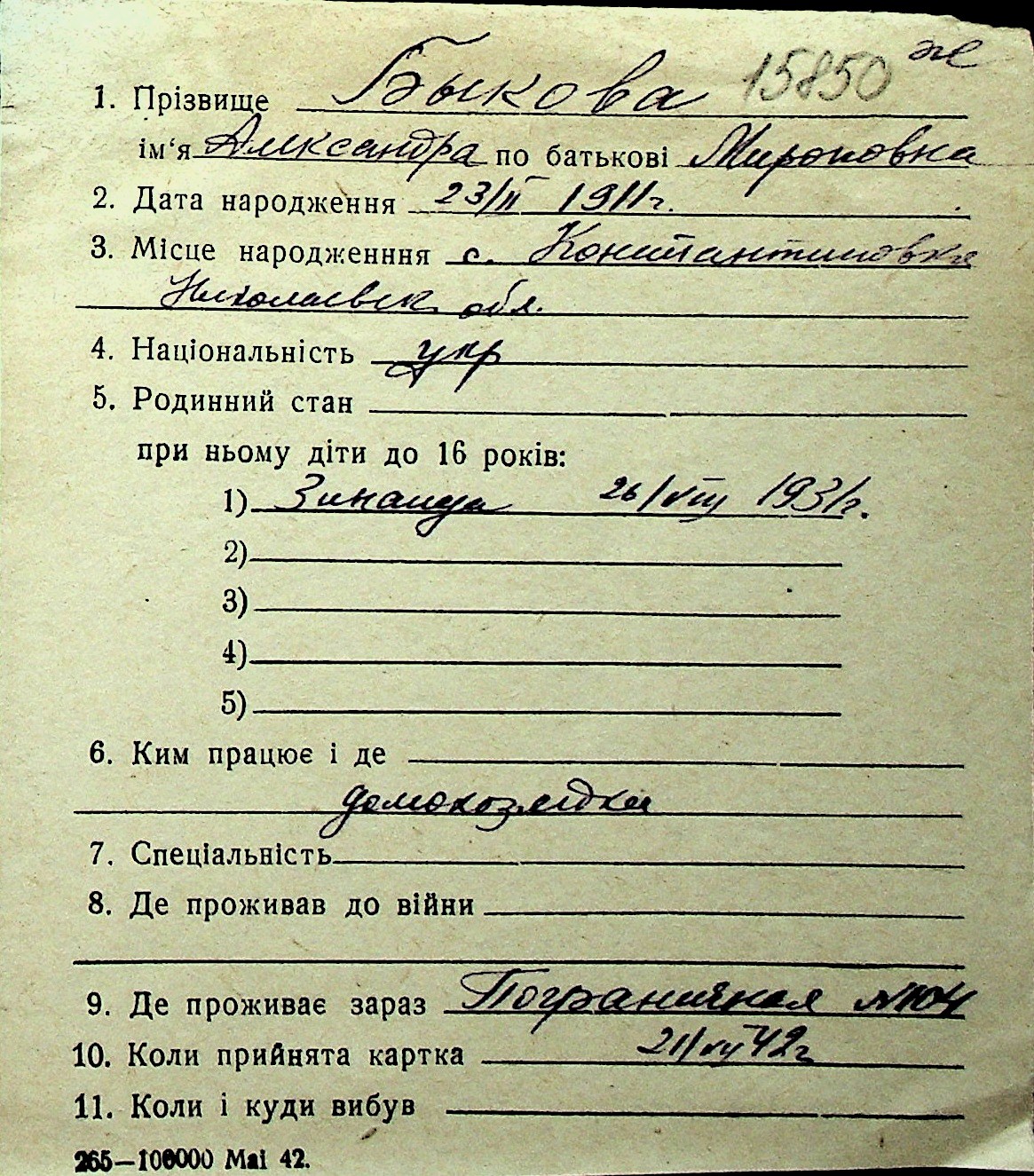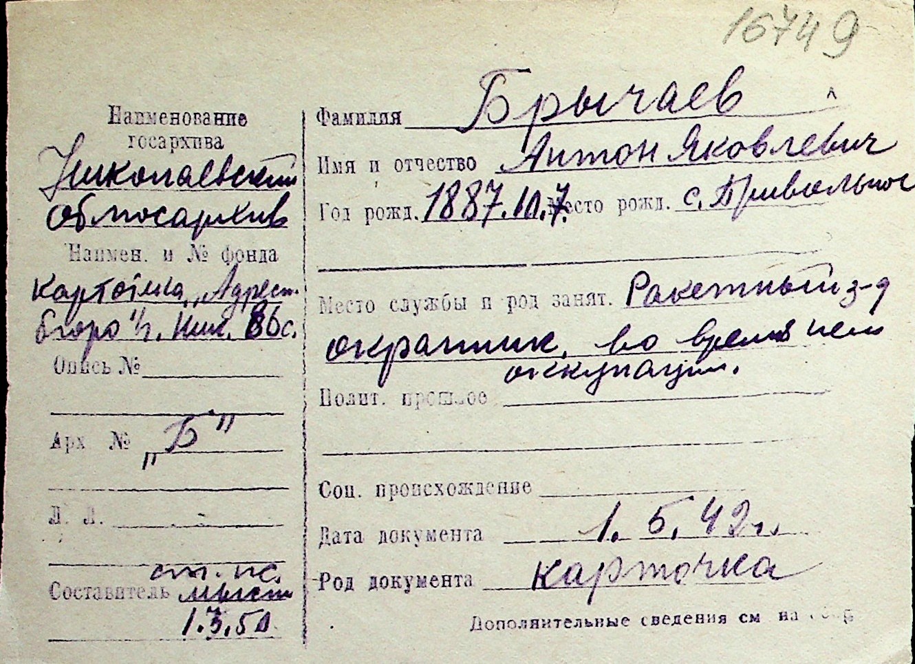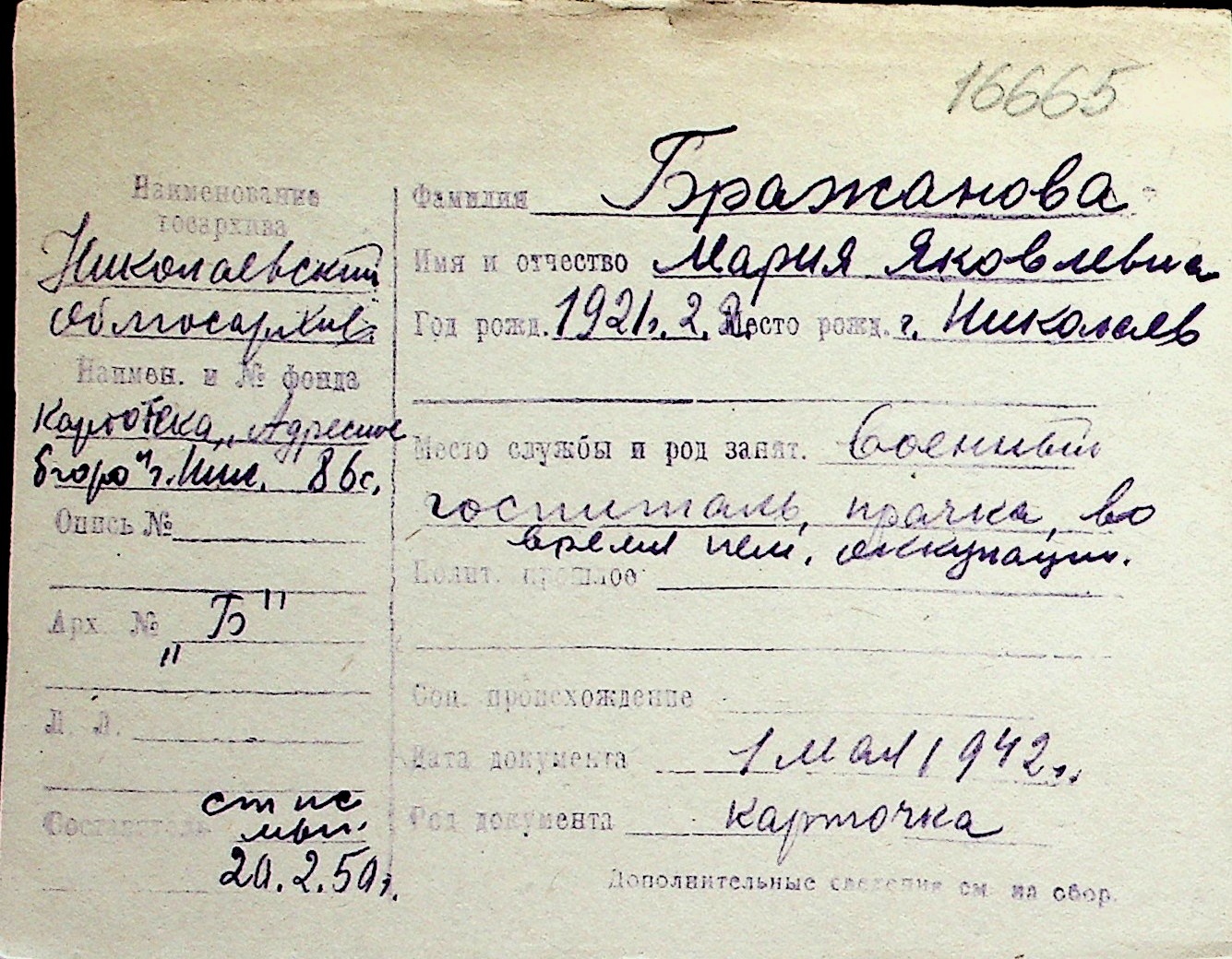 ◦ ◦ Перелік карток на осіб, які мешкали у м. Миколаїв у період окупації 1941–1944 років