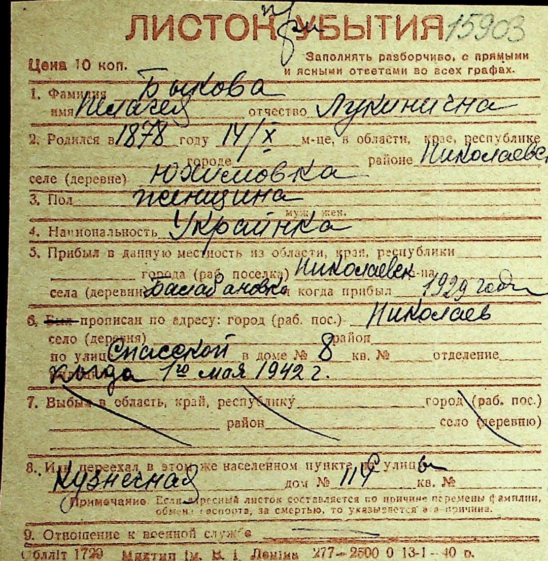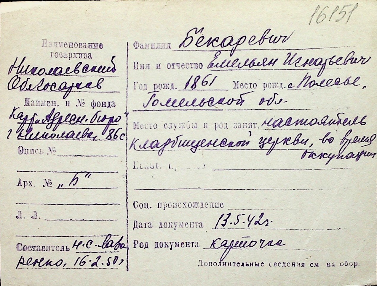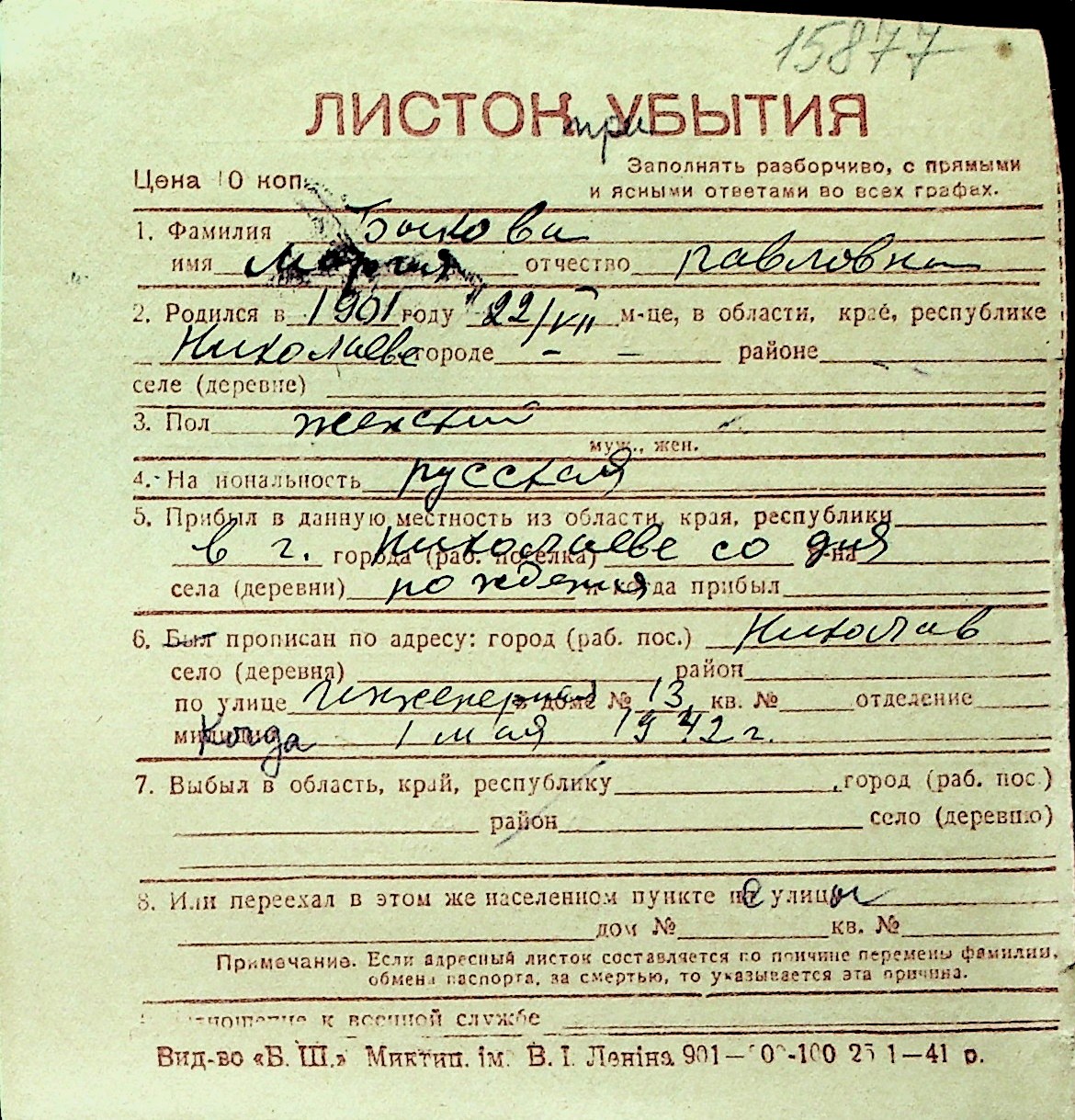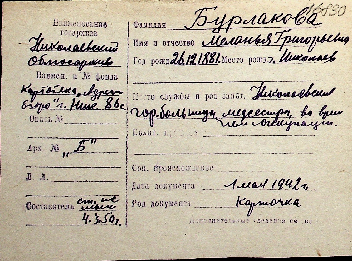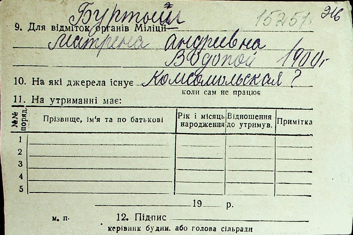 ◦ ◦ Перелік карток на осіб, які мешкали у м. Миколаїв у період окупації 1941–1944 років