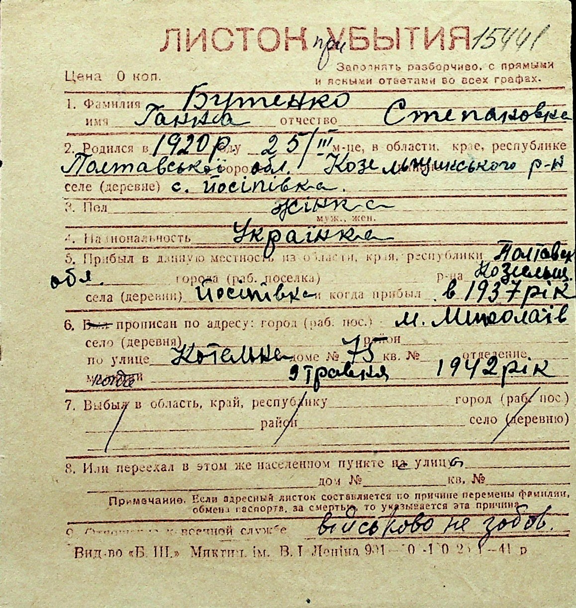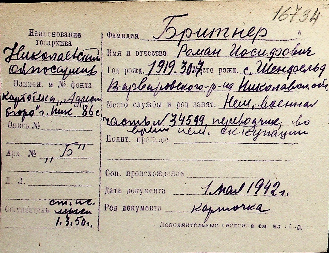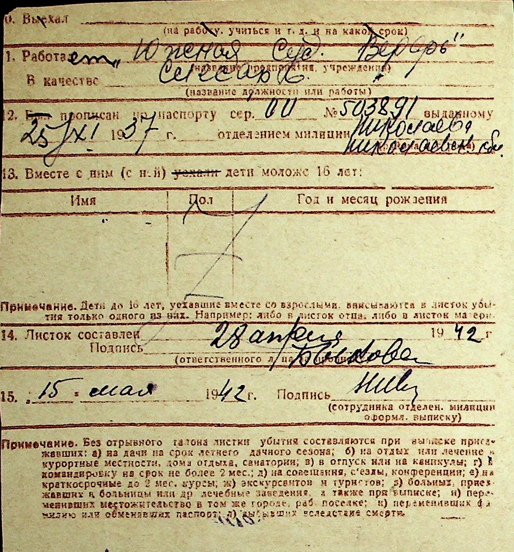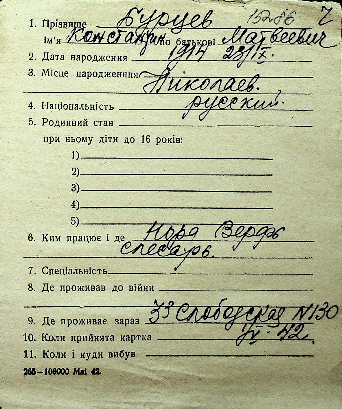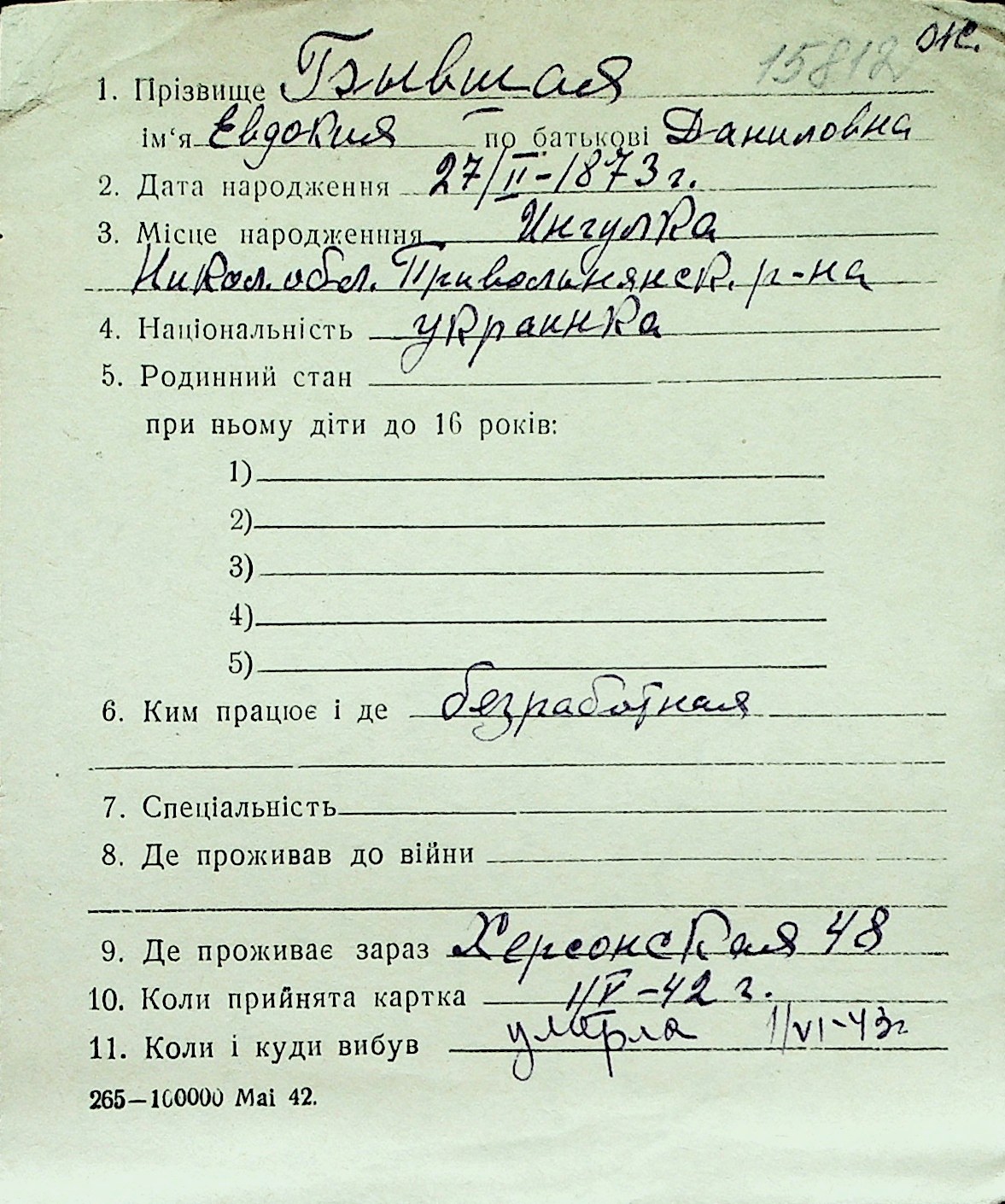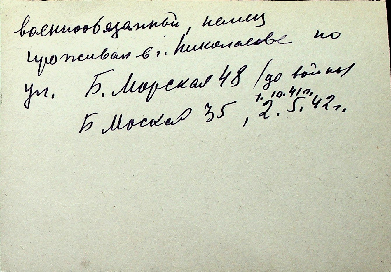 ◦ ◦ Перелік карток на осіб, які мешкали у м. Миколаїв у період окупації 1941–1944 років