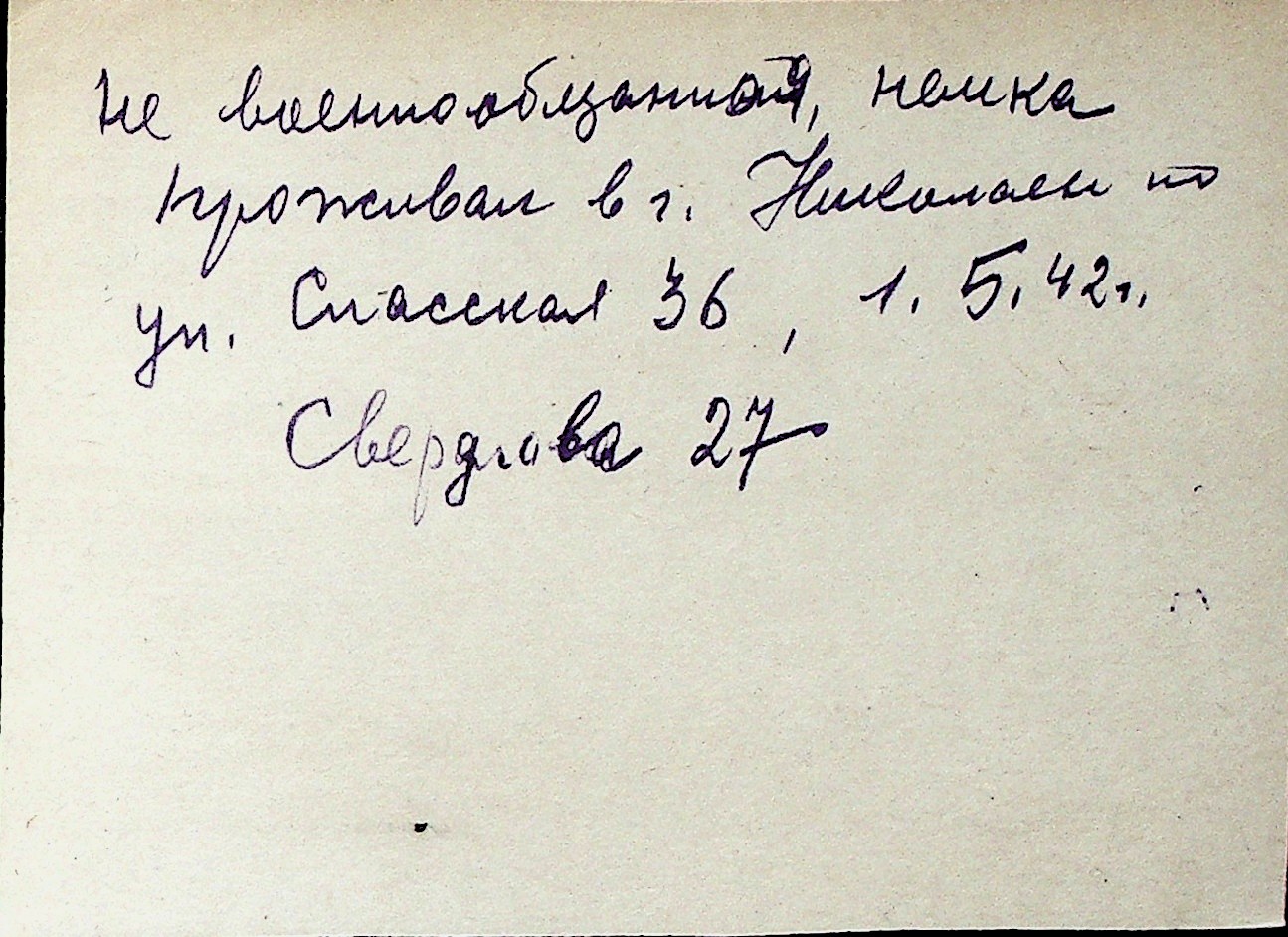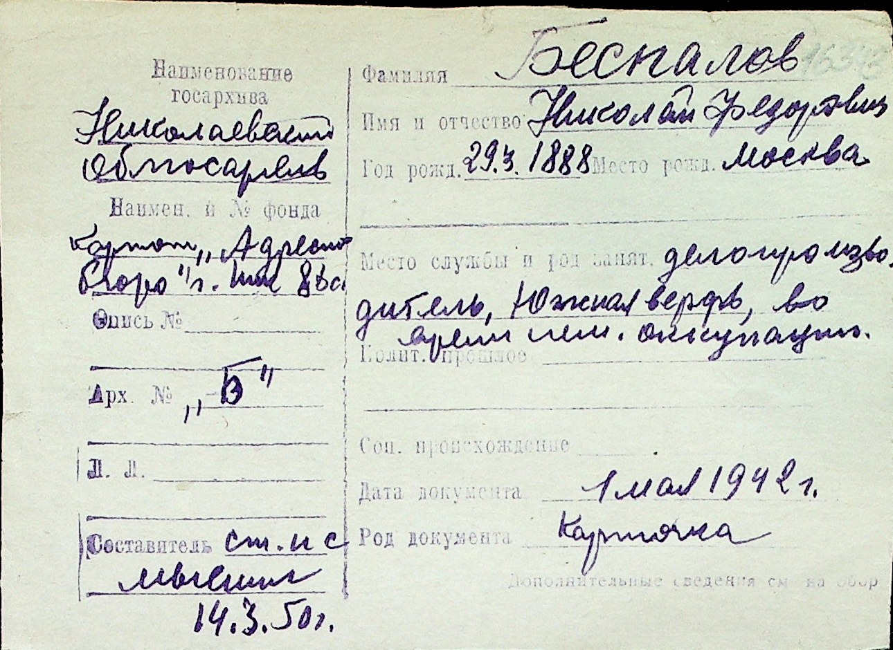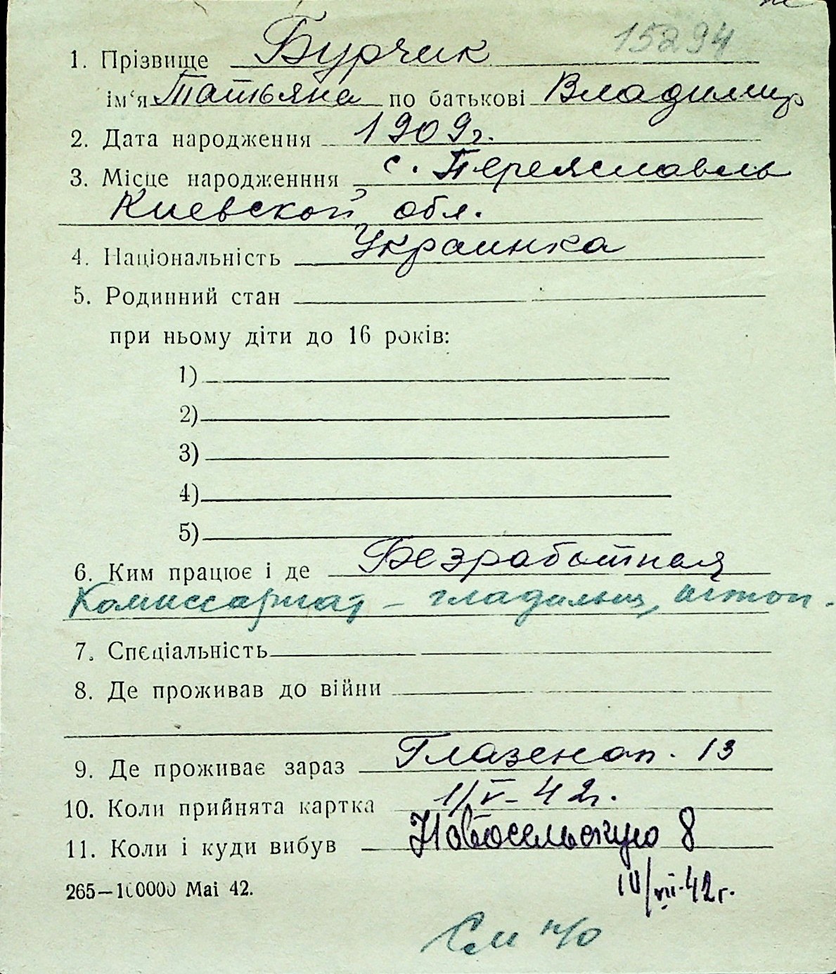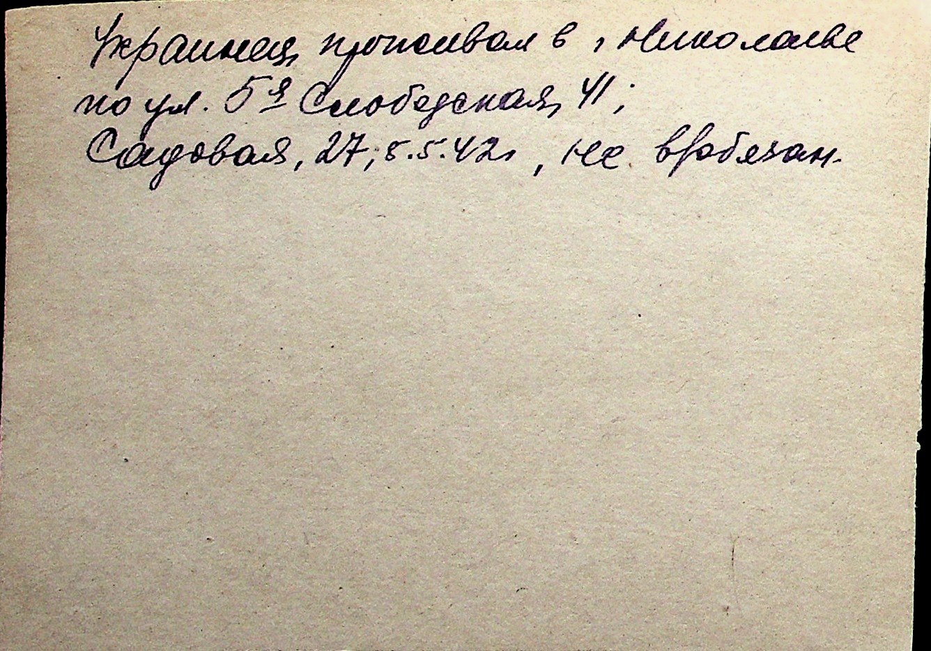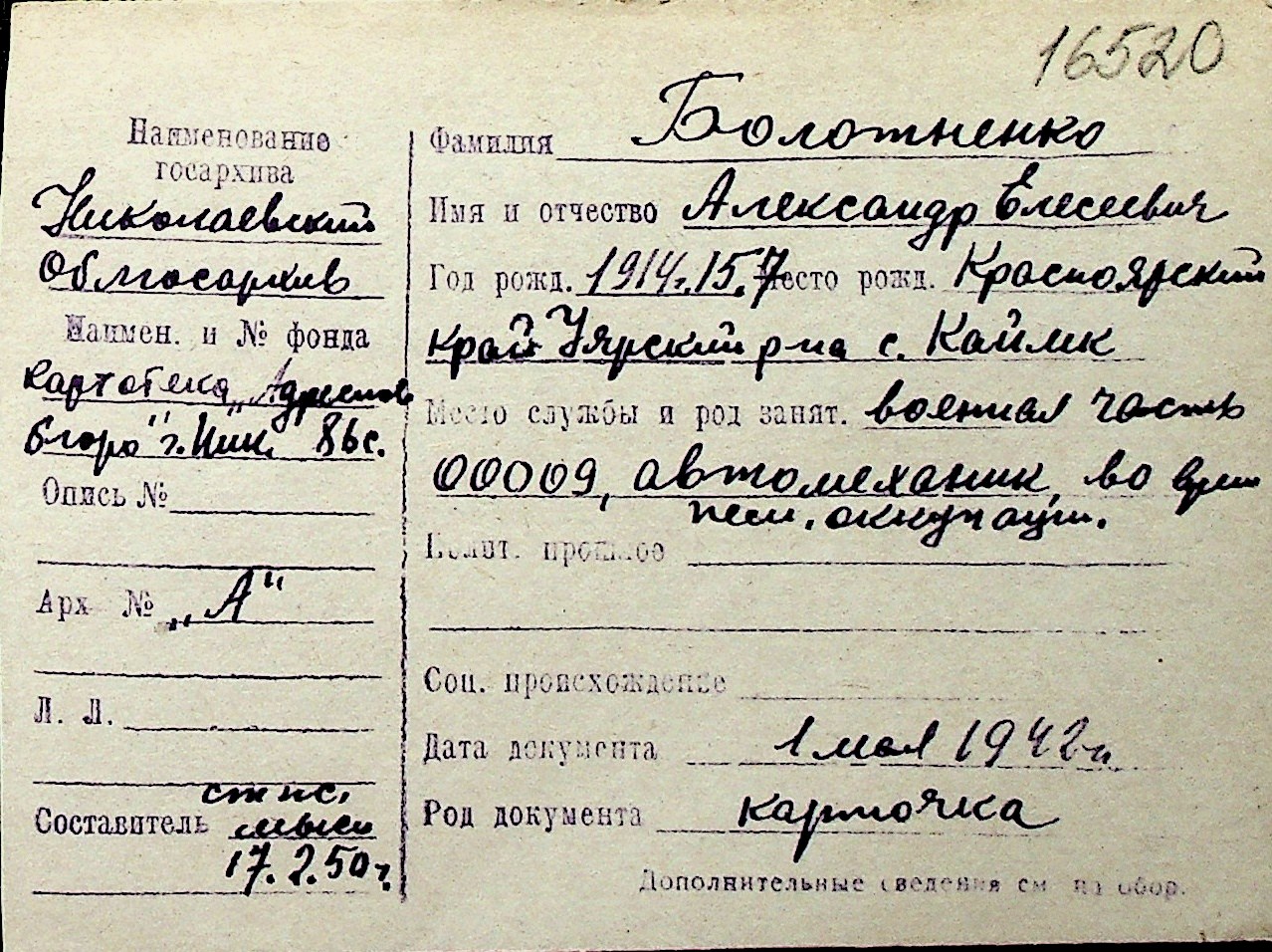 ◦ ◦ Перелік карток на осіб, які мешкали у м. Миколаїв у період окупації 1941–1944 років