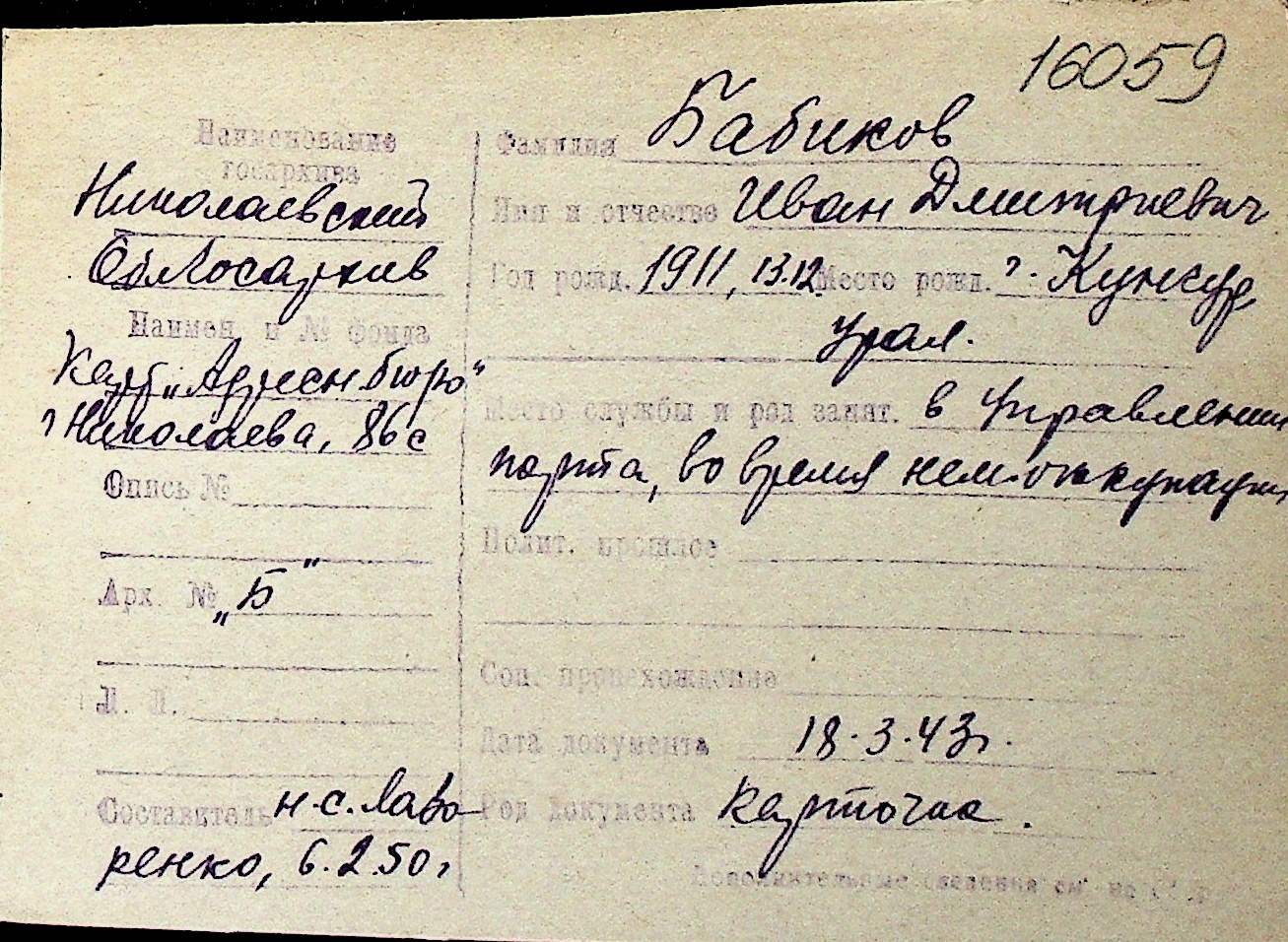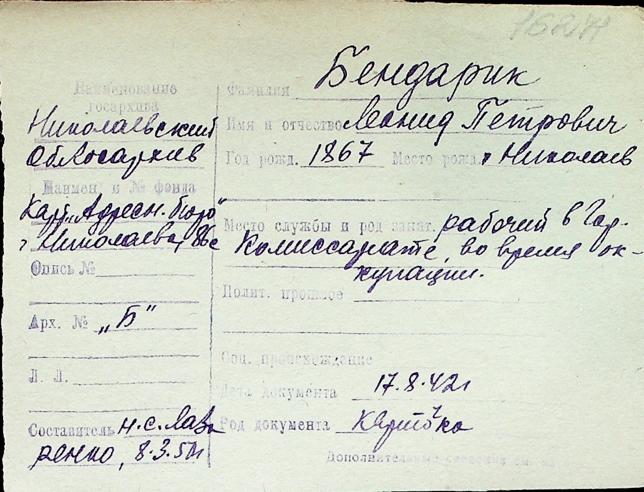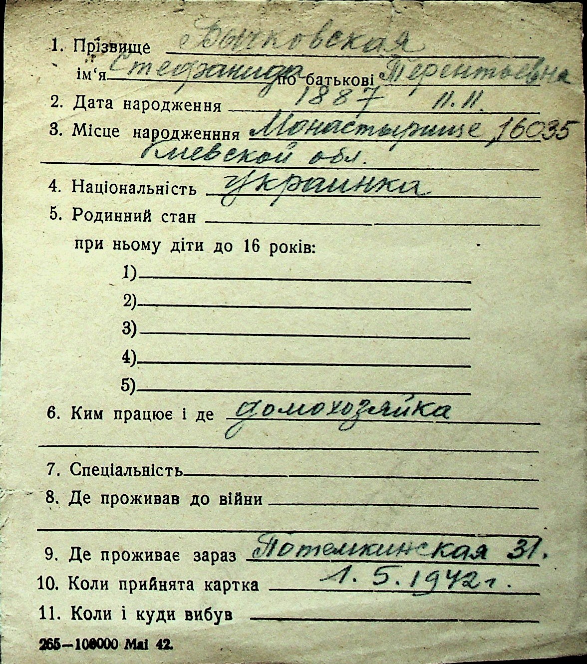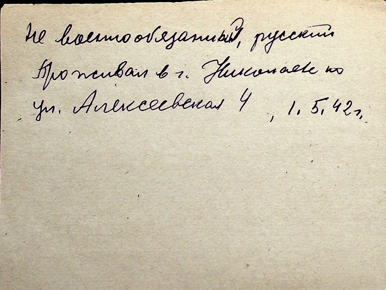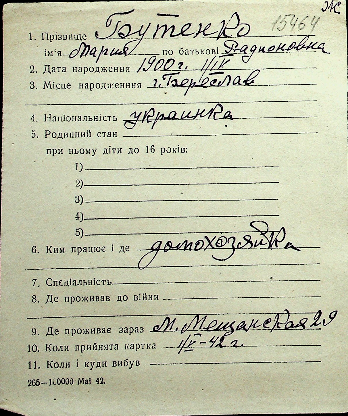 ◦ ◦ Перелік карток на осіб, які мешкали у м. Миколаїв у період окупації 1941–1944 років