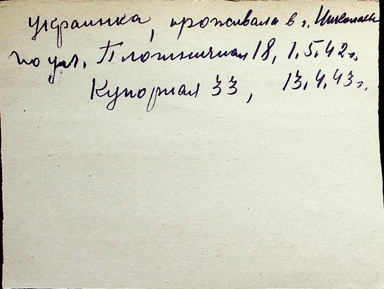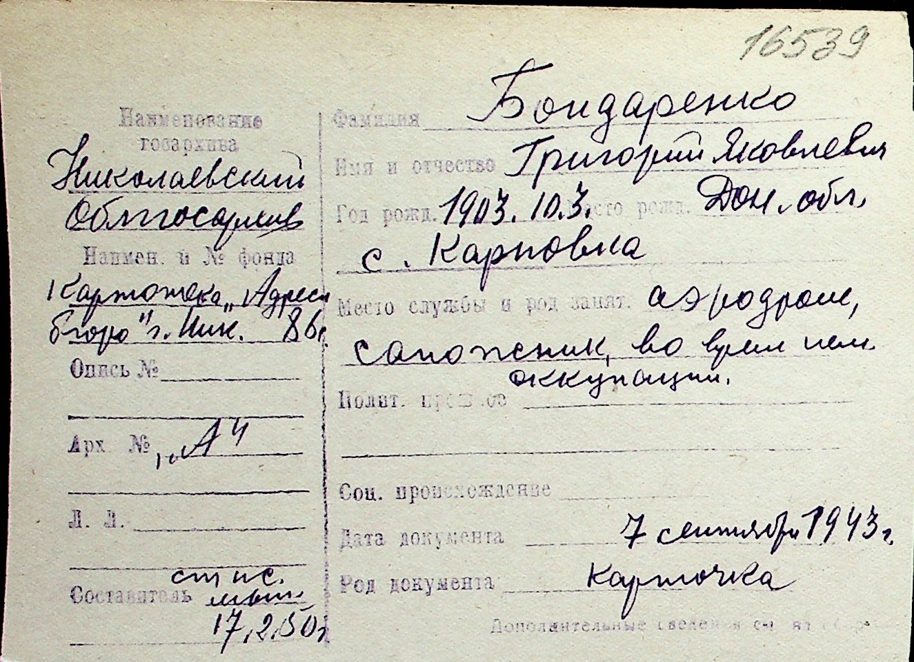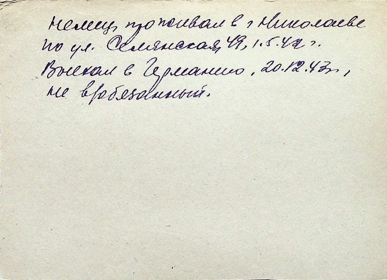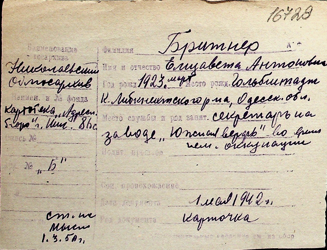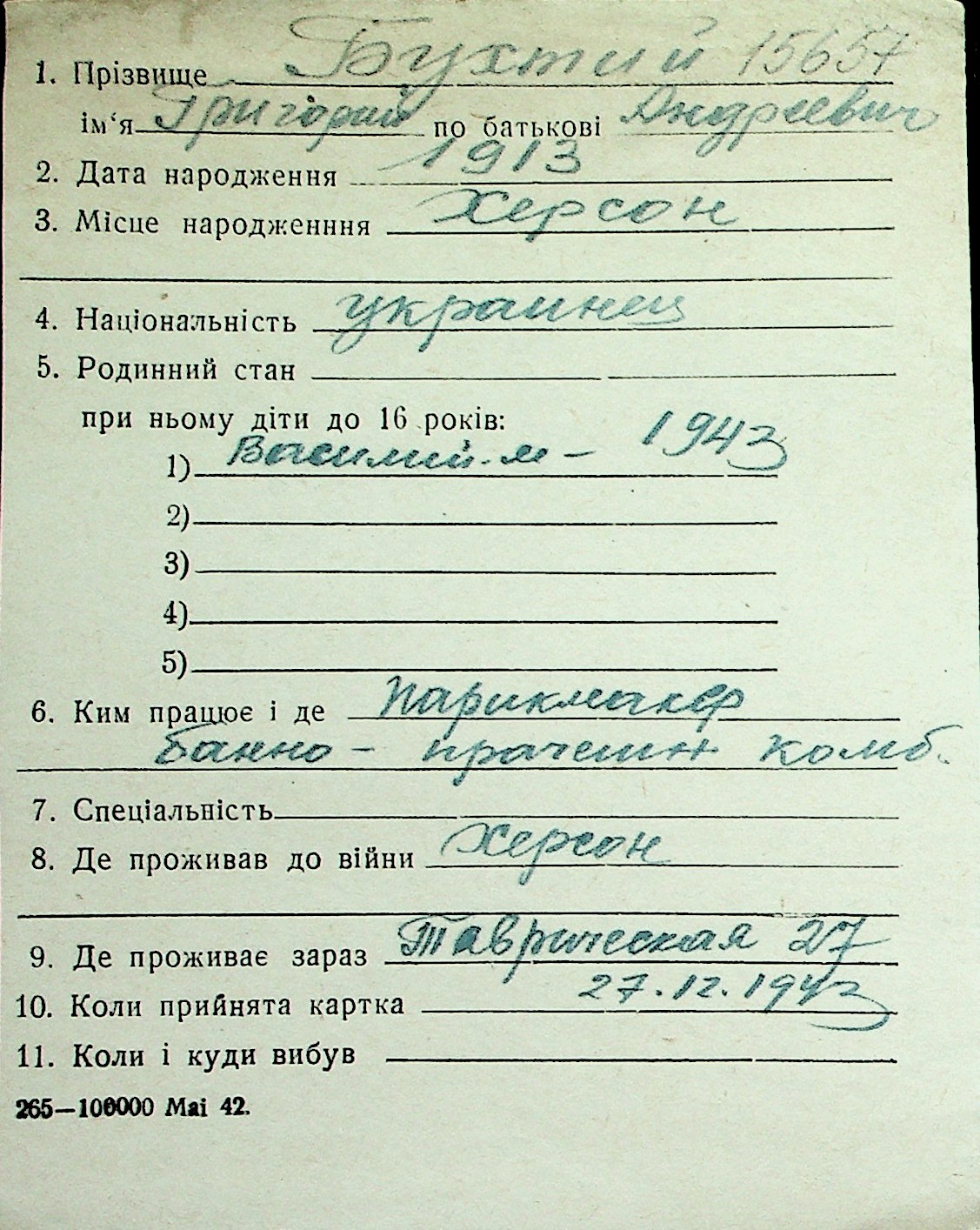 ◦ ◦ Перелік карток на осіб, які мешкали у м. Миколаїв у період окупації 1941–1944 років