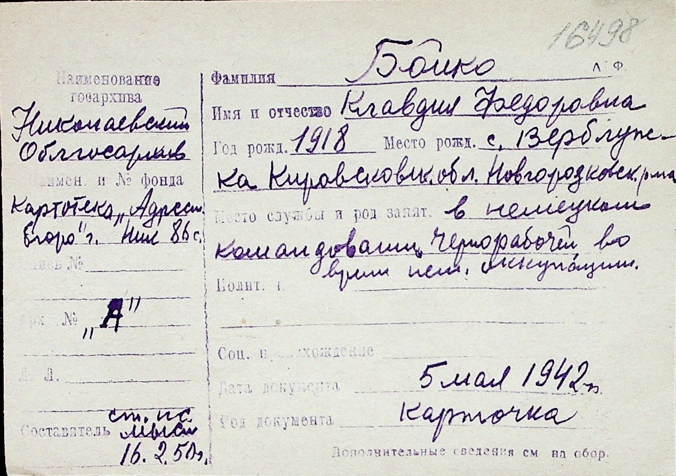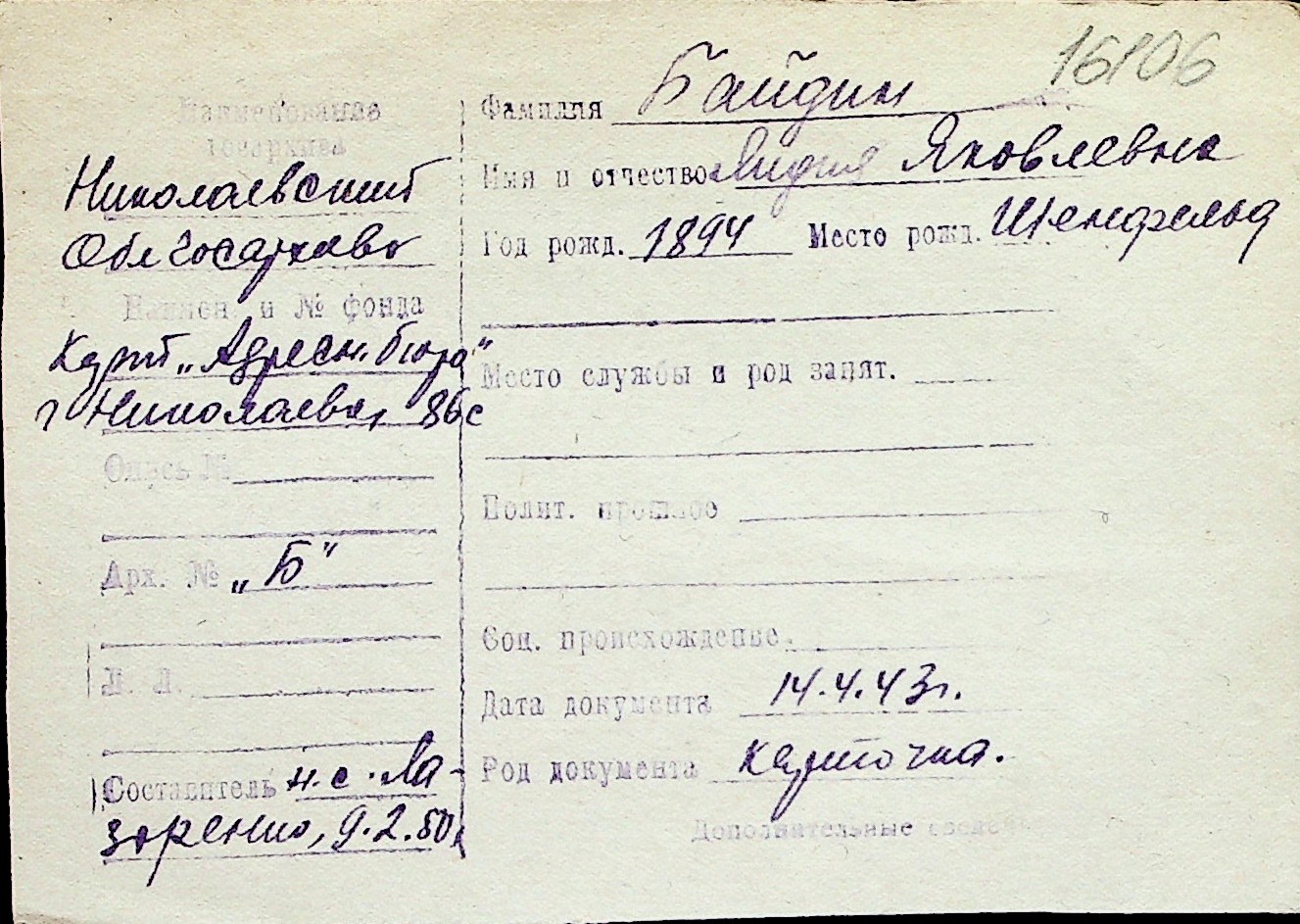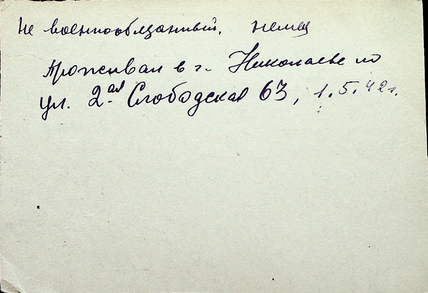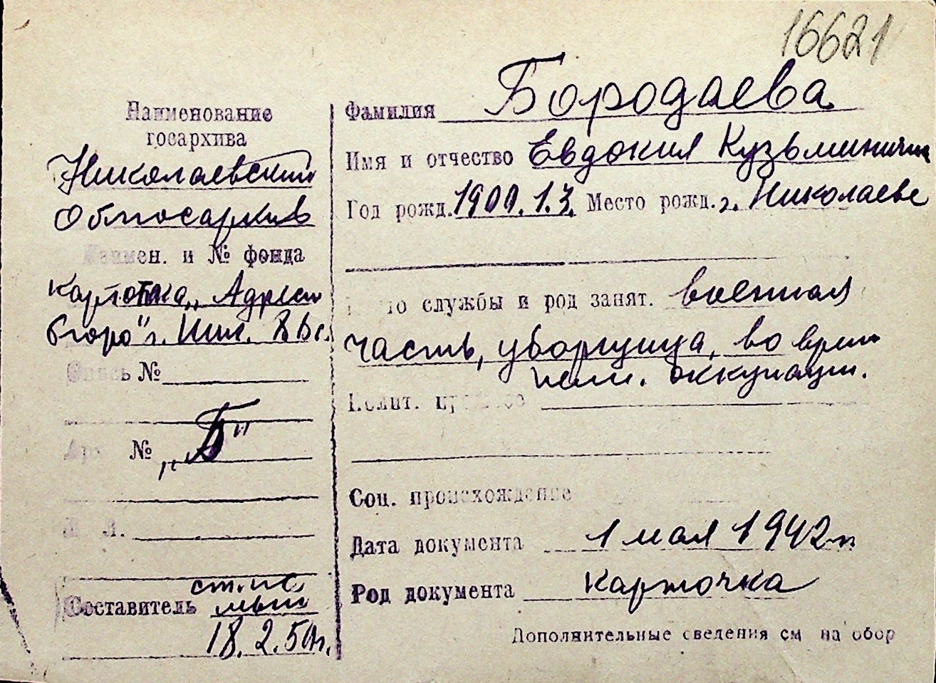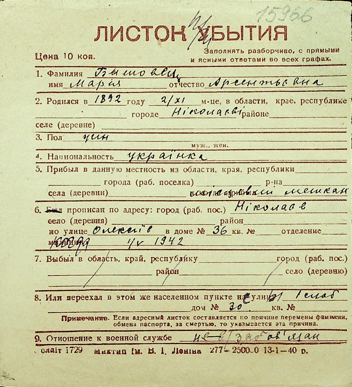 ◦ ◦ Перелік карток на осіб, які мешкали у м. Миколаїв у період окупації 1941–1944 років