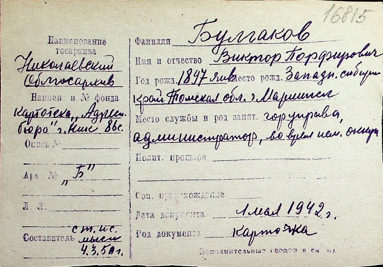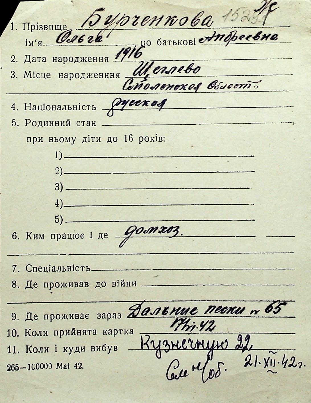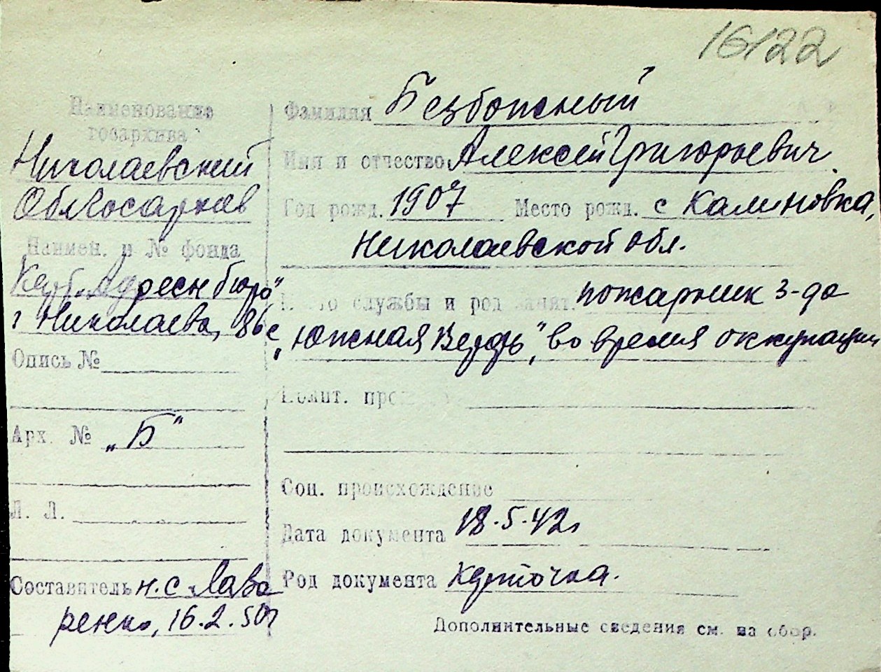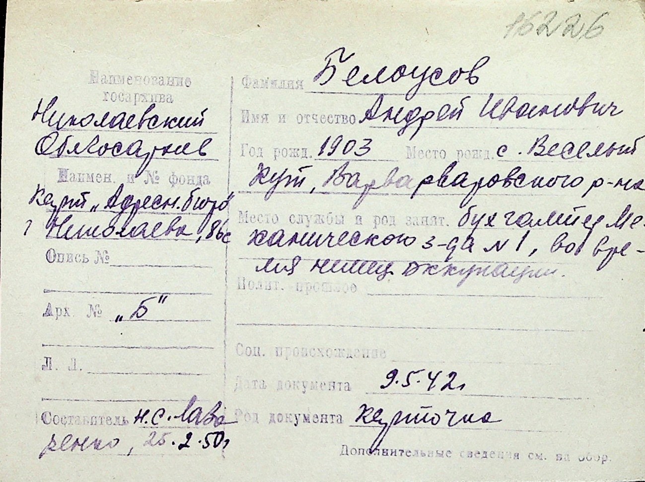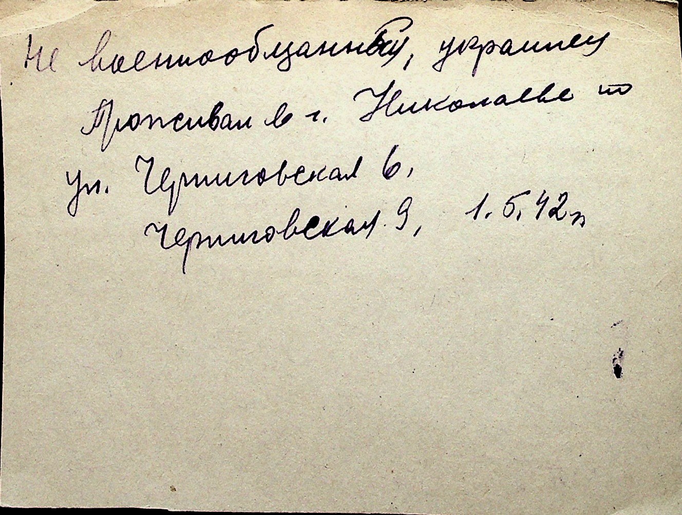 ◦ ◦ Перелік карток на осіб, які мешкали у м. Миколаїв у період окупації 1941–1944 років