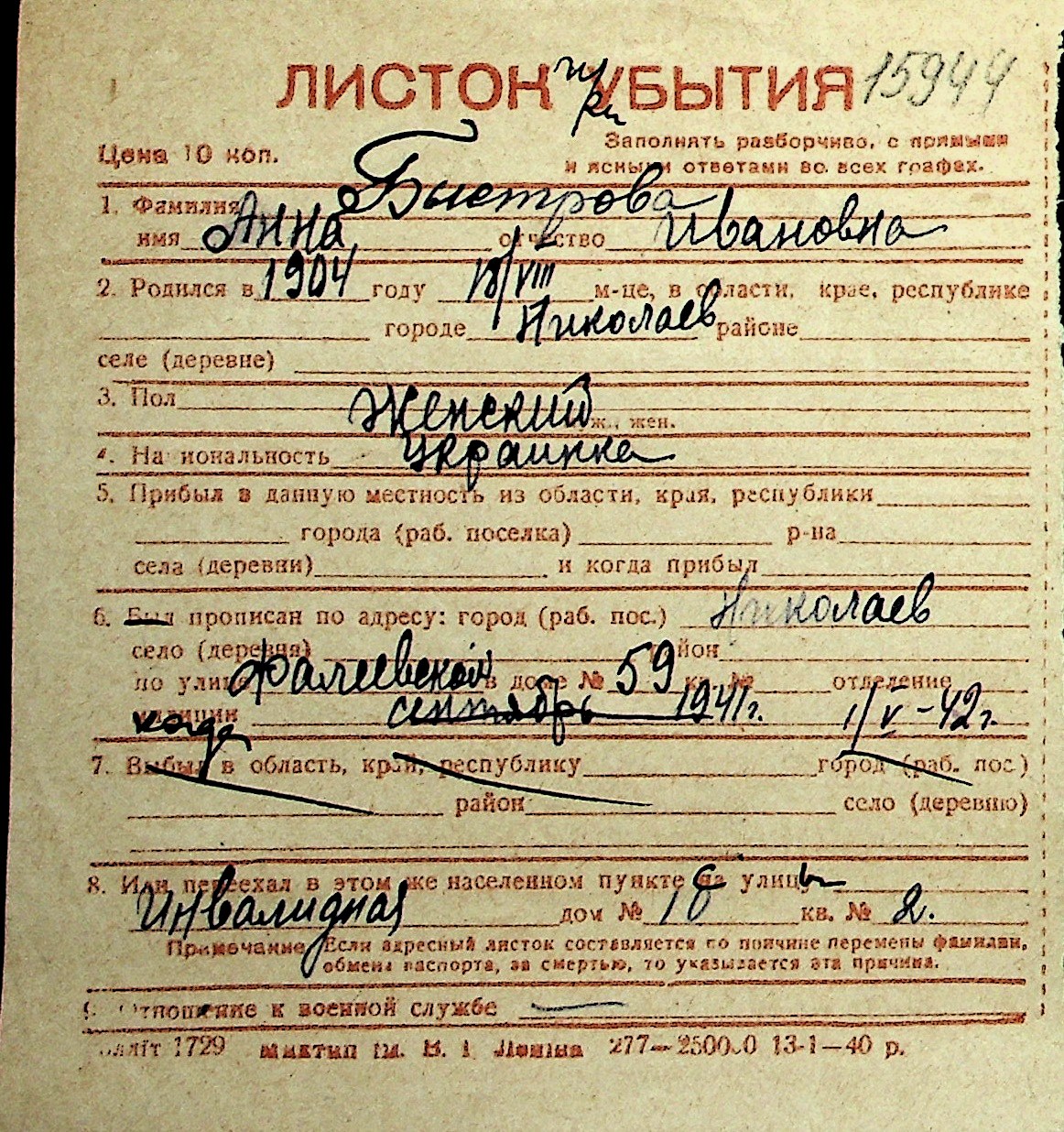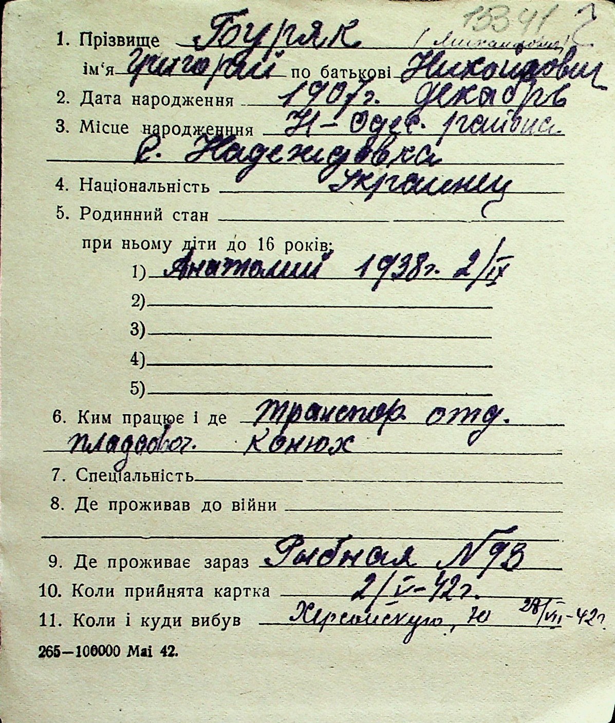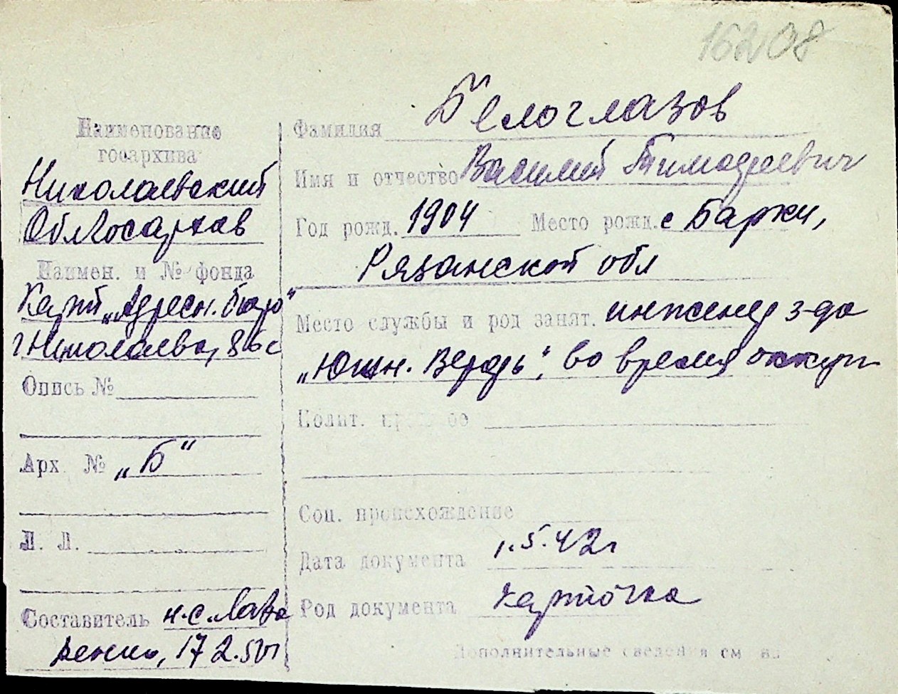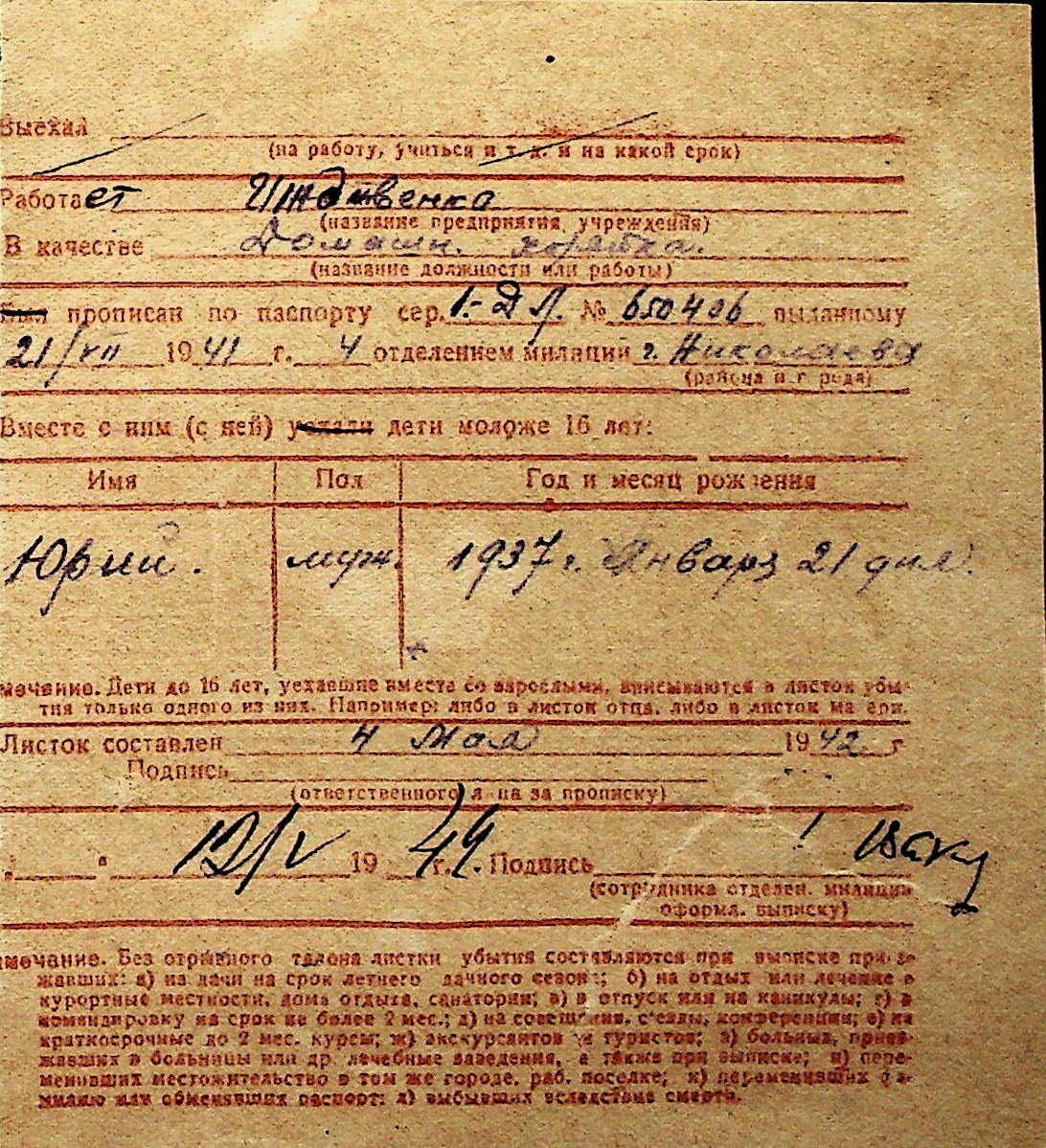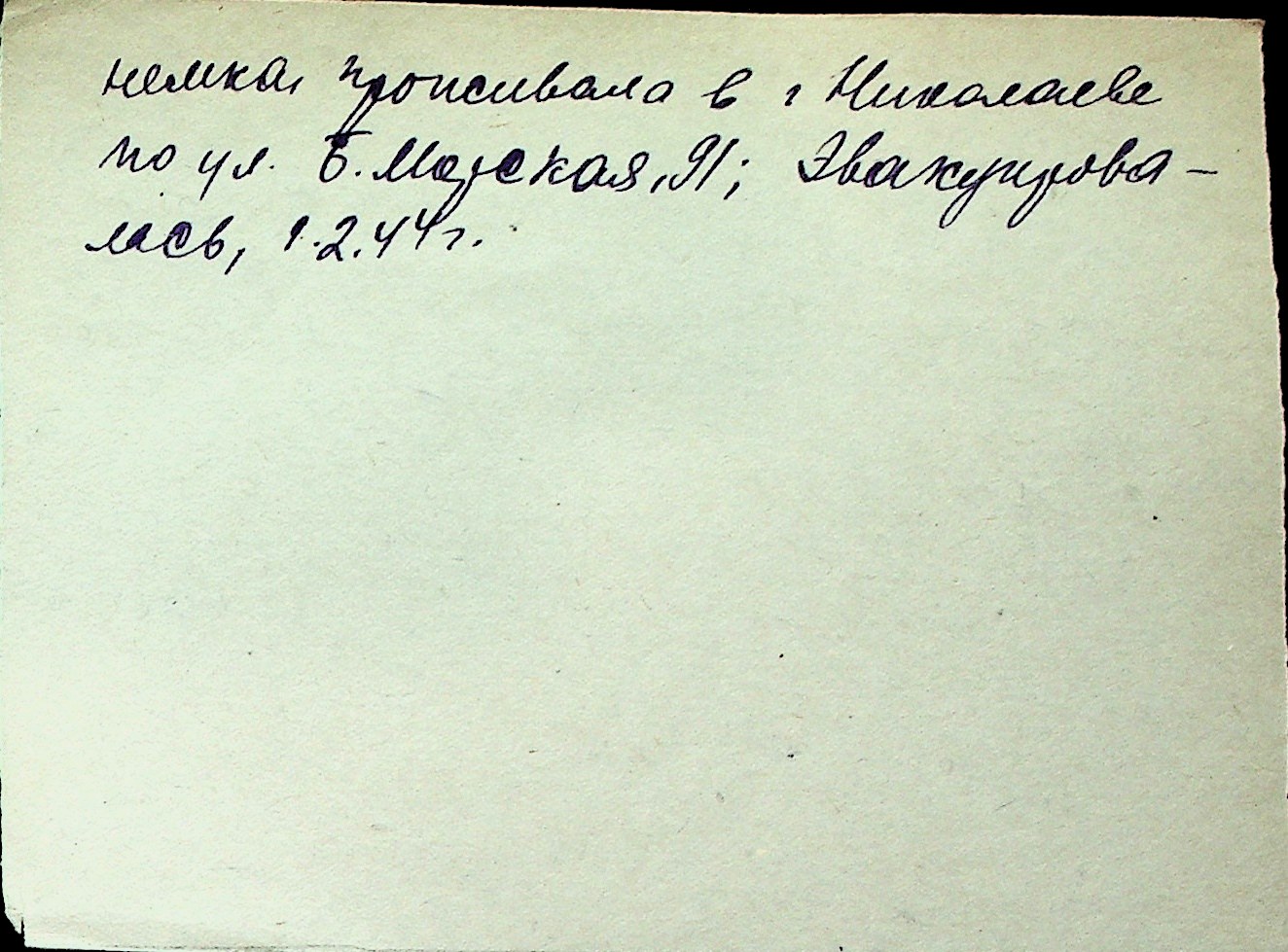 ◦ ◦ Перелік карток на осіб, які мешкали у м. Миколаїв у період окупації 1941–1944 років