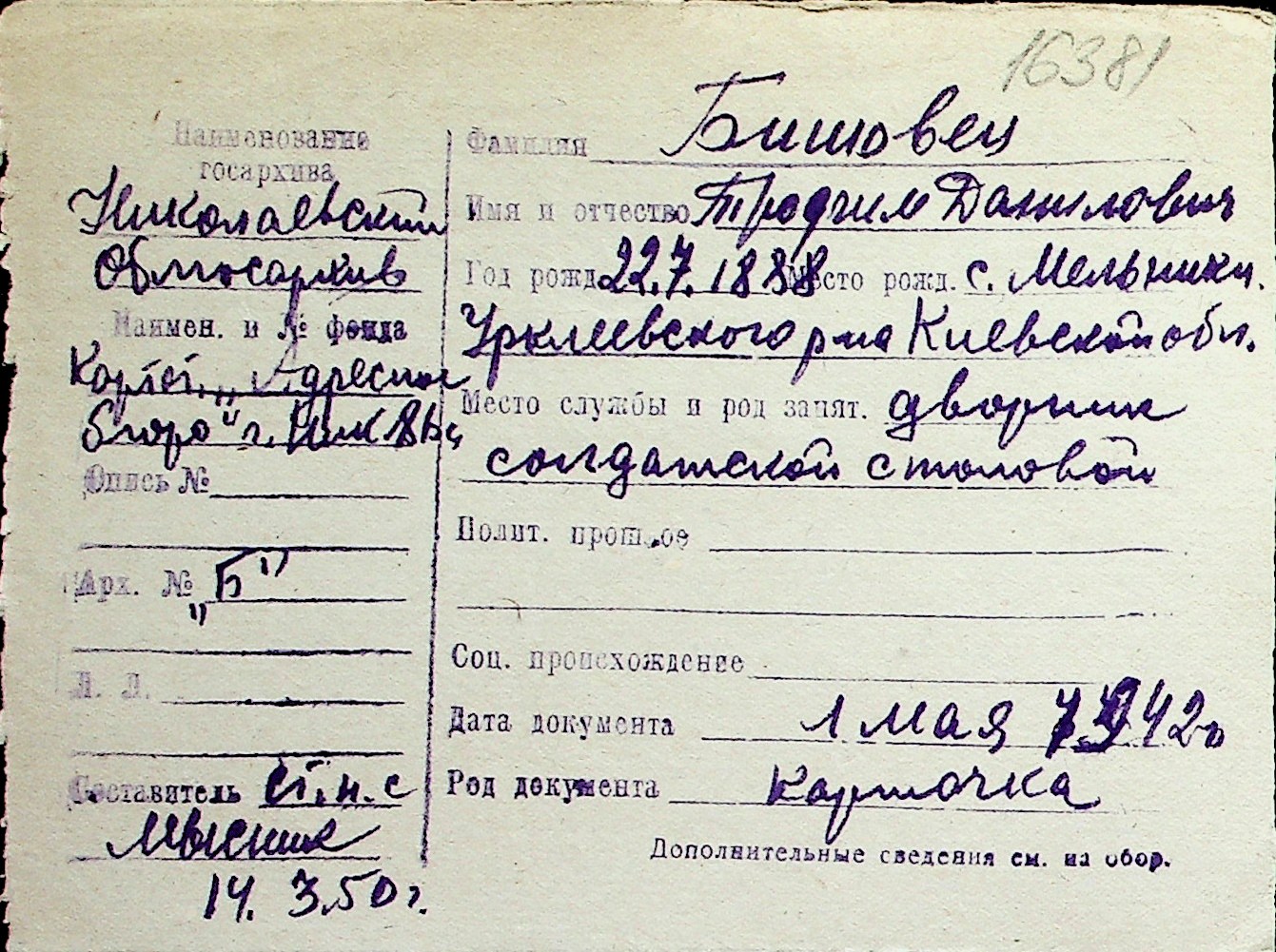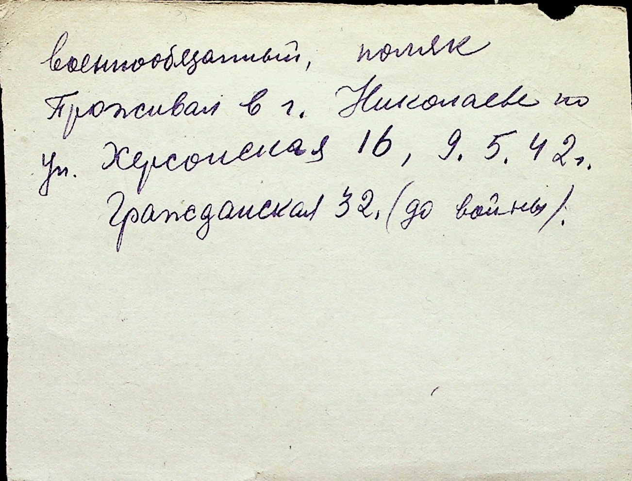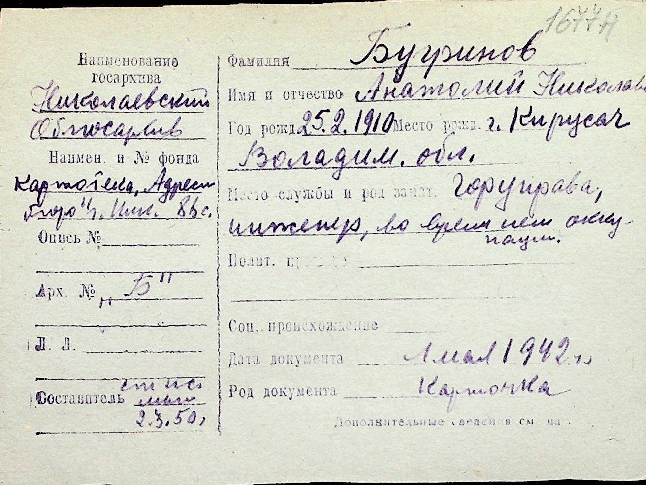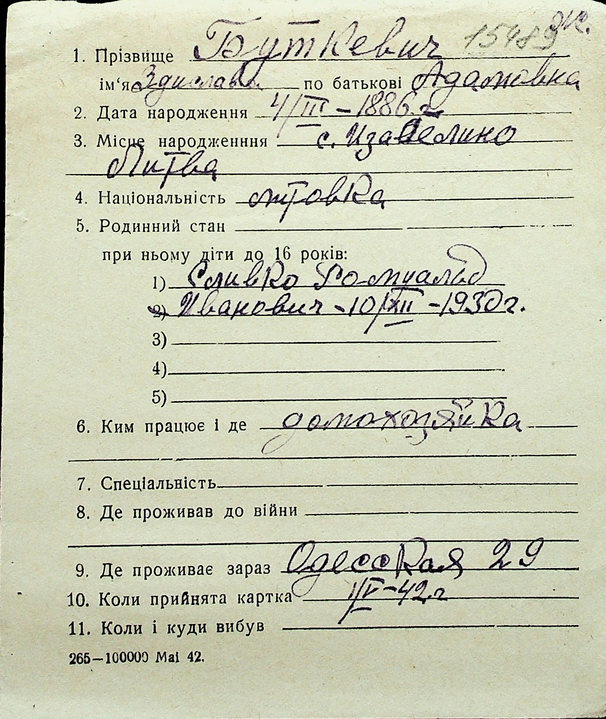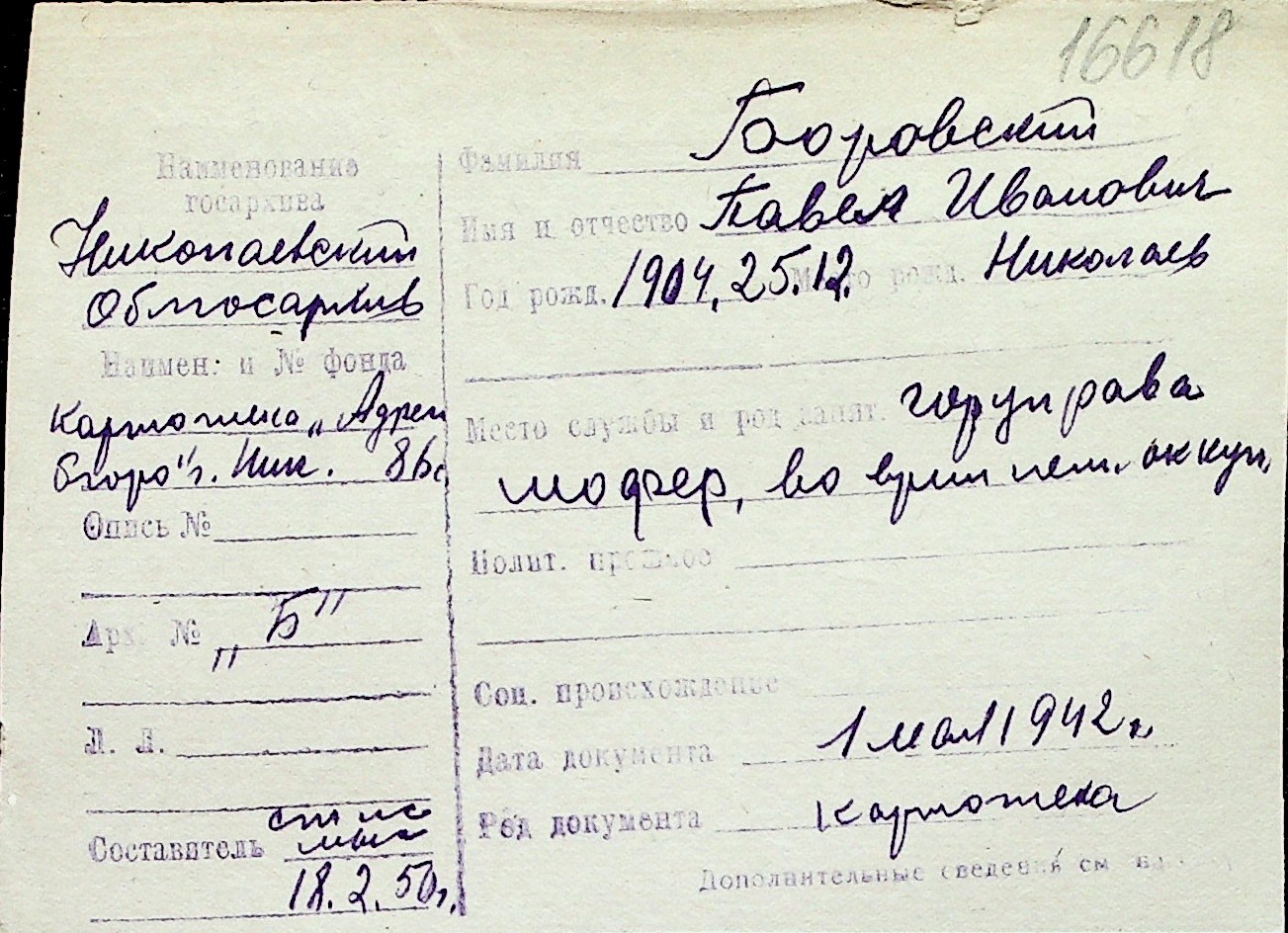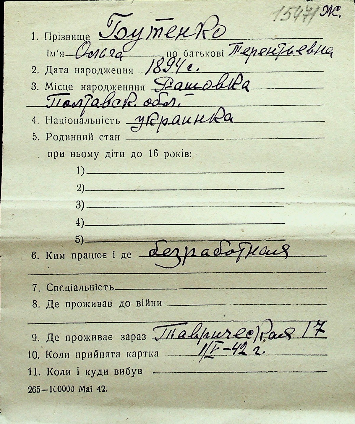 ◦ ◦ Перелік карток на осіб, які мешкали у м. Миколаїв у період окупації 1941–1944 років