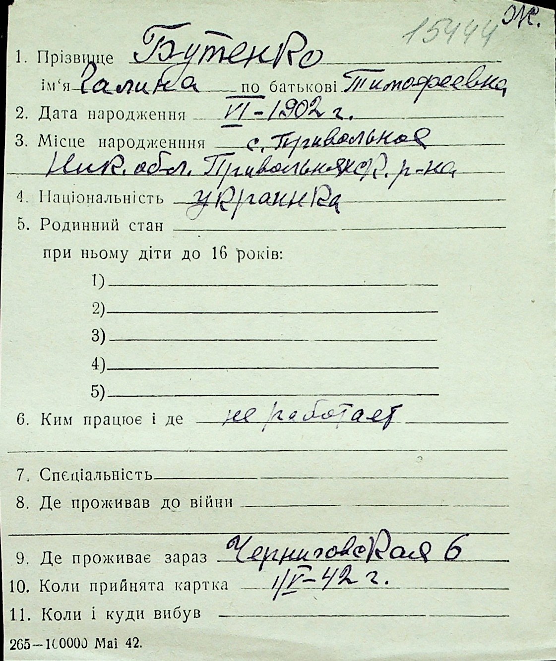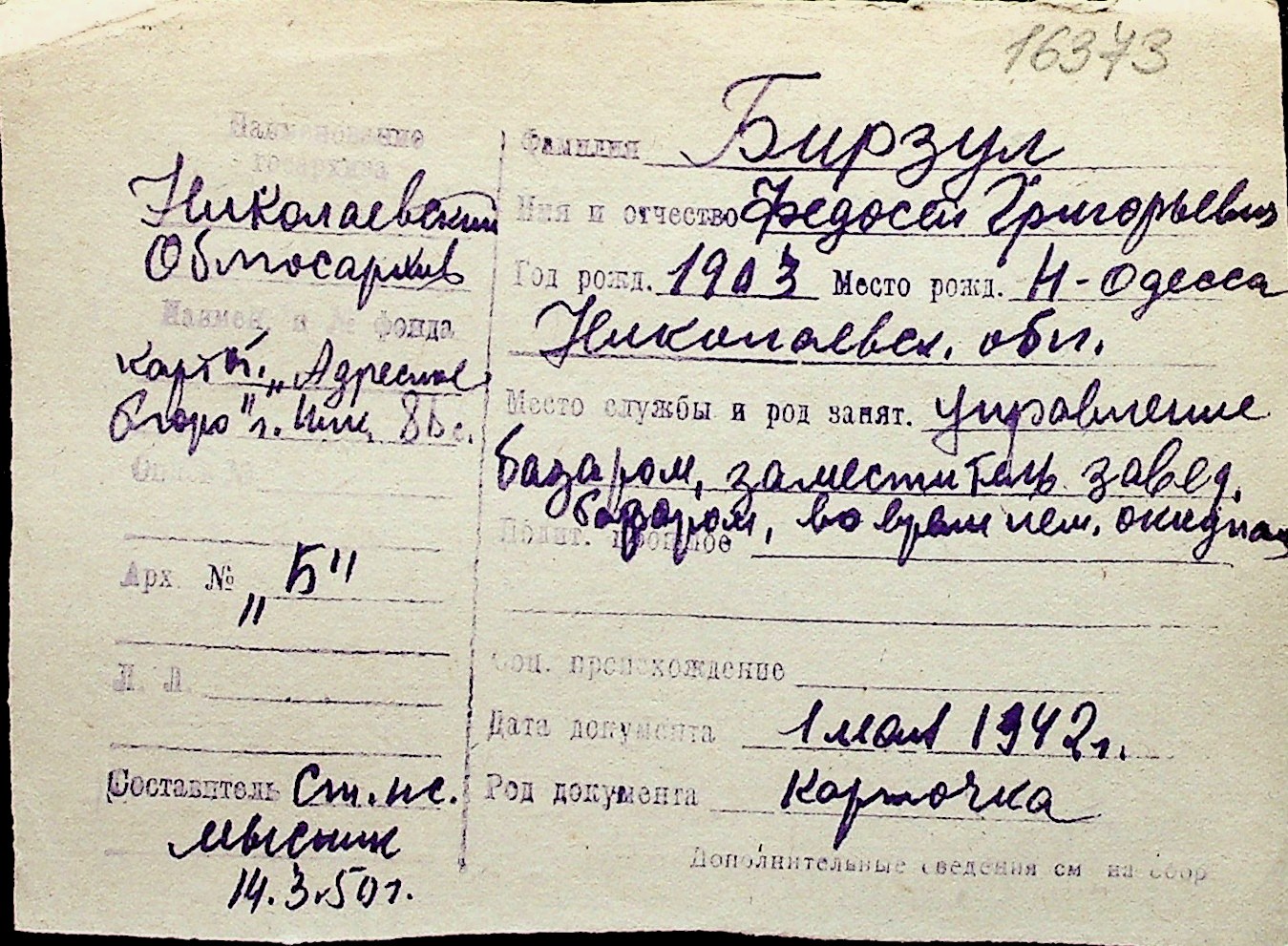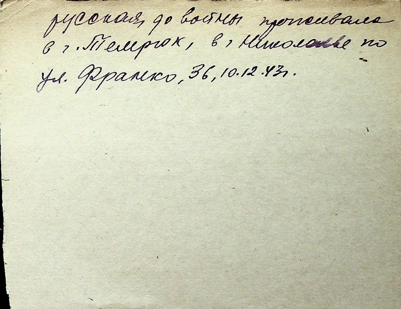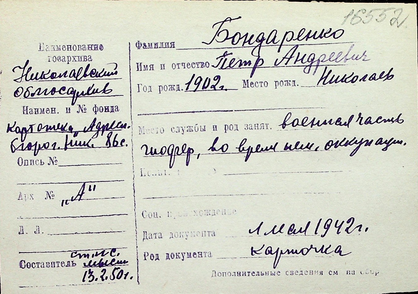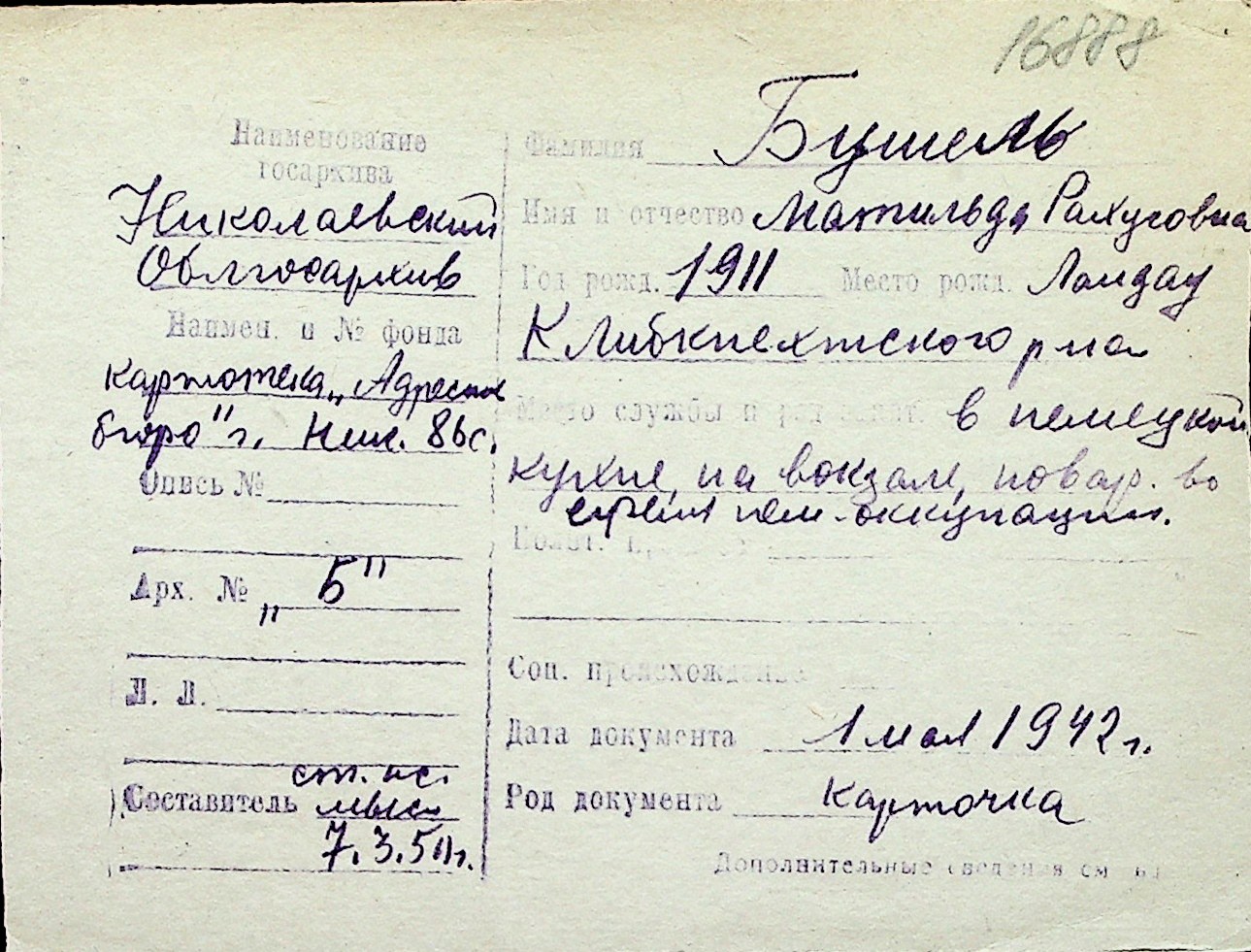 ◦ ◦ Перелік карток на осіб, які мешкали у м. Миколаїв у період окупації 1941–1944 років