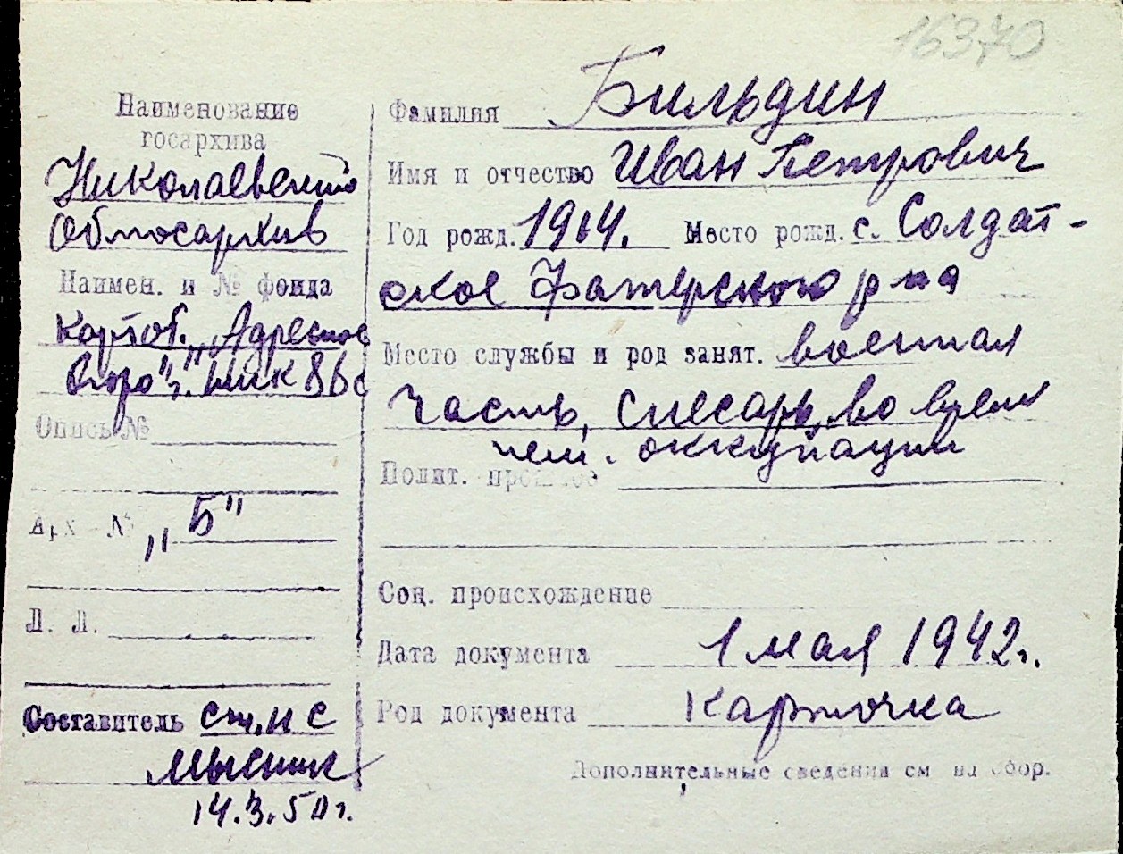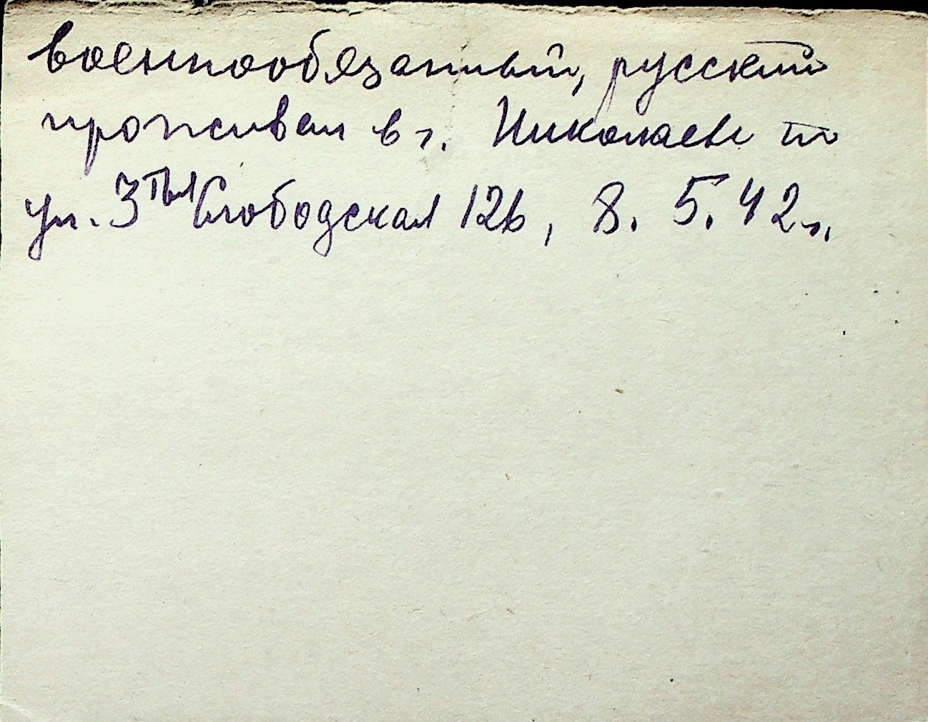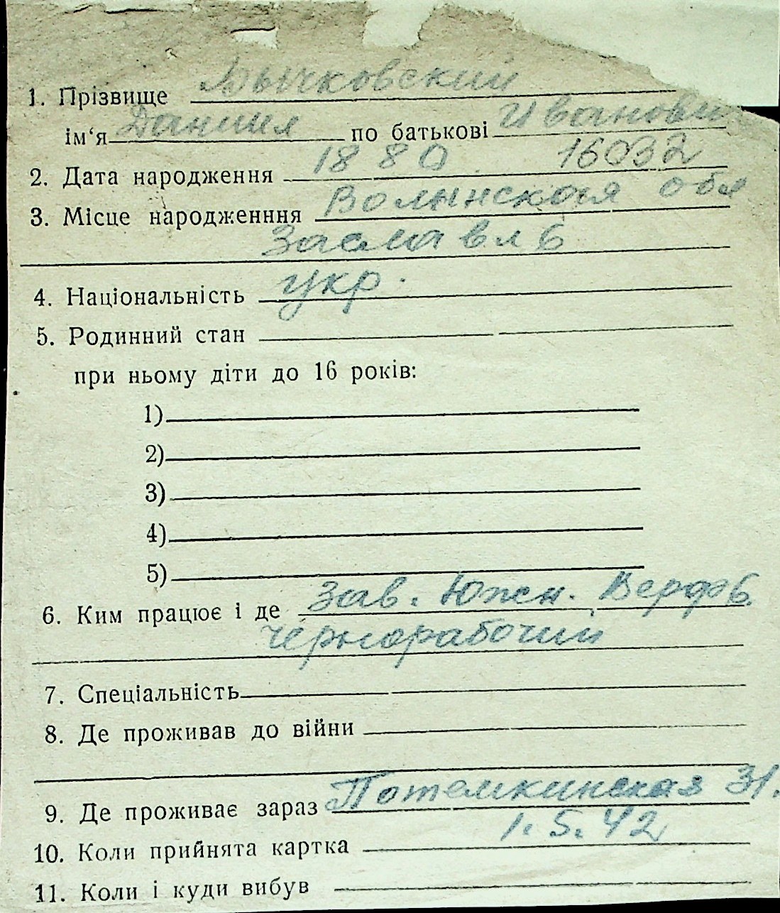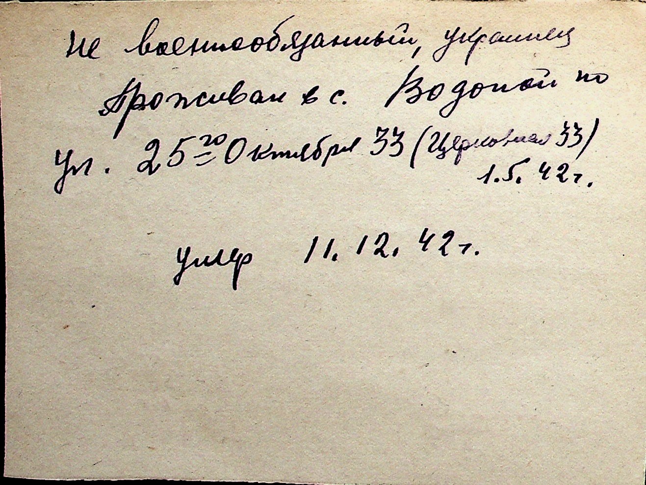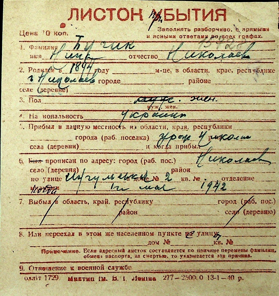 ◦ ◦ Перелік карток на осіб, які мешкали у м. Миколаїв у період окупації 1941–1944 років