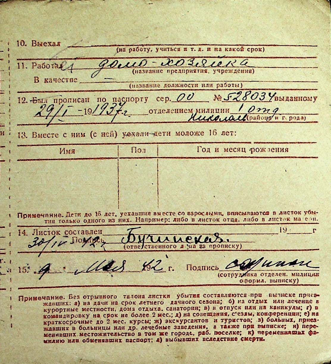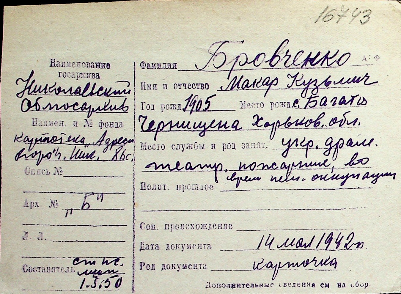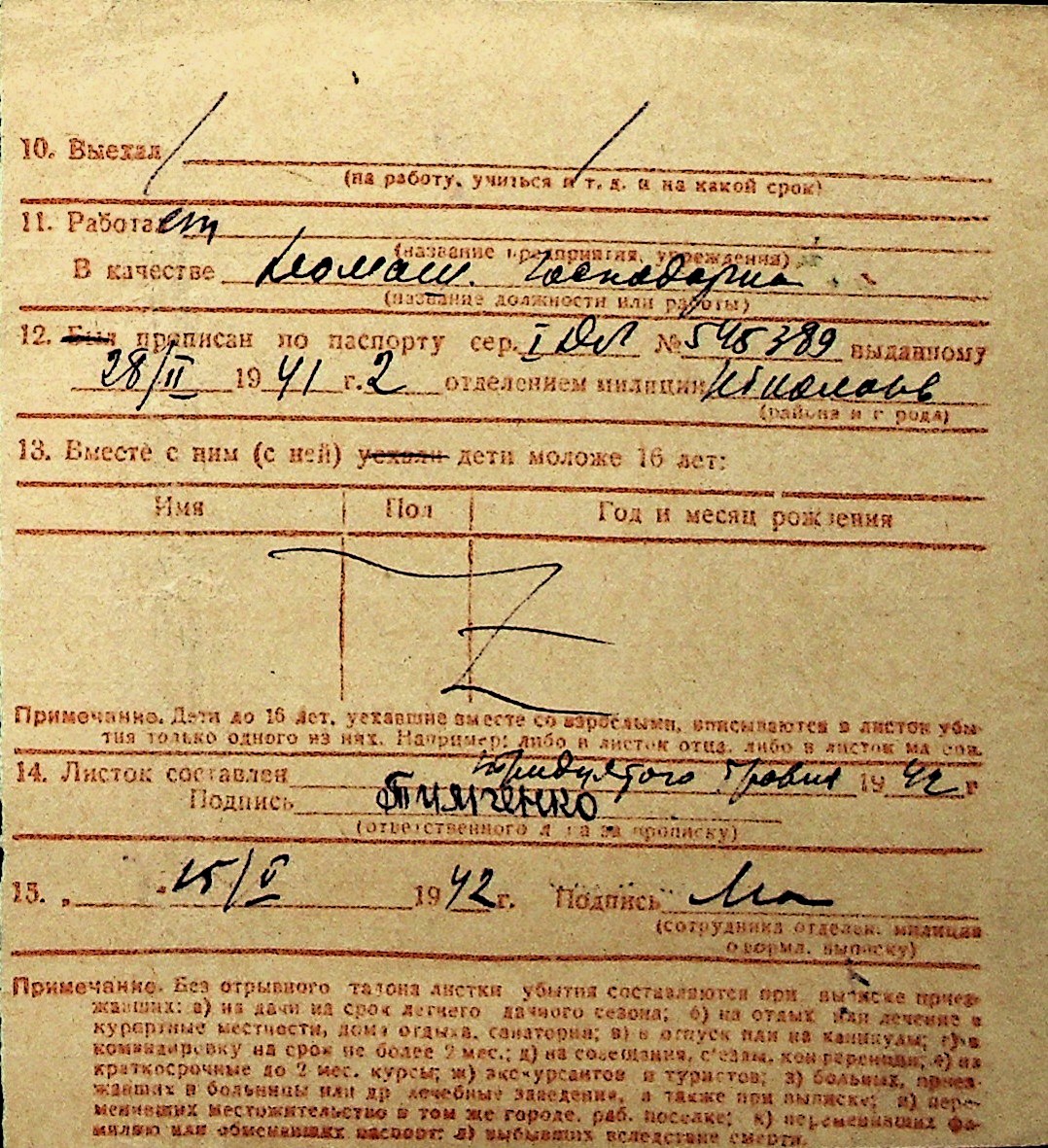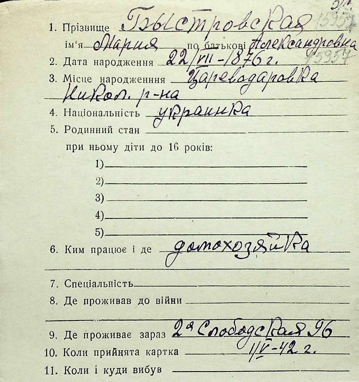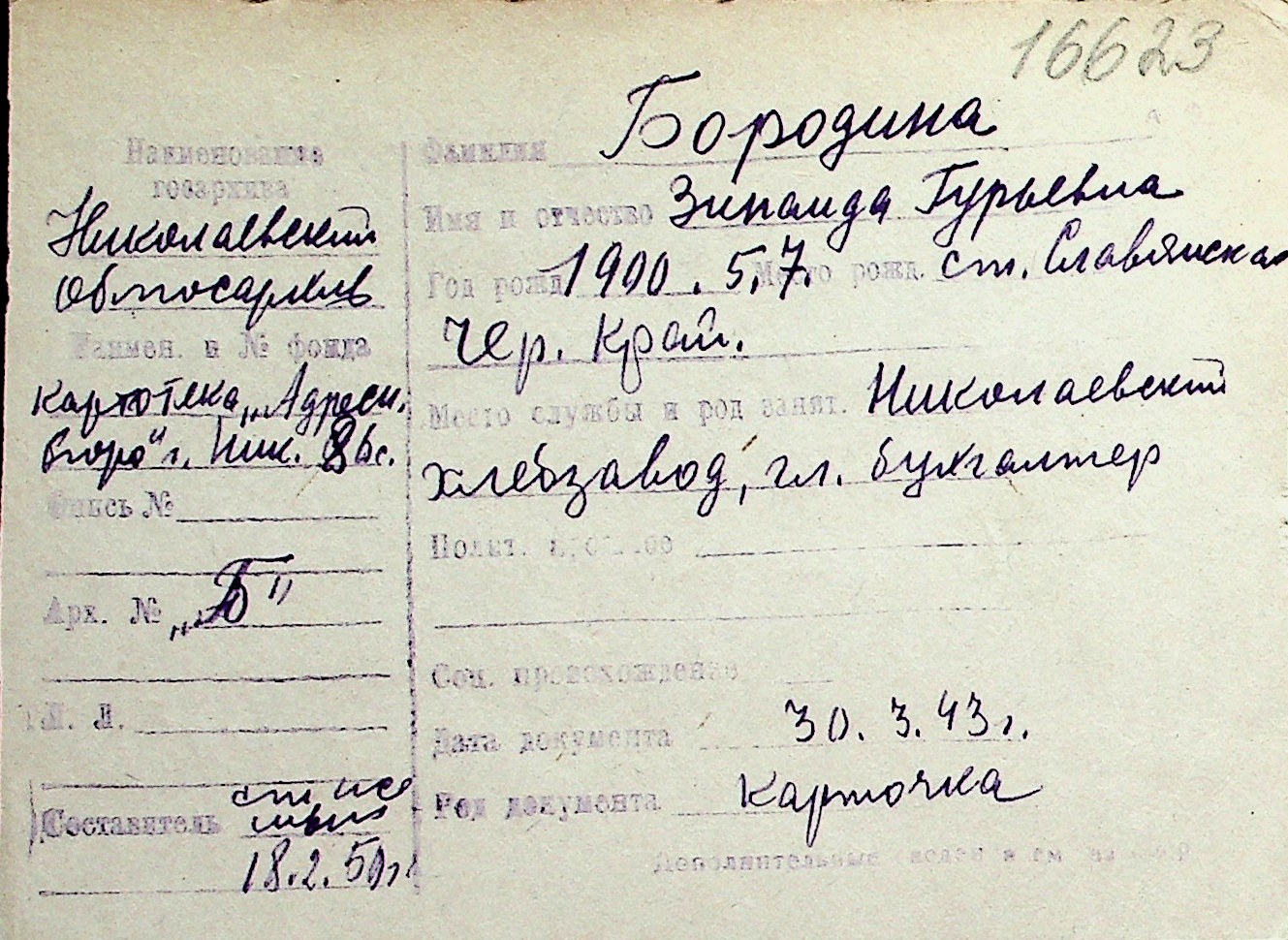 ◦ ◦ Перелік карток на осіб, які мешкали у м. Миколаїв у період окупації 1941–1944 років