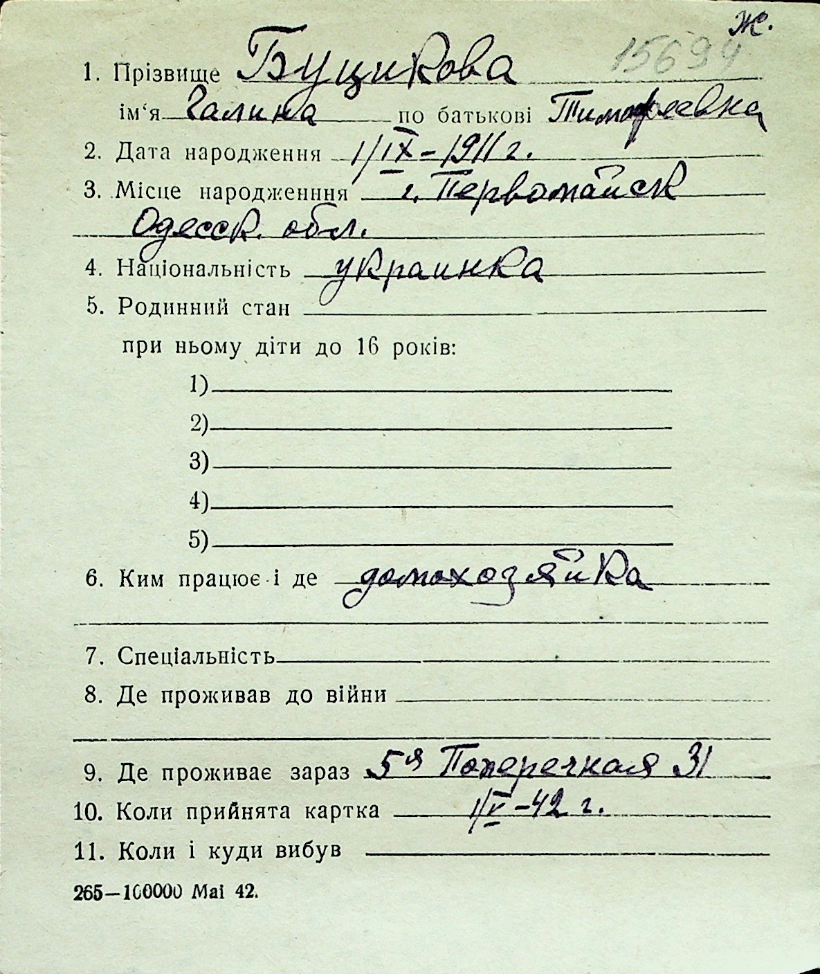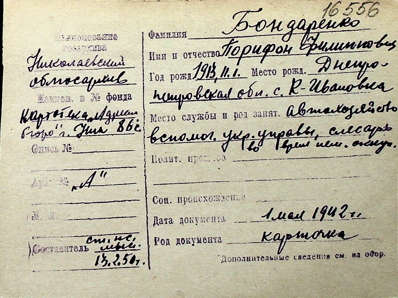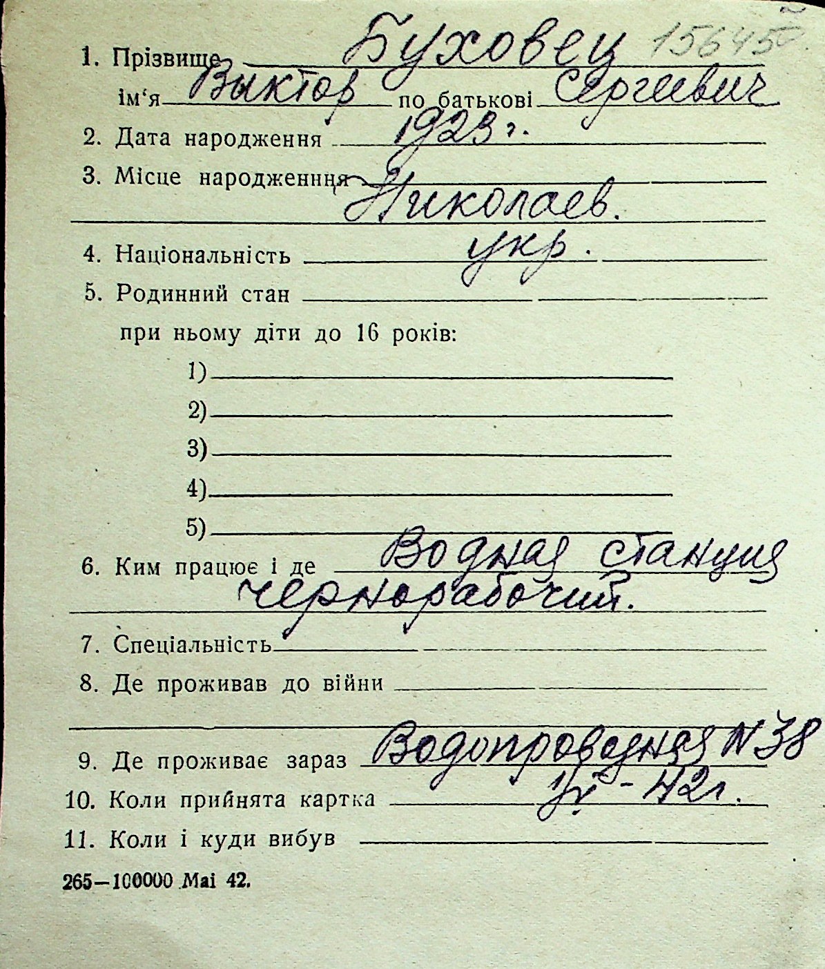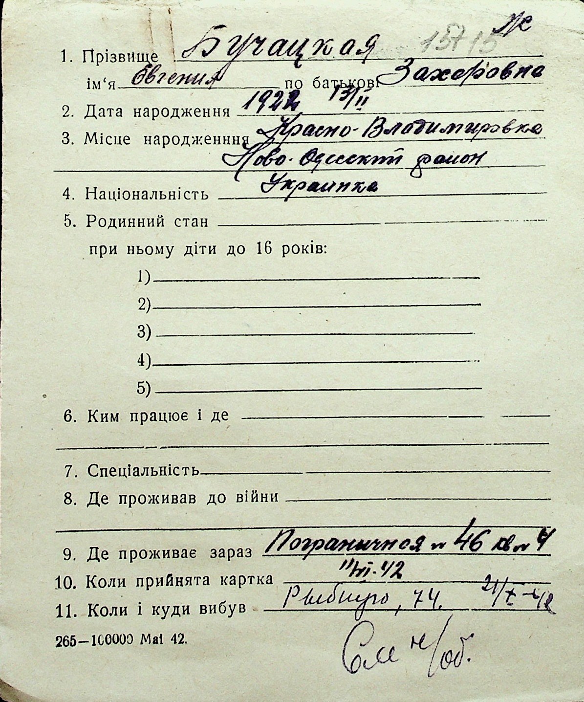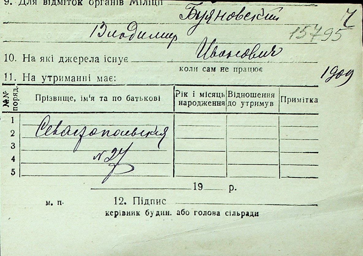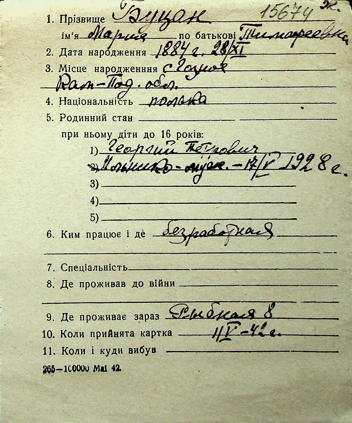 ◦ ◦ Перелік карток на осіб, які мешкали у м. Миколаїв у період окупації 1941–1944 років