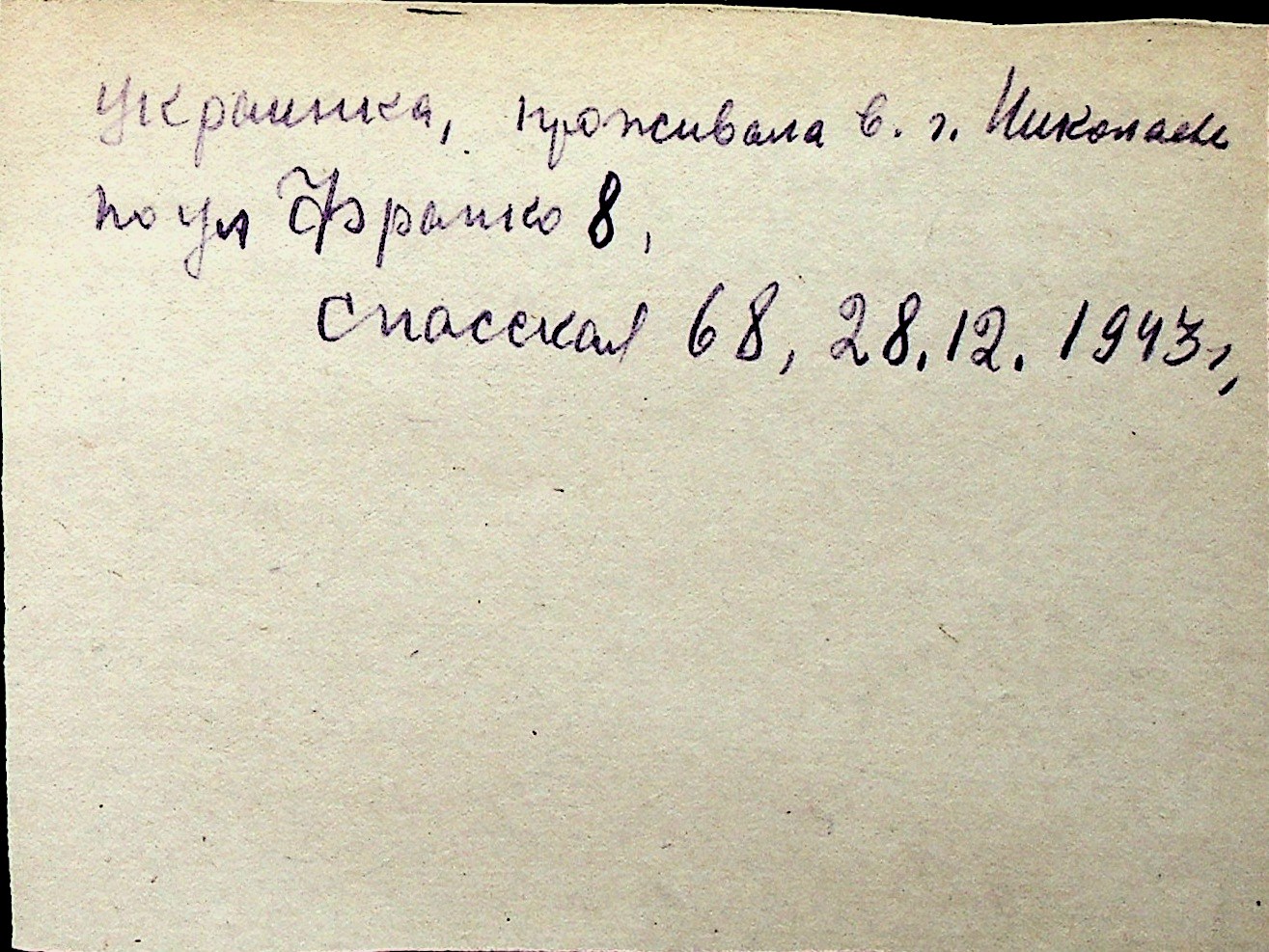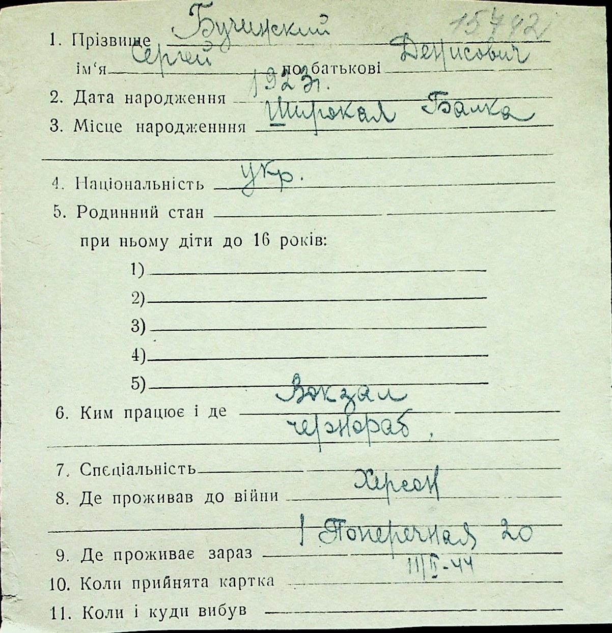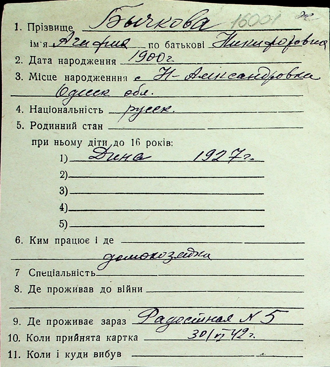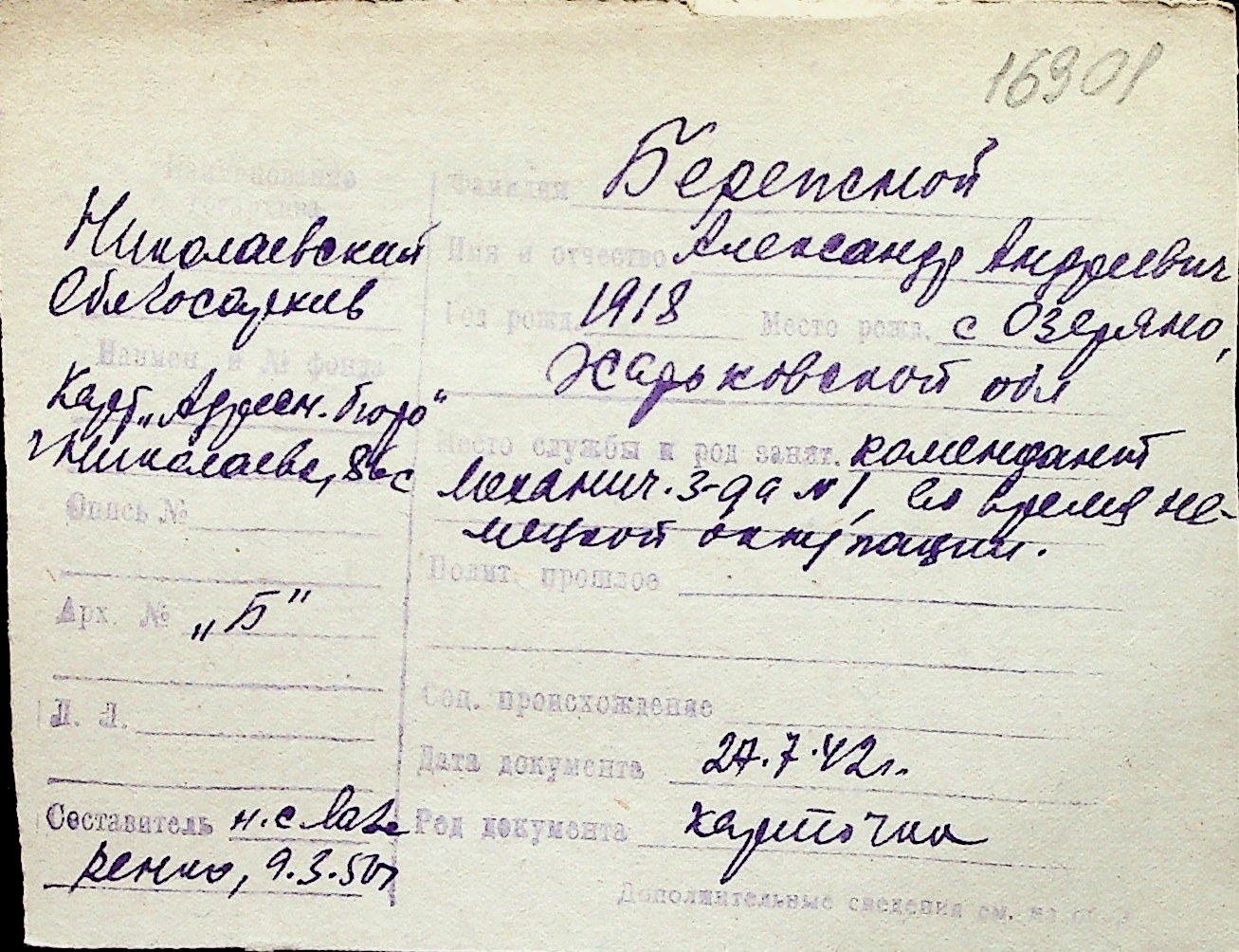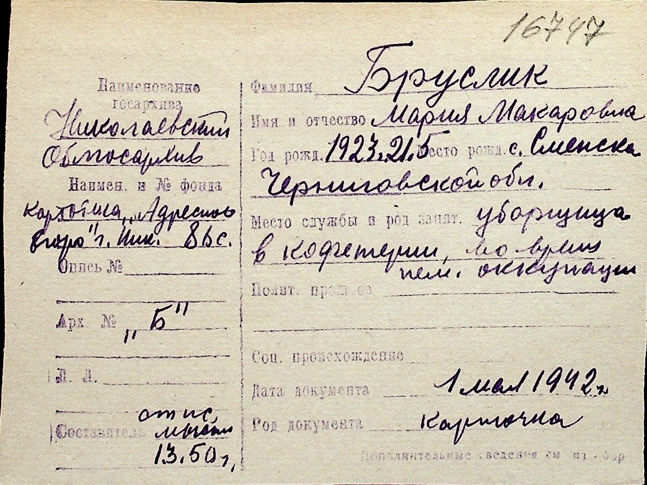 ◦ ◦ Перелік карток на осіб, які мешкали у м. Миколаїв у період окупації 1941–1944 років