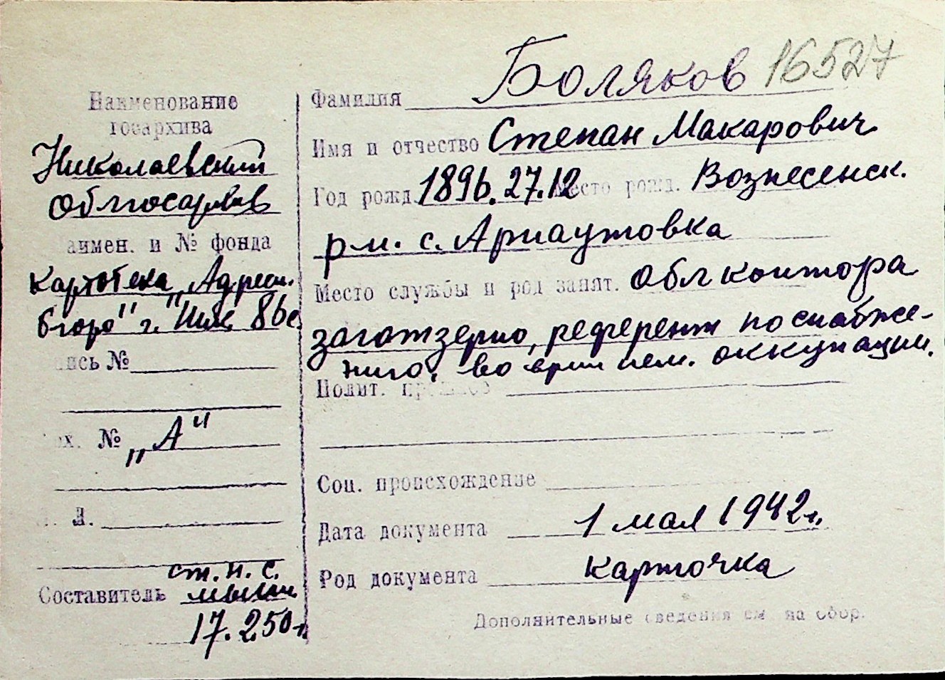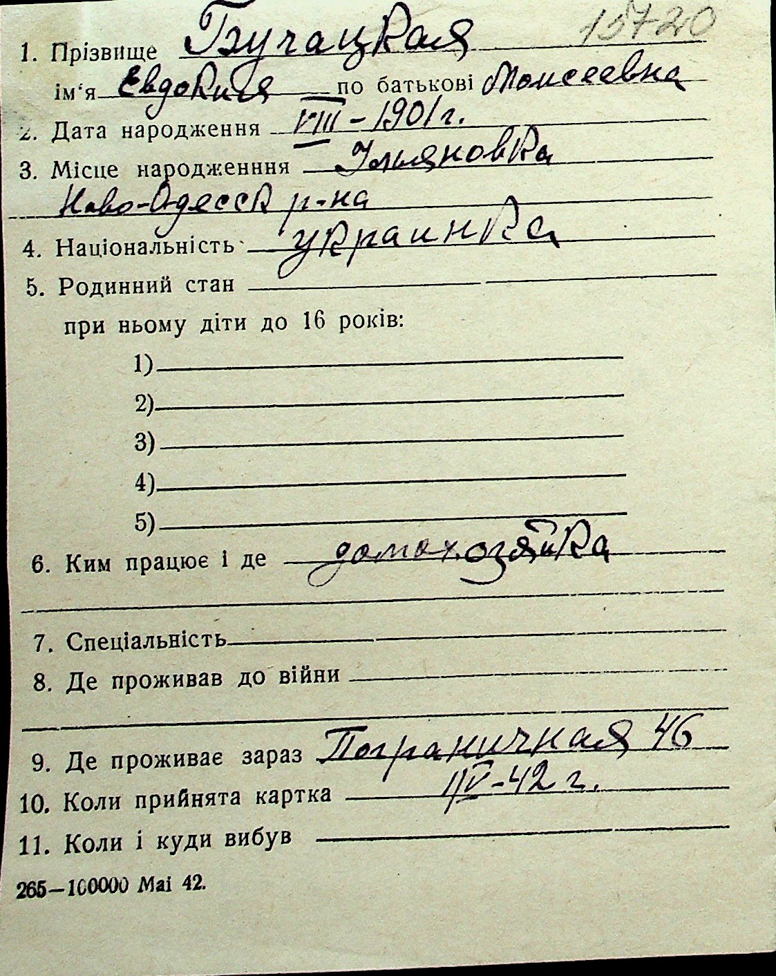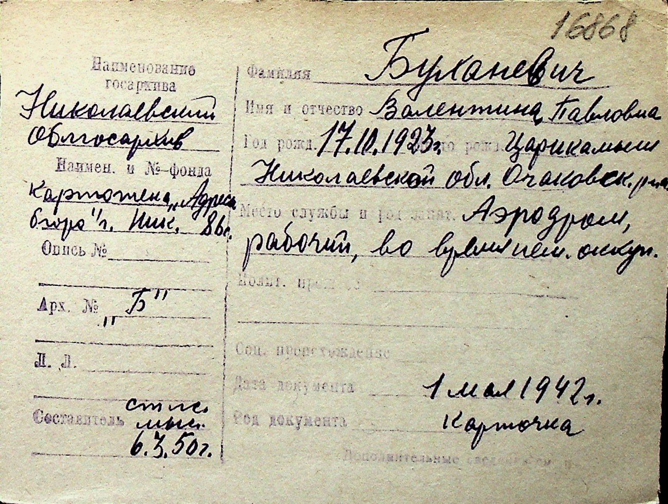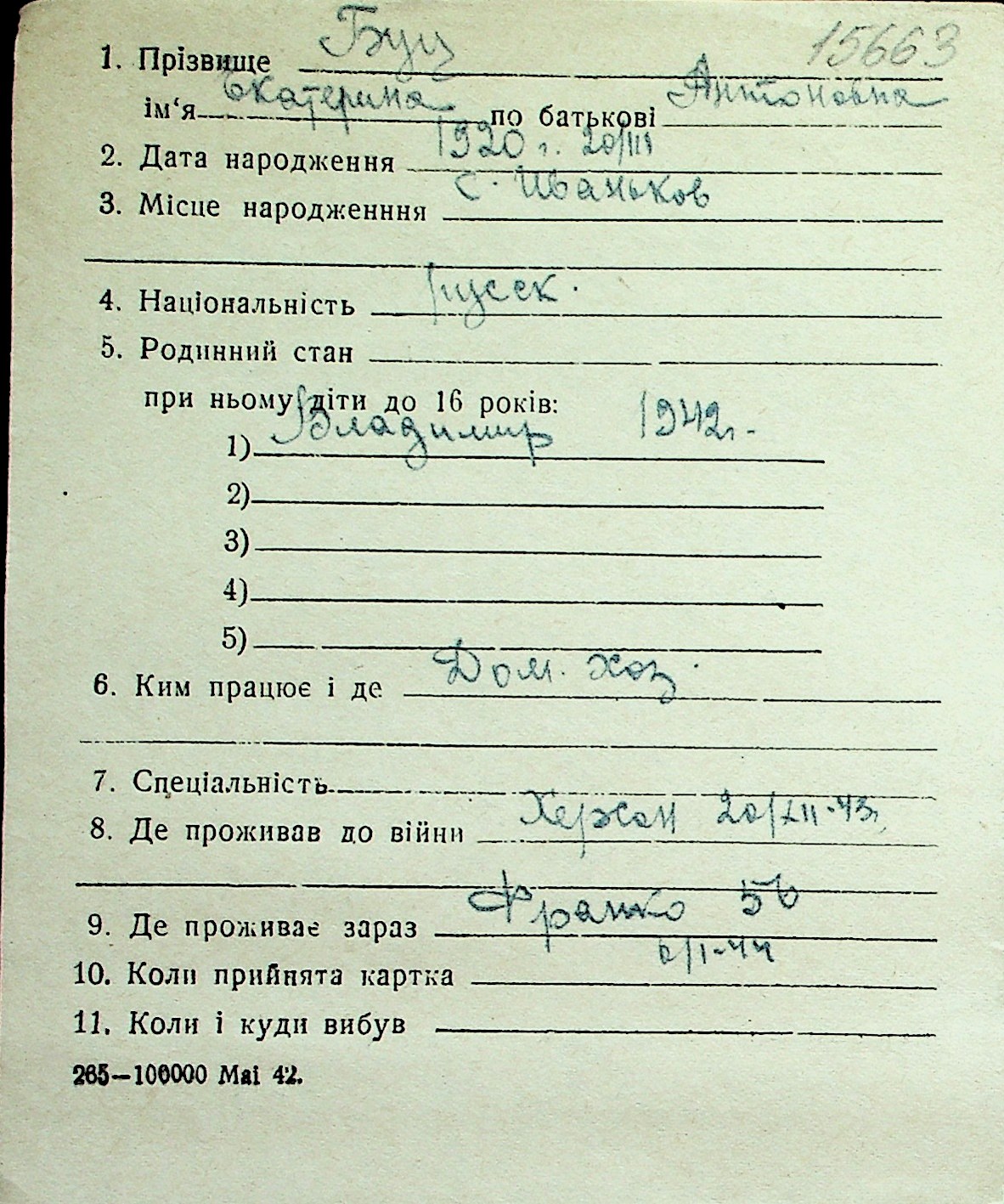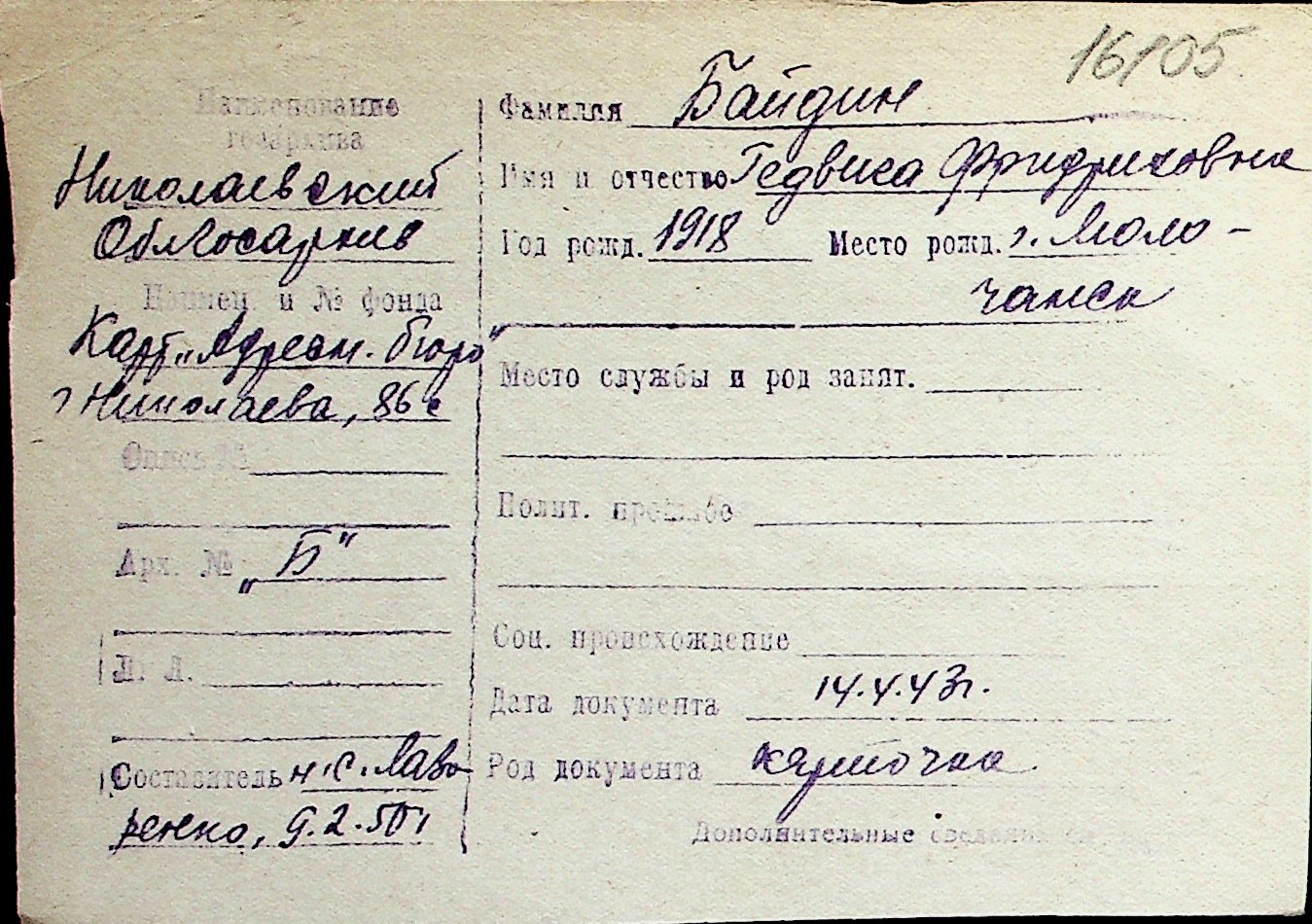 ◦ ◦ Перелік карток на осіб, які мешкали у м. Миколаїв у період окупації 1941–1944 років