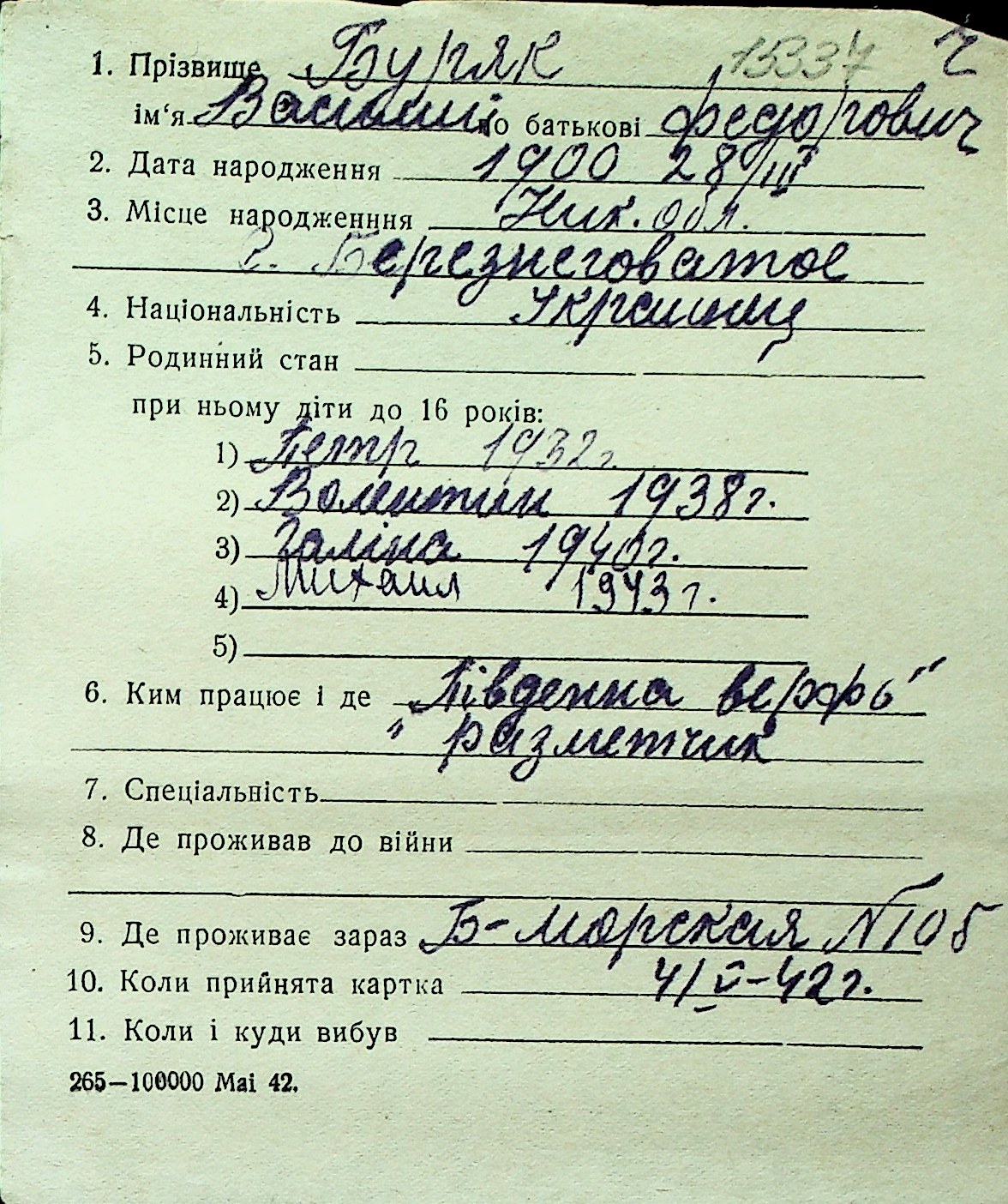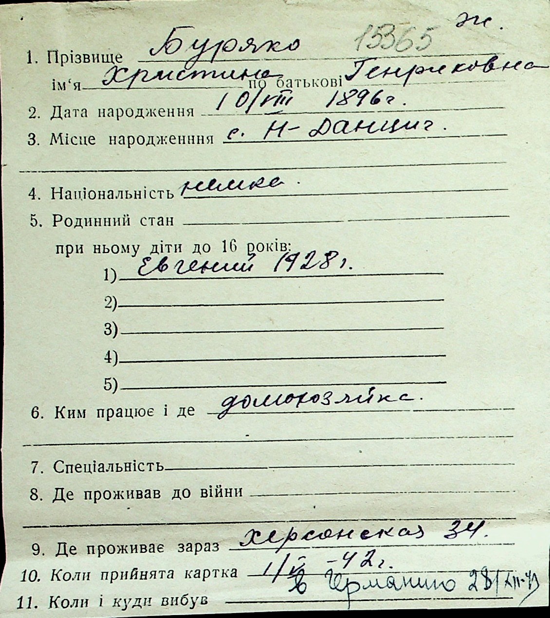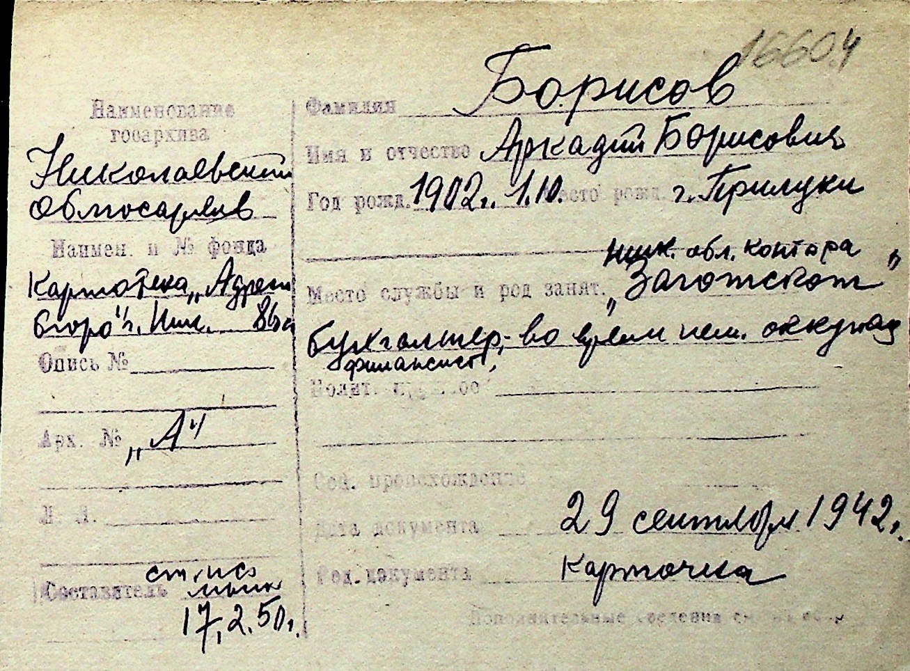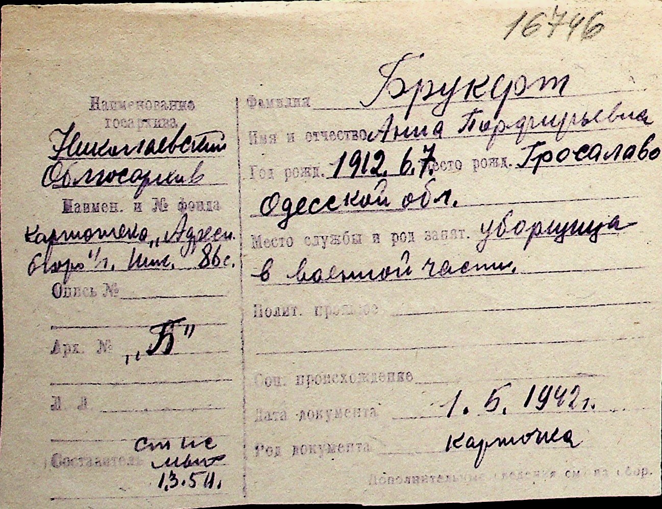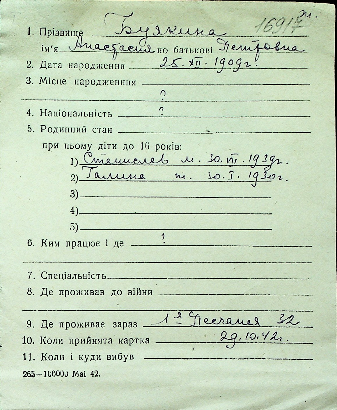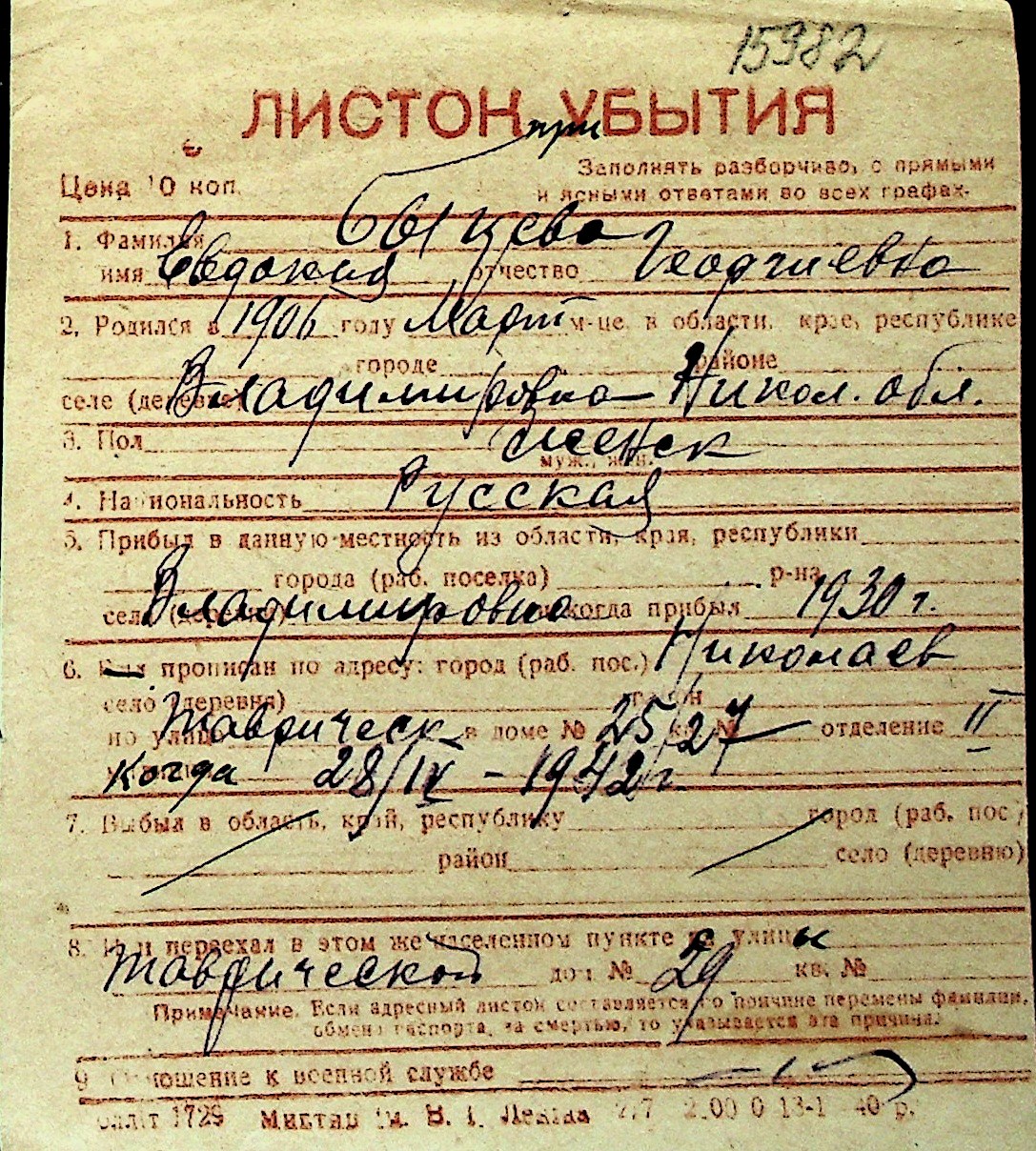 ◦ ◦ Перелік карток на осіб, які мешкали у м. Миколаїв у період окупації 1941–1944 років