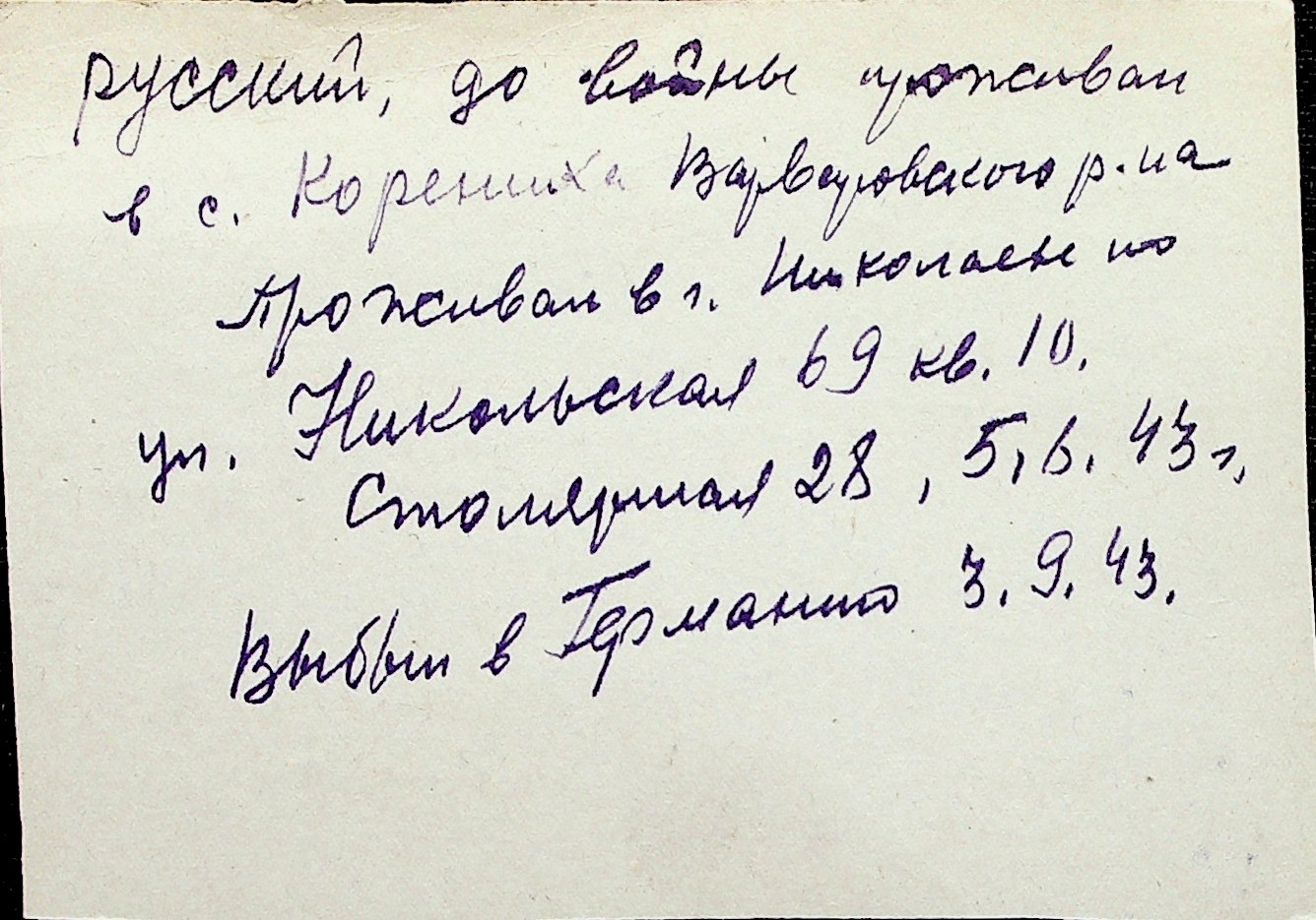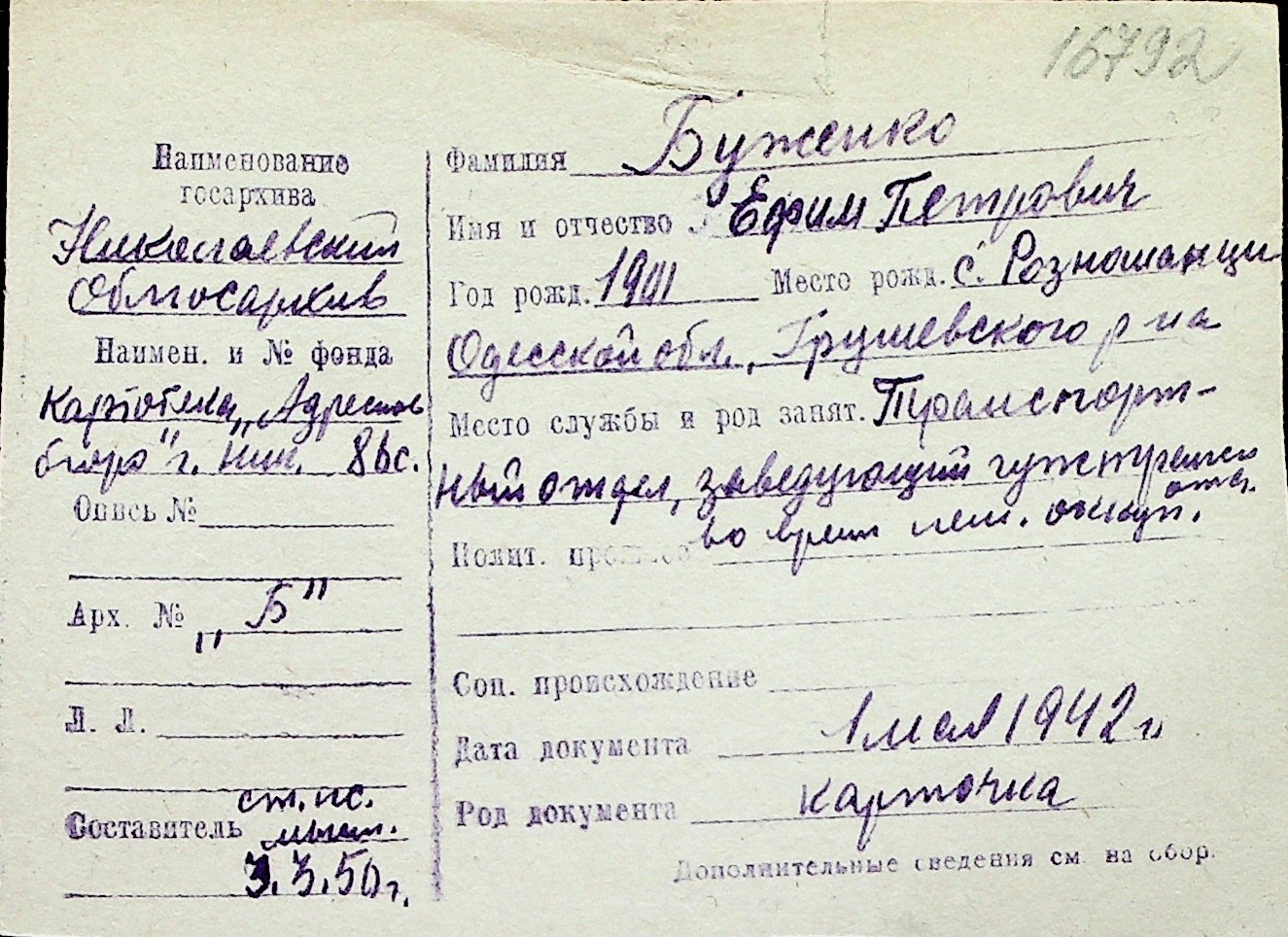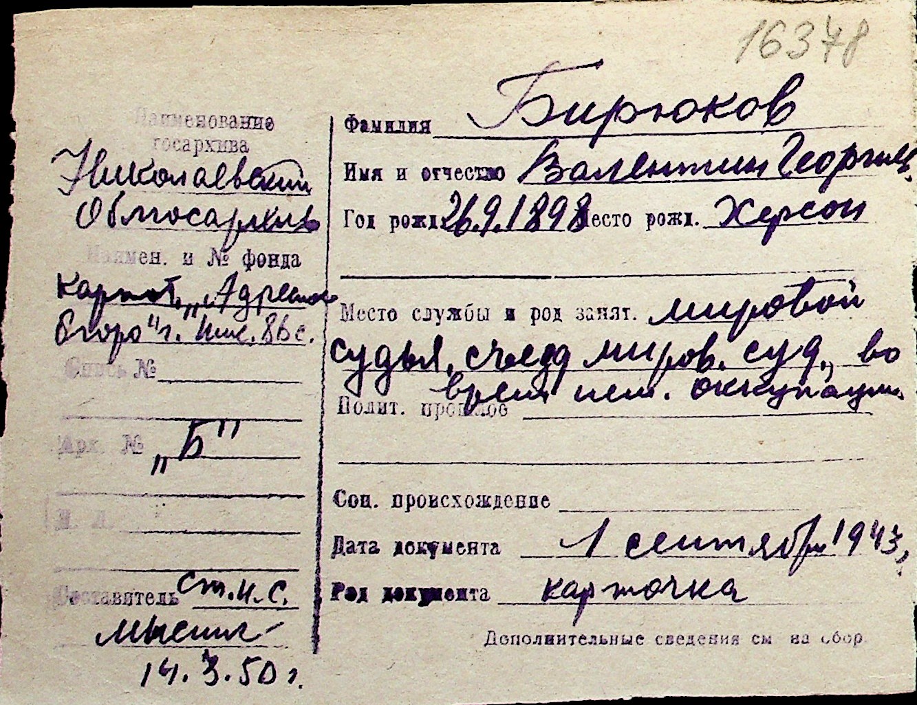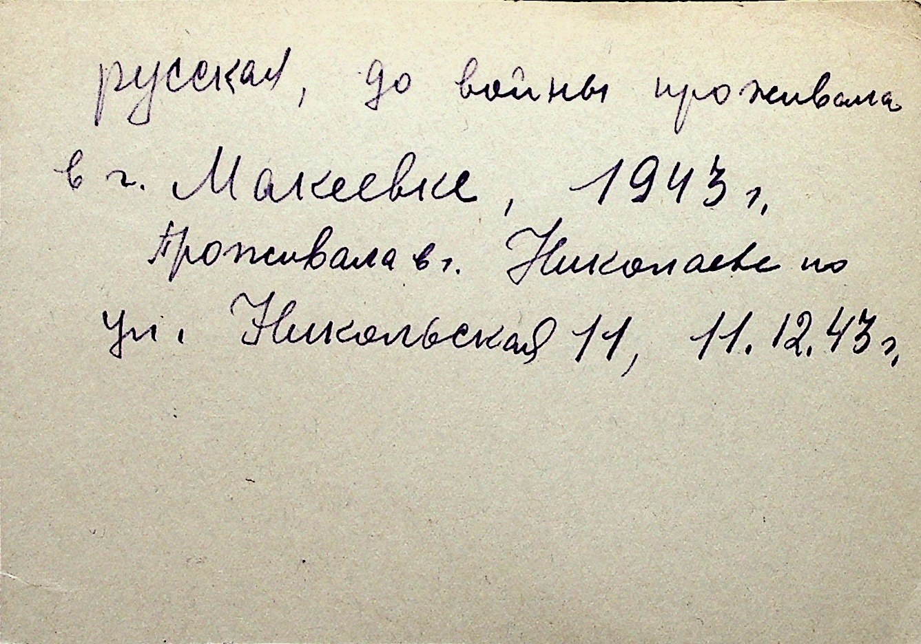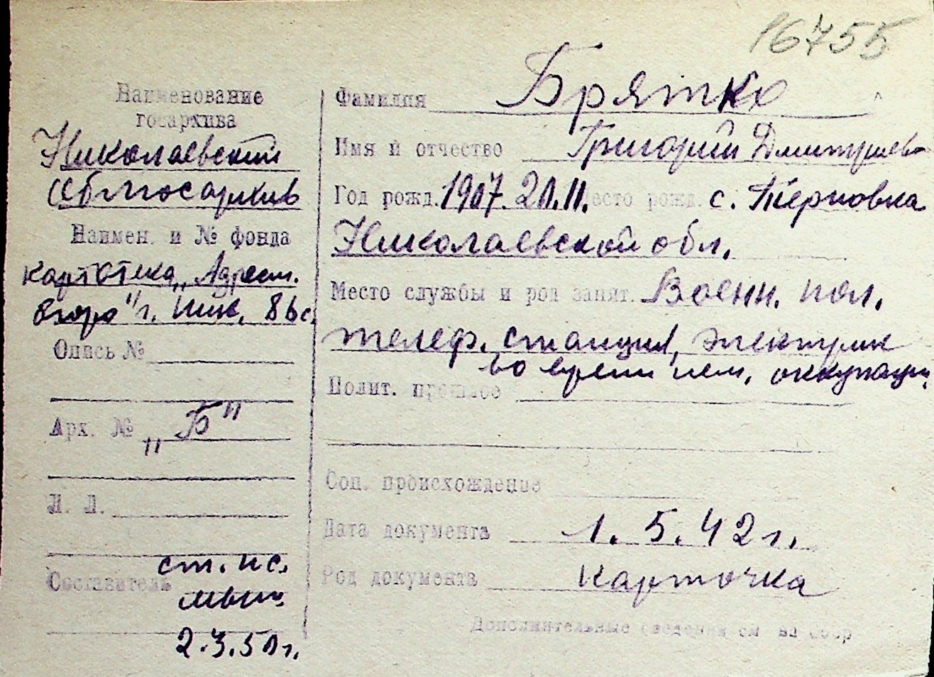 ◦ ◦ Перелік карток на осіб, які мешкали у м. Миколаїв у період окупації 1941–1944 років