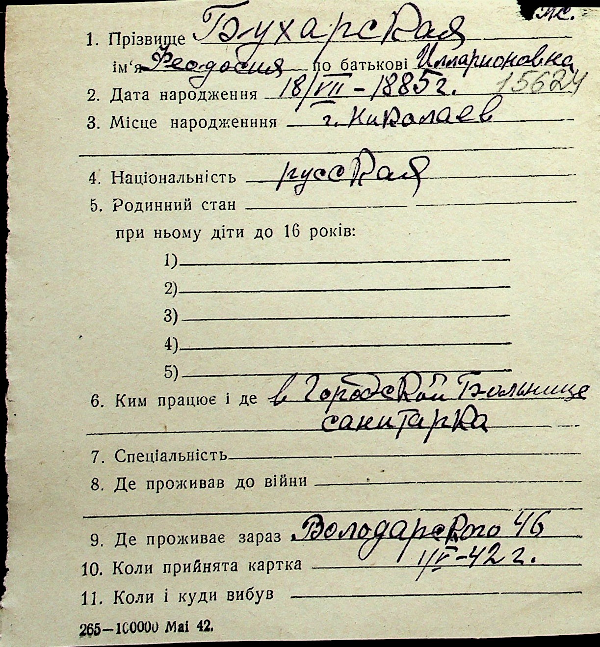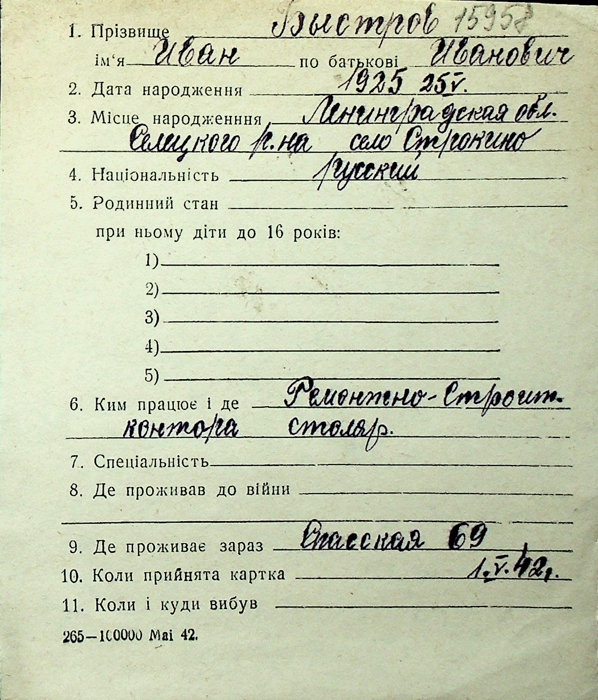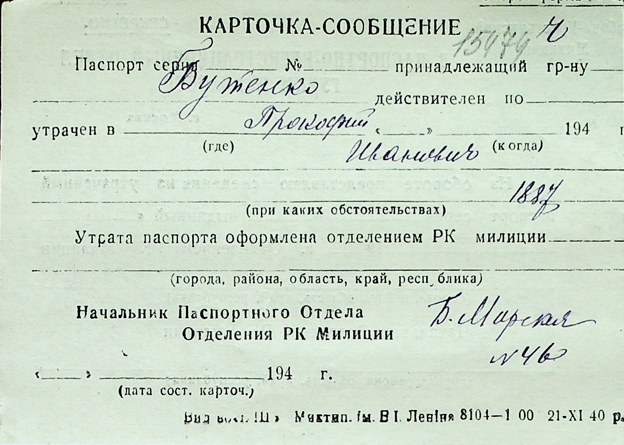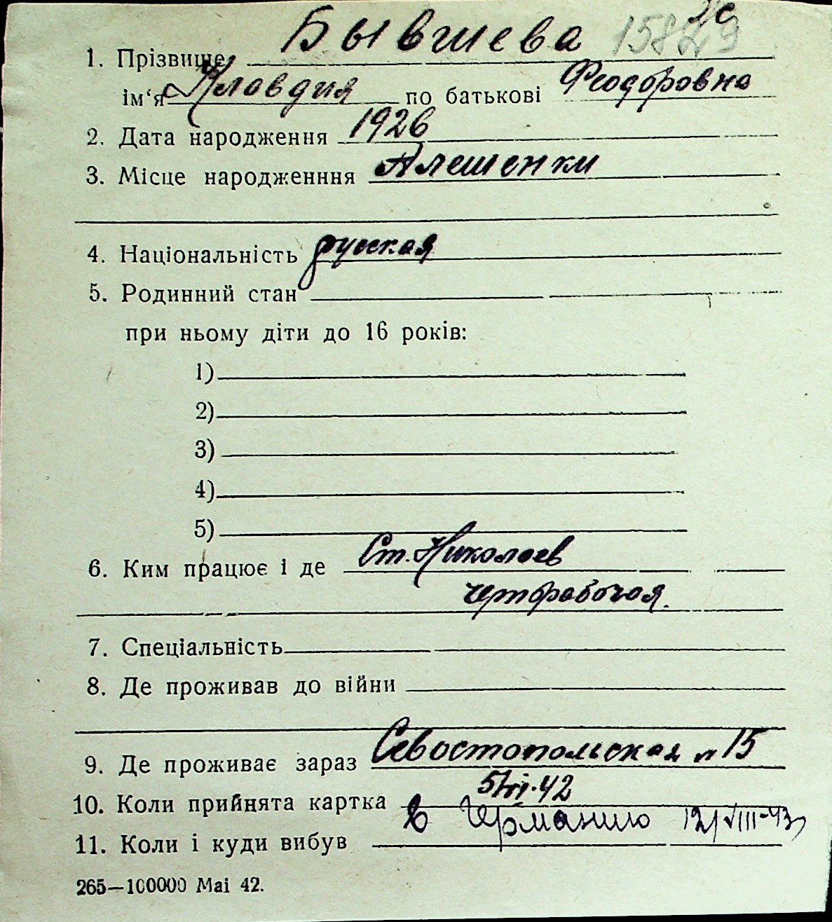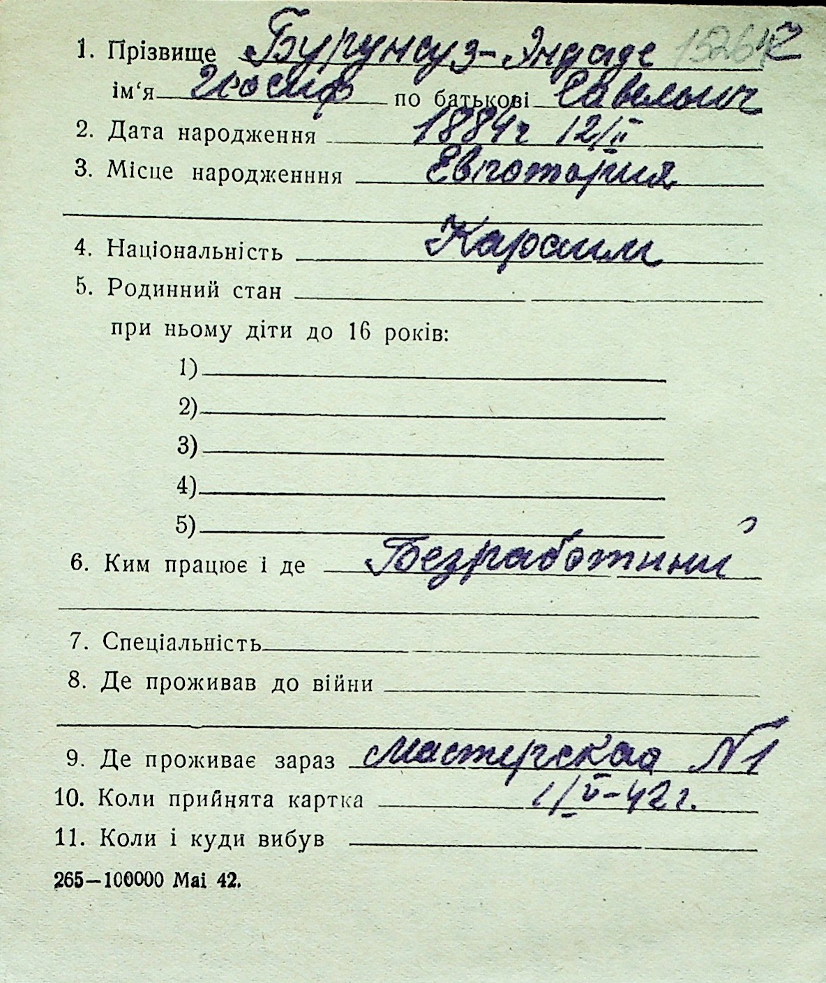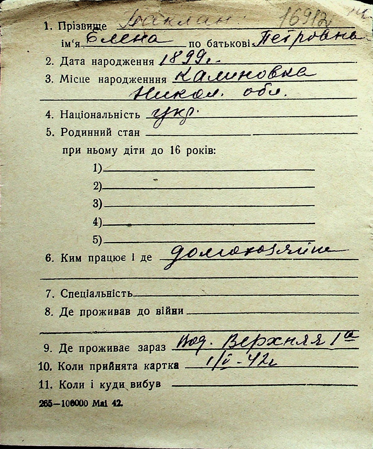 ◦ ◦ Перелік карток на осіб, які мешкали у м. Миколаїв у період окупації 1941–1944 років