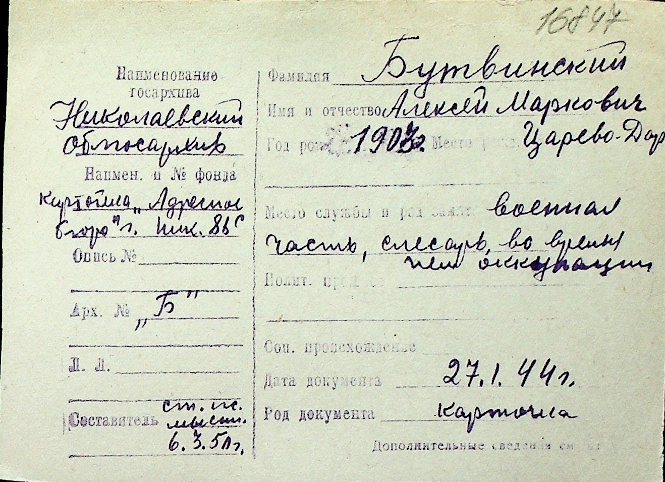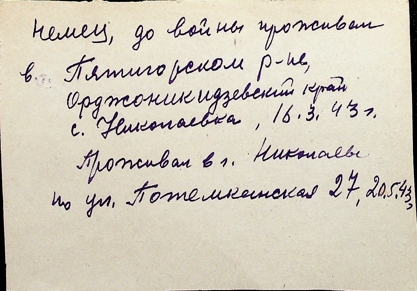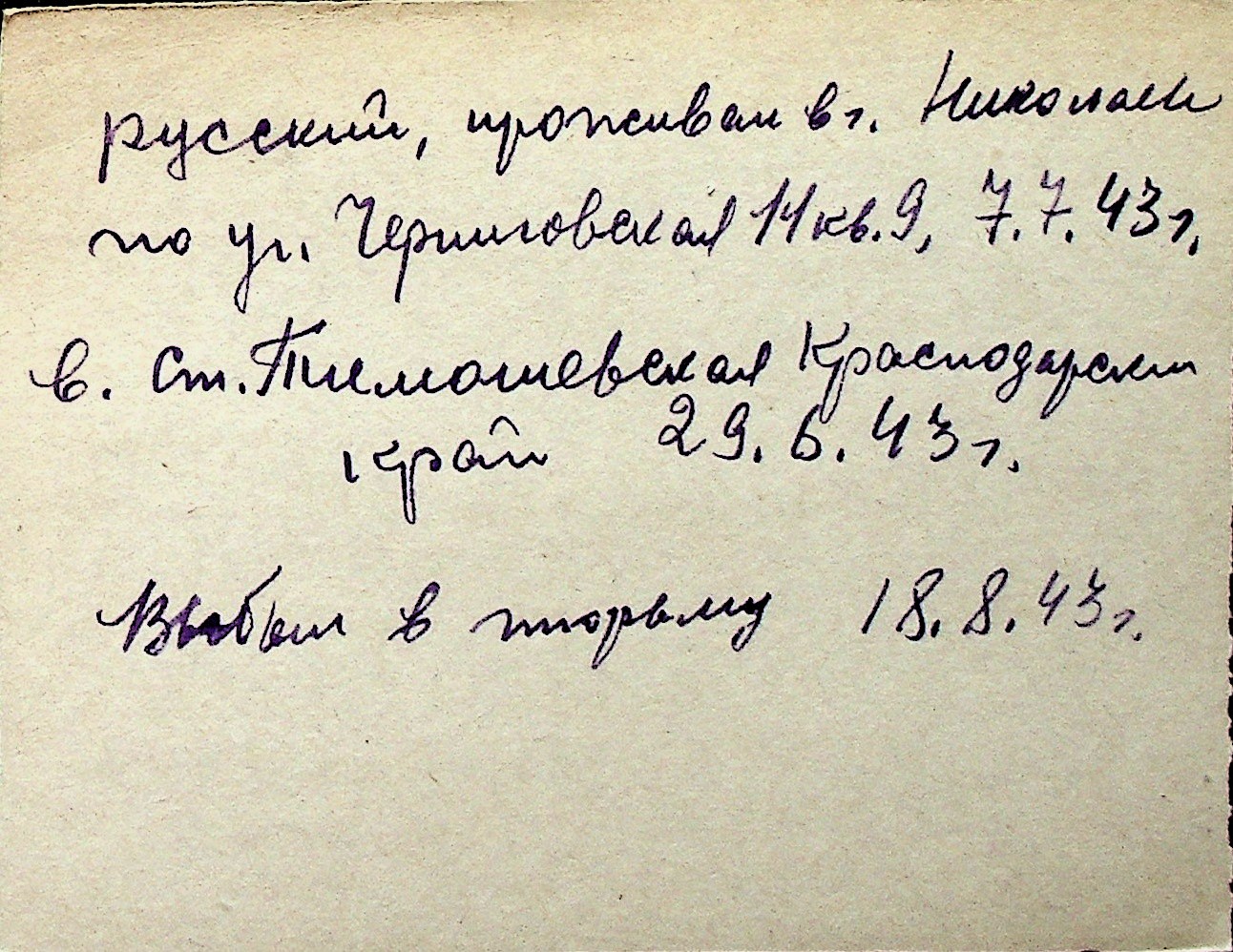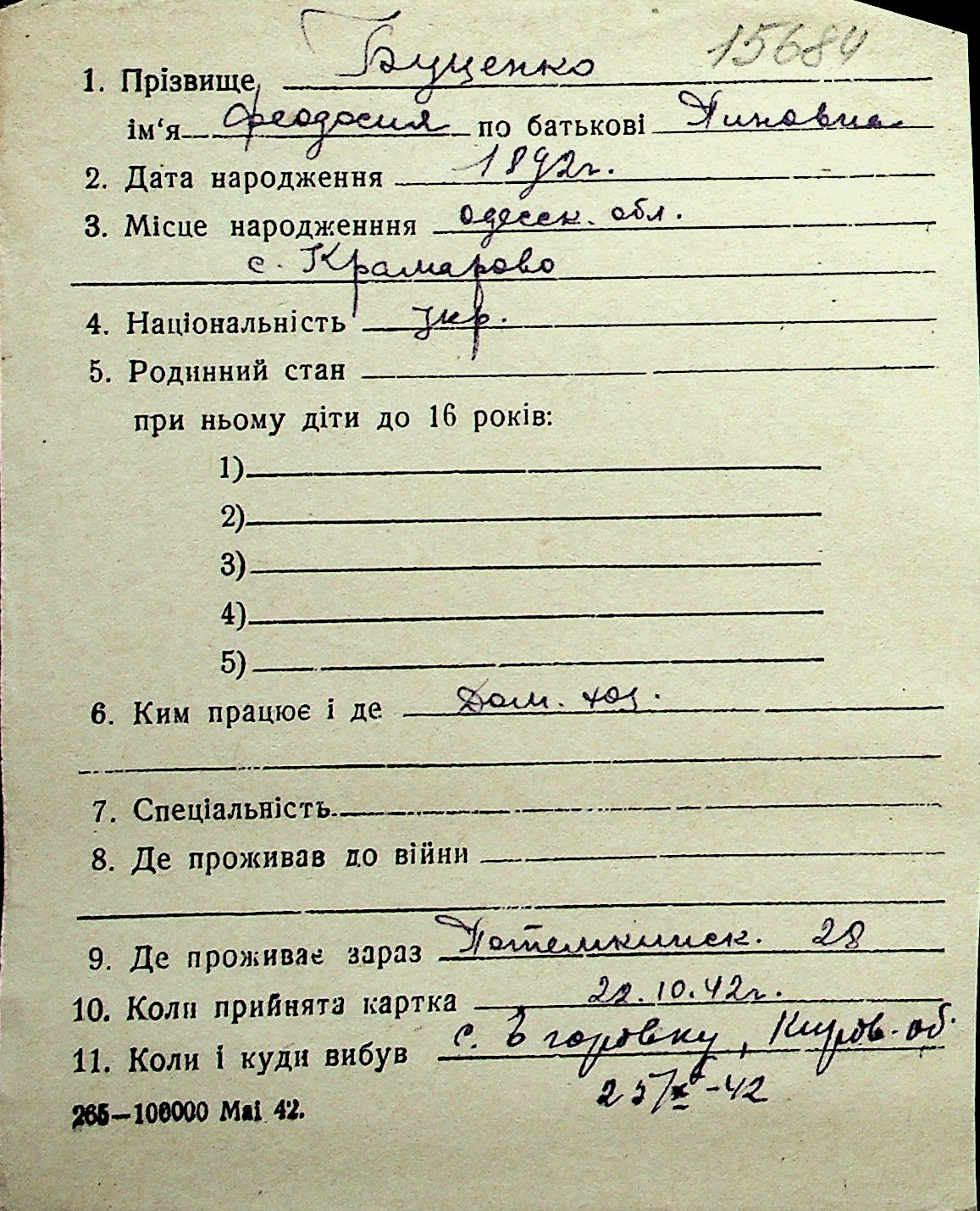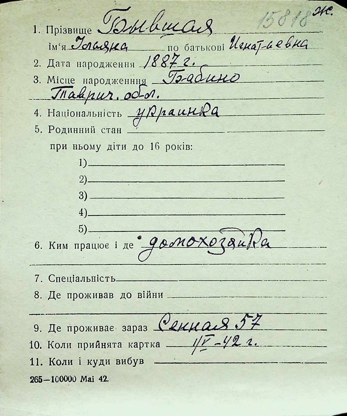 ◦ ◦ Перелік карток на осіб, які мешкали у м. Миколаїв у період окупації 1941–1944 років