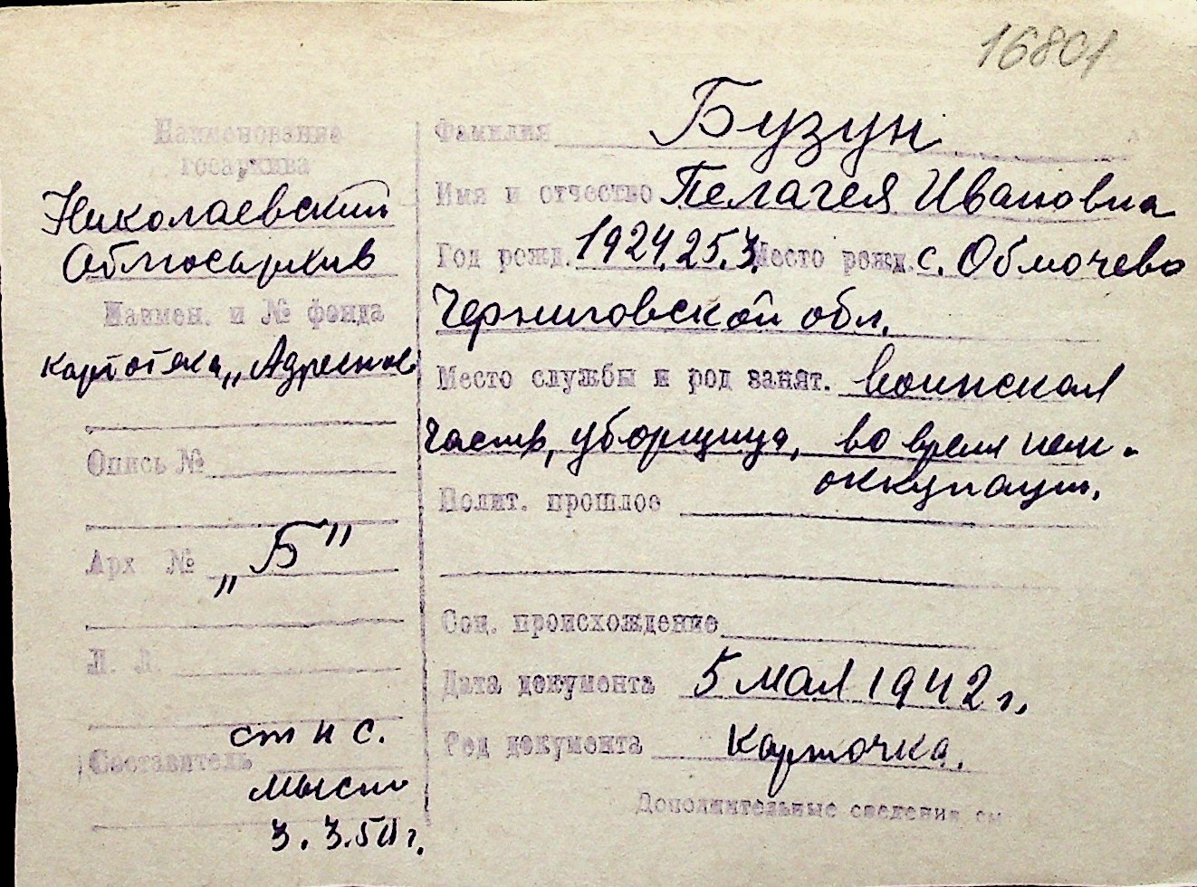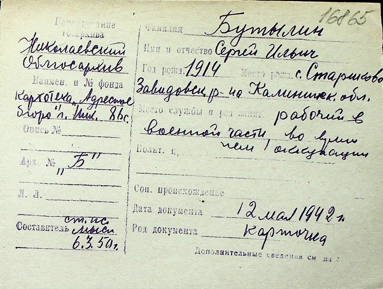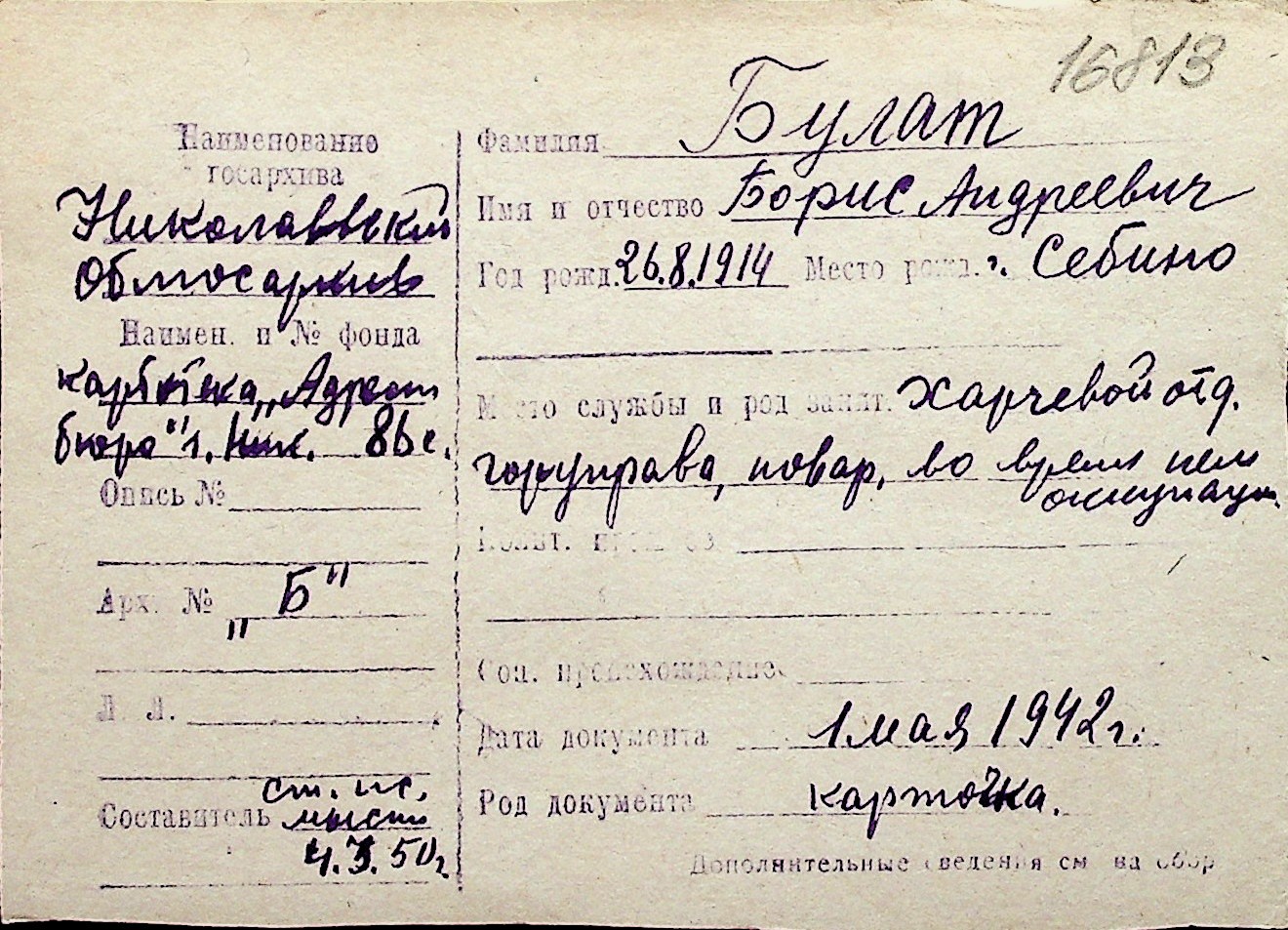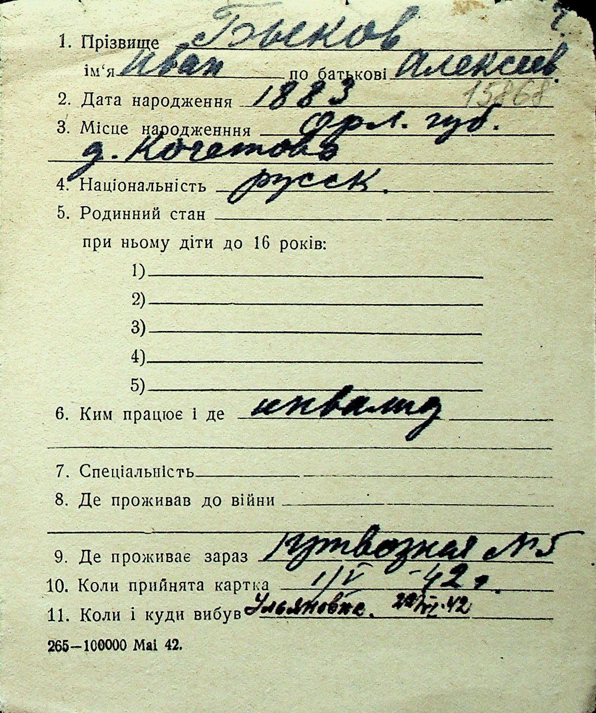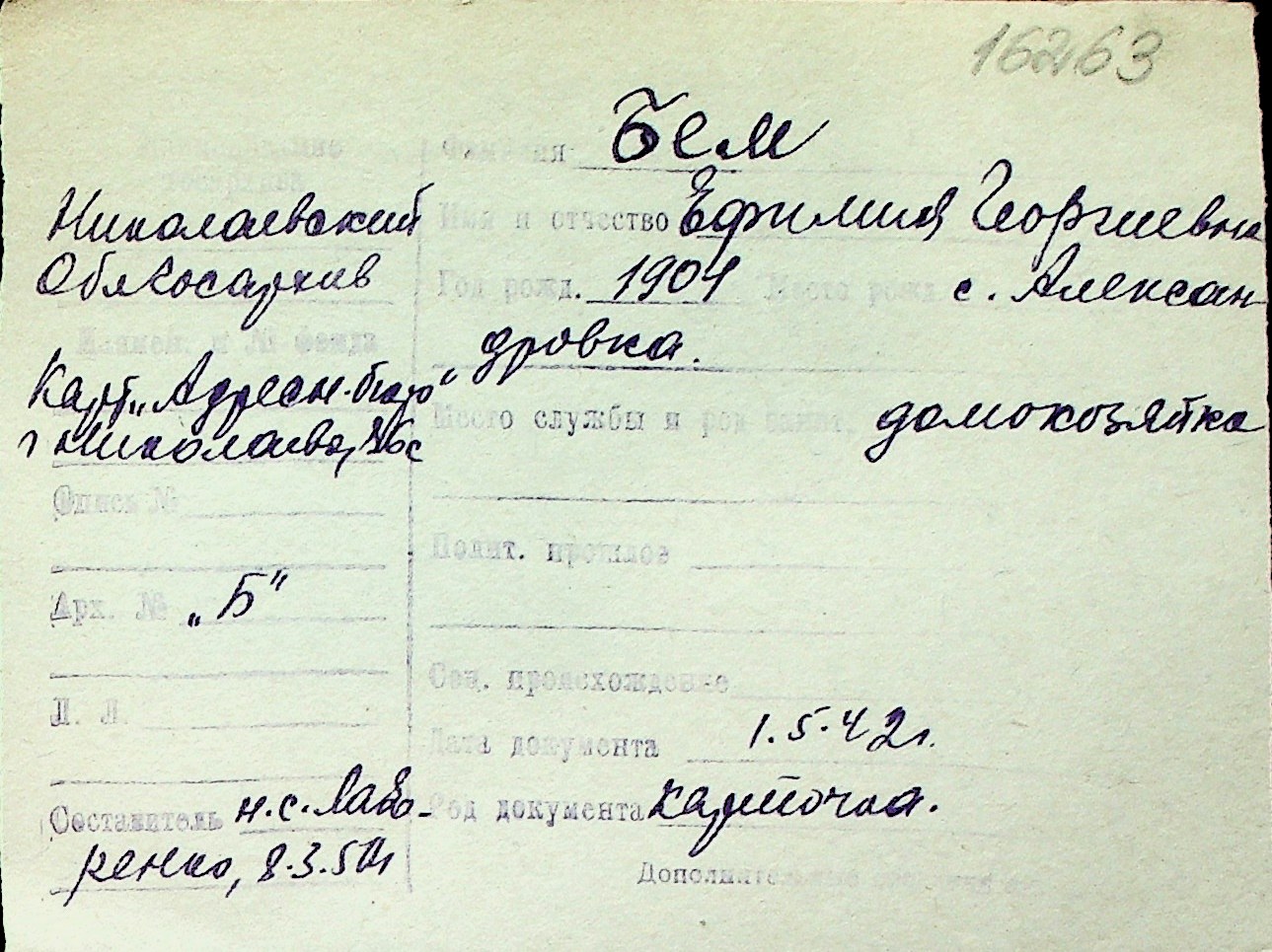 ◦ ◦ Перелік карток на осіб, які мешкали у м. Миколаїв у період окупації 1941–1944 років