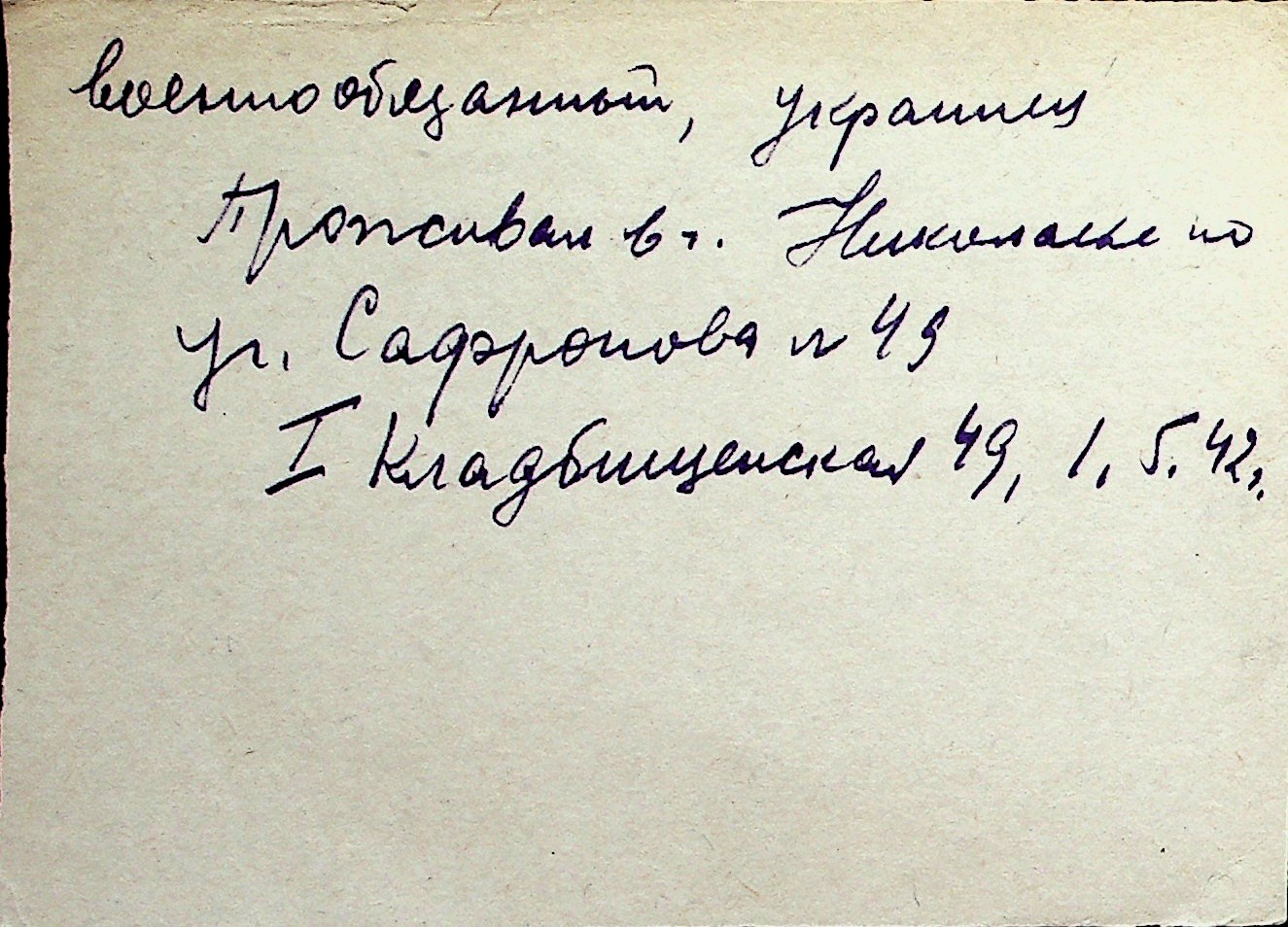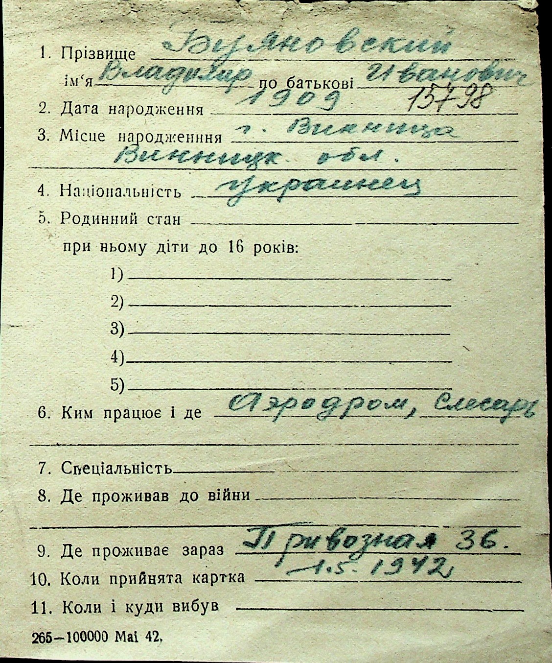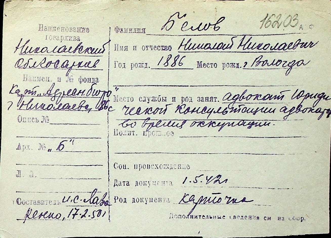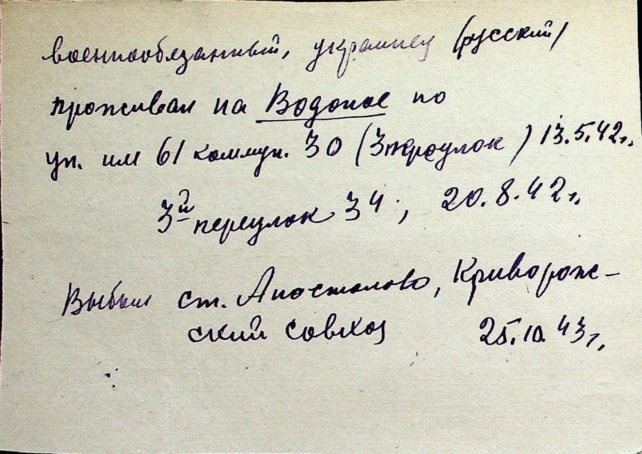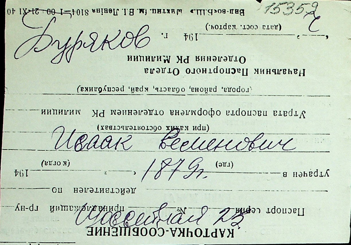 ◦ ◦ Перелік карток на осіб, які мешкали у м. Миколаїв у період окупації 1941–1944 років