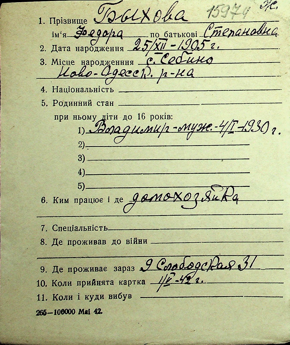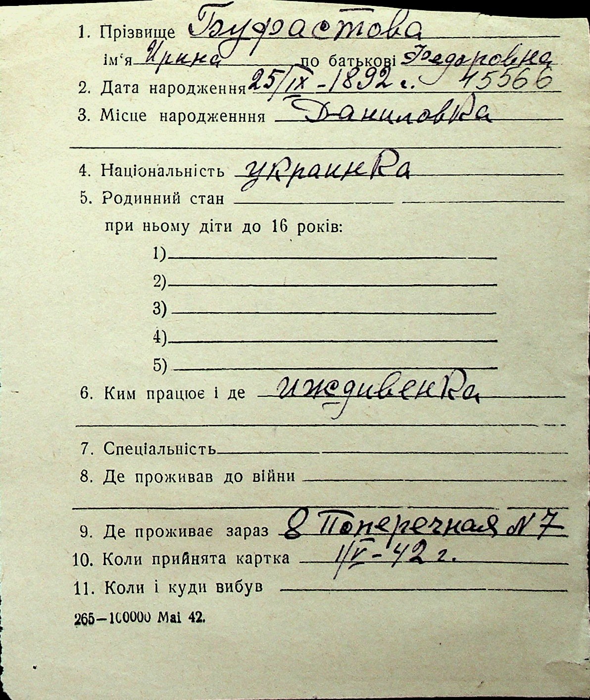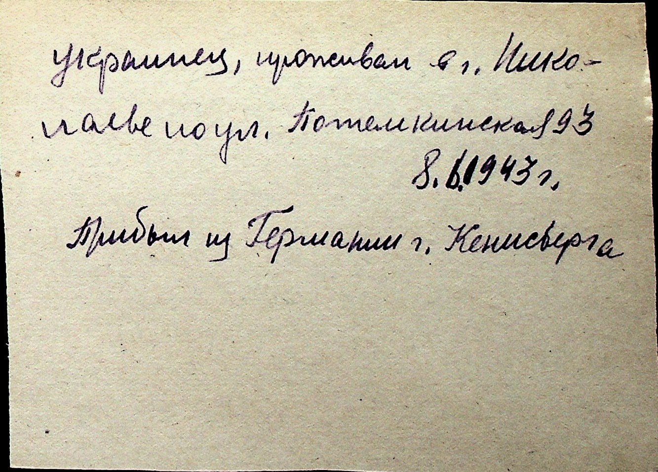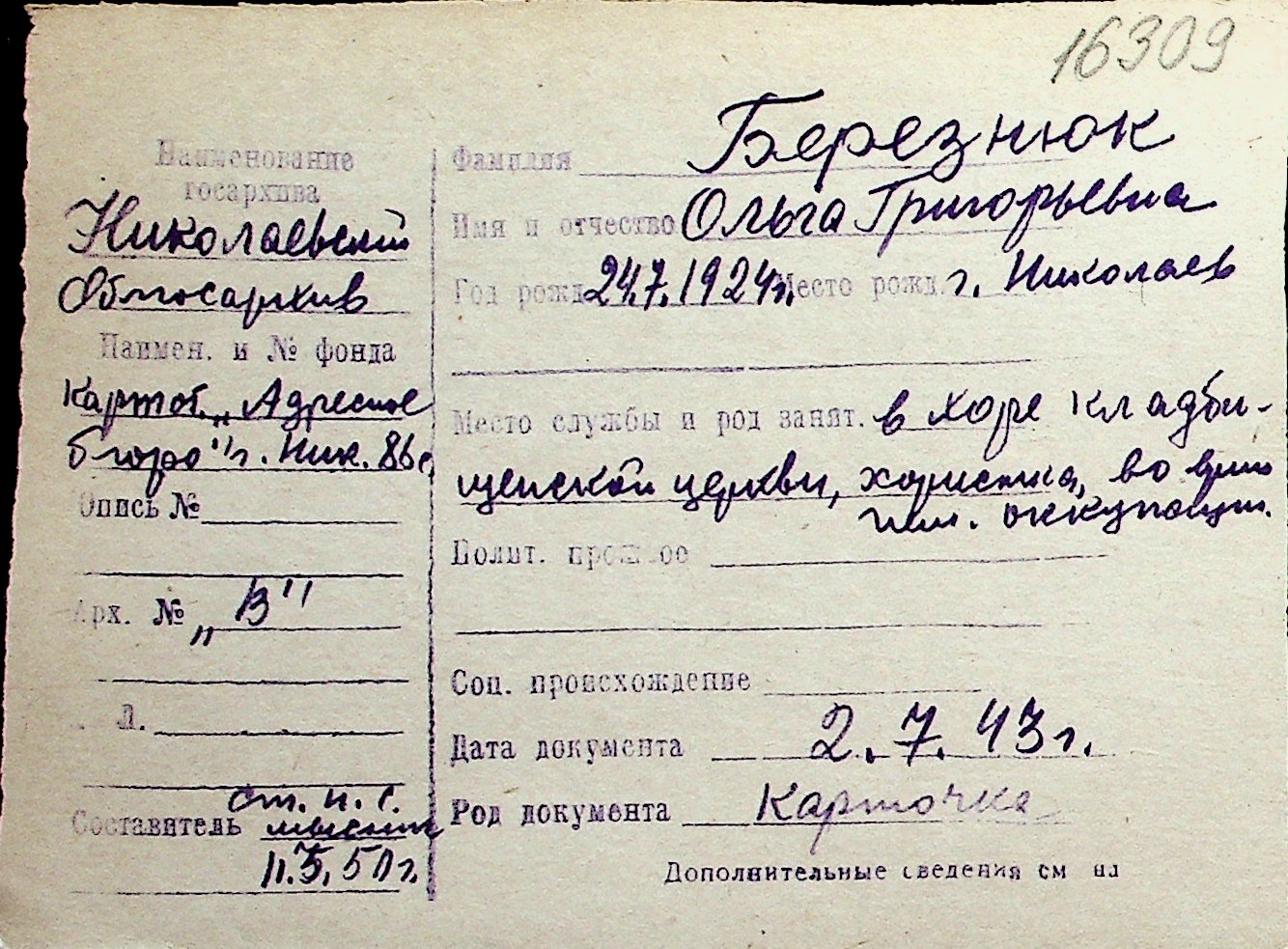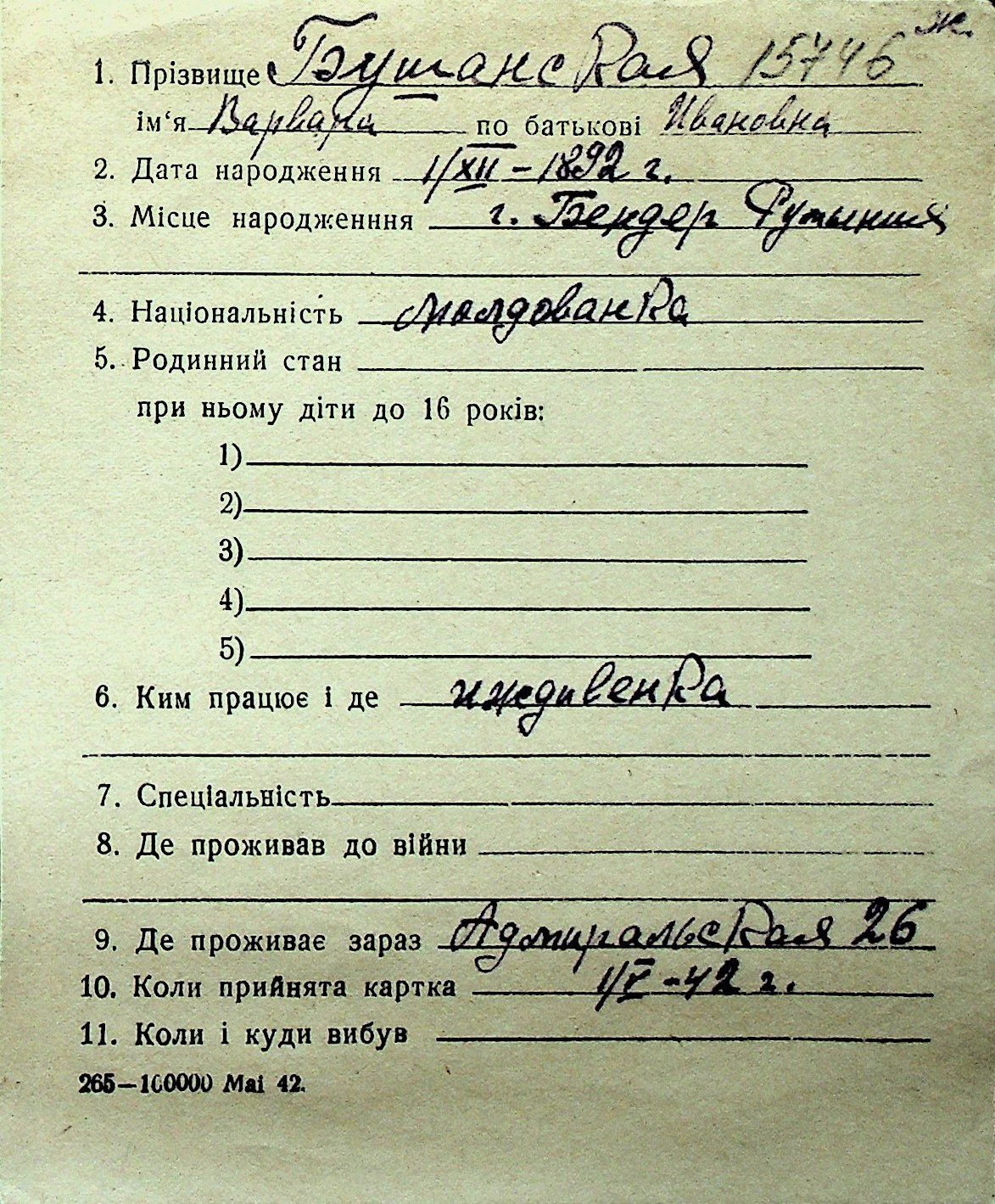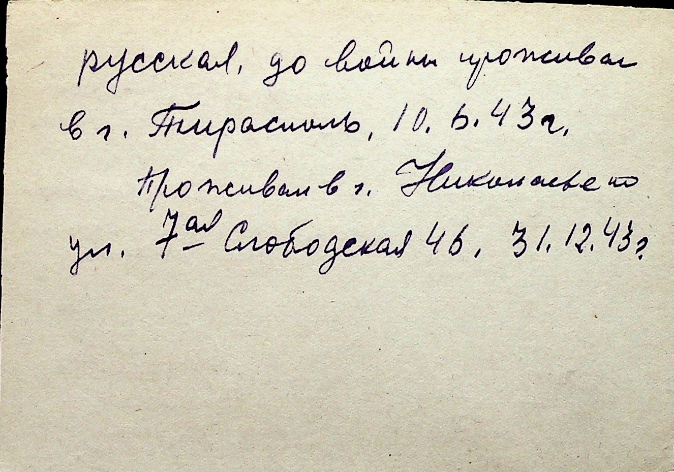 ◦ ◦ Перелік карток на осіб, які мешкали у м. Миколаїв у період окупації 1941–1944 років