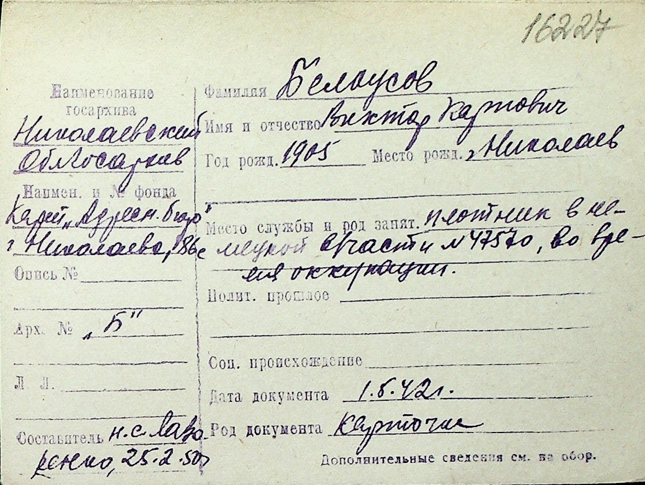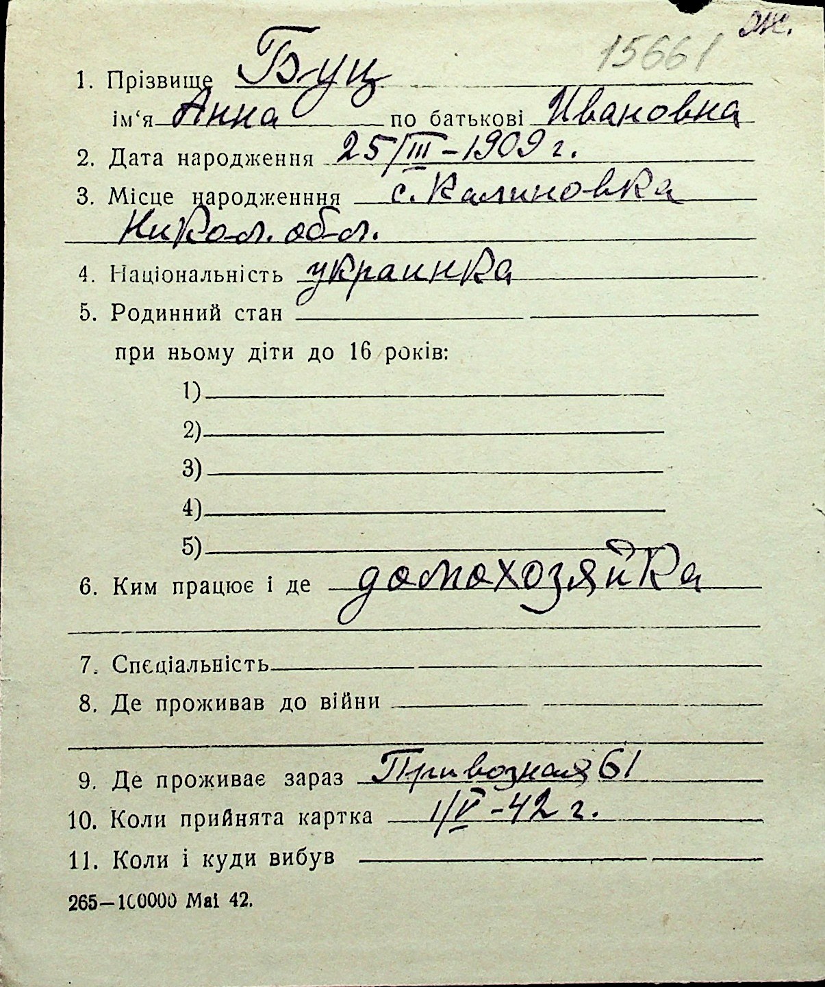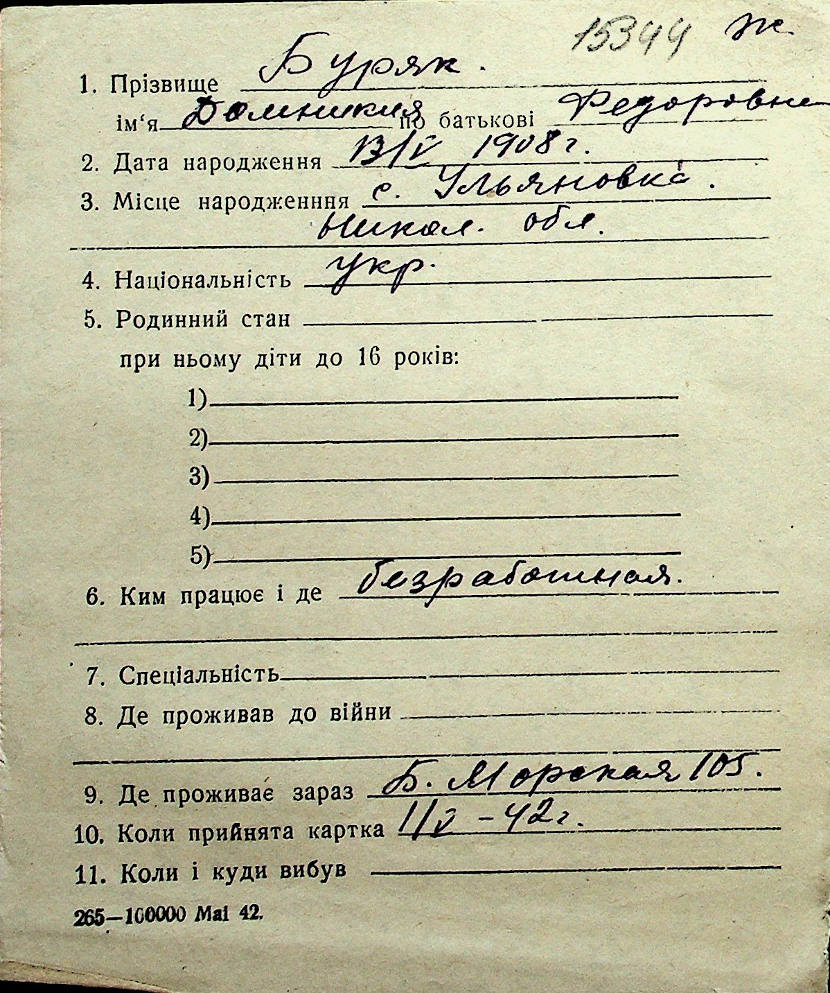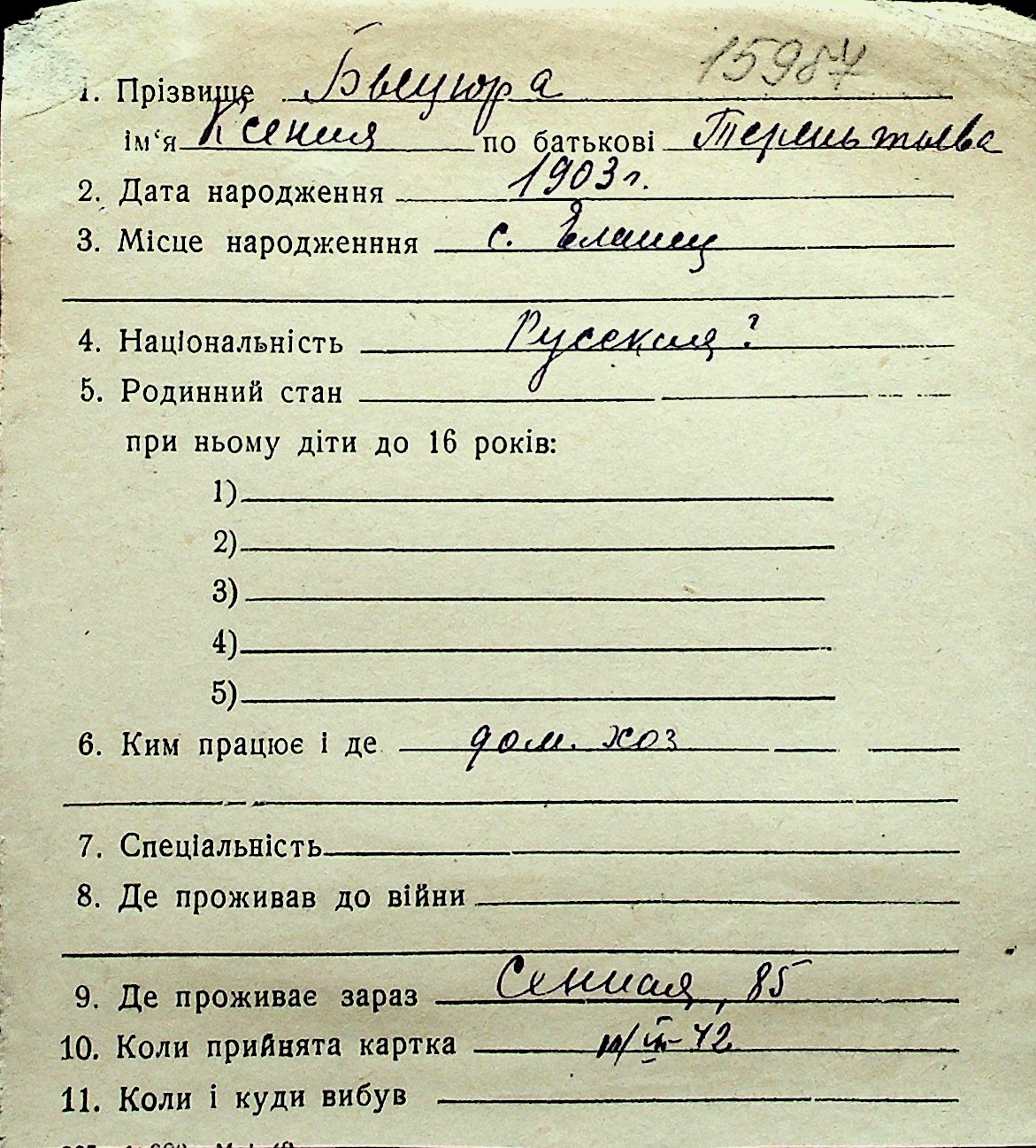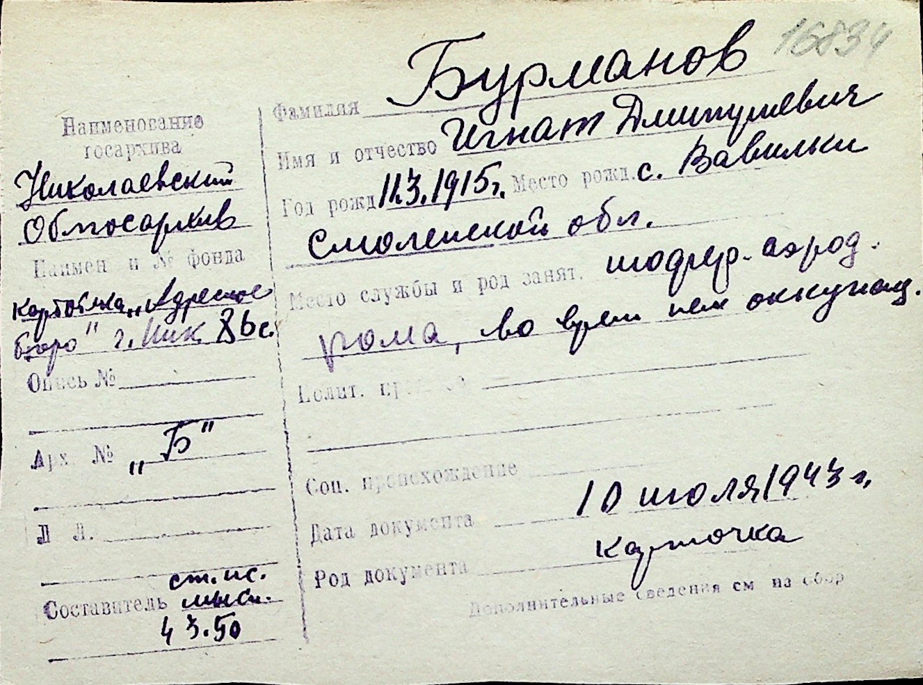◦ ◦ Перелік карток на осіб, які мешкали у м. Миколаїв у період окупації 1941–1944 років
