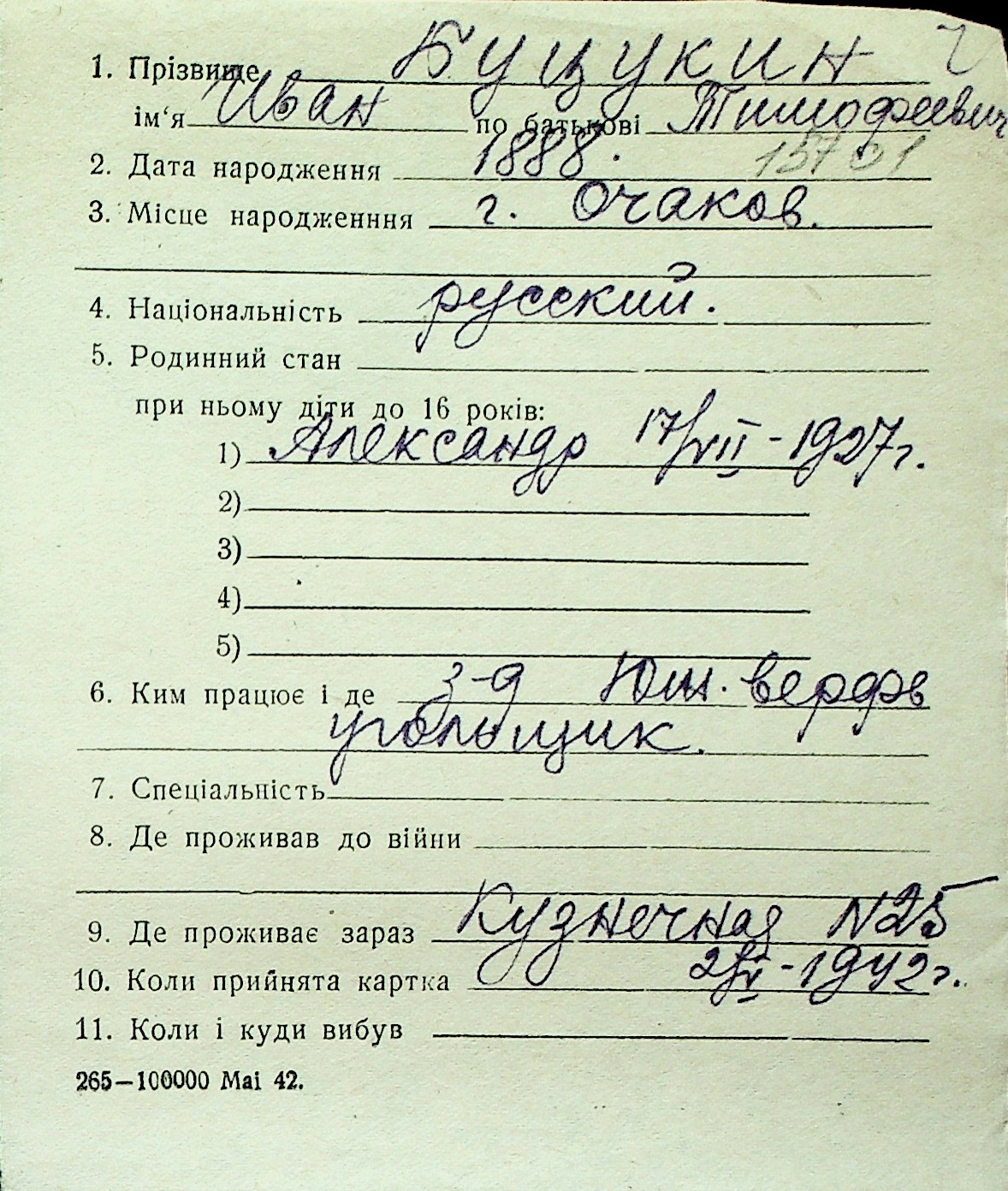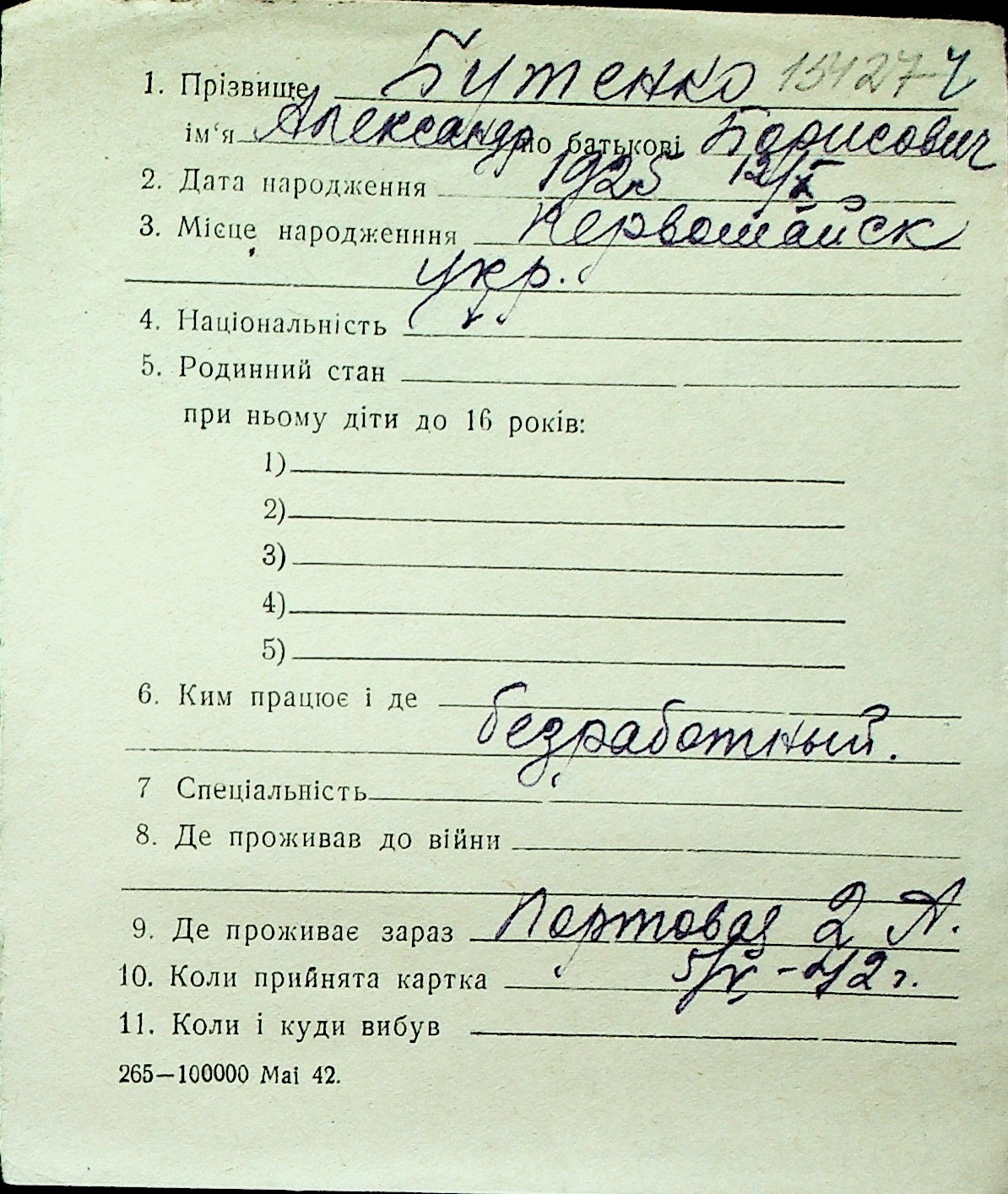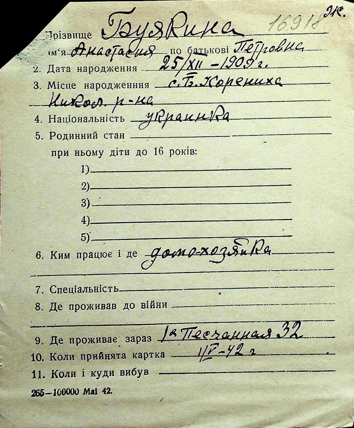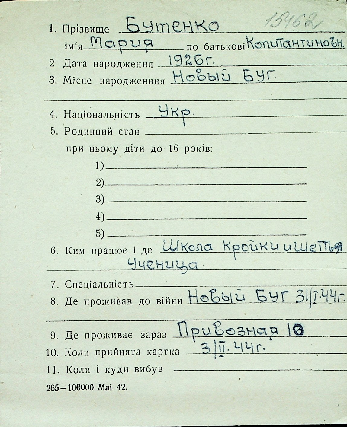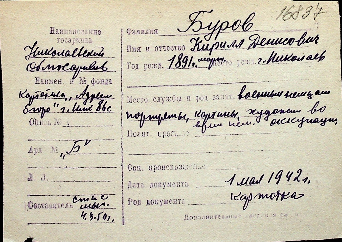 ◦ ◦ Перелік карток на осіб, які мешкали у м. Миколаїв у період окупації 1941–1944 років
