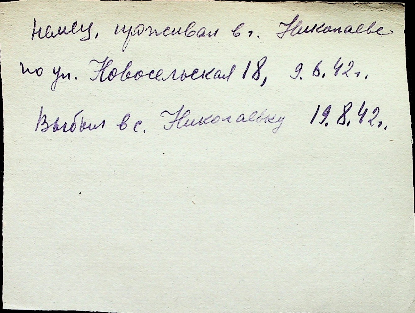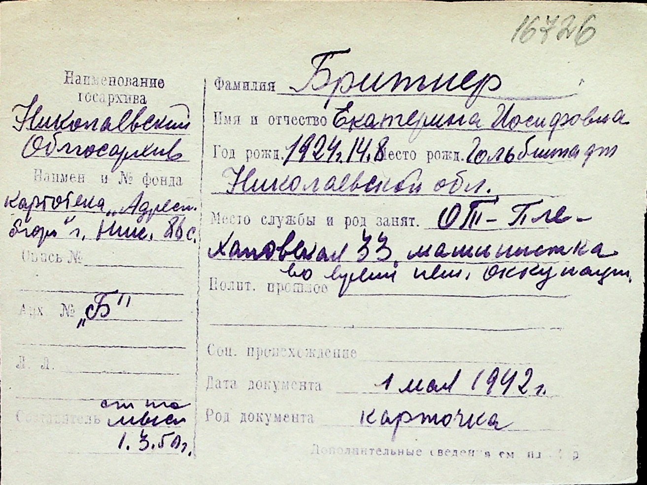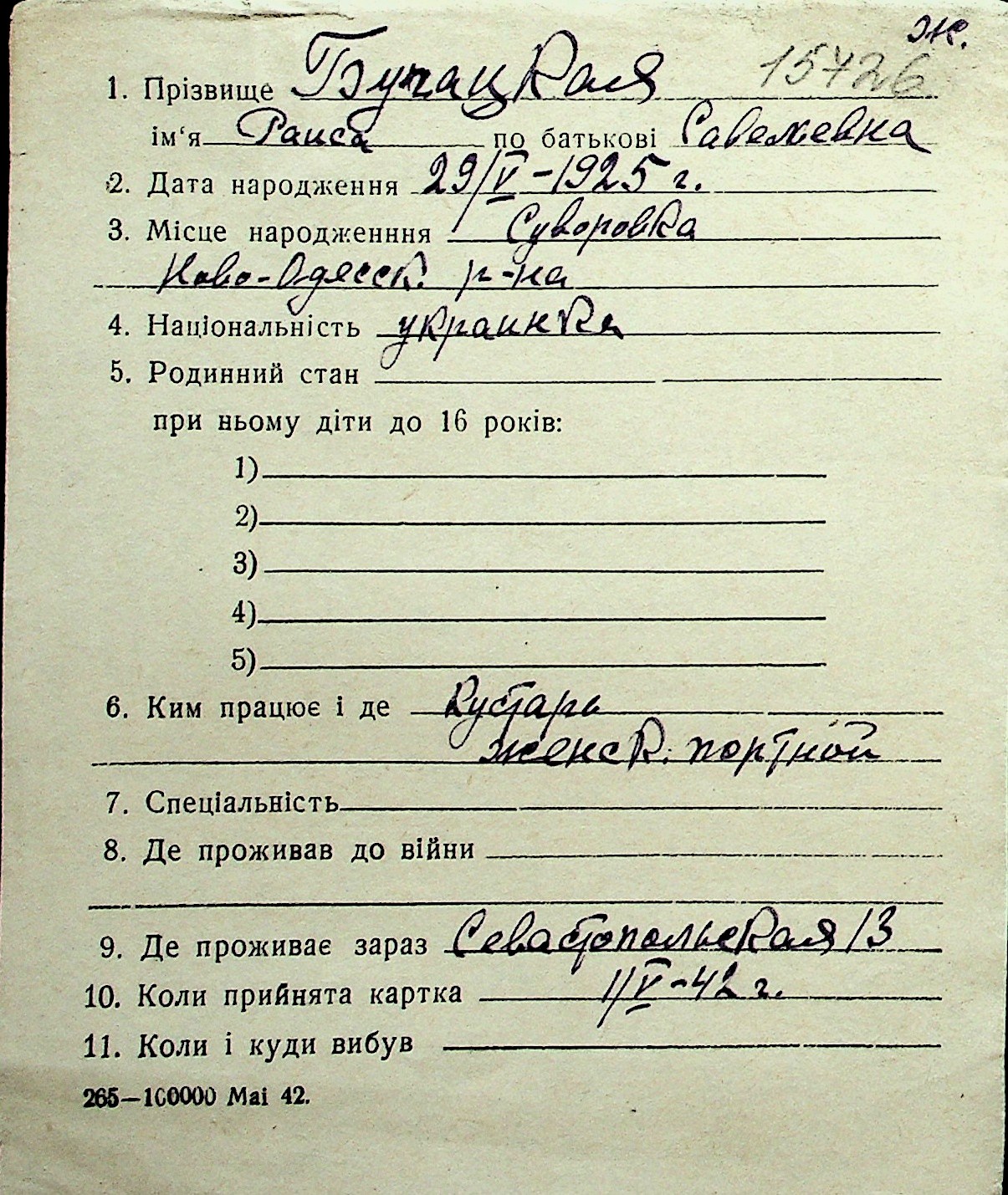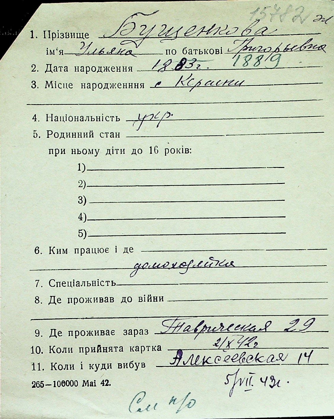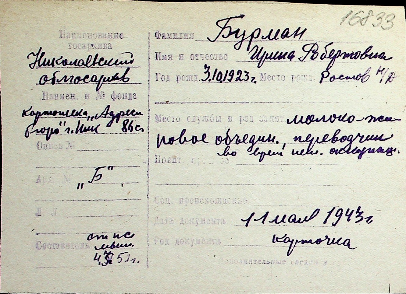 ◦ ◦ Перелік карток на осіб, які мешкали у м. Миколаїв у період окупації 1941–1944 років