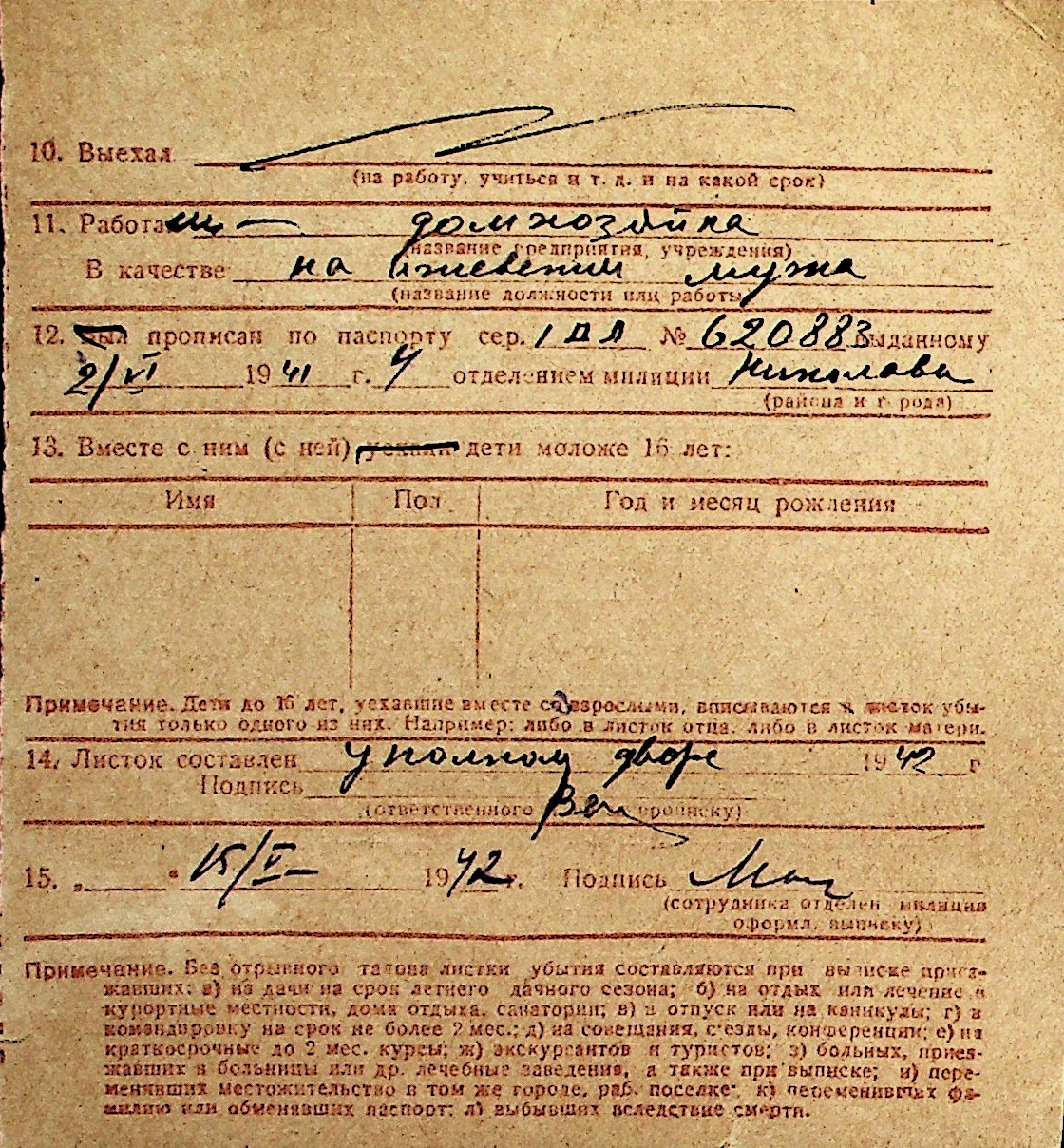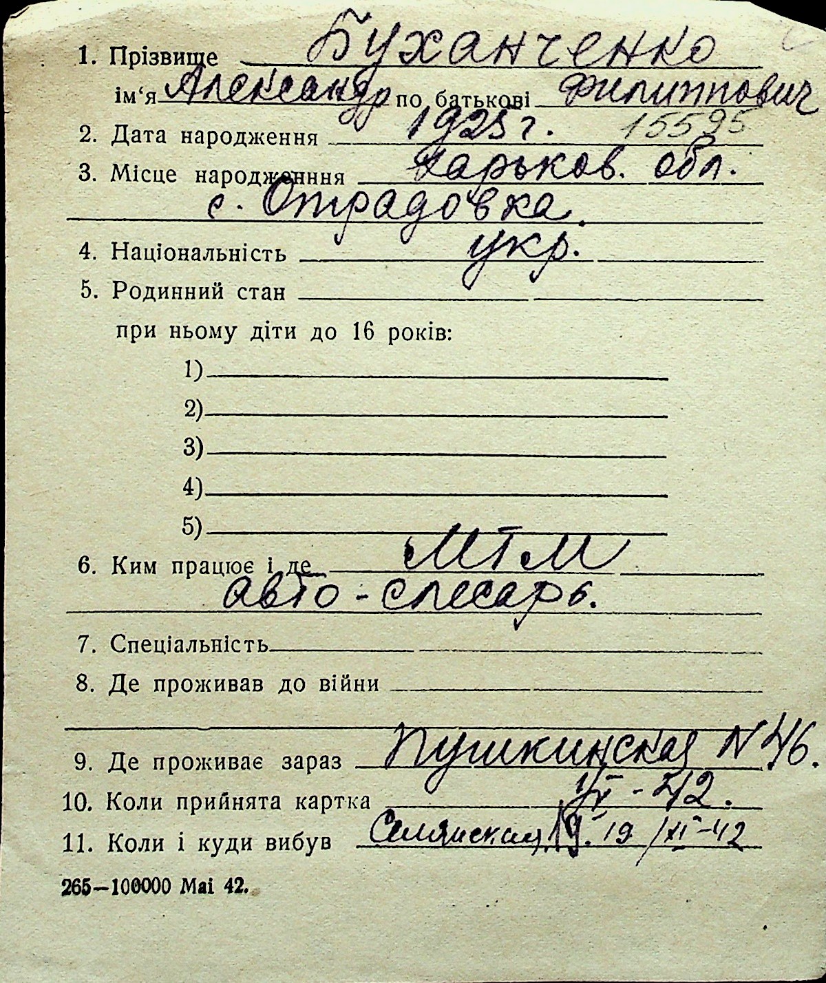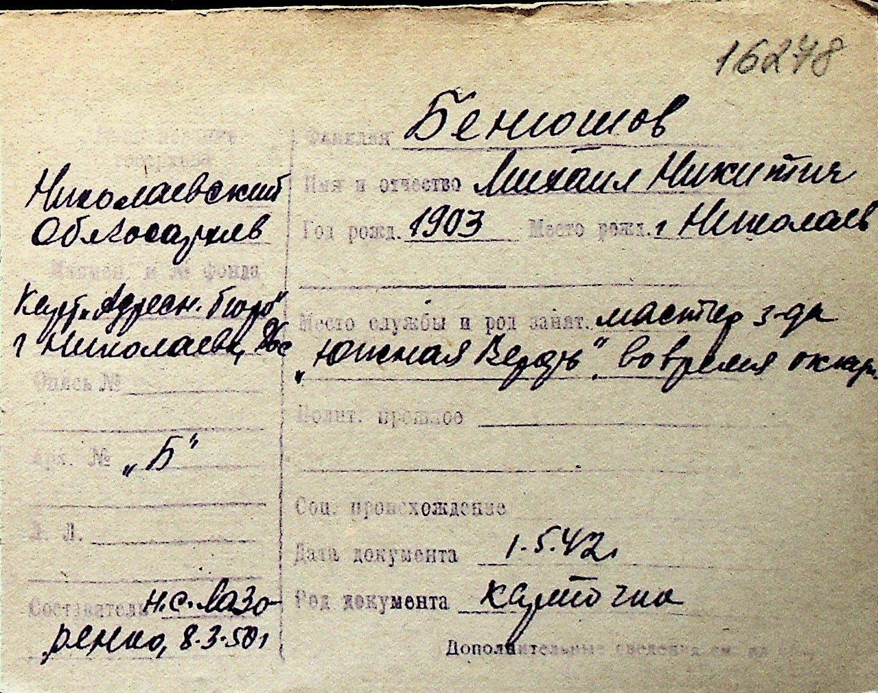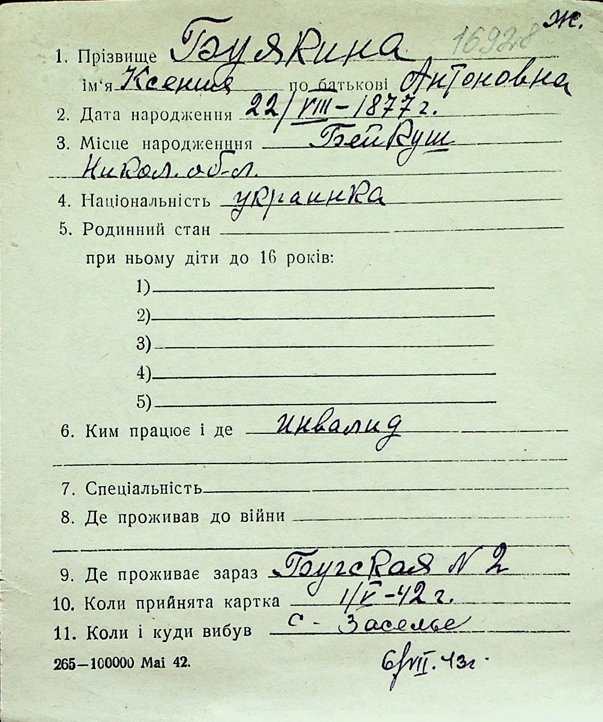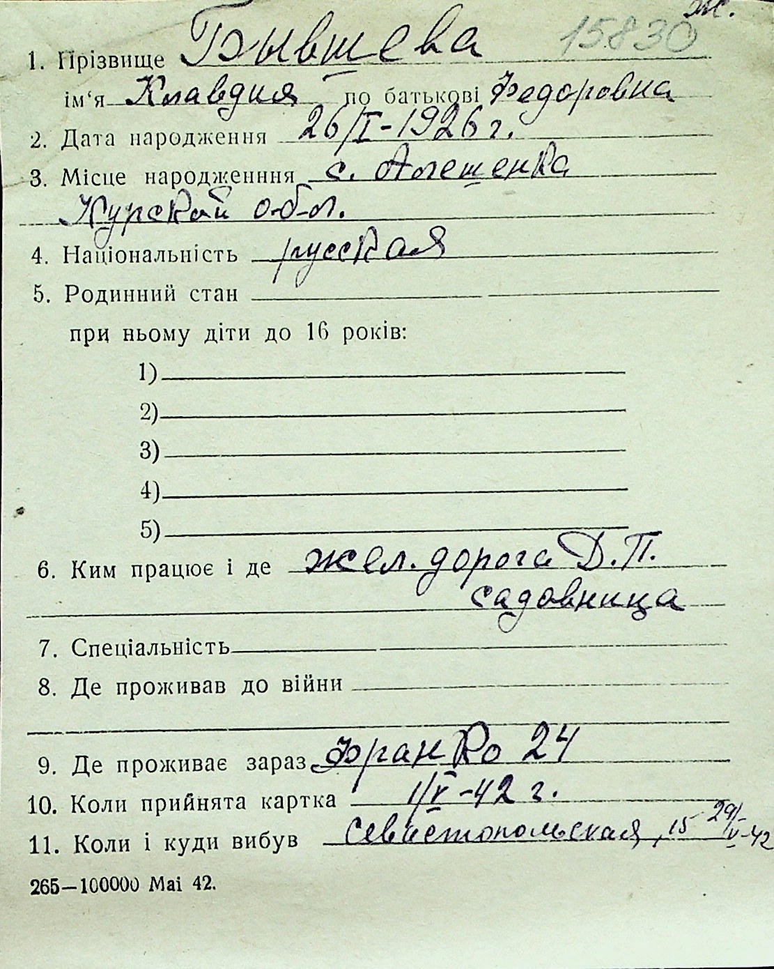 ◦ ◦ Перелік карток на осіб, які мешкали у м. Миколаїв у період окупації 1941–1944 років