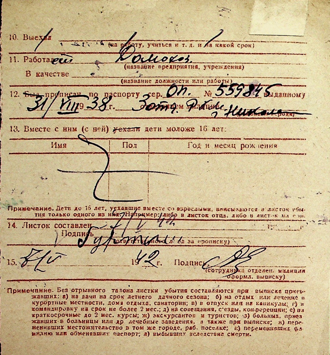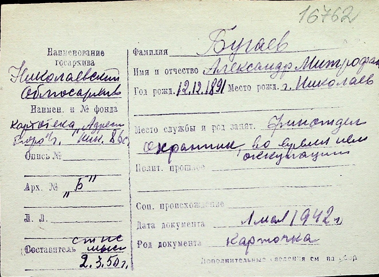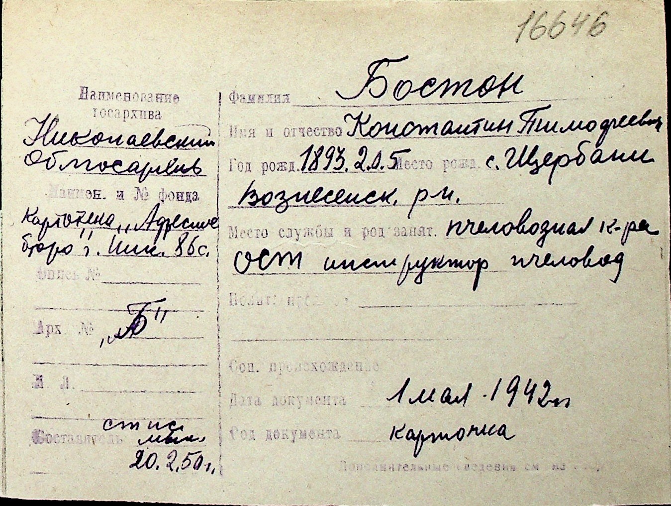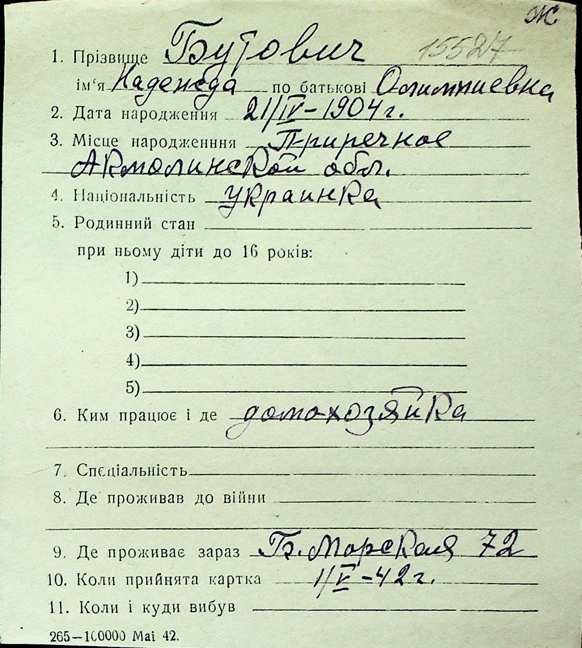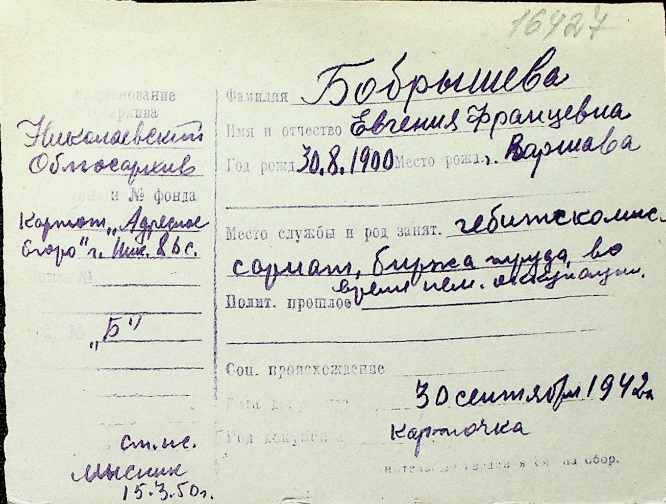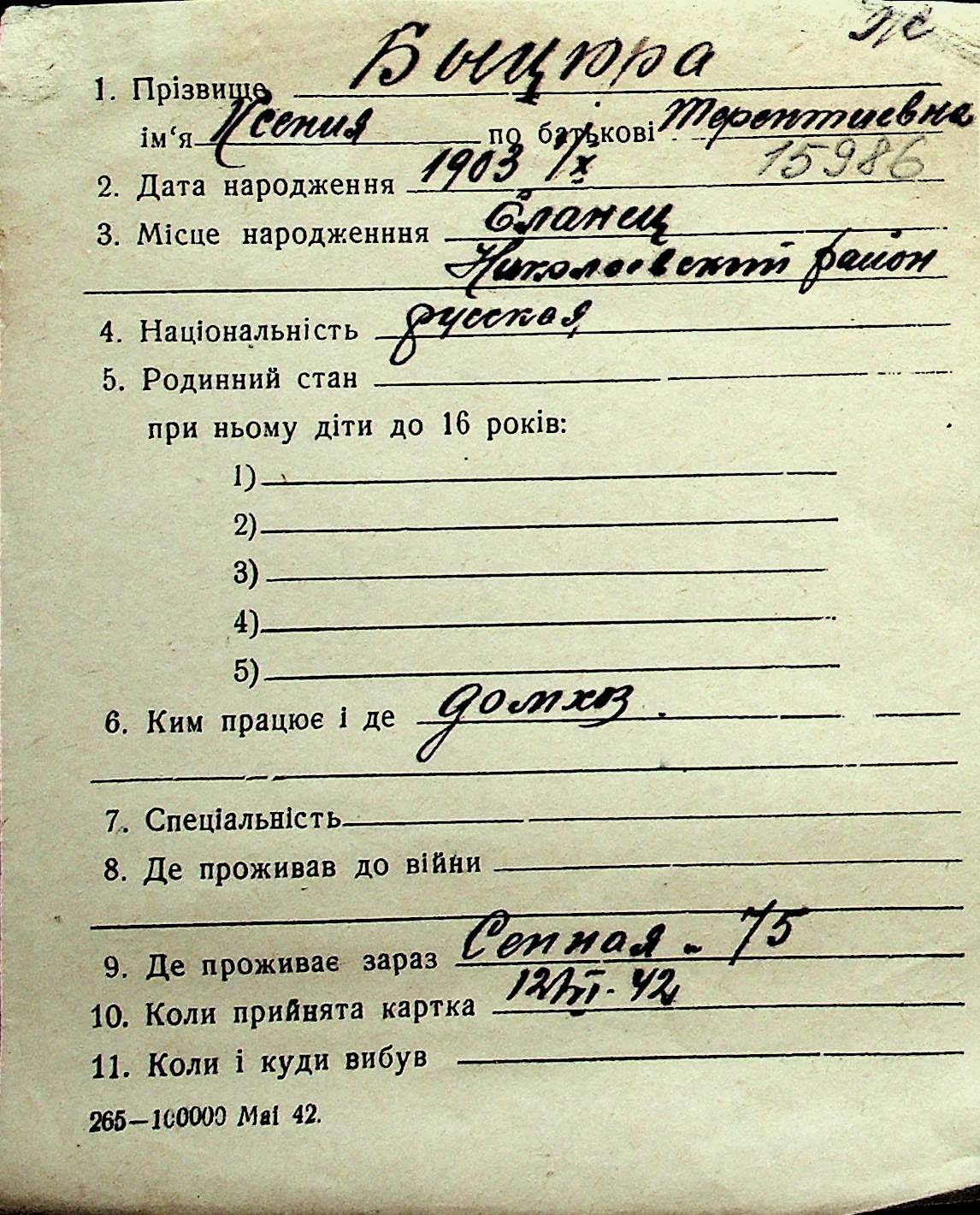 ◦ ◦ Перелік карток на осіб, які мешкали у м. Миколаїв у період окупації 1941–1944 років