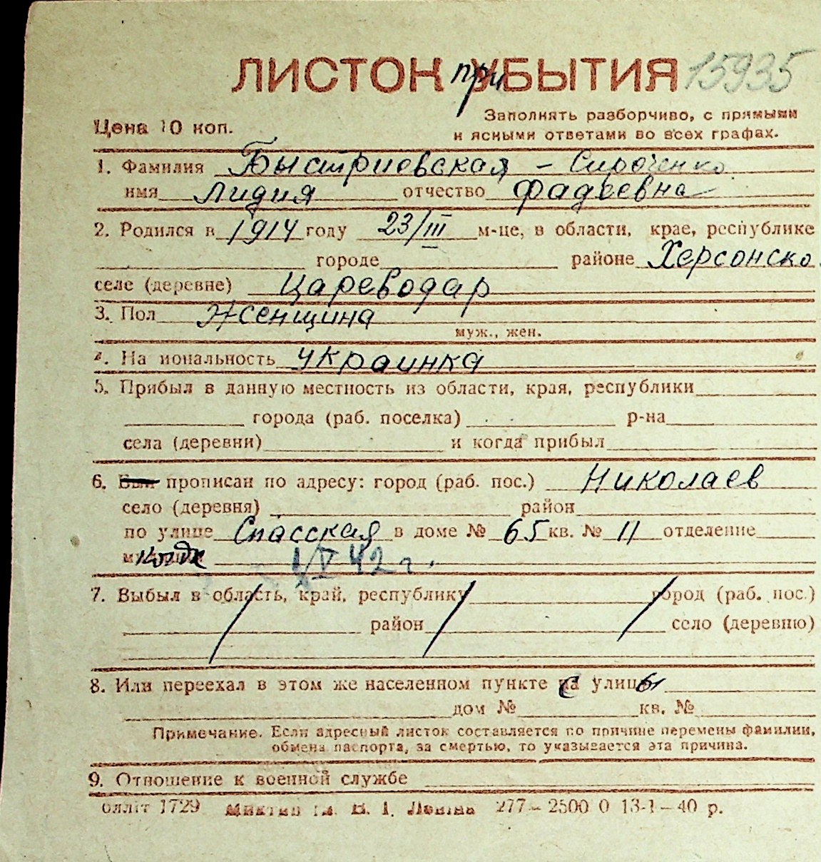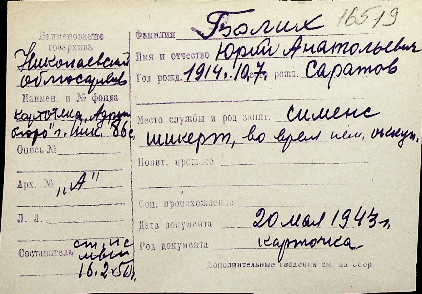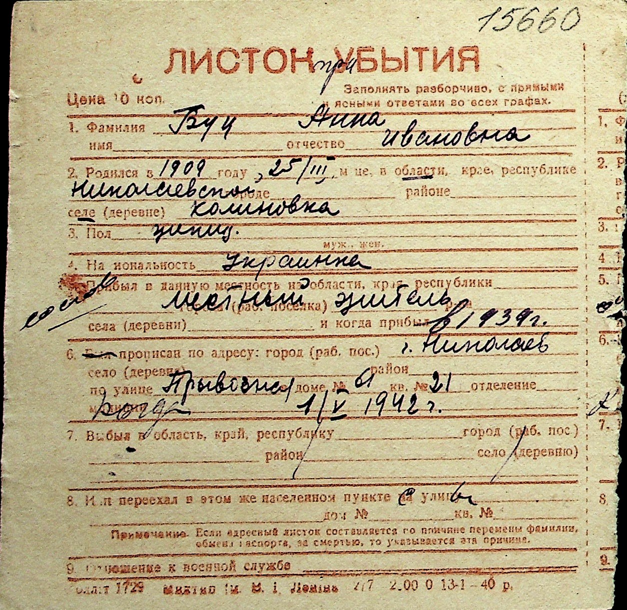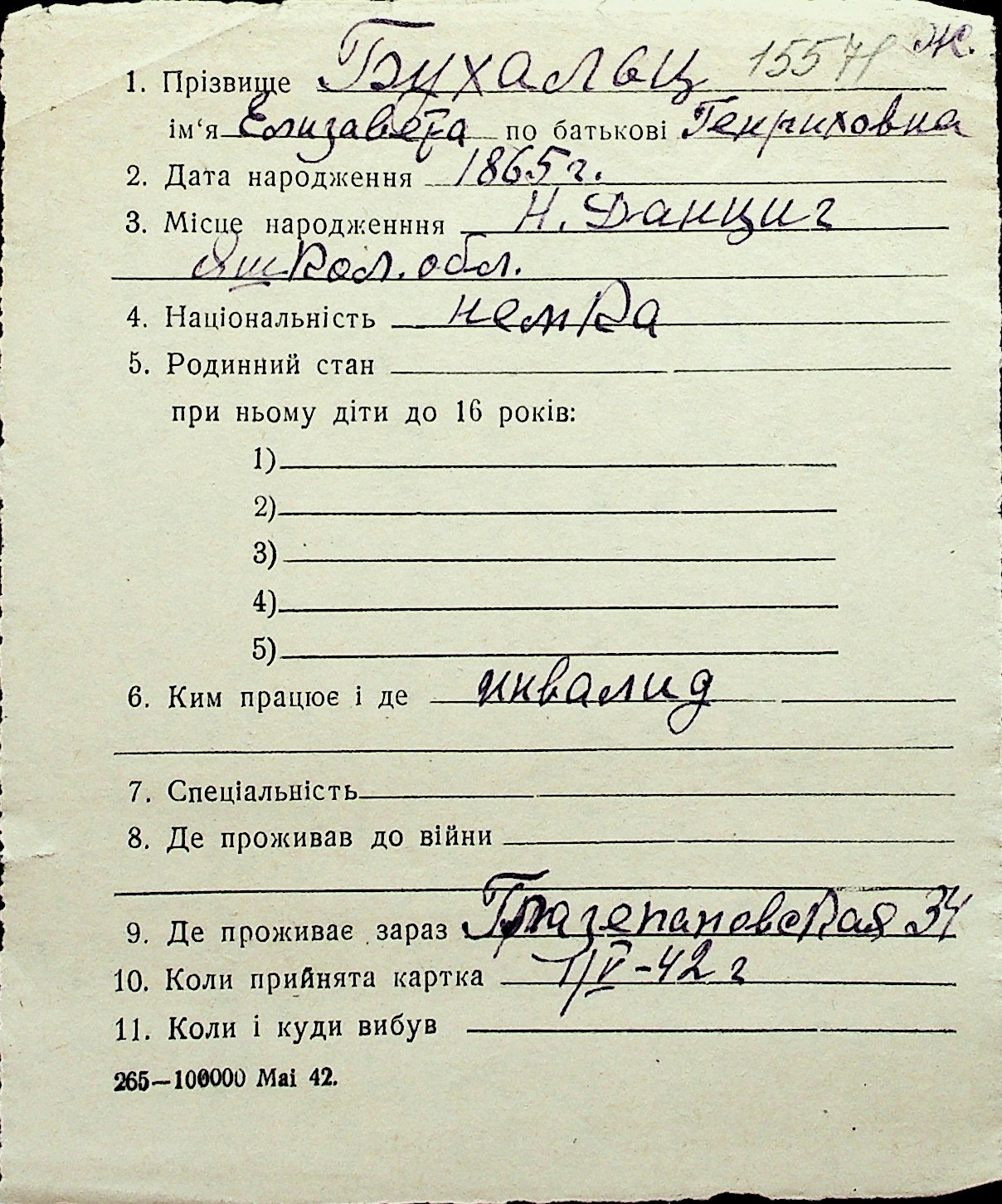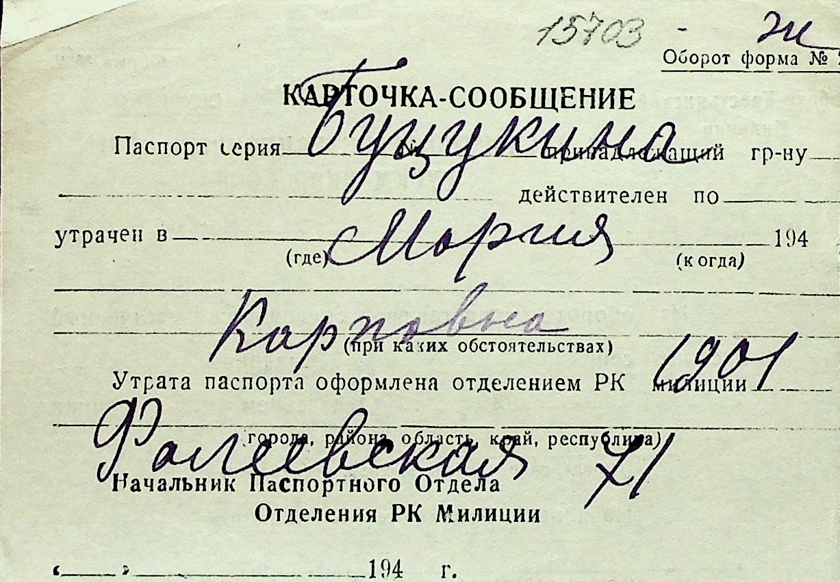 ◦ ◦ Перелік карток на осіб, які мешкали у м. Миколаїв у період окупації 1941–1944 років