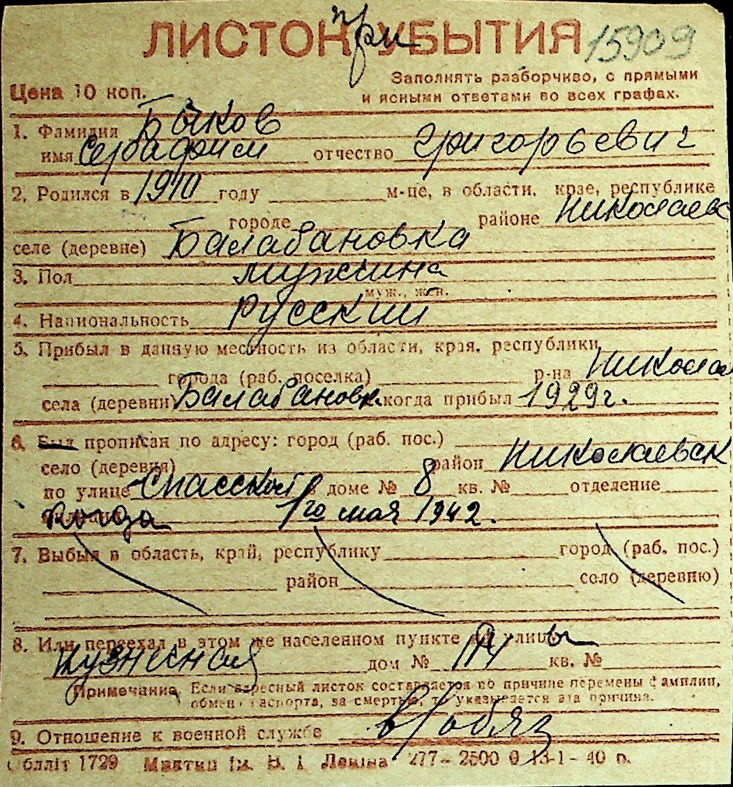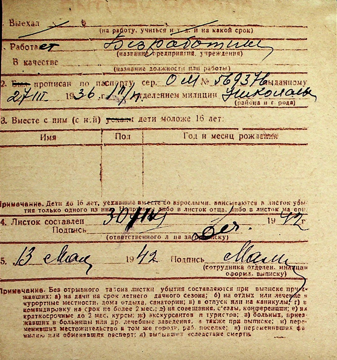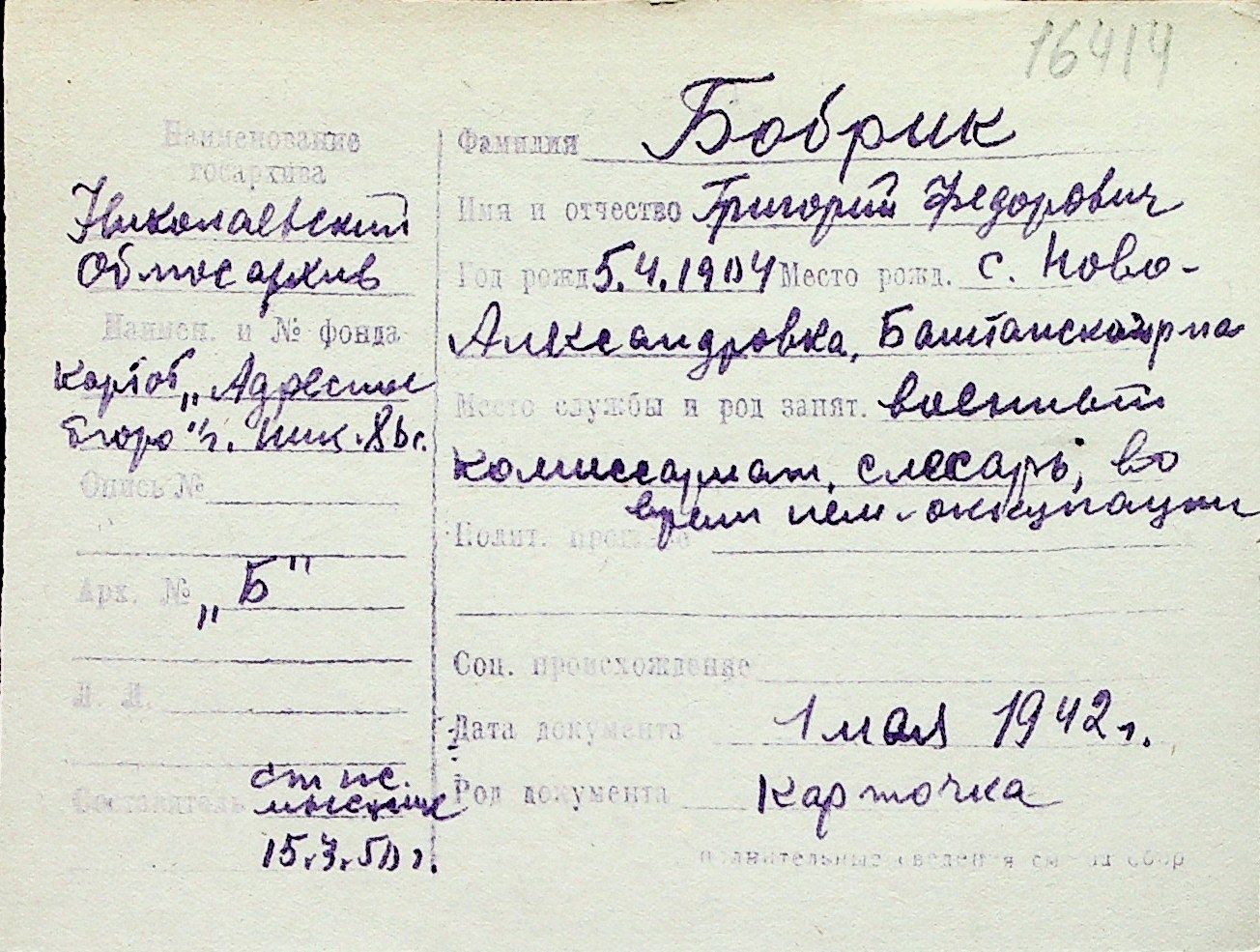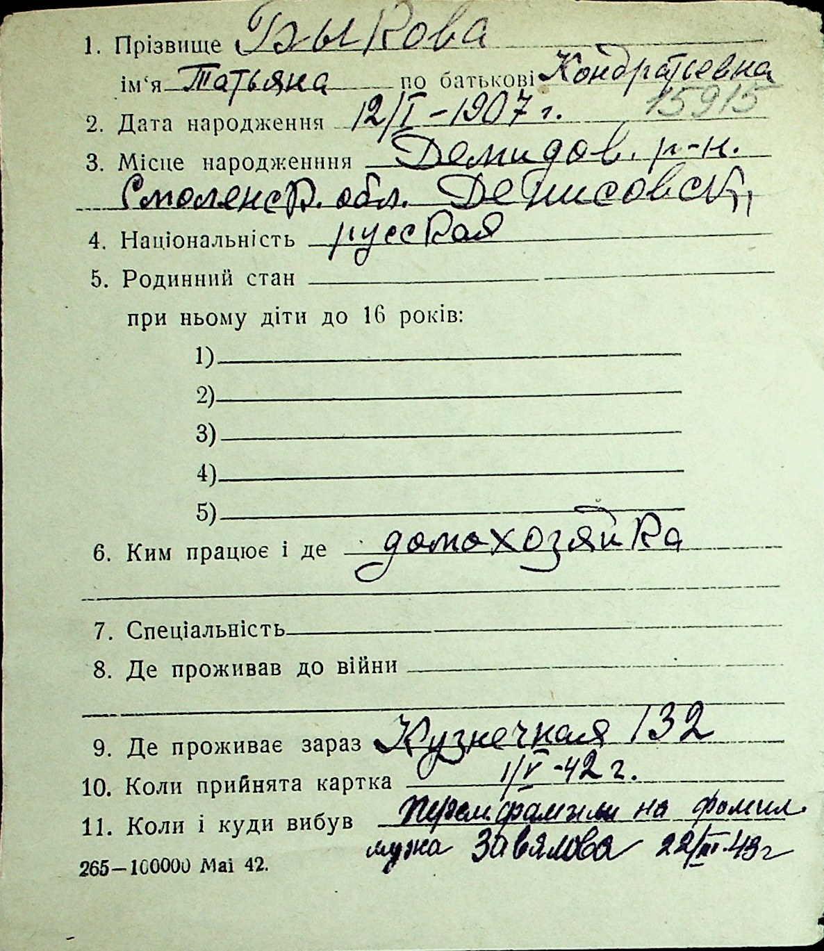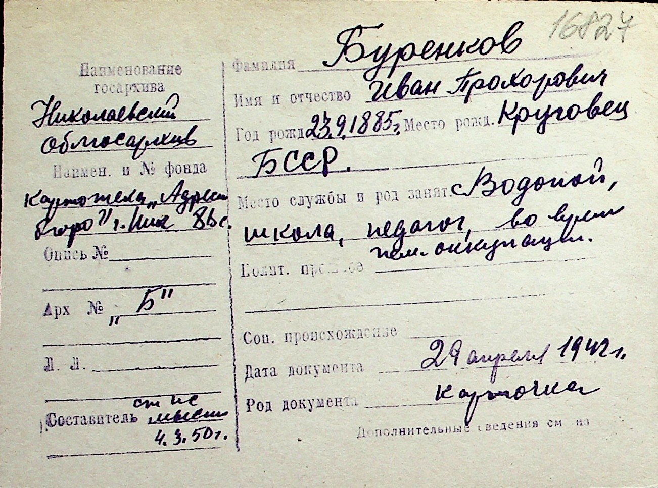◦ ◦ Перелік карток на осіб, які мешкали у м. Миколаїв у період окупації 1941–1944 років