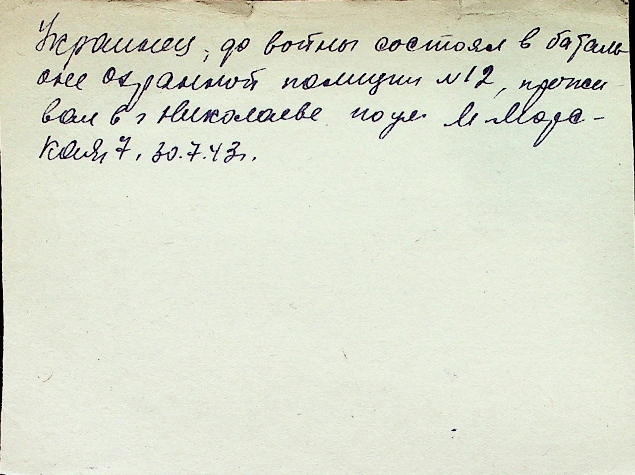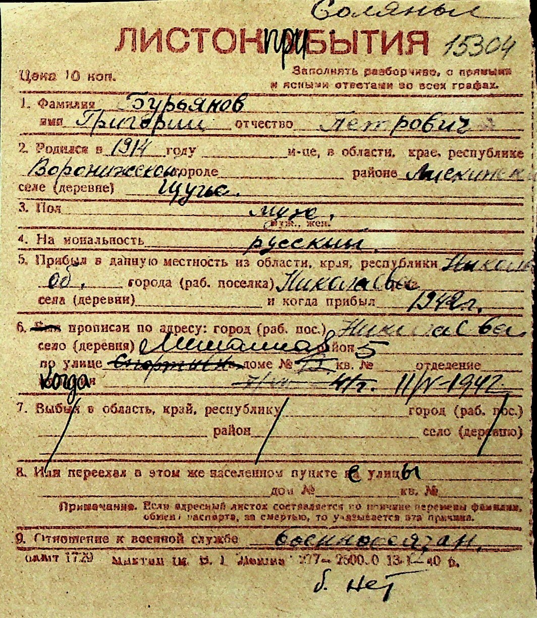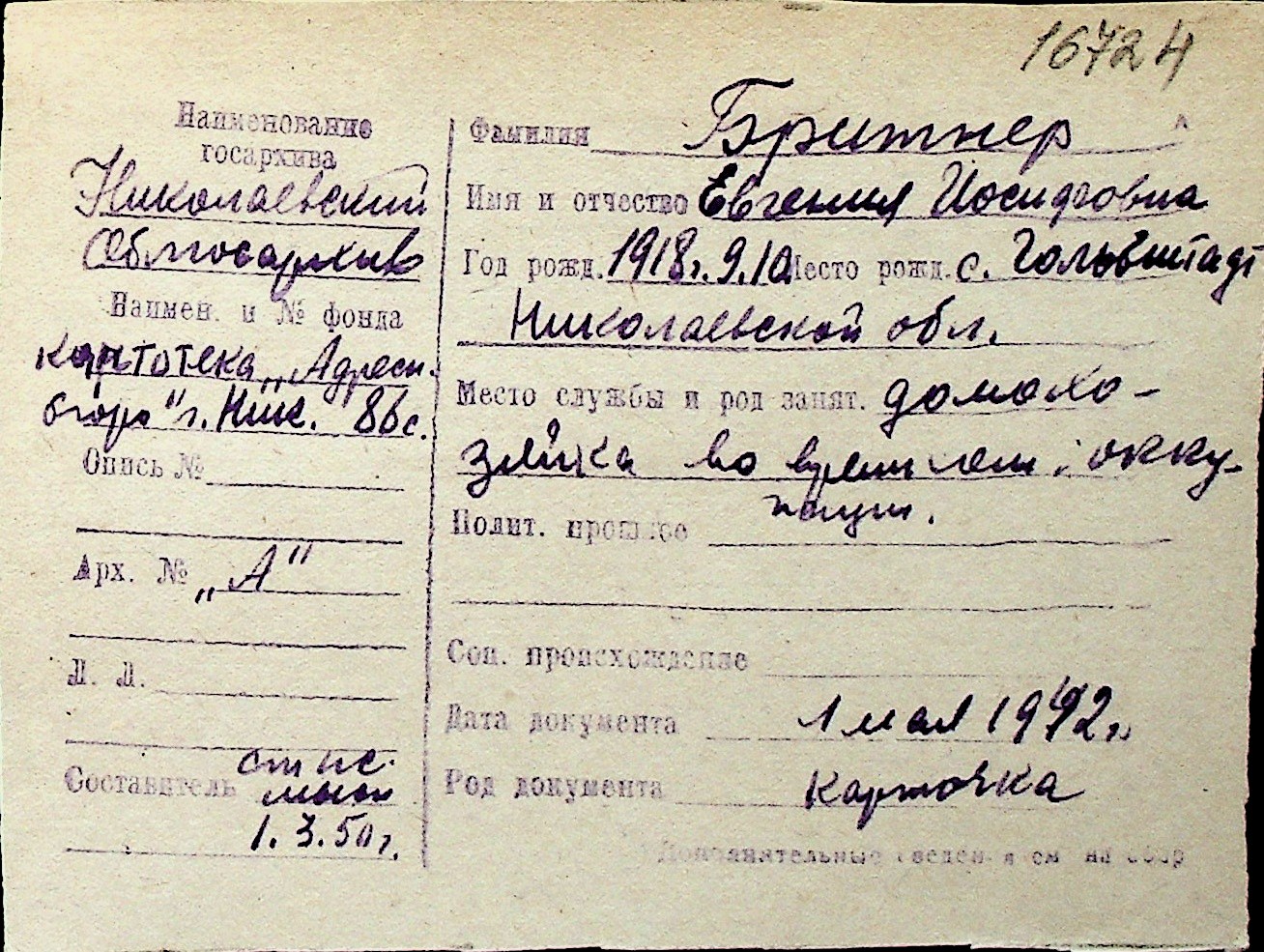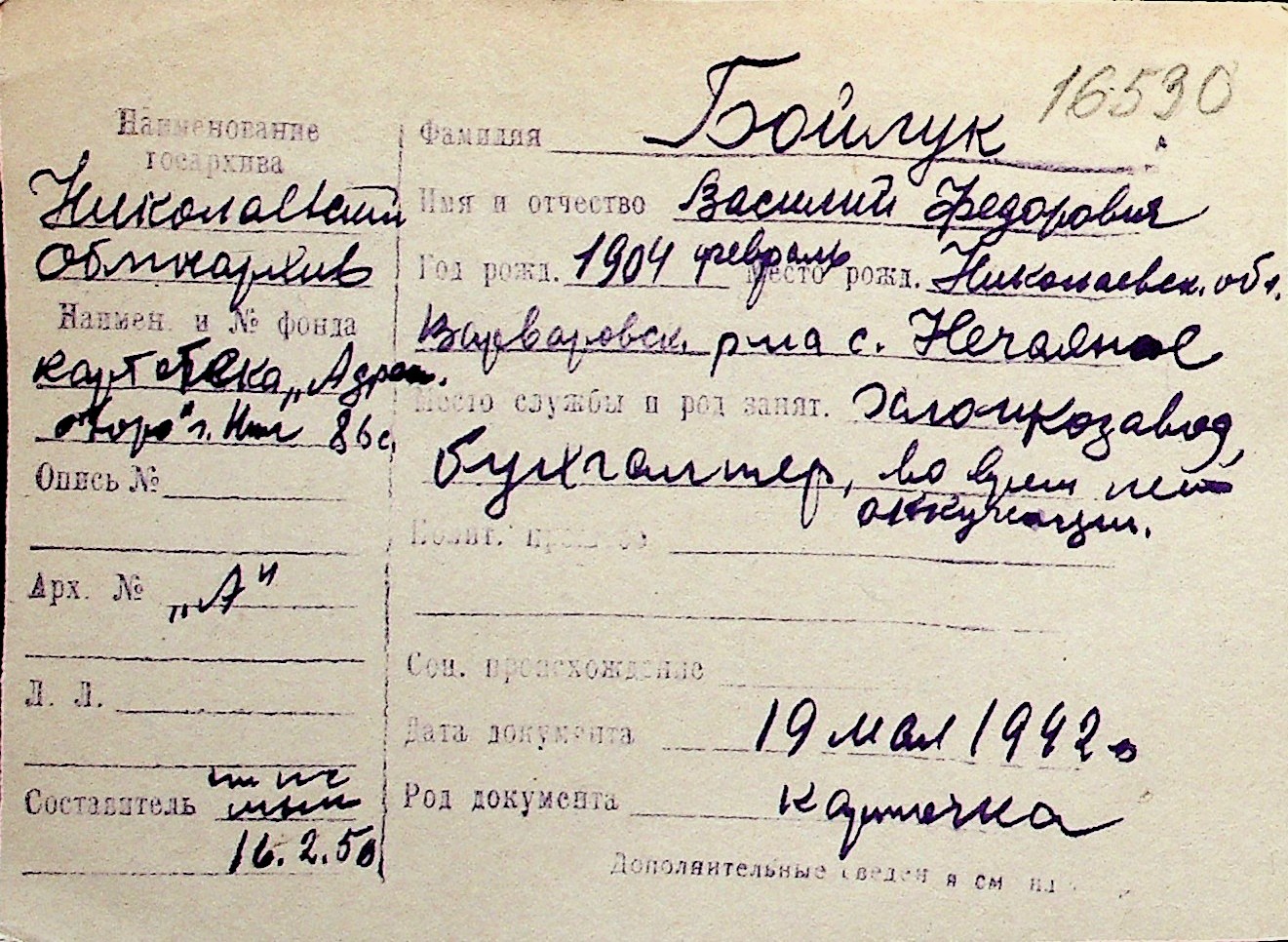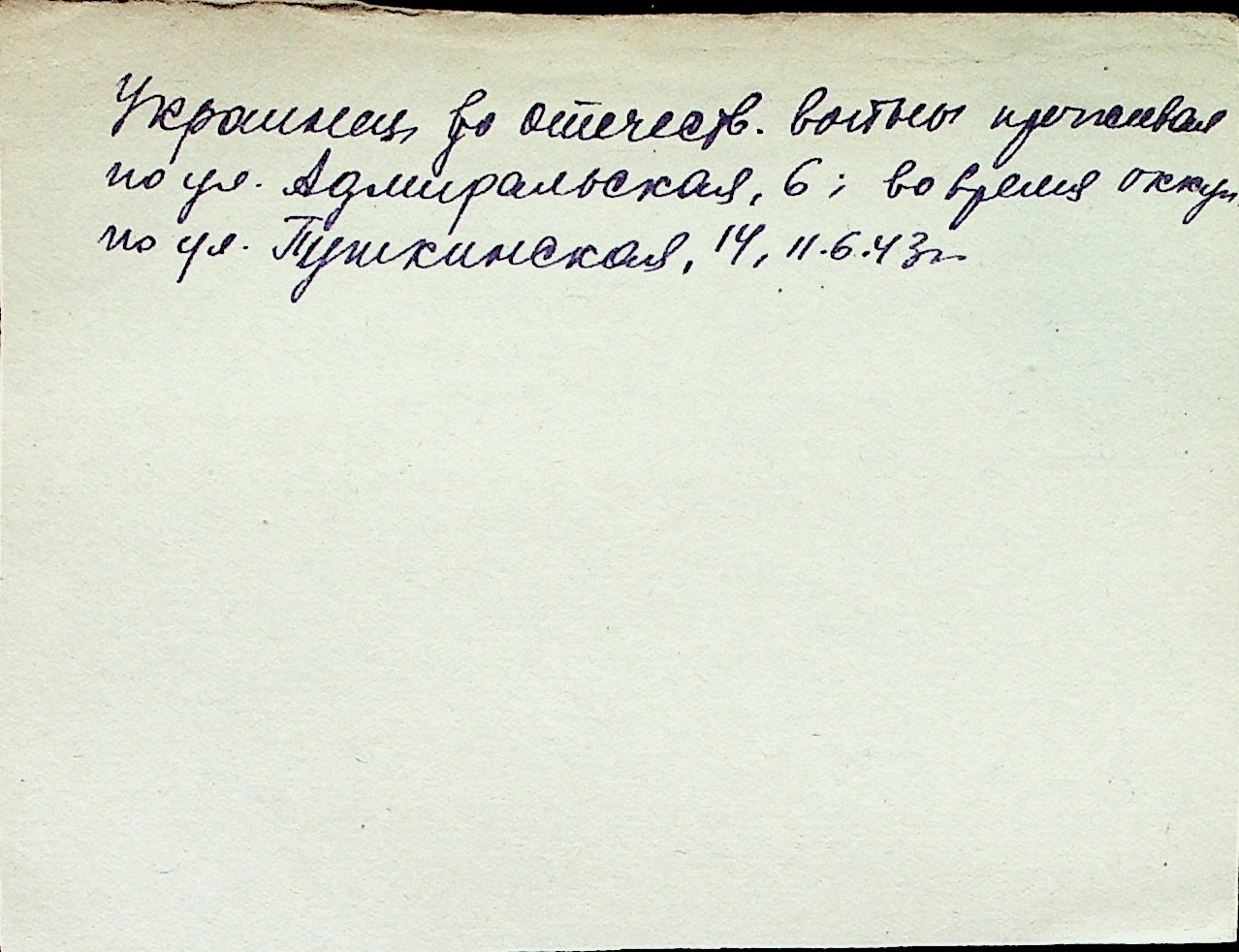 ◦ ◦ Перелік карток на осіб, які мешкали у м. Миколаїв у період окупації 1941–1944 років
