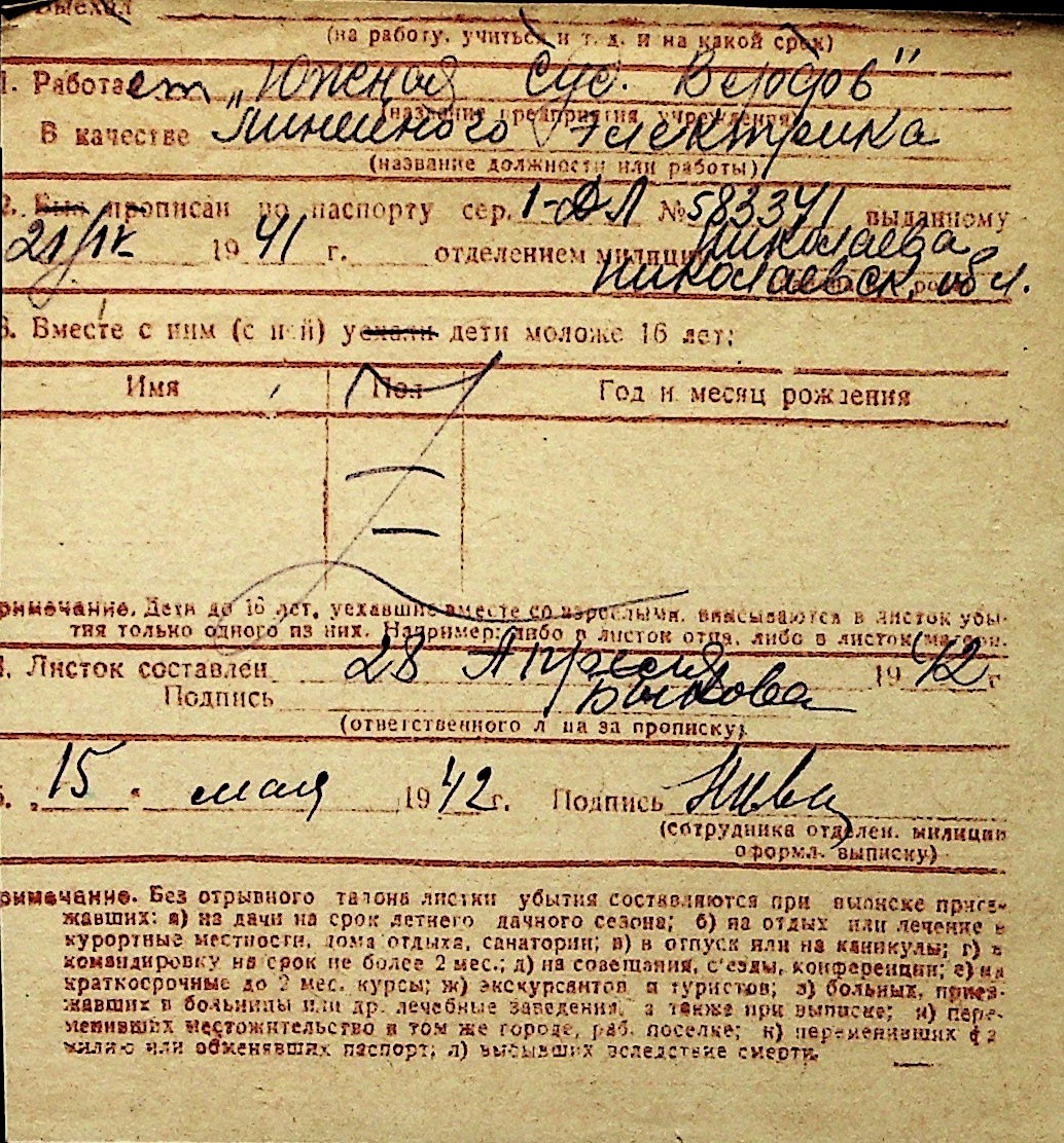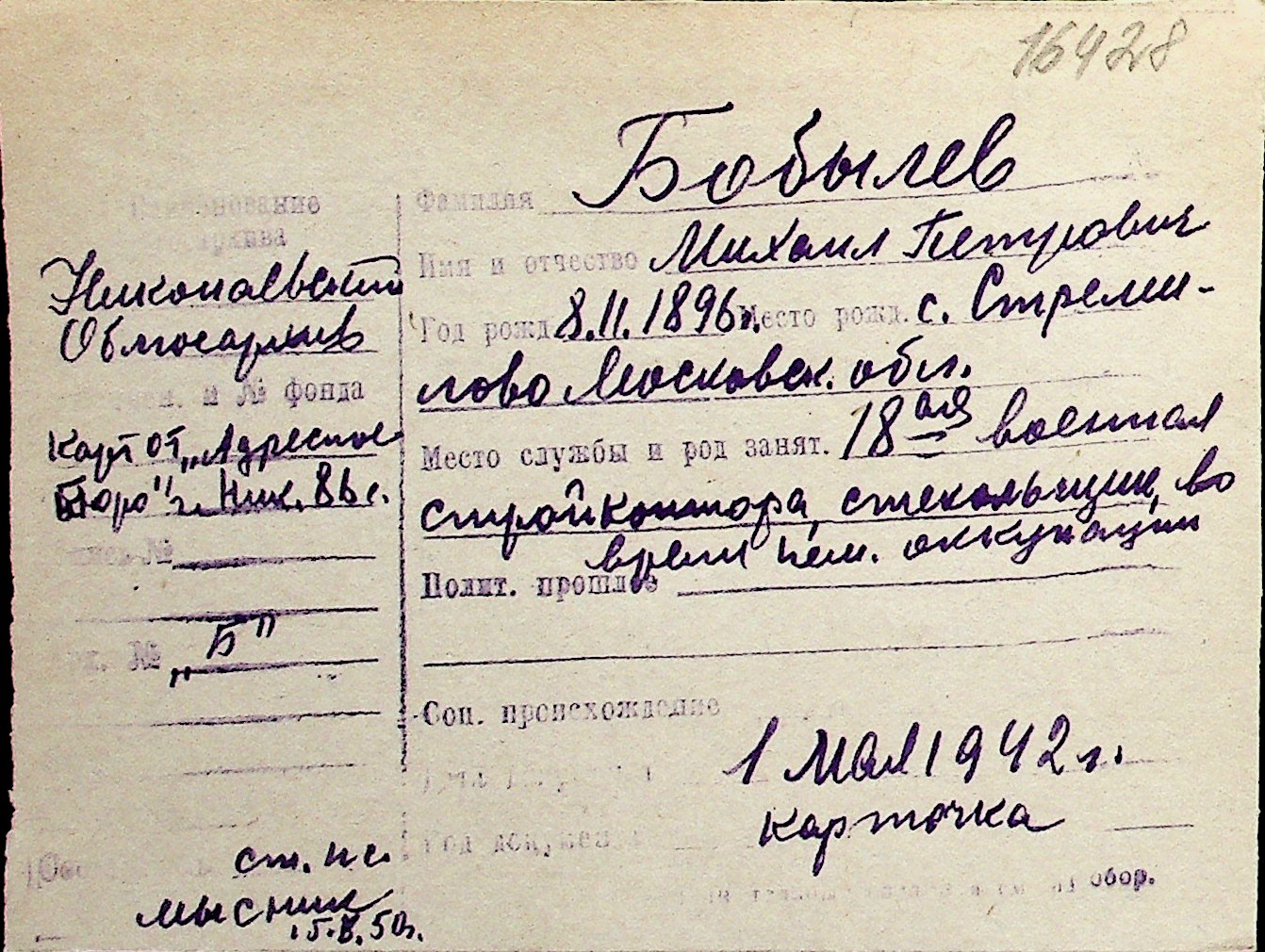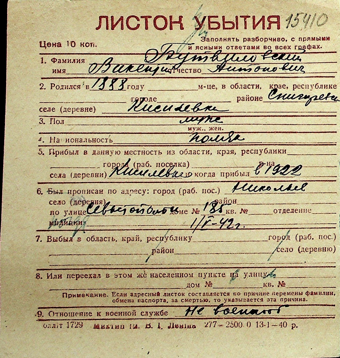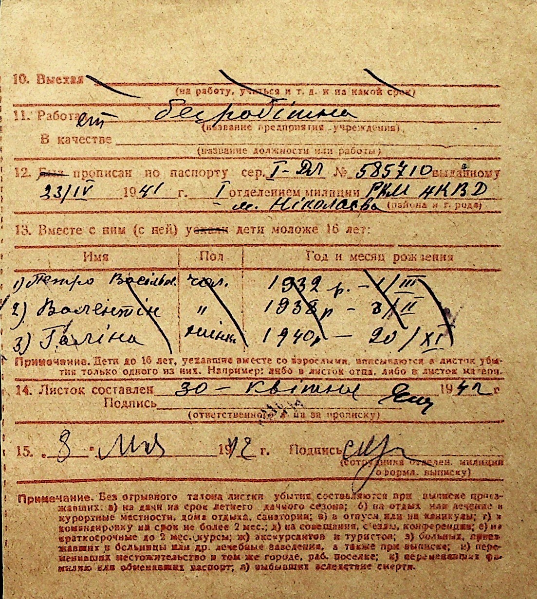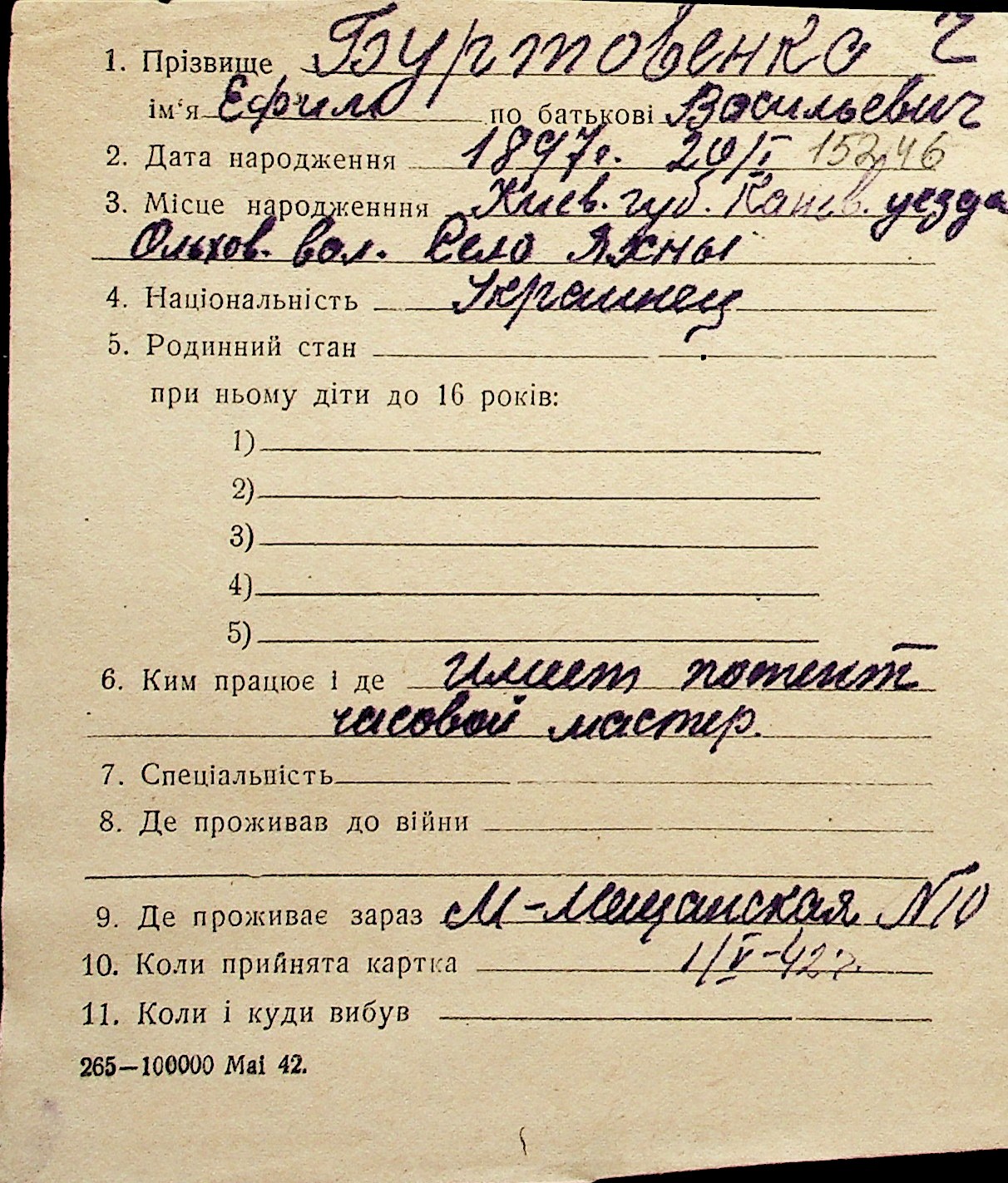 ◦ ◦ Перелік карток на осіб, які мешкали у м. Миколаїв у період окупації 1941–1944 років