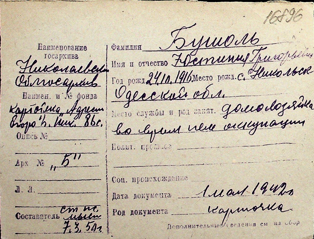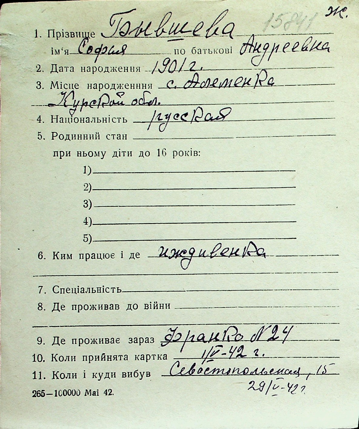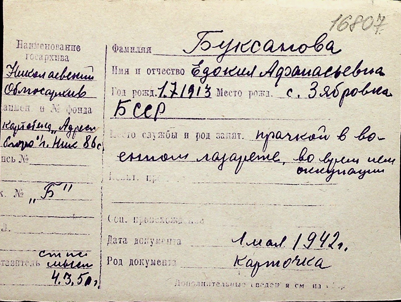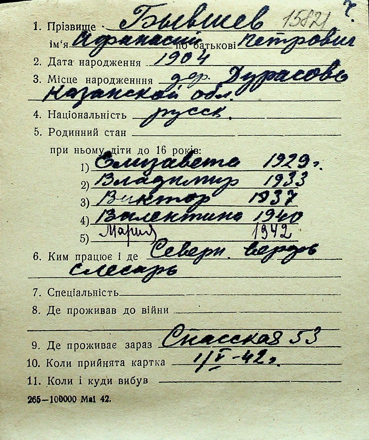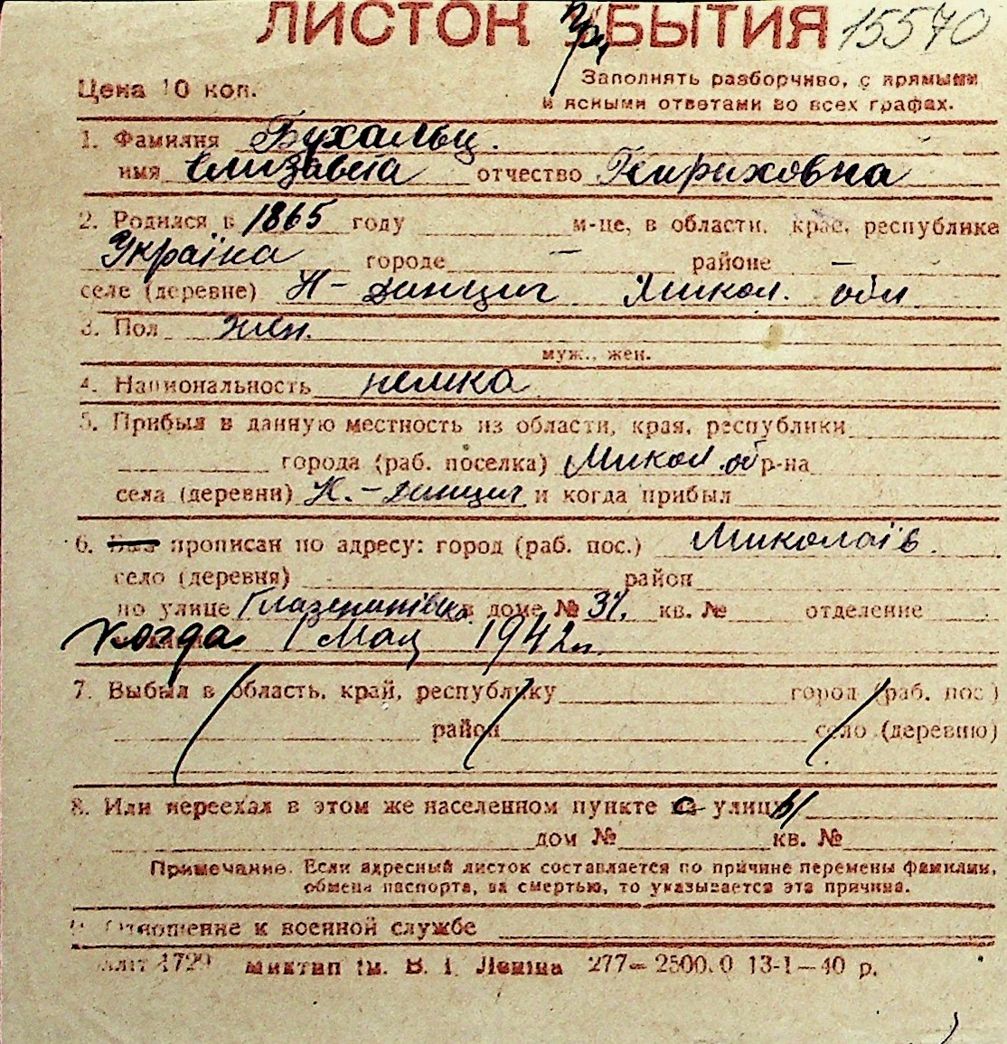 ◦ ◦ Перелік карток на осіб, які мешкали у м. Миколаїв у період окупації 1941–1944 років