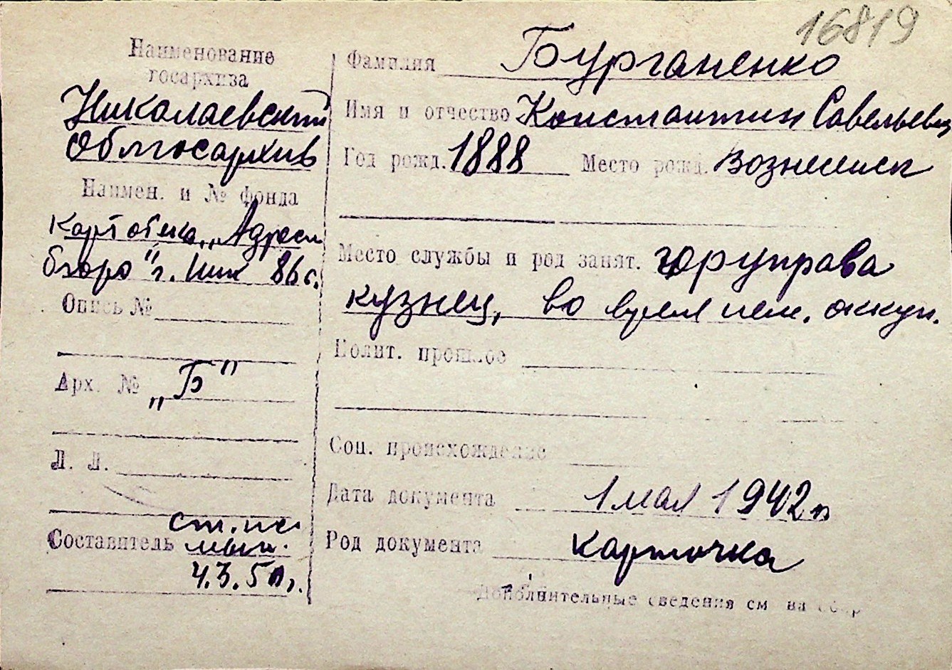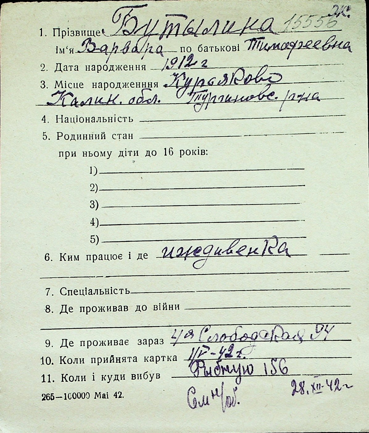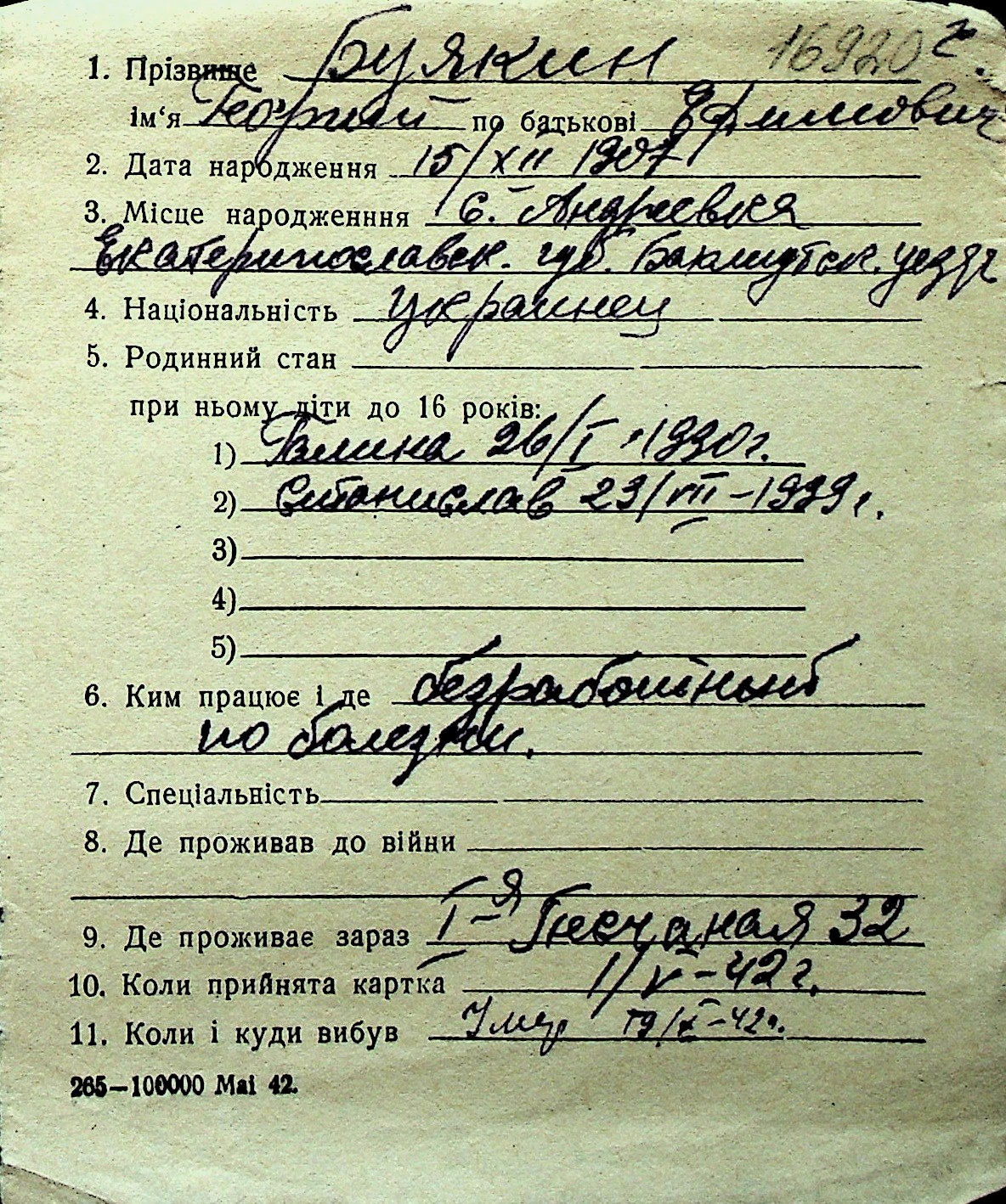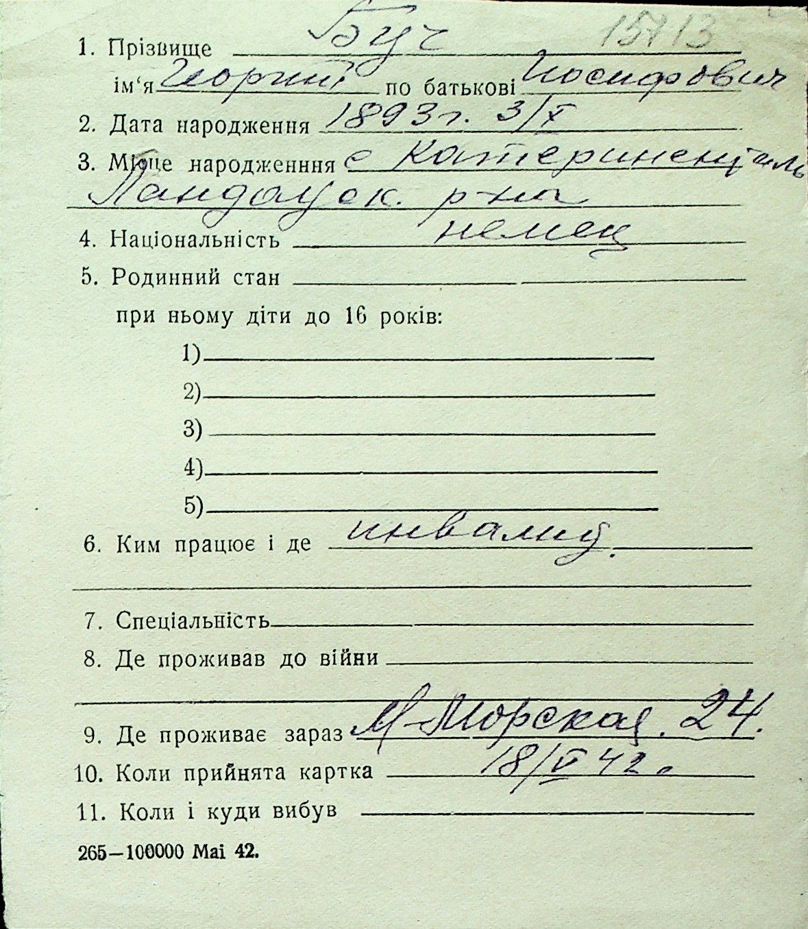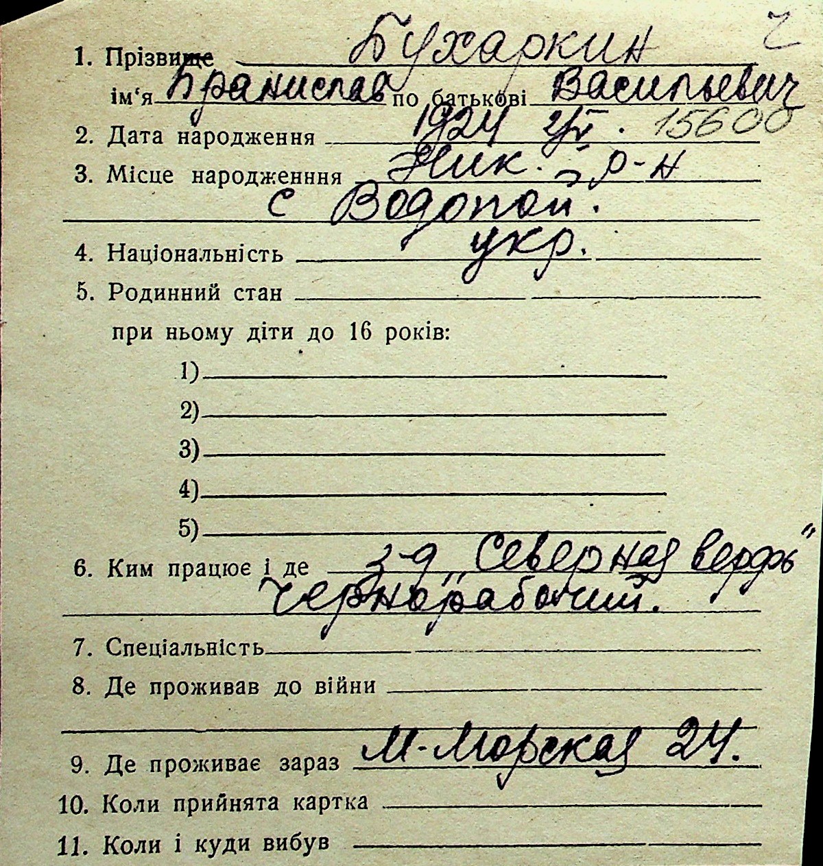 ◦ ◦ Перелік карток на осіб, які мешкали у м. Миколаїв у період окупації 1941–1944 років