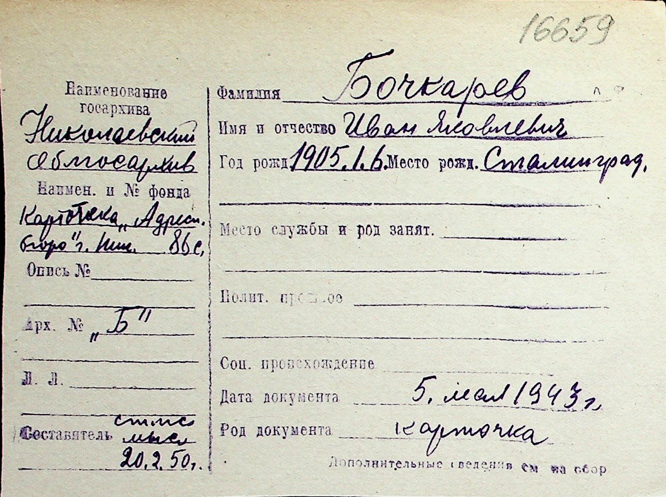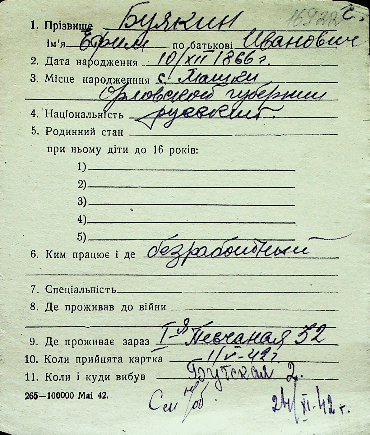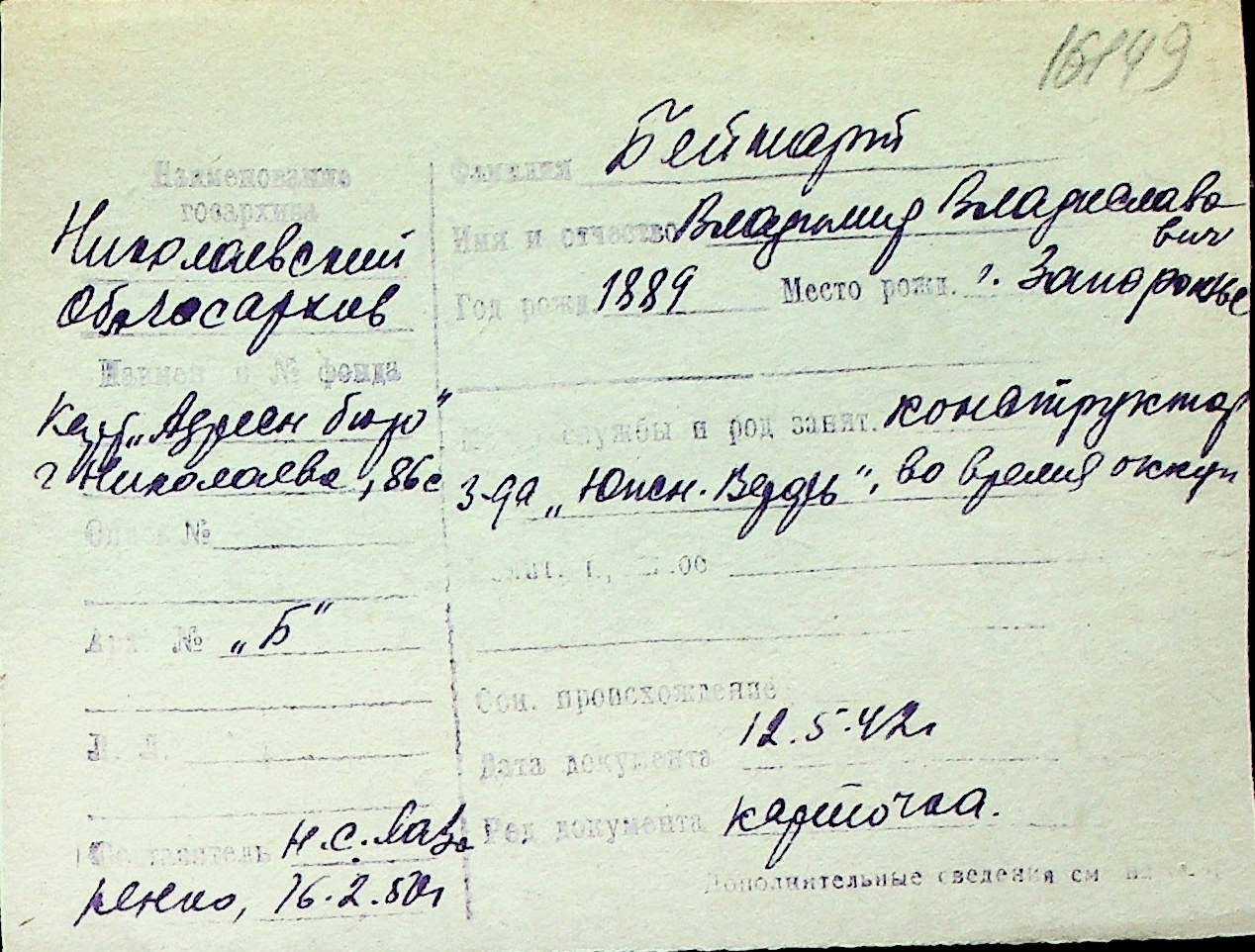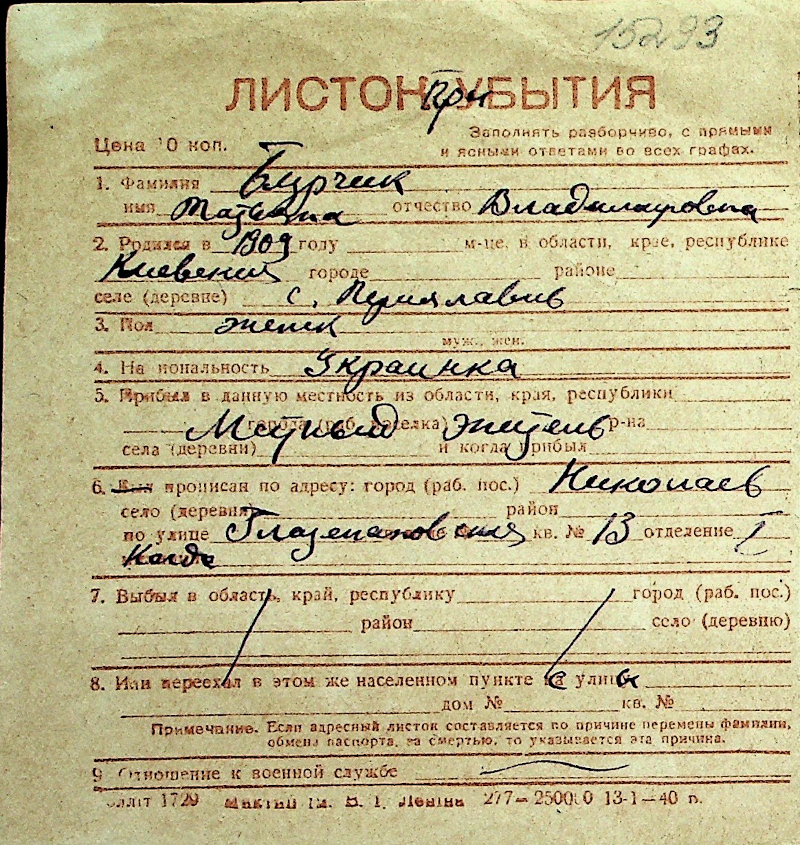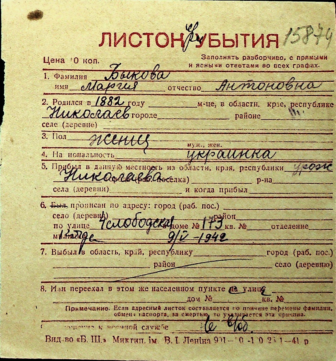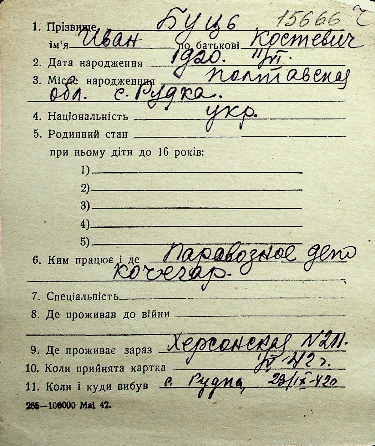 ◦ ◦ Перелік карток на осіб, які мешкали у м. Миколаїв у період окупації 1941–1944 років