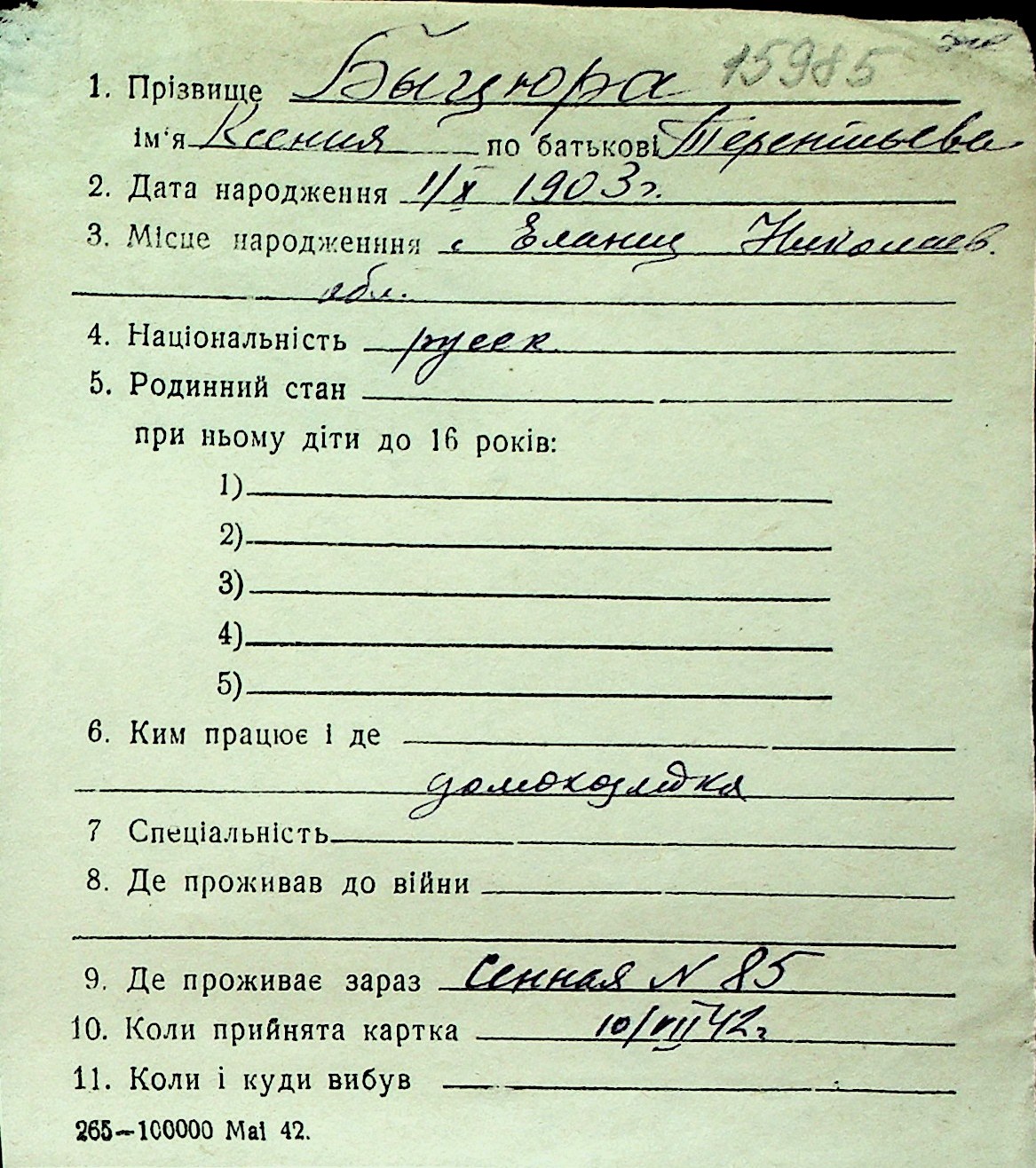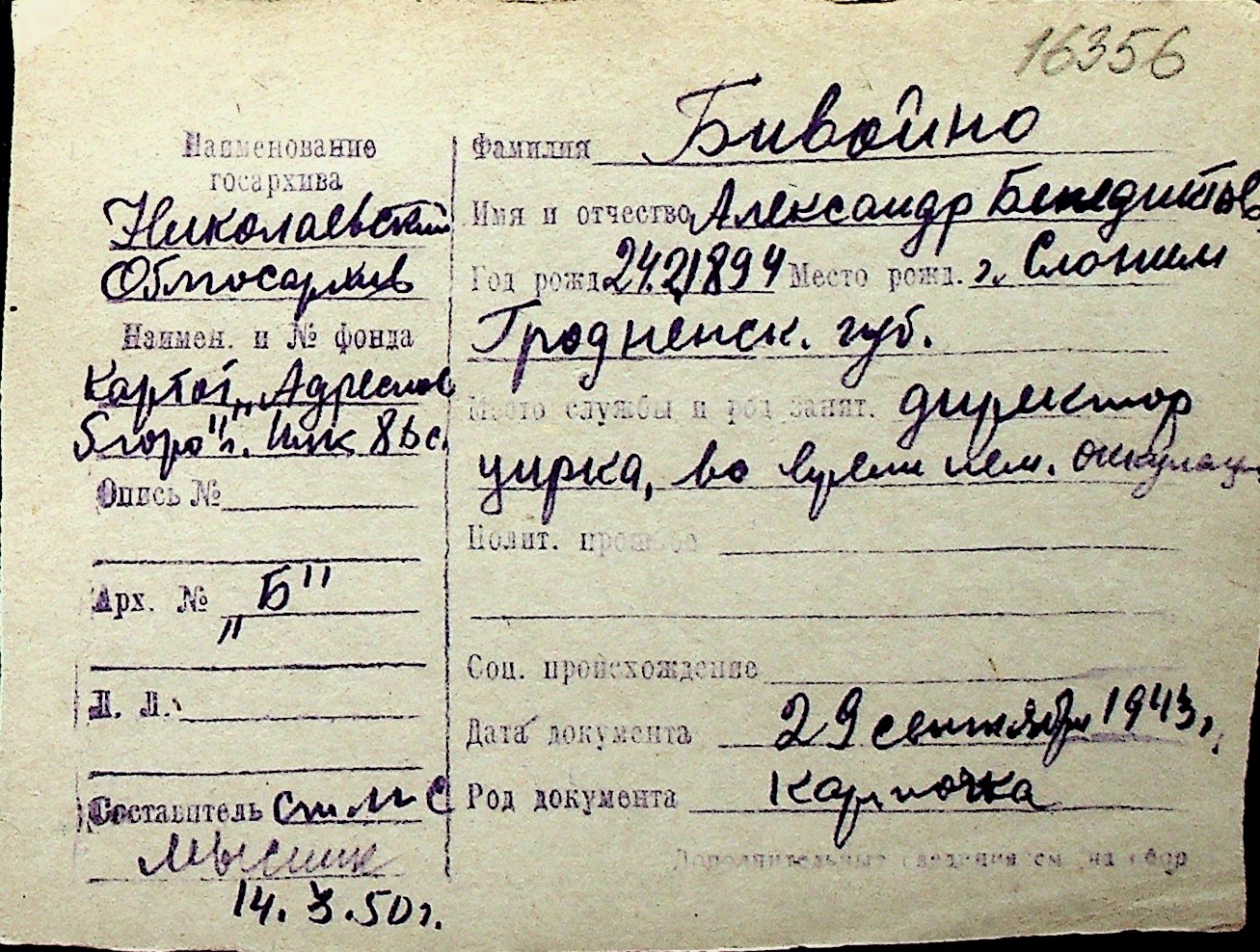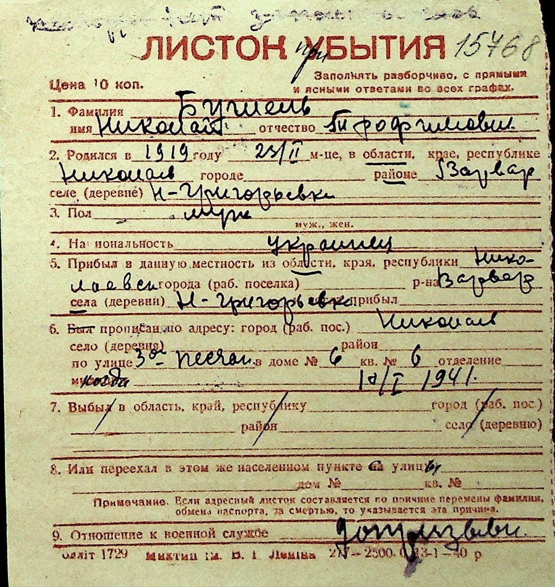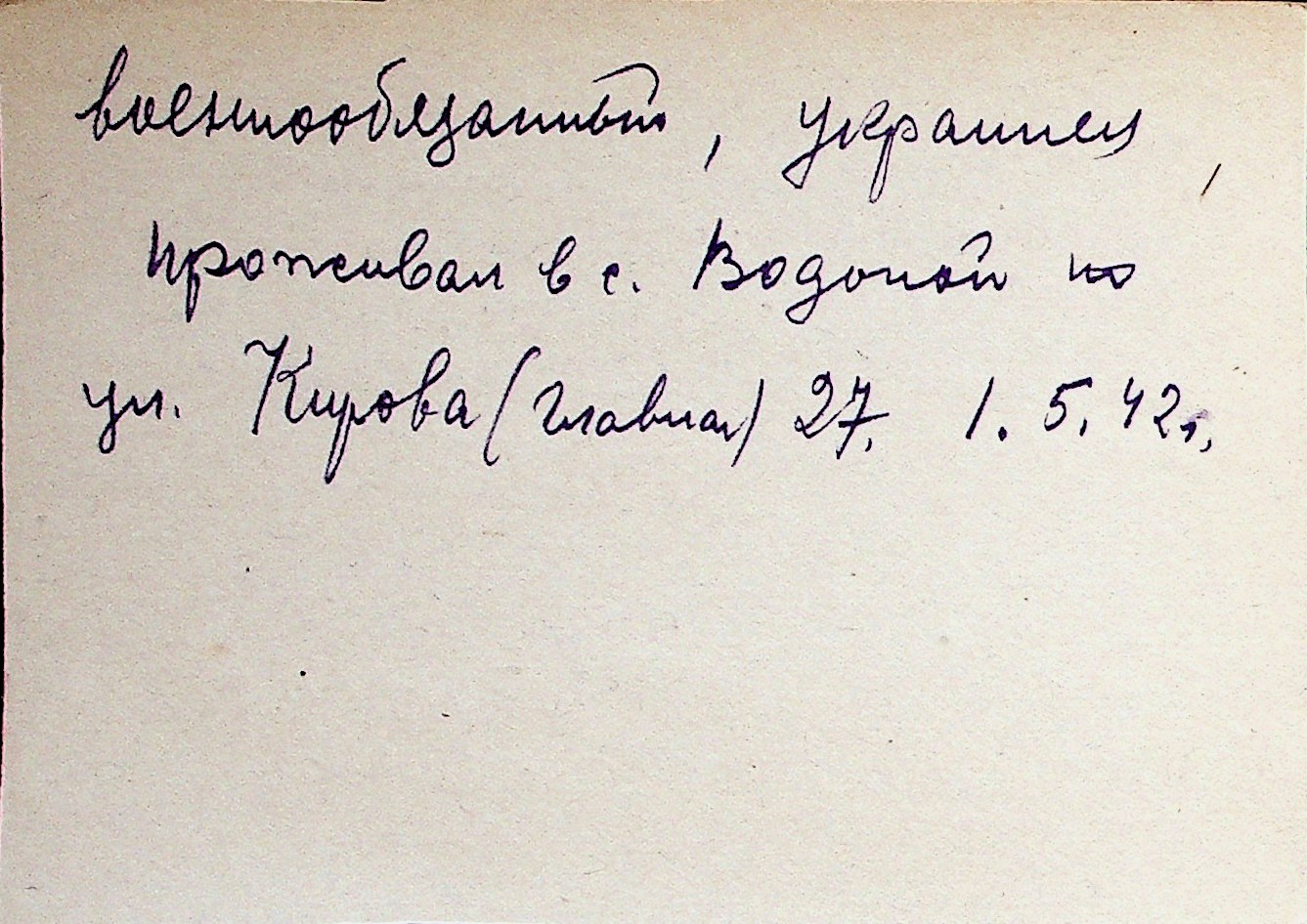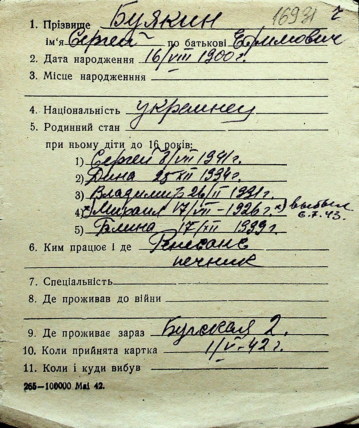 ◦ ◦ Перелік карток на осіб, які мешкали у м. Миколаїв у період окупації 1941–1944 років