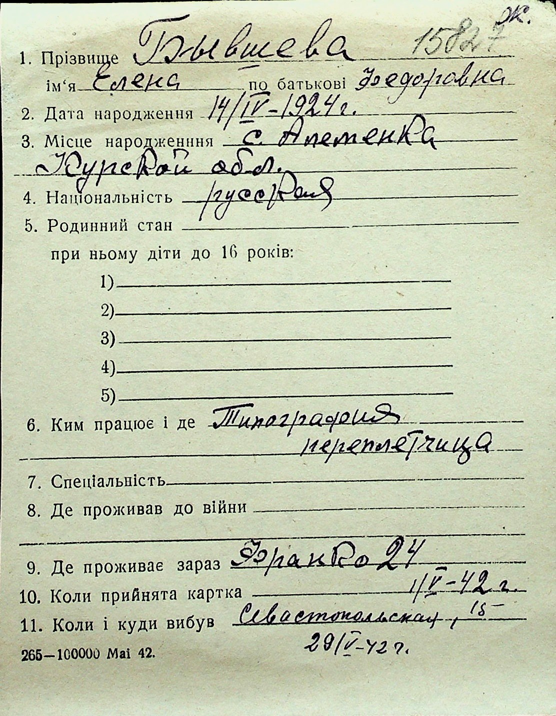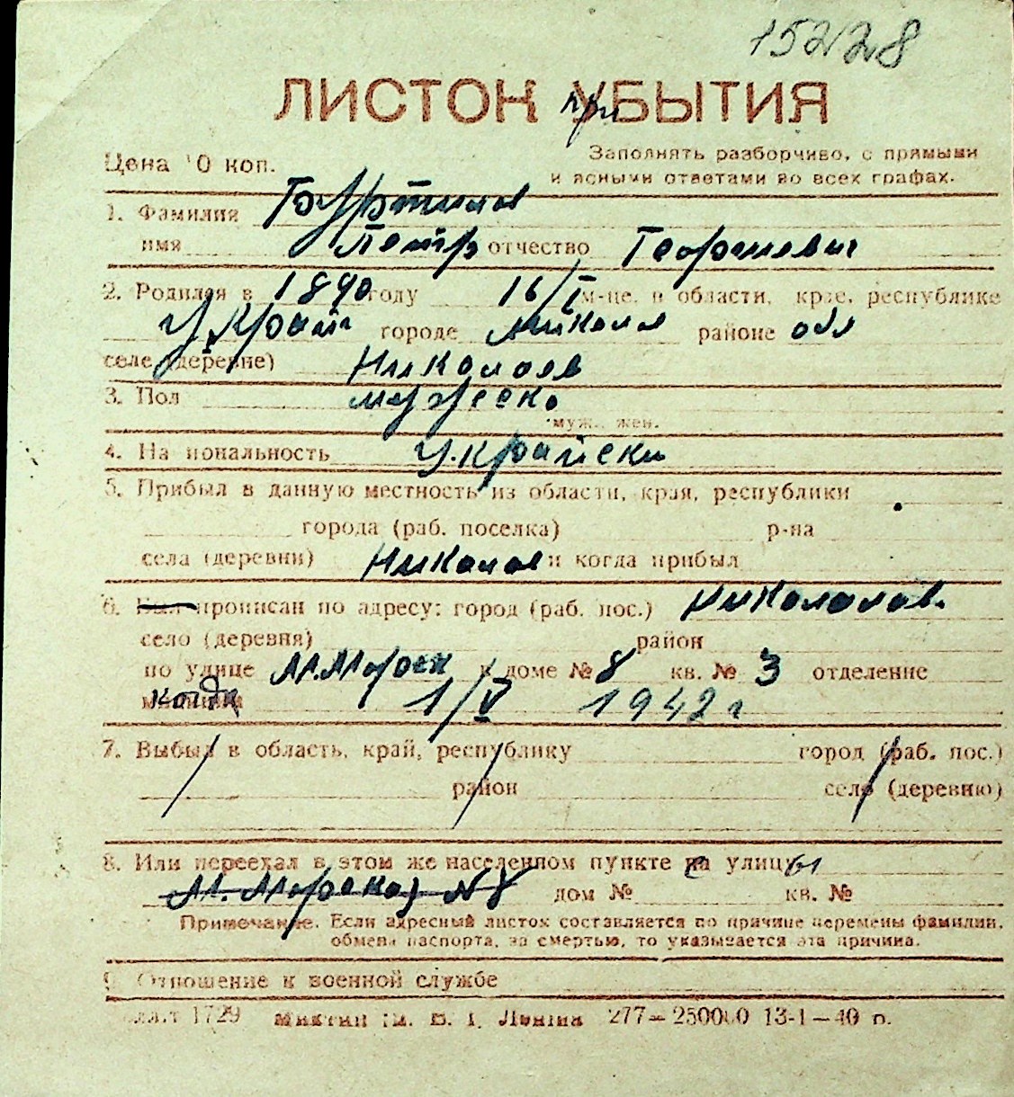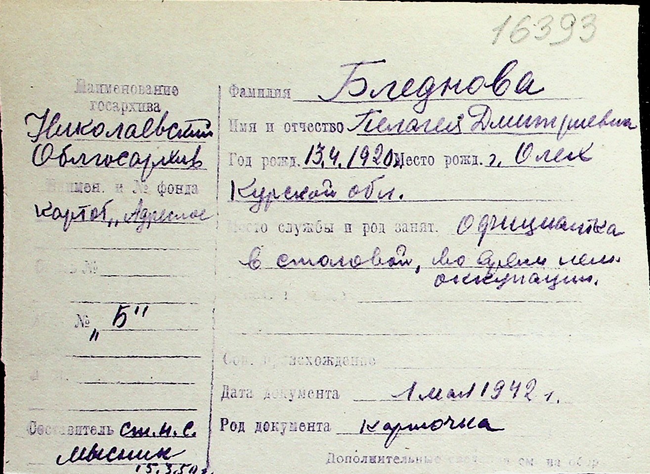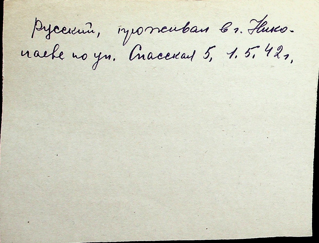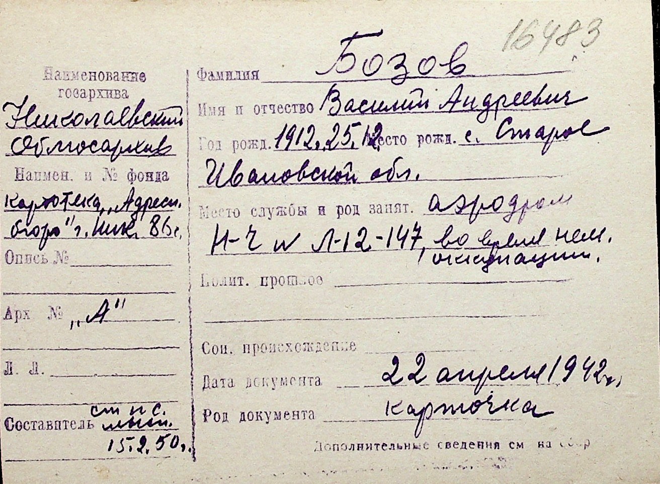 ◦ ◦ Перелік карток на осіб, які мешкали у м. Миколаїв у період окупації 1941–1944 років